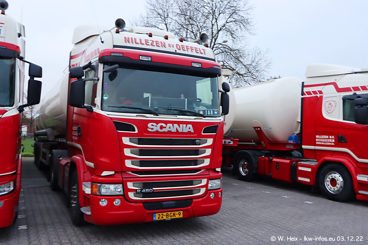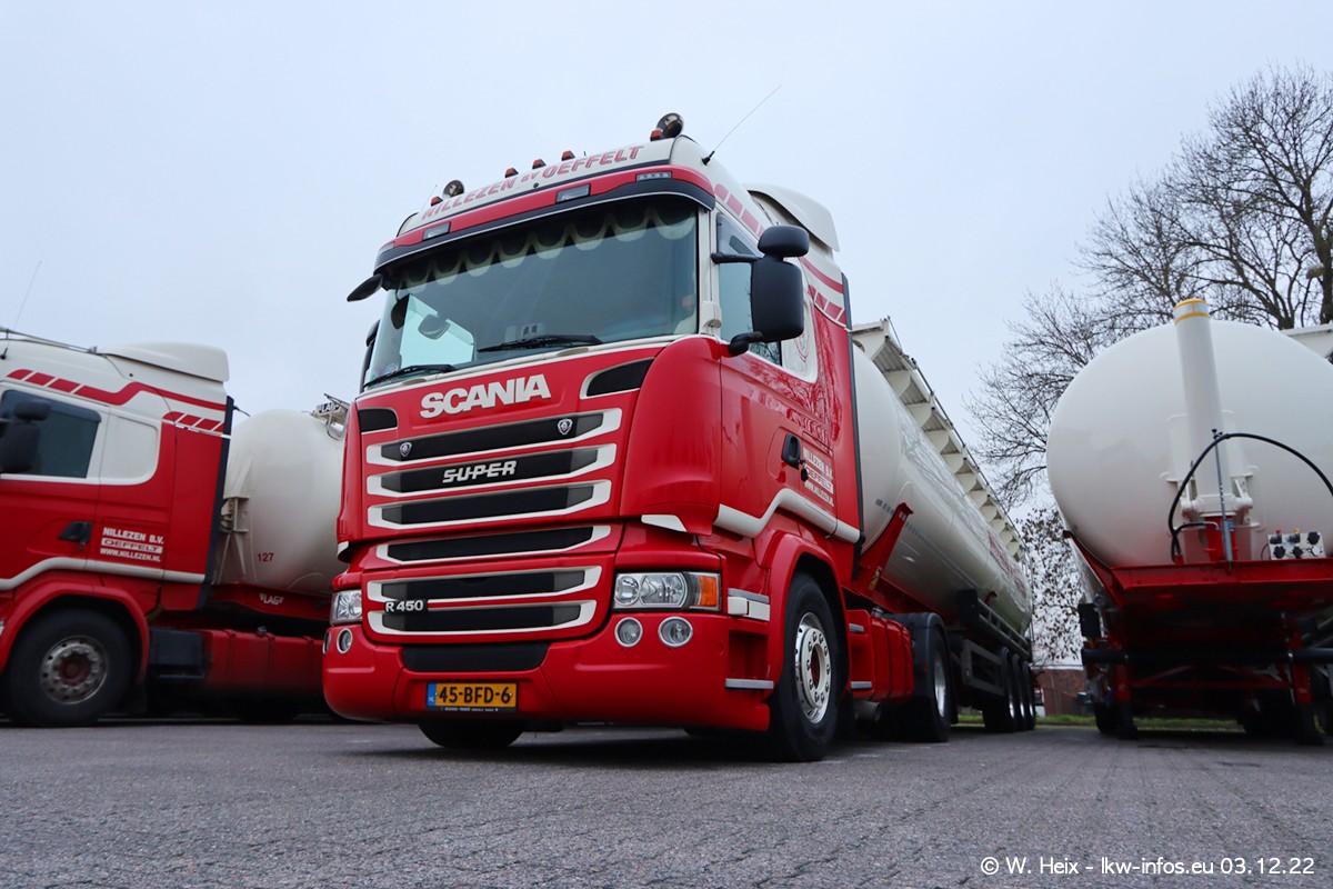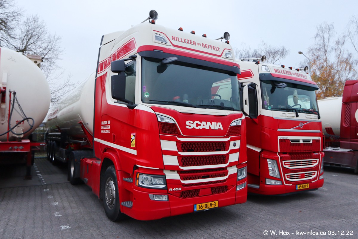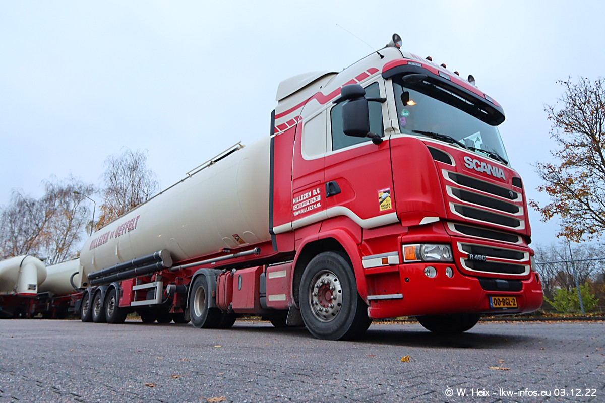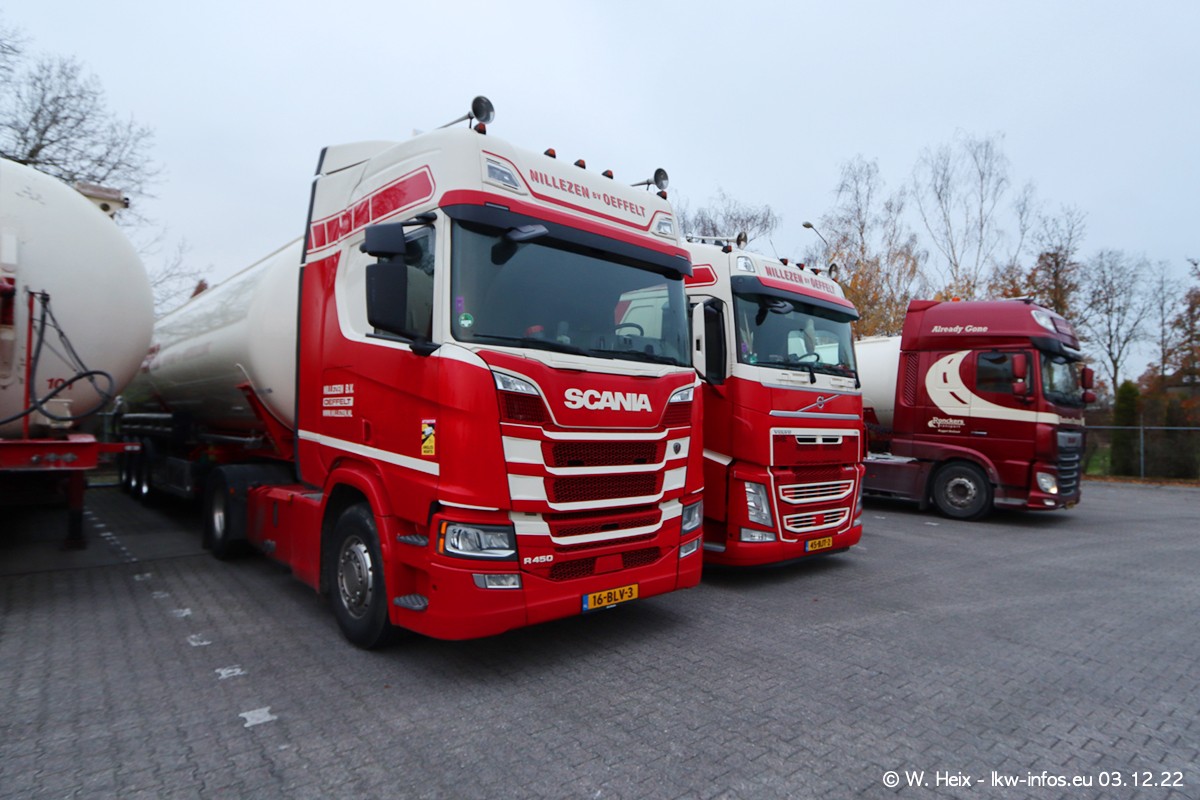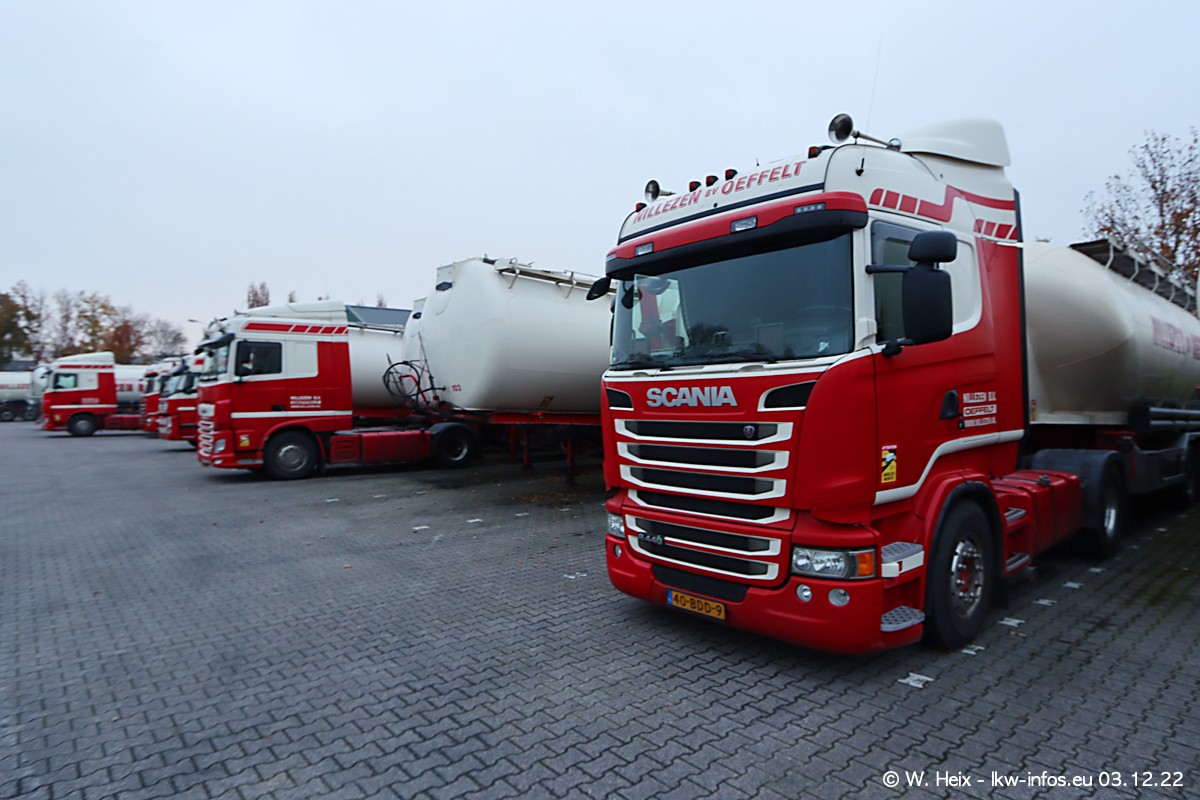 Nillezen bekomnt in den nächsten Wochen/Monaten insgesamt sieben neue SCANIA R 450 NextGen. Den ersten konnte ich bereits beim letzten Besuch fotografieren. Dazu kommen zehn neue Siloauflieger von Feldbinder. Den ersten konnte ich heute fotografieren. Alle neuen Auflieger werden an der neuen Beschriftung zu erkennen sein. Das Design ist leicht geändert, der Ortsname" Oeffelt" entfällt. Anfang nächten Jahres werde ich sicher mehr von den neuen Fahrzeugen fotografireren.