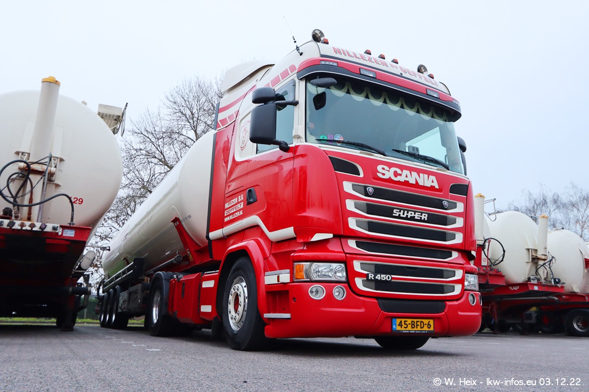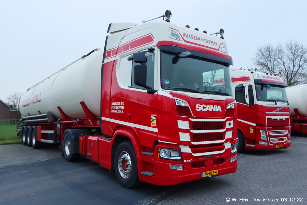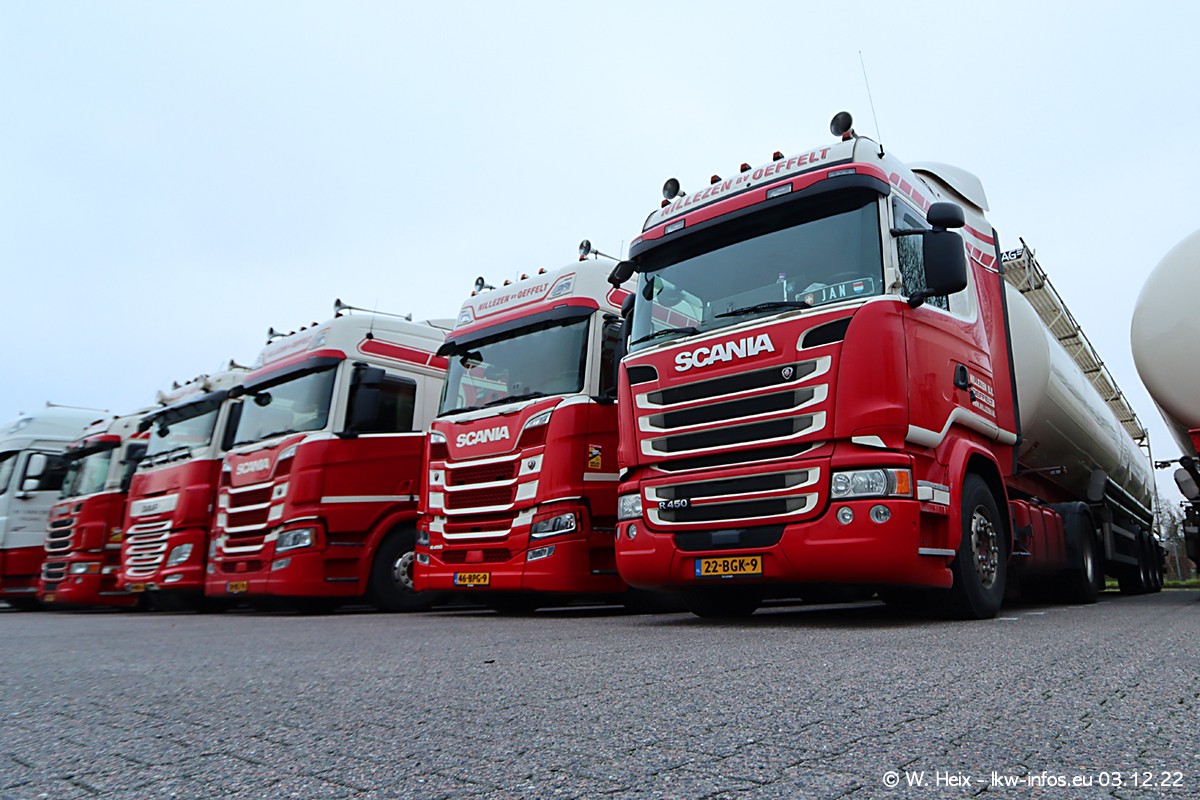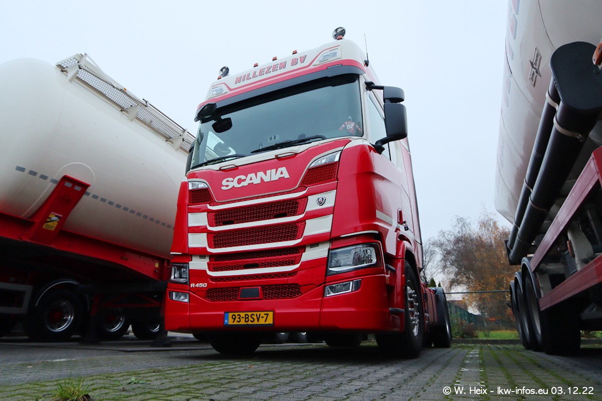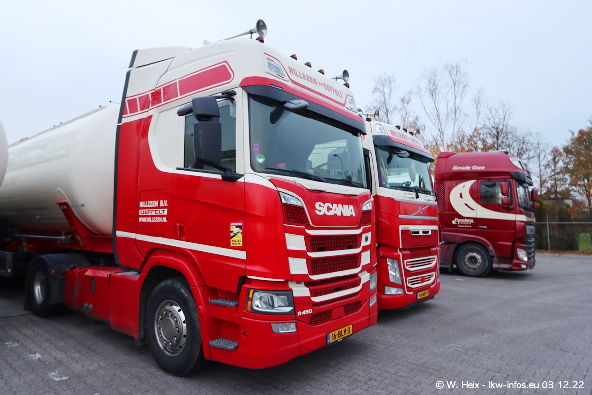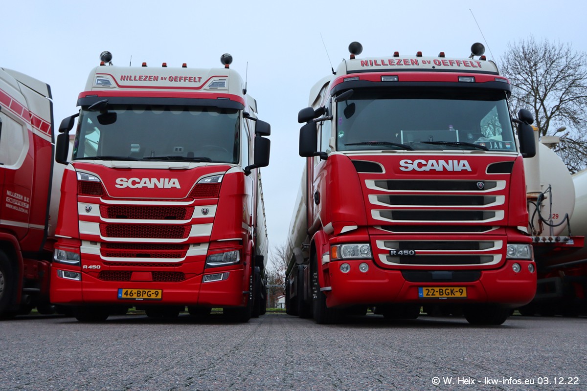 Nillezen bekomnt in den nächsten Wochen/Monaten insgesamt sieben neue SCANIA R 450 NextGen. Den ersten konnte ich bereits beim letzten Besuch fotografieren. Dazu kommen zehn neue Siloauflieger von Feldbinder. Den ersten konnte ich heute fotografieren. Alle neuen Auflieger werden an der neuen Beschriftung zu erkennen sein. Das Design ist leicht geändert, der Ortsname" Oeffelt" entfällt. Anfang nächten Jahres werde ich sicher mehr von den neuen Fahrzeugen fotografireren.