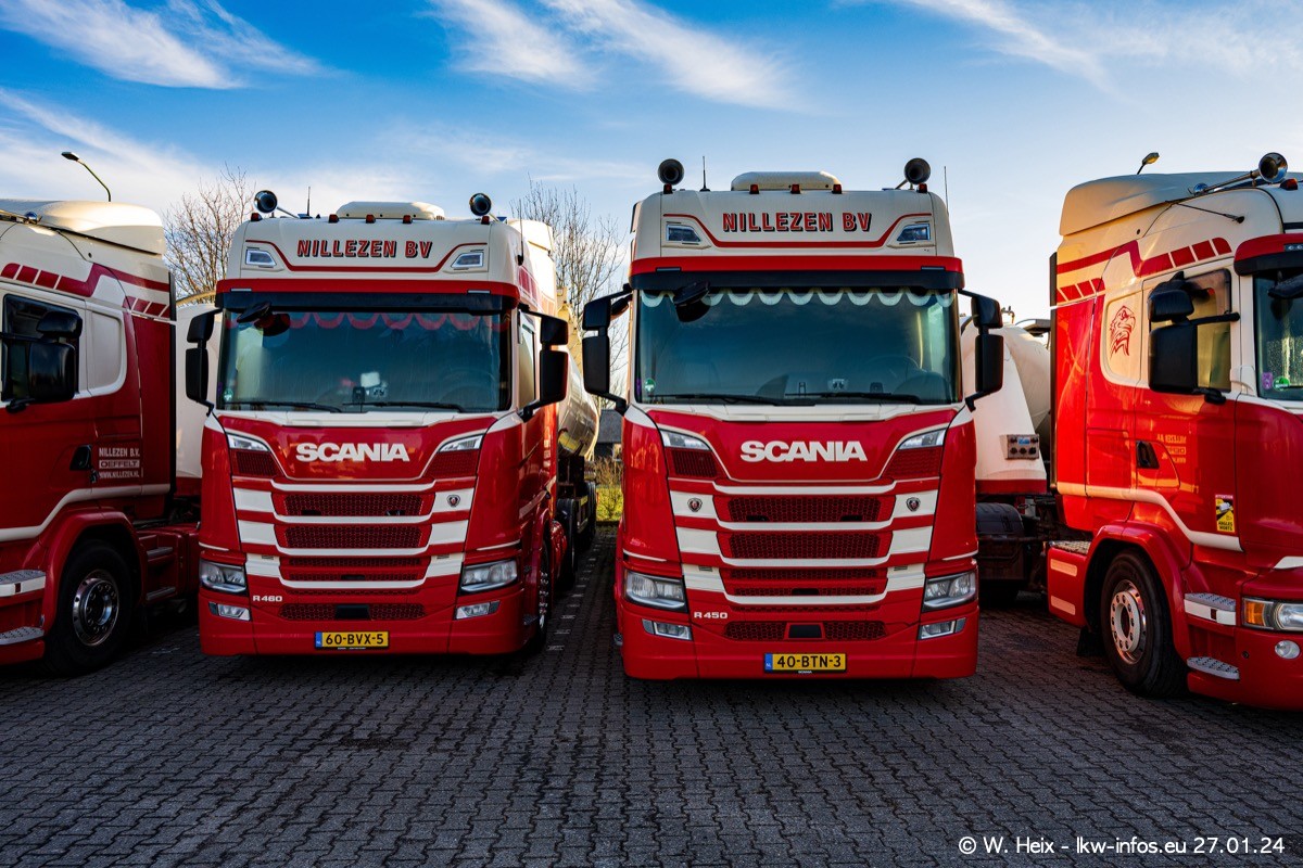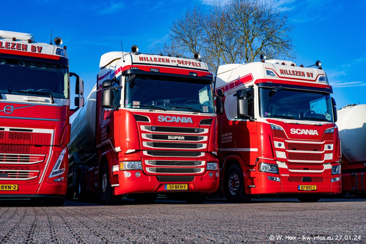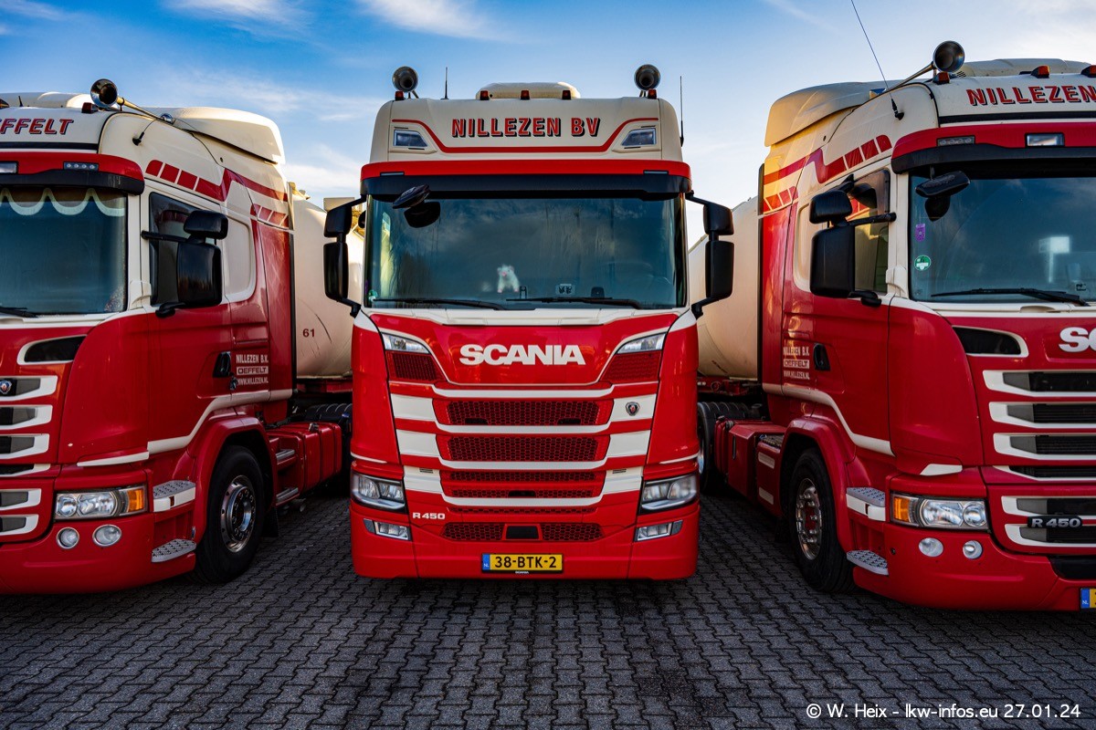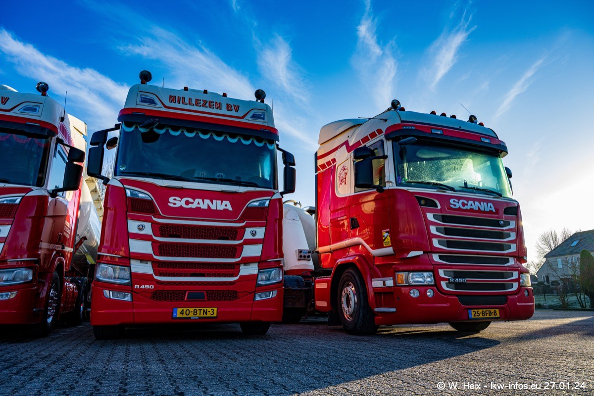 Es gibt einige neue LKW im Fuhpark. Das sind die beiden fotografierten VOLVO FH 5 sowie mehrere SCANIA 460 R NextGen. Wenn die letzten in den nächsten Wochen an Nillezen ausgeleifert werden, sind es insgesamt acht neue Fahrzeuge. Zu erkennen sind die neuen Fahrzeunge an der Buchstabenkombination BV.. auf dem Kennzeichen.