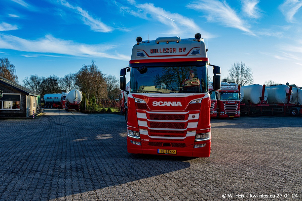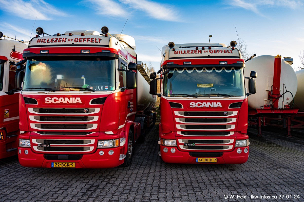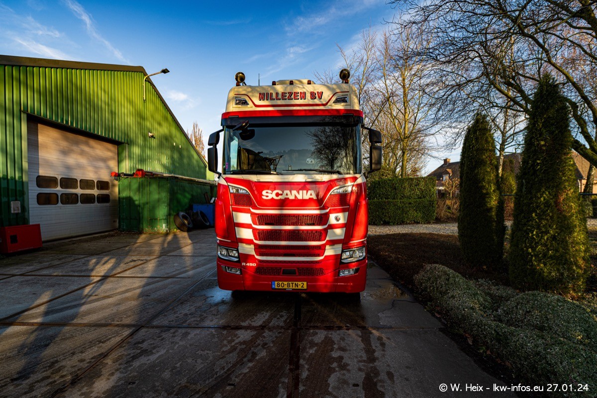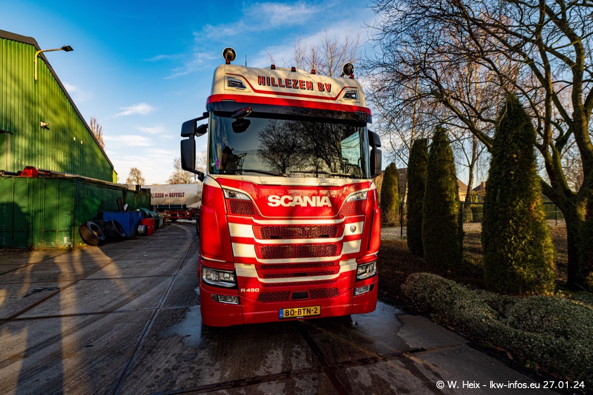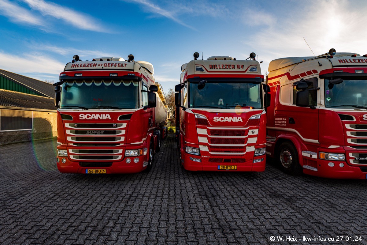 Es gibt einige neue LKW im Fuhpark. Das sind die beiden fotografierten VOLVO FH 5 sowie mehrere SCANIA 460 R NextGen. Wenn die letzten in den nächsten Wochen an Nillezen ausgeleifert werden, sind es insgesamt acht neue Fahrzeuge. Zu erkennen sind die neuen Fahrzeunge an der Buchstabenkombination BV.. auf dem Kennzeichen.