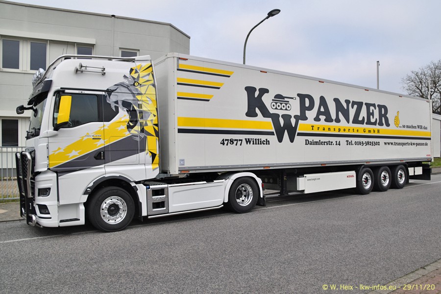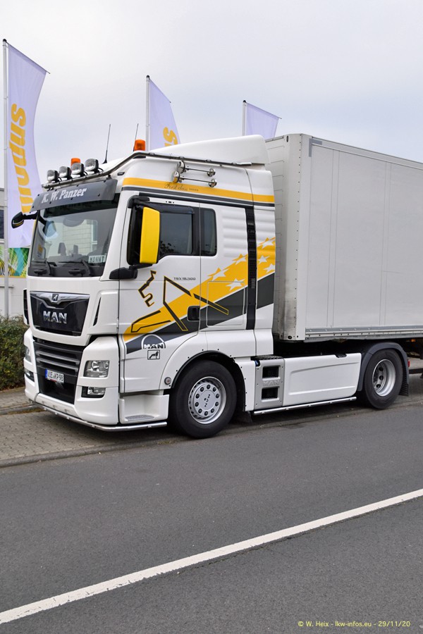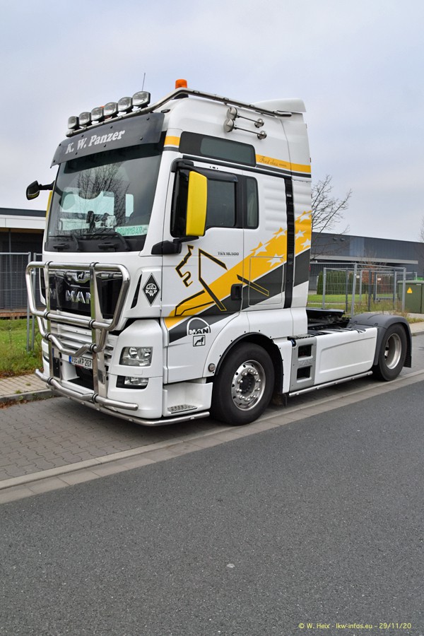 Am Anfang der Galerie ist der erste neue MAN TGX GX "TGX 2020" von K. W. Panzer zu sehen, der seit Anfang November im Fuhrpark ist. Alle anderen LKW sind bekannt, da ich diese schon ein paar mal fotografiert habe.