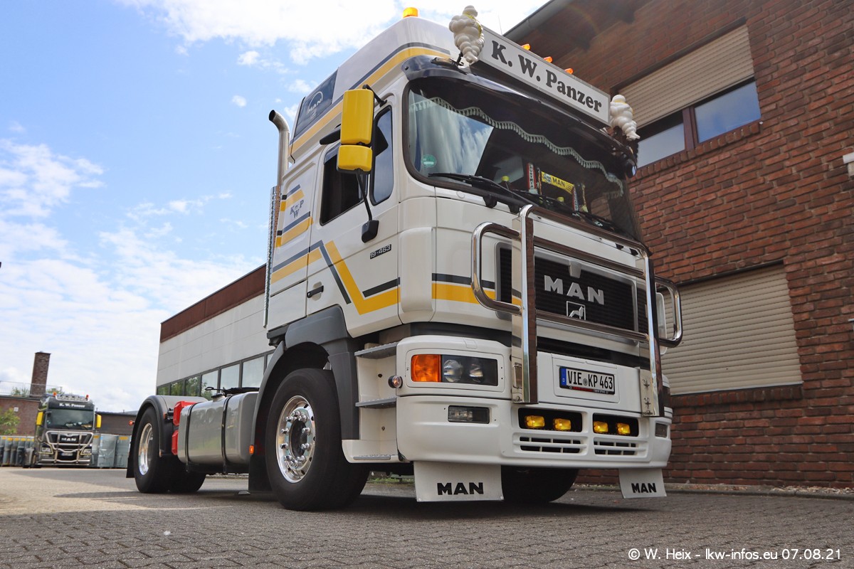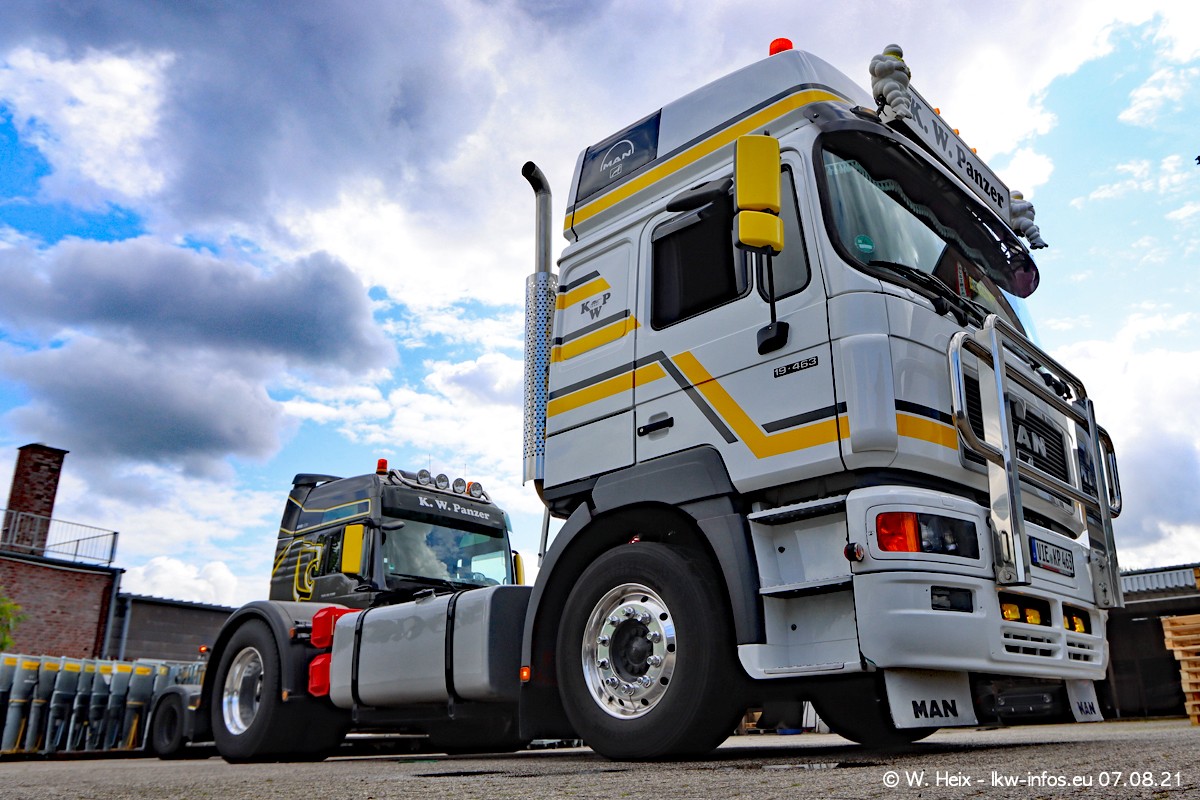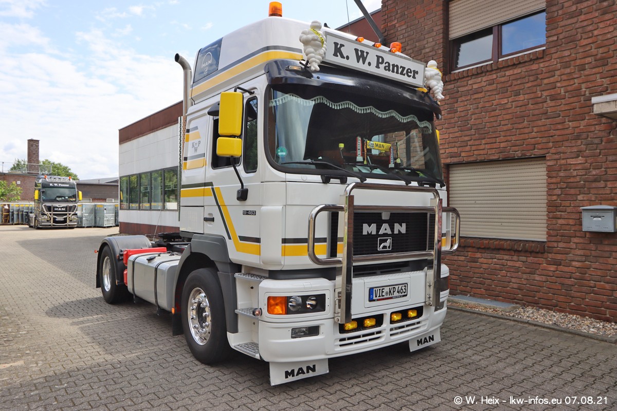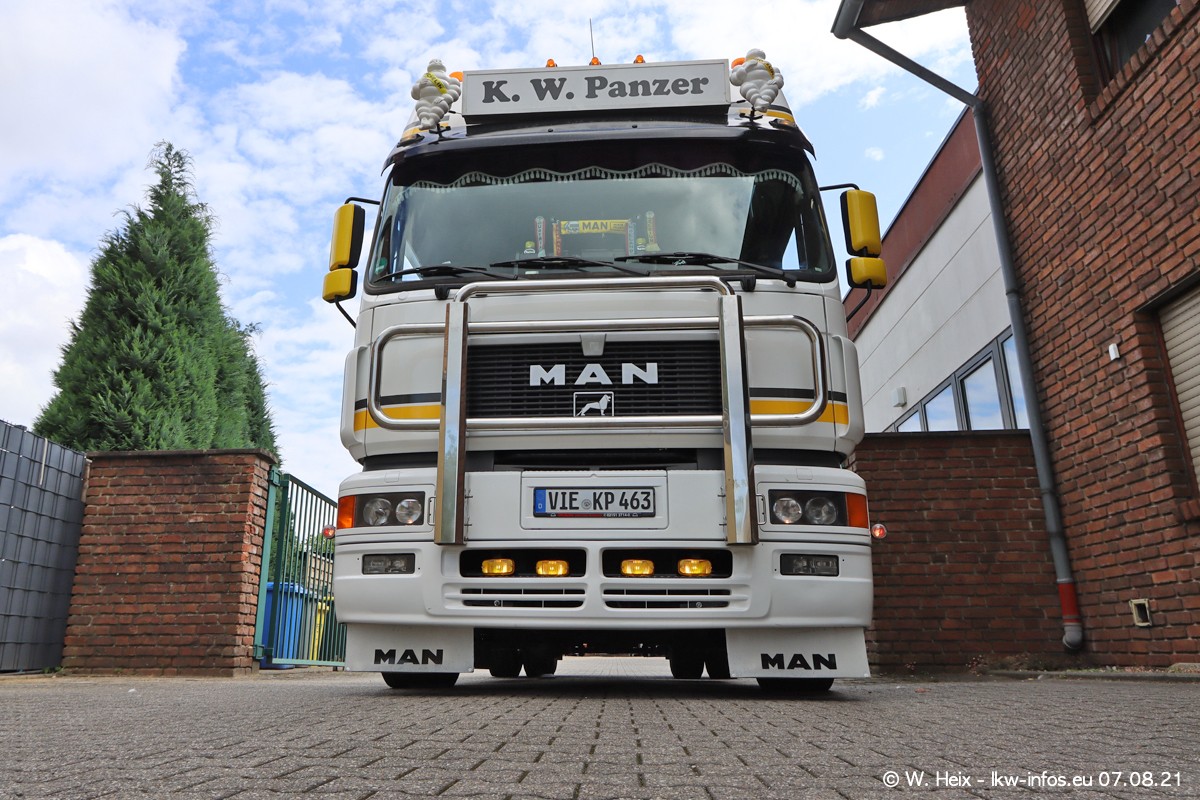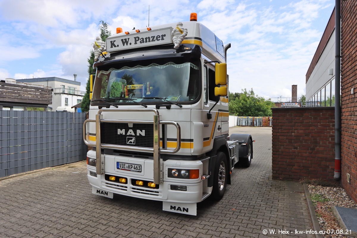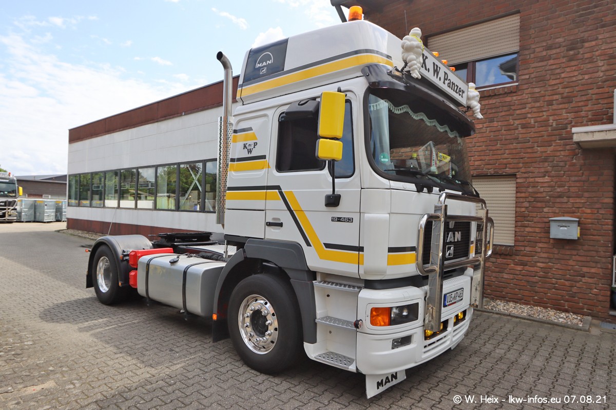 Inzwischen hat die Firma K.W. Panzer vier neue MAN TGX im Fuhrpark. Den ersten hatte ich im November 2020 in Mönchengladbach fotografiert, zwei weitere konnte ich beim heutigen Besuch inb WIllich fotografieren. Der TGX GX 18.640 ist knapp zwei Monate alt und noch nicht fertig, sieht aber schon gut aus. Eine weitere Überraschung war für mich der MAN F2000 19.463. Diese Zugmaschine wurde vor einiger Zeit gebraucht gekauft und komplett neu aufgebaut und im "Panzer-Design" gestaltet. Baujahr 1998 und auf dem Weg vom Youngtimer zum Oldtimer.... Hobby vom Chef und auch im Einsatz für Rangierarbeiten bei DHL in Krefeld. Die Firma Panzer fährt überwiegend für DHL. Danke an Herrn Panzer und Herrn Dohmen, die mir die heutigen Aufnahmen ermöglicht haben.