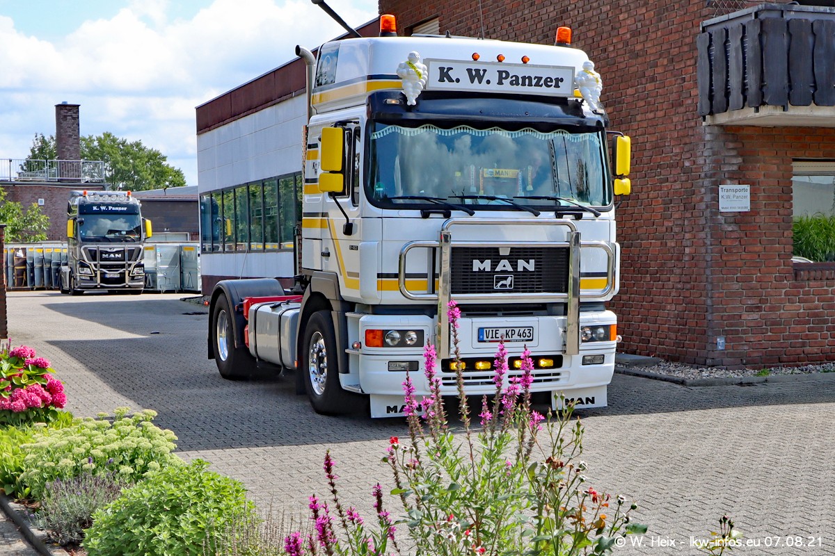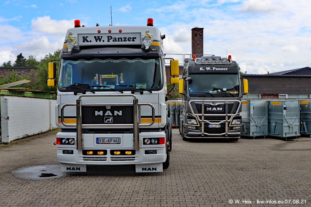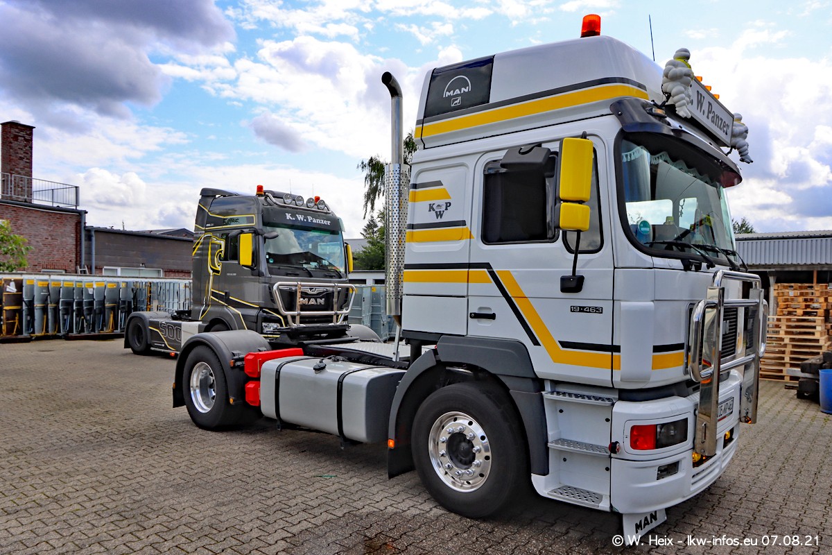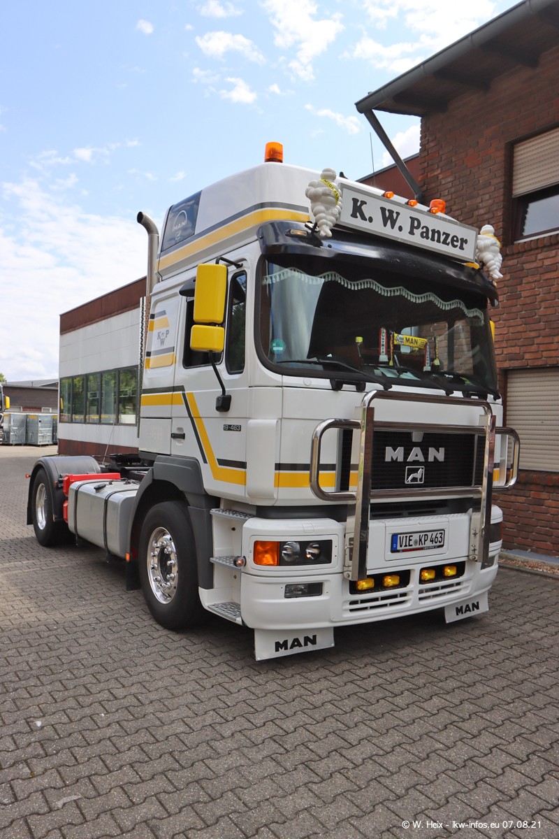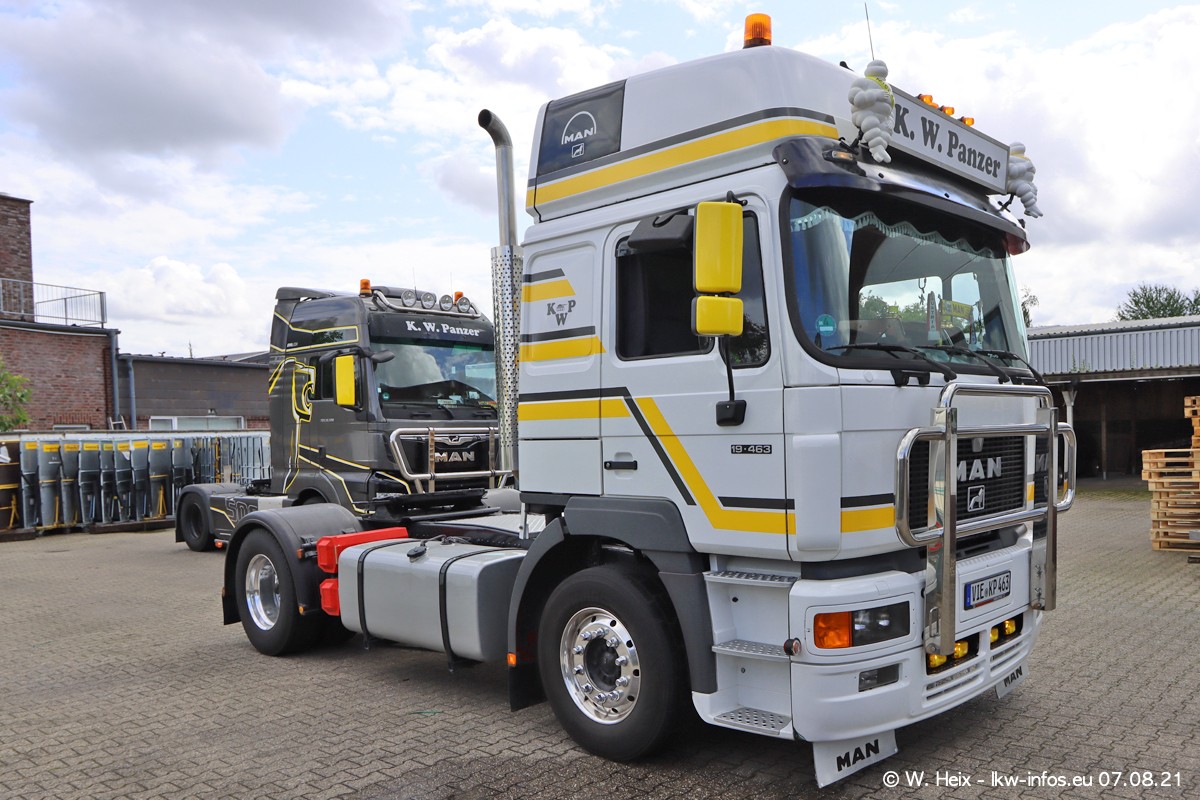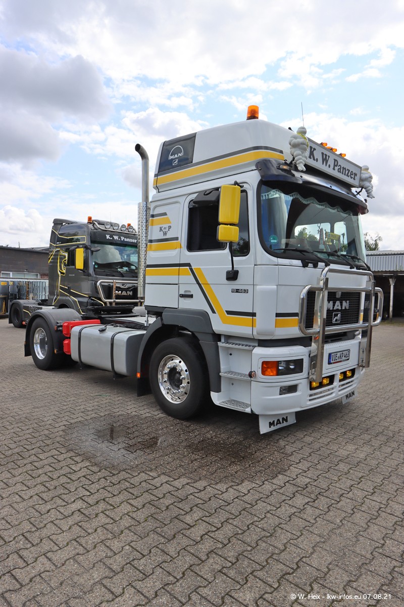 Inzwischen hat die Firma K.W. Panzer vier neue MAN TGX im Fuhrpark. Den ersten hatte ich im November 2020 in Mönchengladbach fotografiert, zwei weitere konnte ich beim heutigen Besuch inb WIllich fotografieren. Der TGX GX 18.640 ist knapp zwei Monate alt und noch nicht fertig, sieht aber schon gut aus. Eine weitere Überraschung war für mich der MAN F2000 19.463. Diese Zugmaschine wurde vor einiger Zeit gebraucht gekauft und komplett neu aufgebaut und im "Panzer-Design" gestaltet. Baujahr 1998 und auf dem Weg vom Youngtimer zum Oldtimer.... Hobby vom Chef und auch im Einsatz für Rangierarbeiten bei DHL in Krefeld. Die Firma Panzer fährt überwiegend für DHL. Danke an Herrn Panzer und Herrn Dohmen, die mir die heutigen Aufnahmen ermöglicht haben.