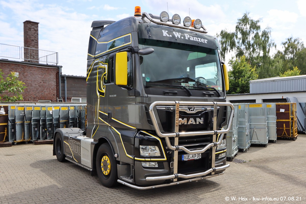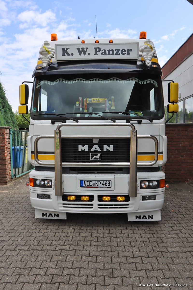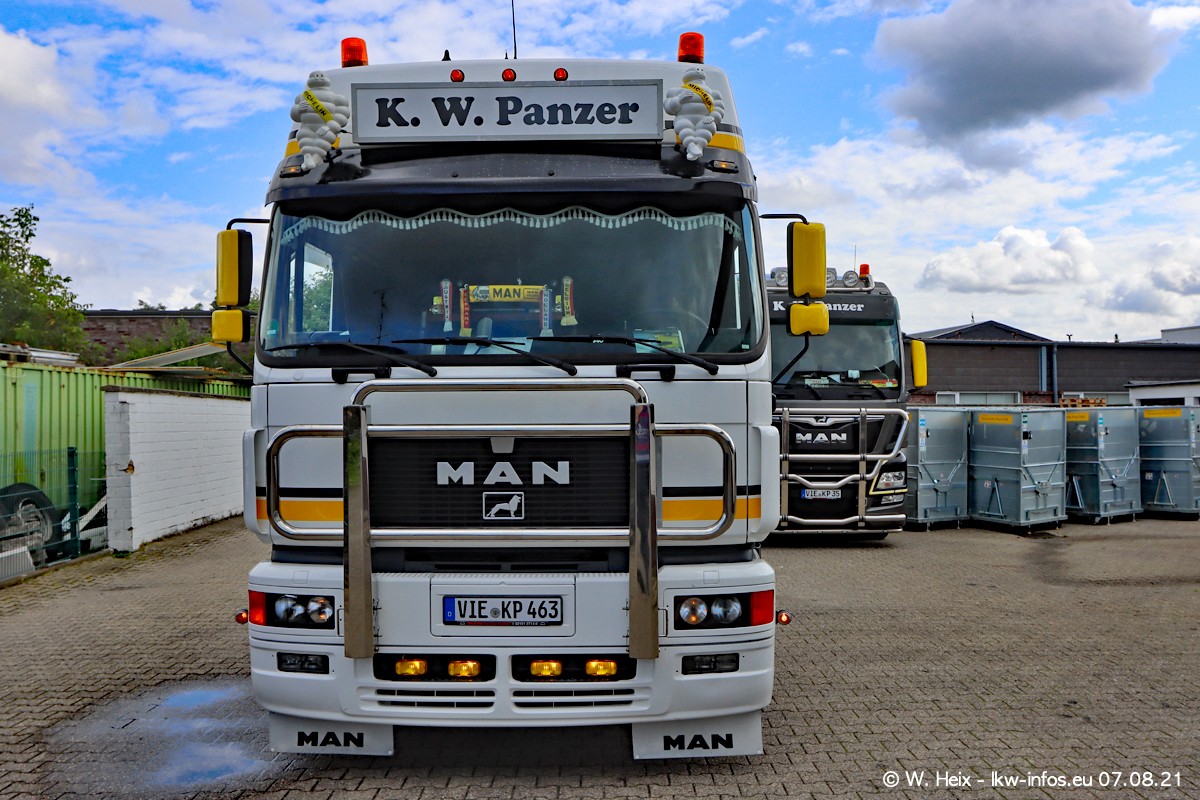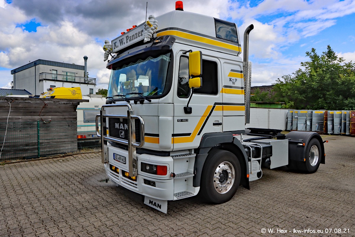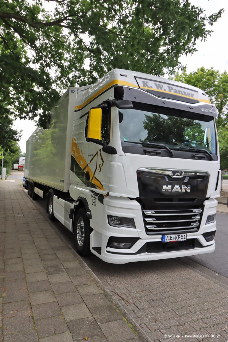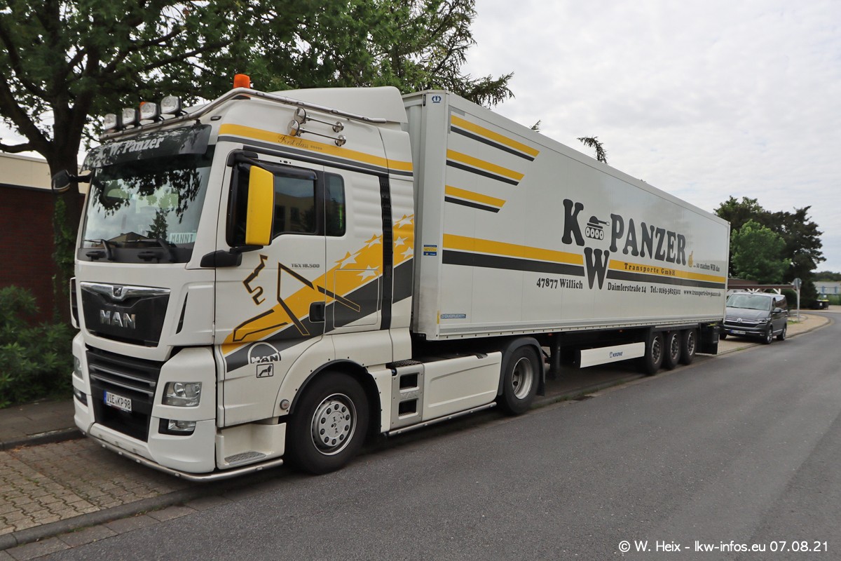 Inzwischen hat die Firma K.W. Panzer vier neue MAN TGX im Fuhrpark. Den ersten hatte ich im November 2020 in Mönchengladbach fotografiert, zwei weitere konnte ich beim heutigen Besuch inb WIllich fotografieren. Der TGX GX 18.640 ist knapp zwei Monate alt und noch nicht fertig, sieht aber schon gut aus. Eine weitere Überraschung war für mich der MAN F2000 19.463. Diese Zugmaschine wurde vor einiger Zeit gebraucht gekauft und komplett neu aufgebaut und im "Panzer-Design" gestaltet. Baujahr 1998 und auf dem Weg vom Youngtimer zum Oldtimer.... Hobby vom Chef und auch im Einsatz für Rangierarbeiten bei DHL in Krefeld. Die Firma Panzer fährt überwiegend für DHL. Danke an Herrn Panzer und Herrn Dohmen, die mir die heutigen Aufnahmen ermöglicht haben.
