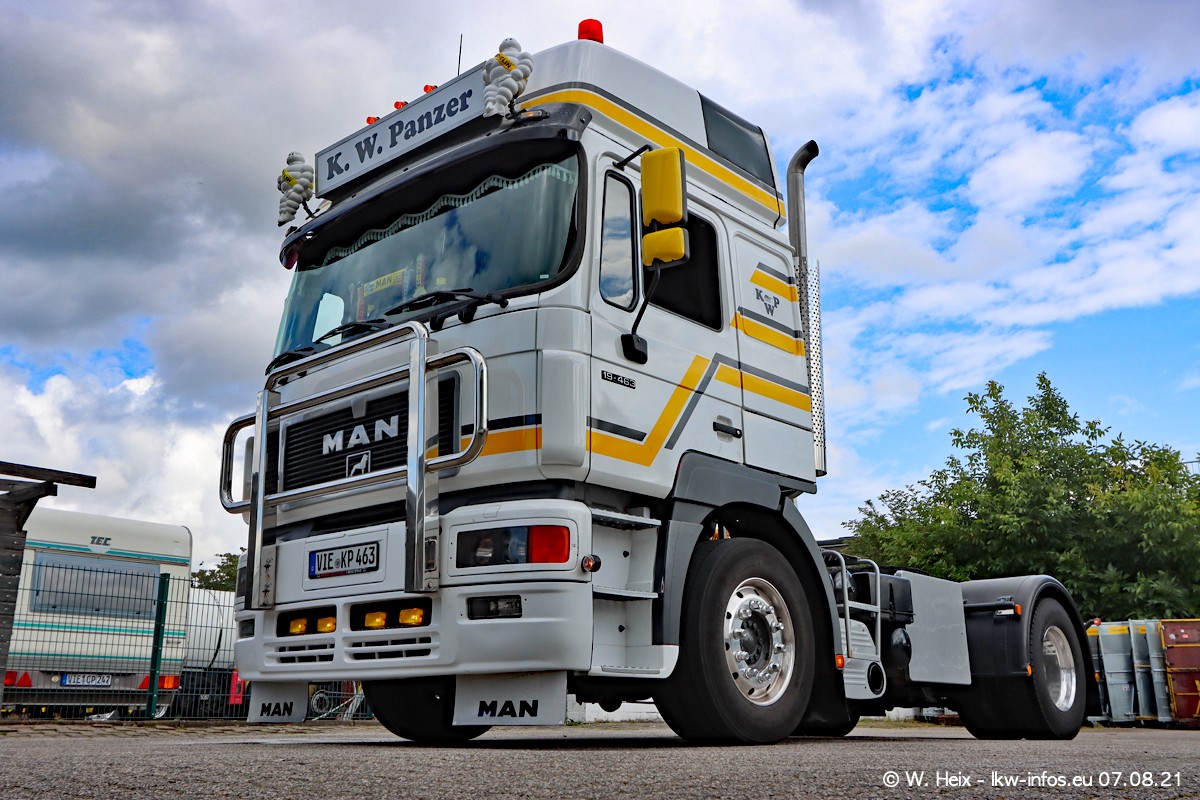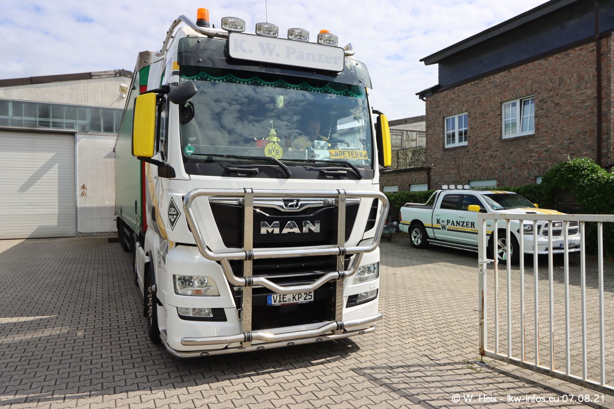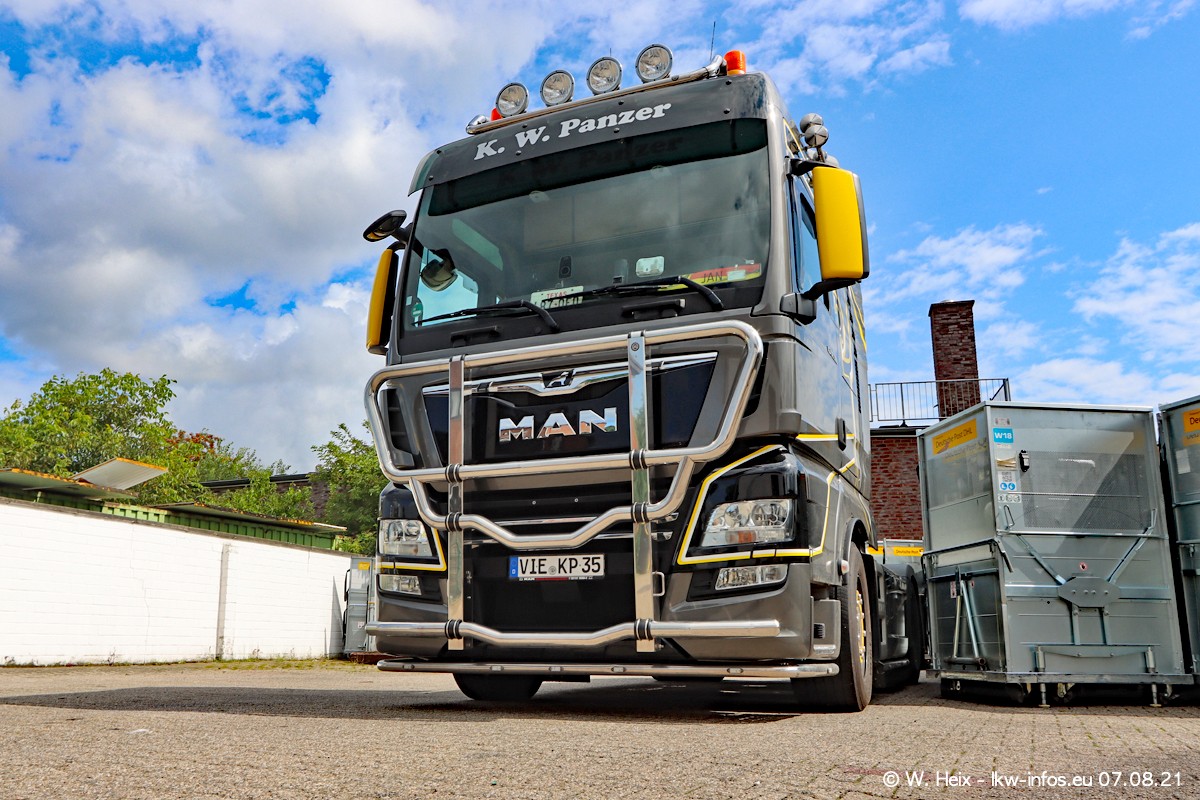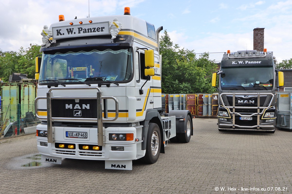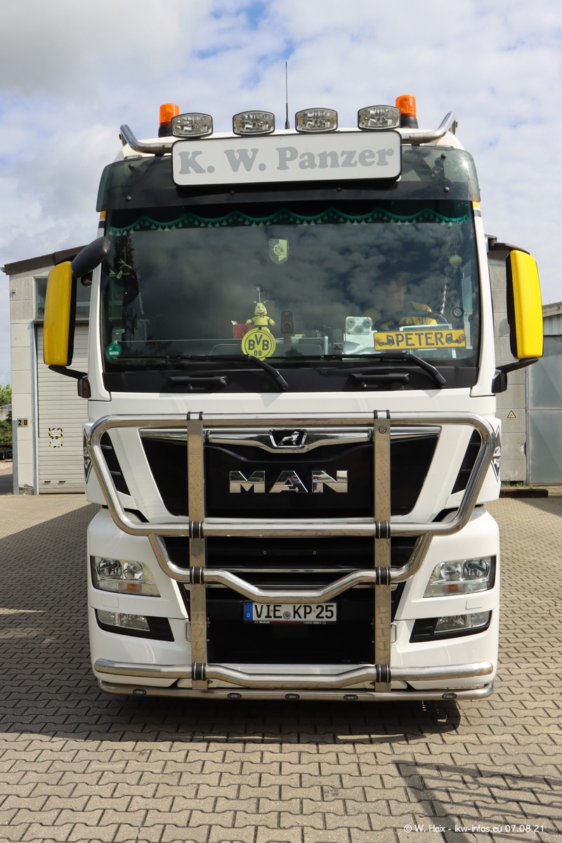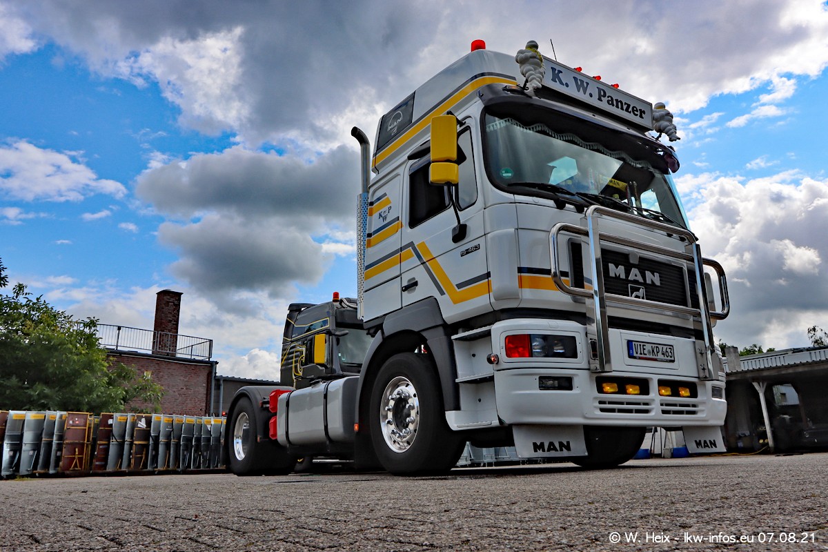 Inzwischen hat die Firma K.W. Panzer vier neue MAN TGX im Fuhrpark. Den ersten hatte ich im November 2020 in Mönchengladbach fotografiert, zwei weitere konnte ich beim heutigen Besuch inb WIllich fotografieren. Der TGX GX 18.640 ist knapp zwei Monate alt und noch nicht fertig, sieht aber schon gut aus. Eine weitere Überraschung war für mich der MAN F2000 19.463. Diese Zugmaschine wurde vor einiger Zeit gebraucht gekauft und komplett neu aufgebaut und im "Panzer-Design" gestaltet. Baujahr 1998 und auf dem Weg vom Youngtimer zum Oldtimer.... Hobby vom Chef und auch im Einsatz für Rangierarbeiten bei DHL in Krefeld. Die Firma Panzer fährt überwiegend für DHL. Danke an Herrn Panzer und Herrn Dohmen, die mir die heutigen Aufnahmen ermöglicht haben.