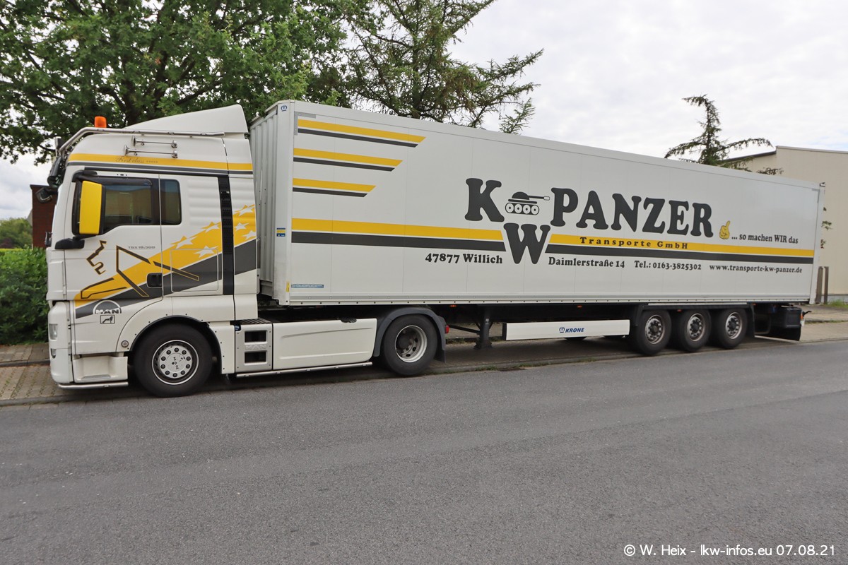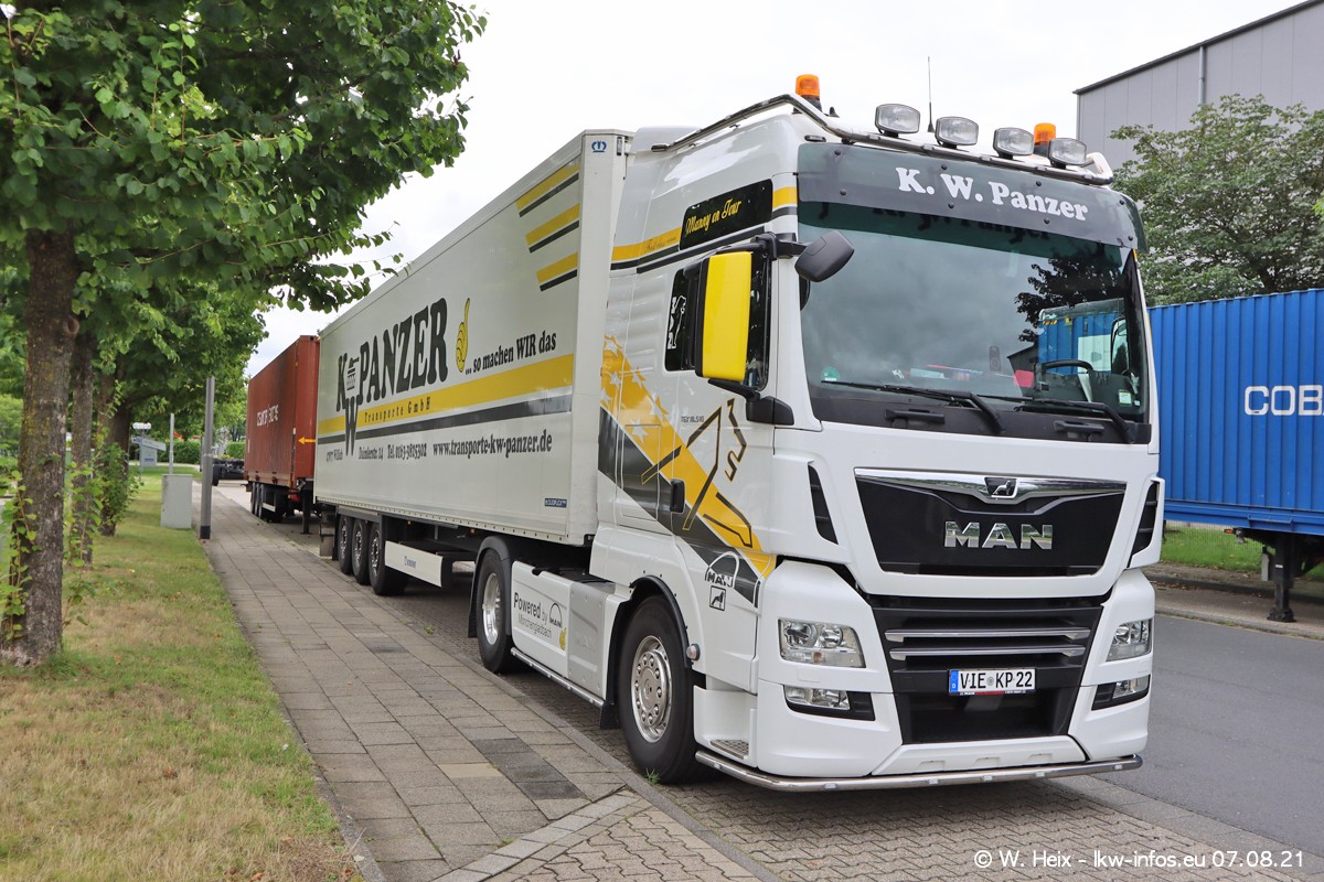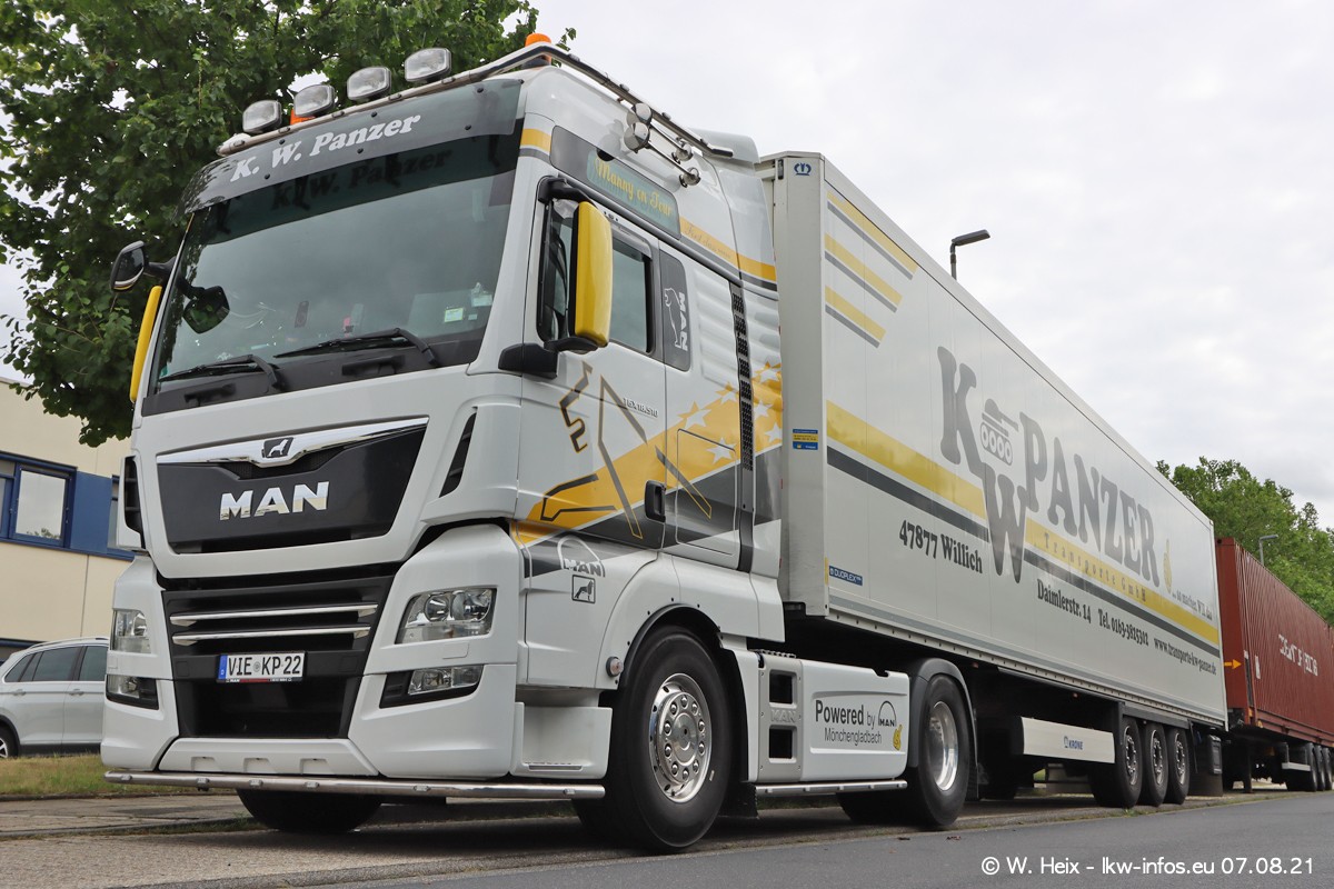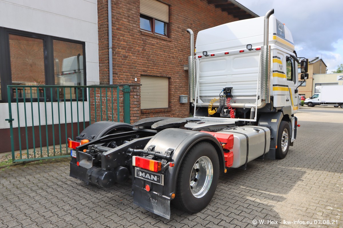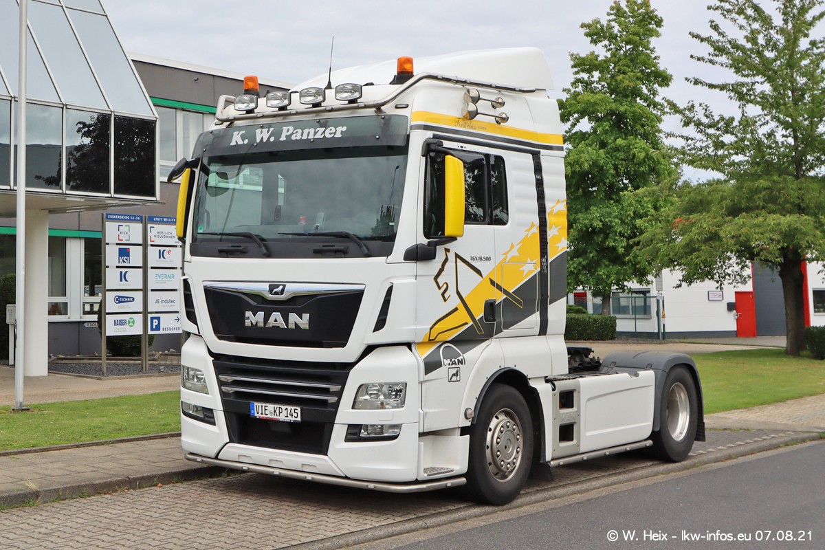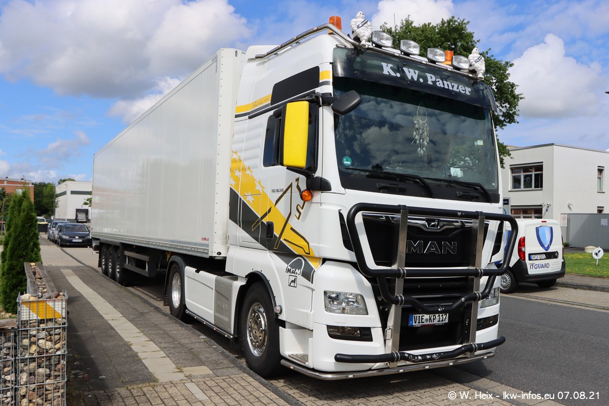 Inzwischen hat die Firma K.W. Panzer vier neue MAN TGX im Fuhrpark. Den ersten hatte ich im November 2020 in Mönchengladbach fotografiert, zwei weitere konnte ich beim heutigen Besuch inb WIllich fotografieren. Der TGX GX 18.640 ist knapp zwei Monate alt und noch nicht fertig, sieht aber schon gut aus. Eine weitere Überraschung war für mich der MAN F2000 19.463. Diese Zugmaschine wurde vor einiger Zeit gebraucht gekauft und komplett neu aufgebaut und im "Panzer-Design" gestaltet. Baujahr 1998 und auf dem Weg vom Youngtimer zum Oldtimer.... Hobby vom Chef und auch im Einsatz für Rangierarbeiten bei DHL in Krefeld. Die Firma Panzer fährt überwiegend für DHL. Danke an Herrn Panzer und Herrn Dohmen, die mir die heutigen Aufnahmen ermöglicht haben.