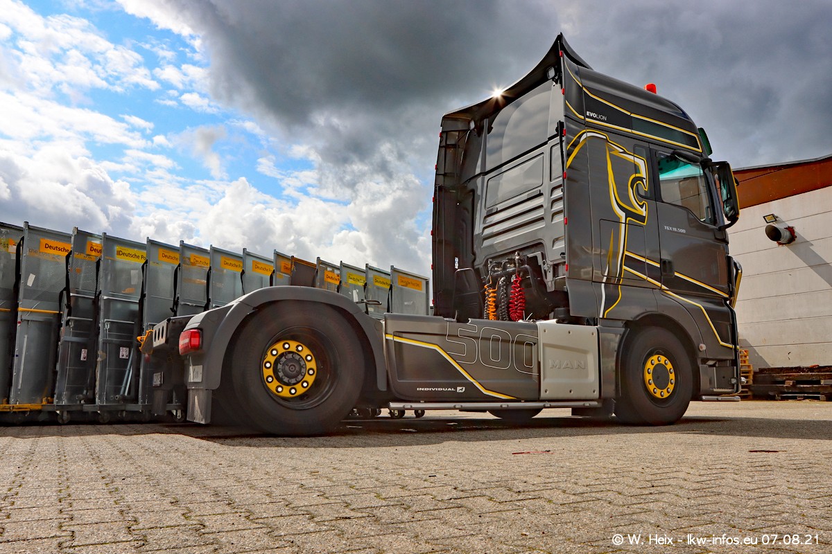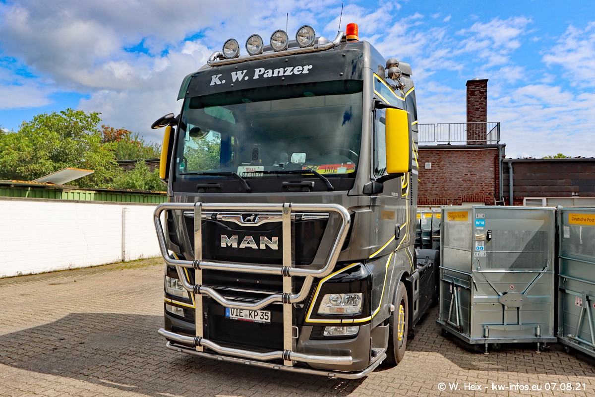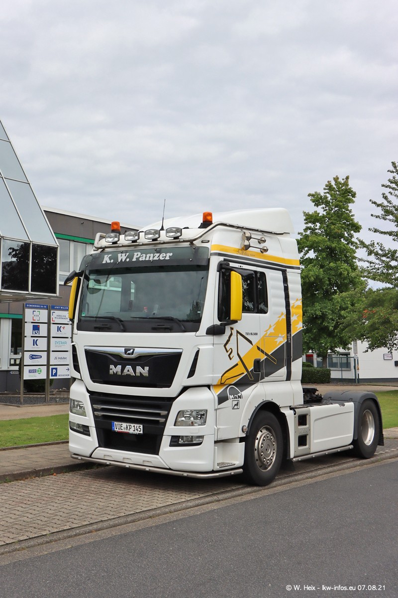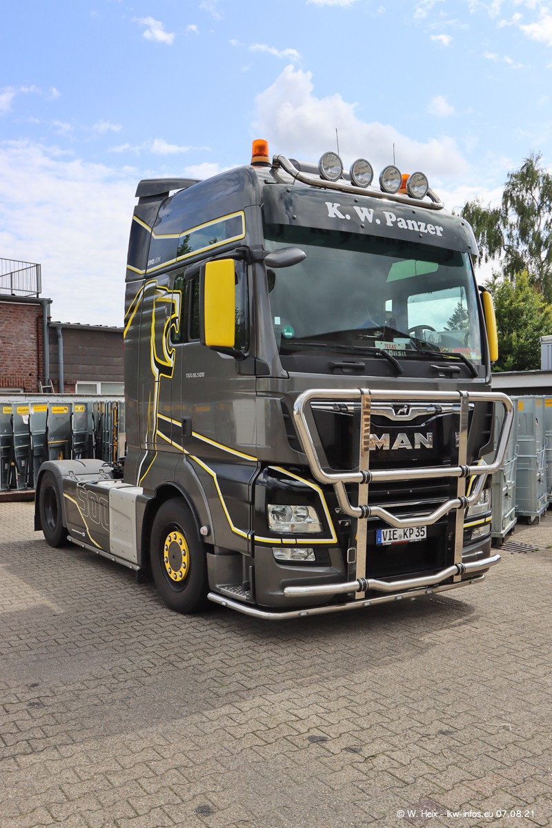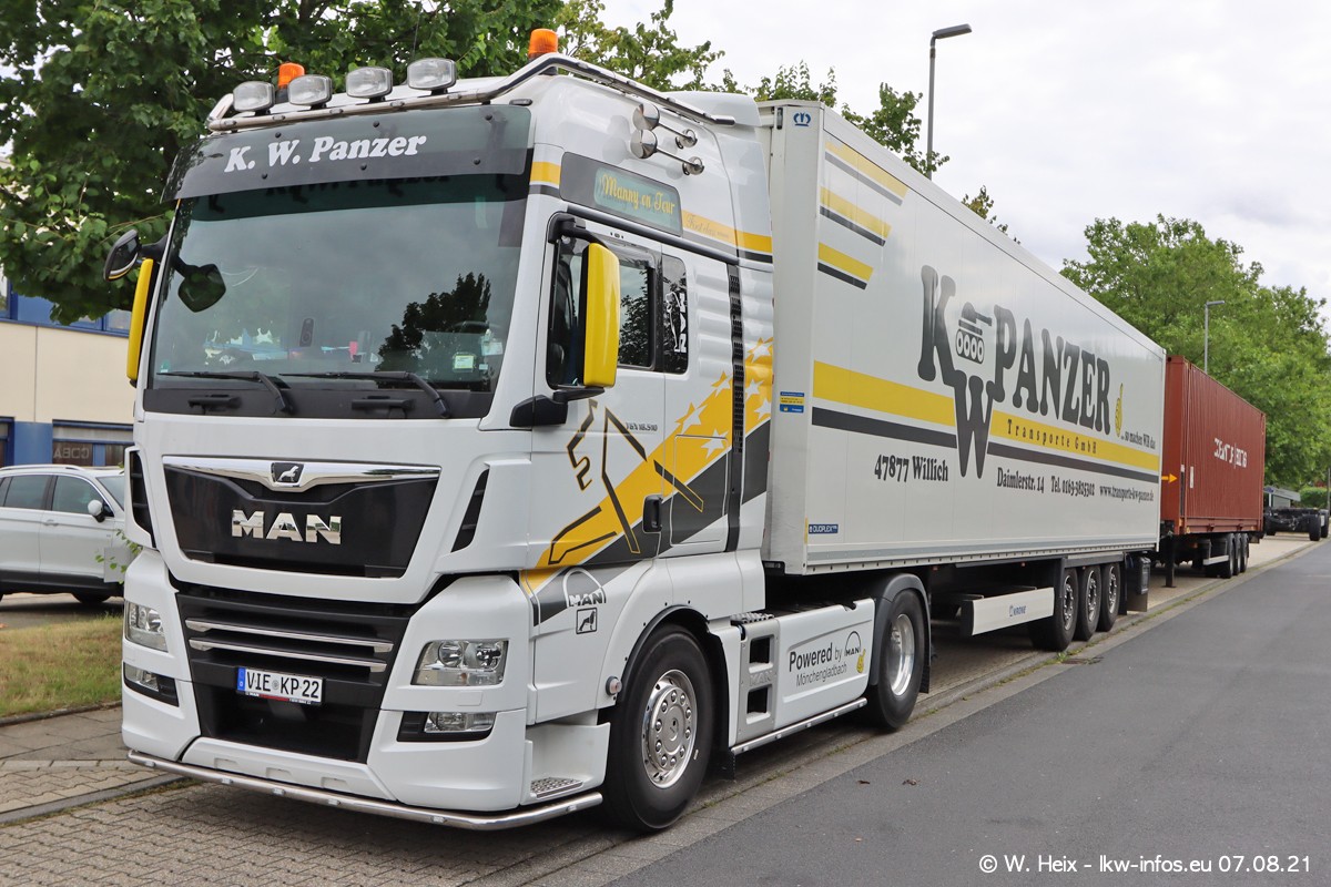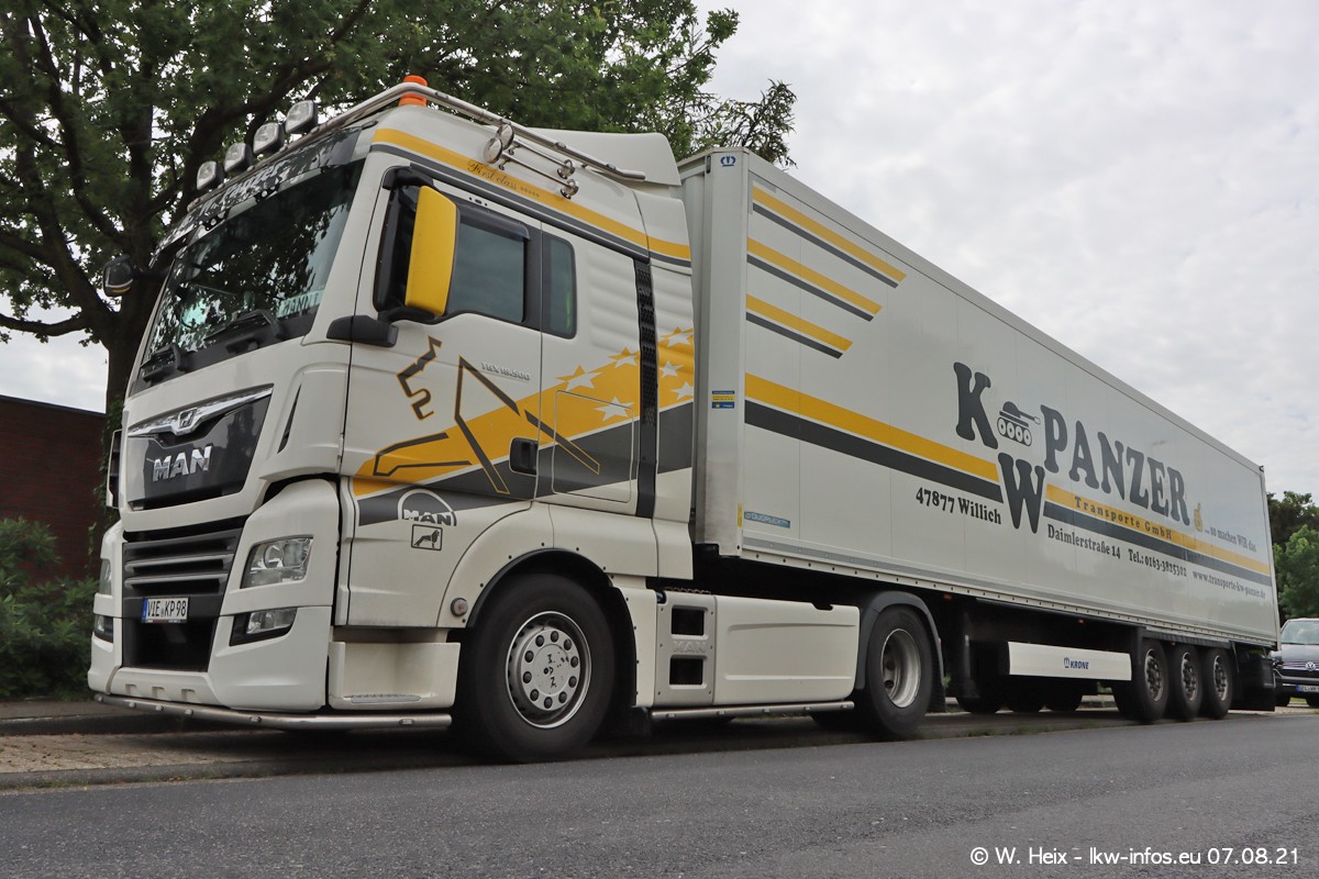 Inzwischen hat die Firma K.W. Panzer vier neue MAN TGX im Fuhrpark. Den ersten hatte ich im November 2020 in Mönchengladbach fotografiert, zwei weitere konnte ich beim heutigen Besuch inb WIllich fotografieren. Der TGX GX 18.640 ist knapp zwei Monate alt und noch nicht fertig, sieht aber schon gut aus. Eine weitere Überraschung war für mich der MAN F2000 19.463. Diese Zugmaschine wurde vor einiger Zeit gebraucht gekauft und komplett neu aufgebaut und im "Panzer-Design" gestaltet. Baujahr 1998 und auf dem Weg vom Youngtimer zum Oldtimer.... Hobby vom Chef und auch im Einsatz für Rangierarbeiten bei DHL in Krefeld. Die Firma Panzer fährt überwiegend für DHL. Danke an Herrn Panzer und Herrn Dohmen, die mir die heutigen Aufnahmen ermöglicht haben.