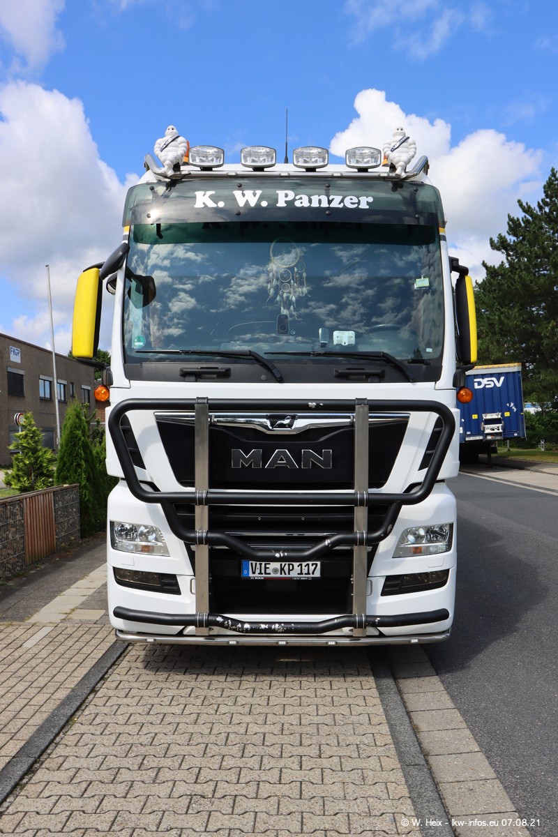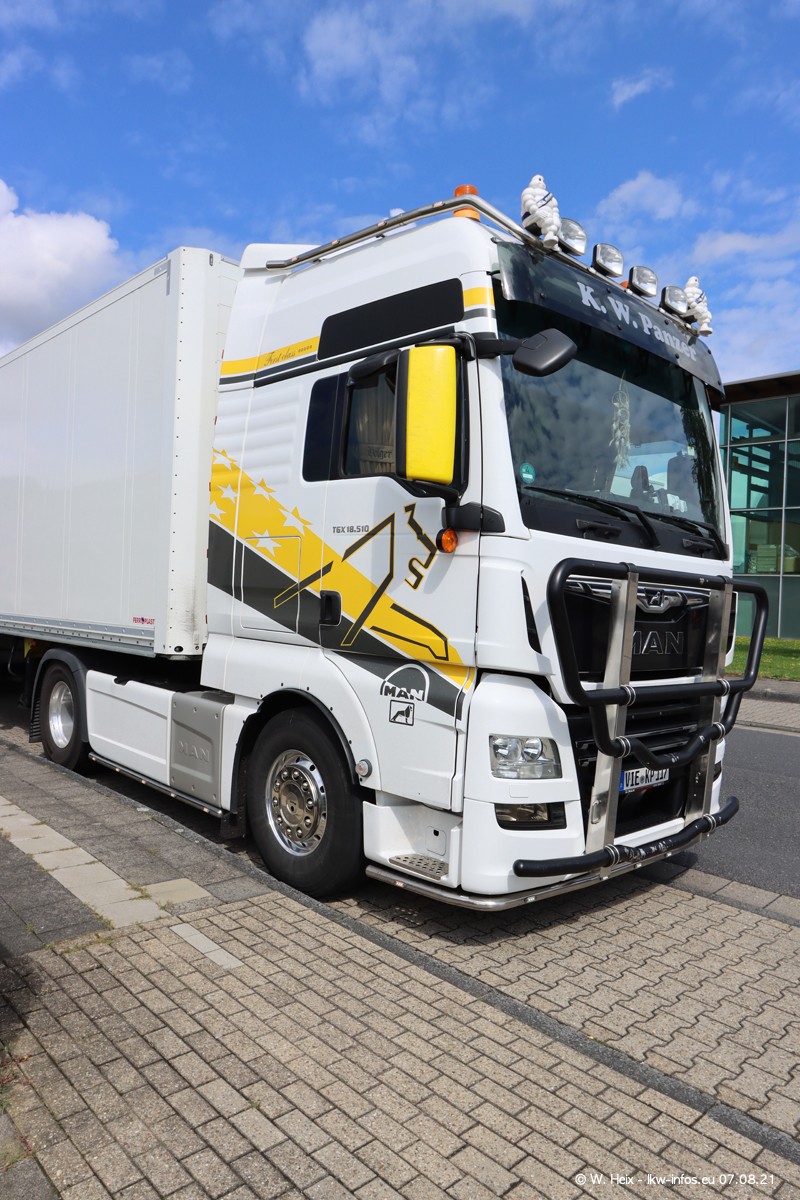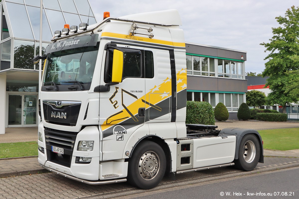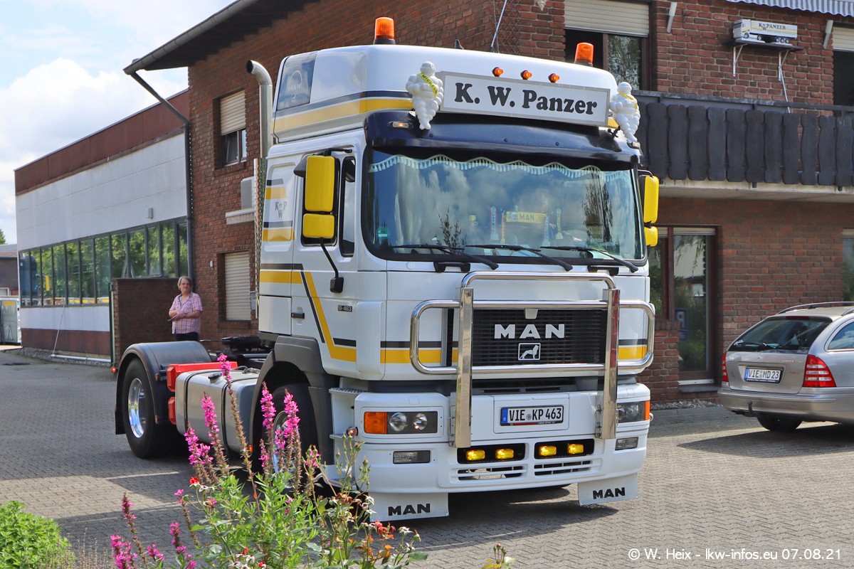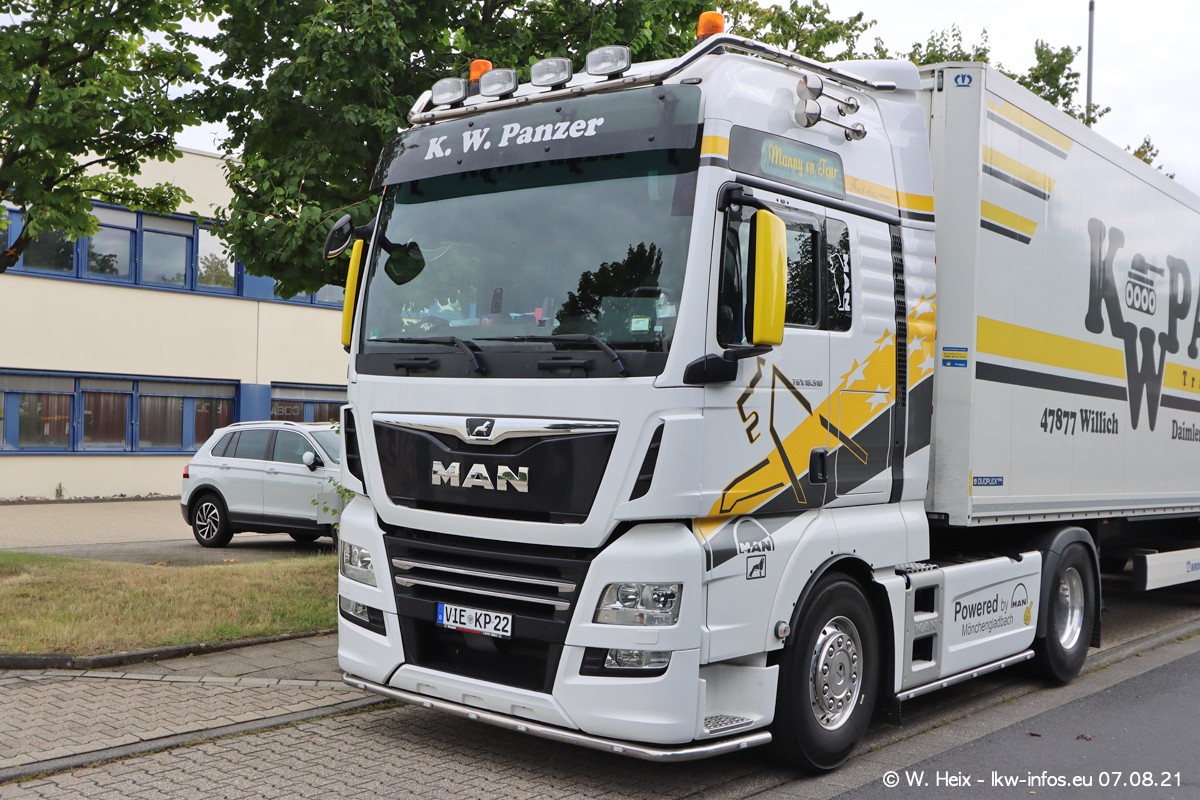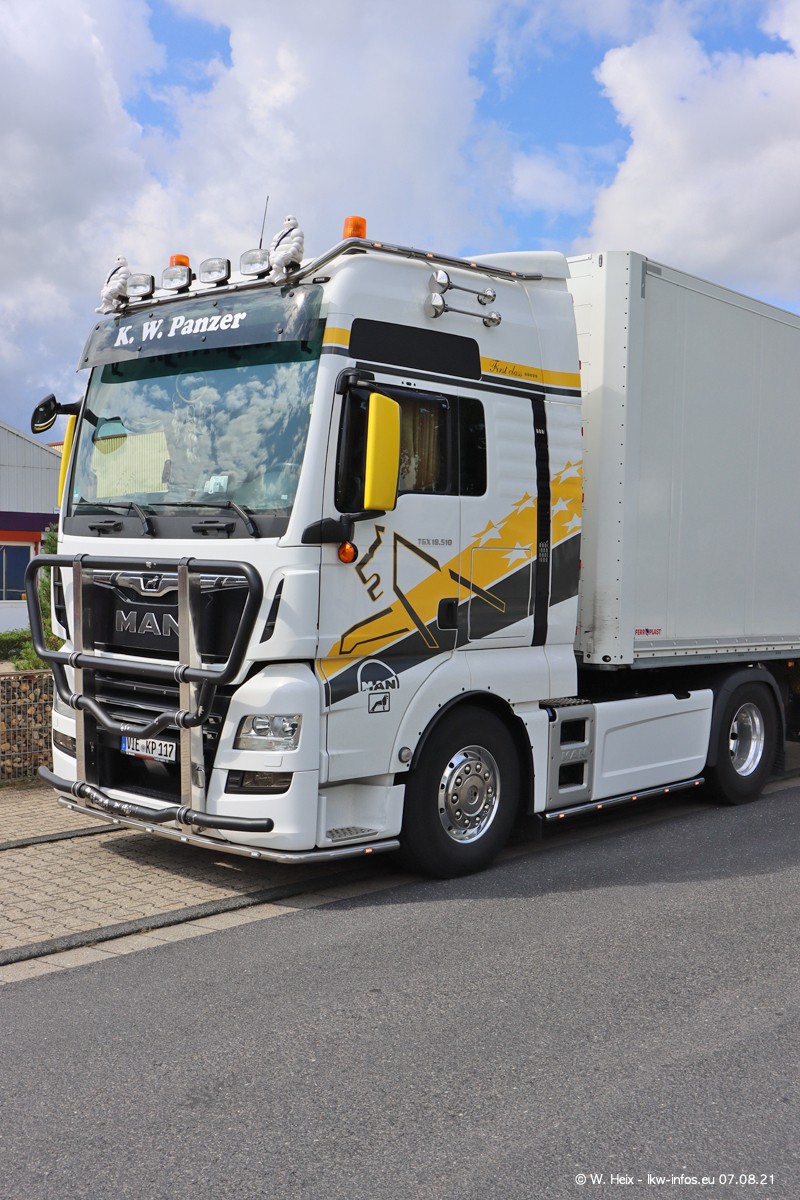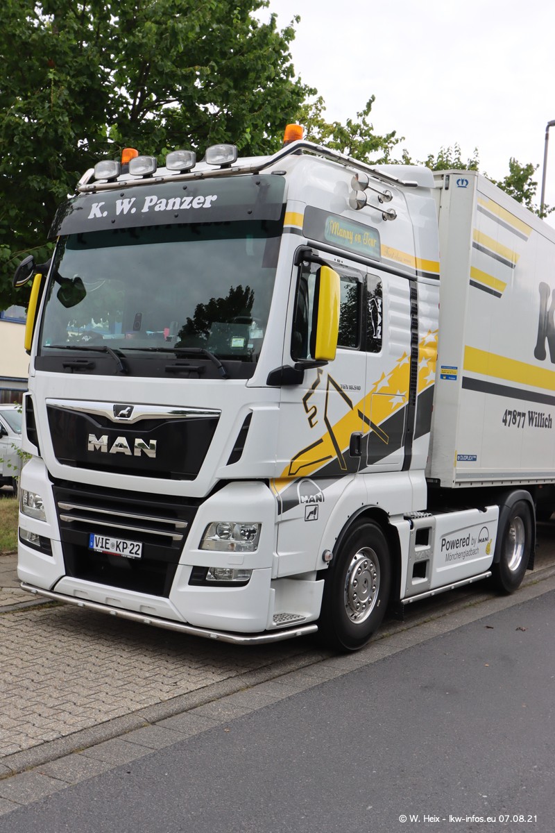 Inzwischen hat die Firma K.W. Panzer vier neue MAN TGX im Fuhrpark. Den ersten hatte ich im November 2020 in Mönchengladbach fotografiert, zwei weitere konnte ich beim heutigen Besuch inb WIllich fotografieren. Der TGX GX 18.640 ist knapp zwei Monate alt und noch nicht fertig, sieht aber schon gut aus. Eine weitere Überraschung war für mich der MAN F2000 19.463. Diese Zugmaschine wurde vor einiger Zeit gebraucht gekauft und komplett neu aufgebaut und im "Panzer-Design" gestaltet. Baujahr 1998 und auf dem Weg vom Youngtimer zum Oldtimer.... Hobby vom Chef und auch im Einsatz für Rangierarbeiten bei DHL in Krefeld. Die Firma Panzer fährt überwiegend für DHL. Danke an Herrn Panzer und Herrn Dohmen, die mir die heutigen Aufnahmen ermöglicht haben.