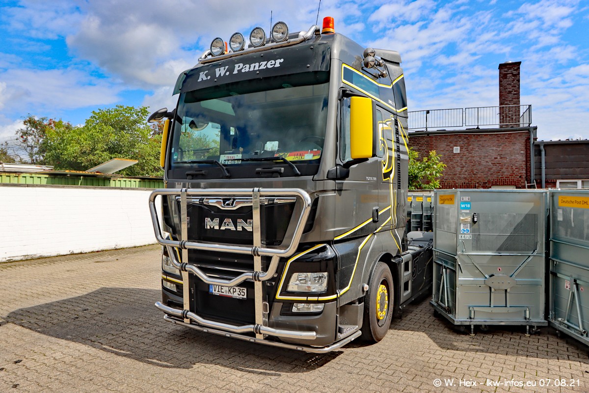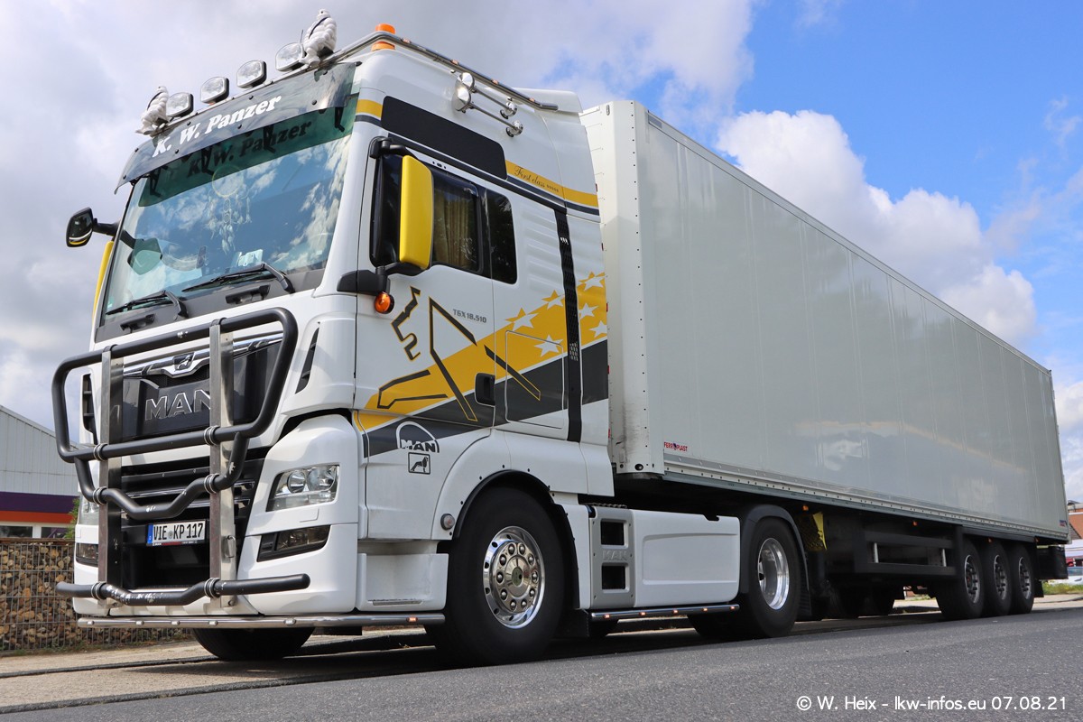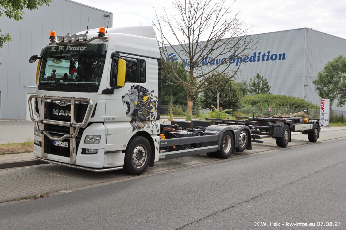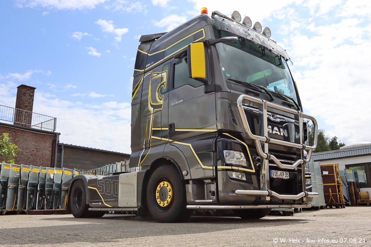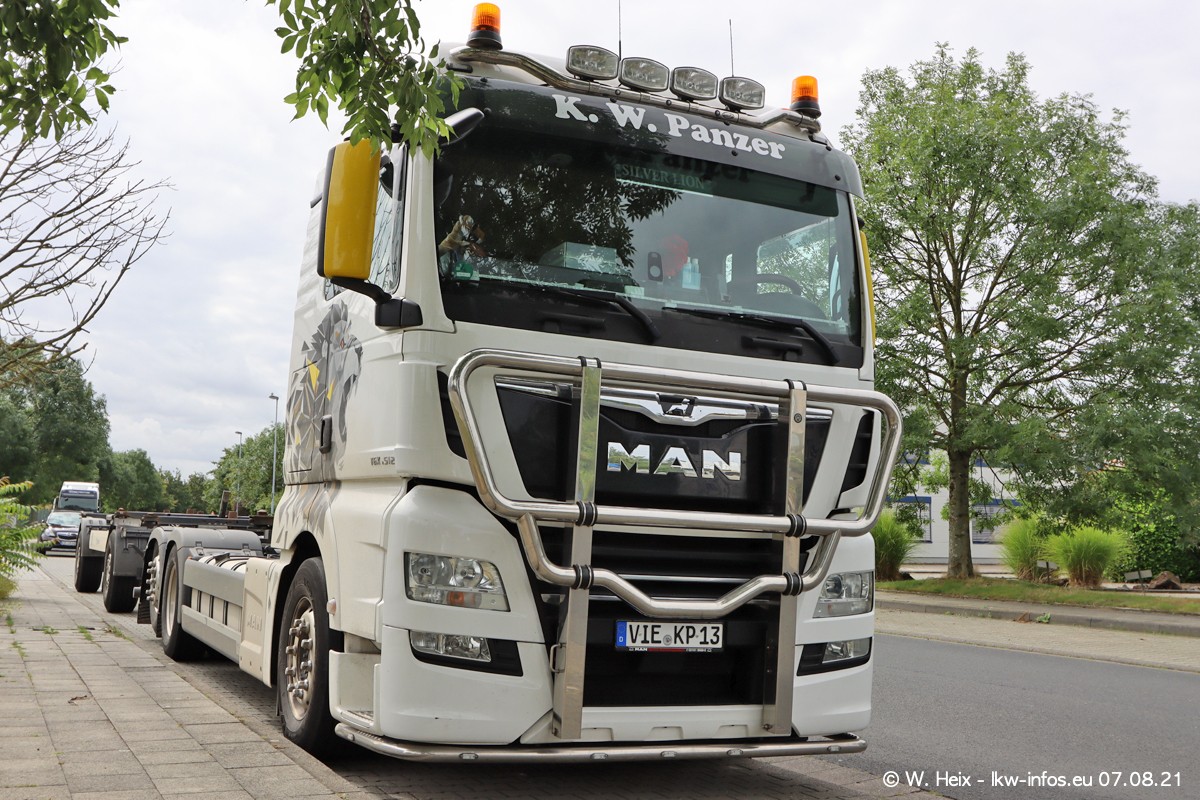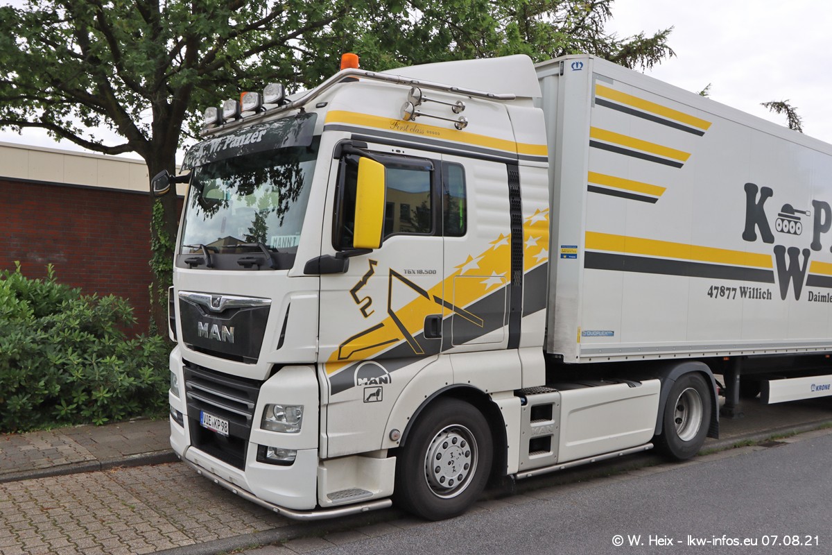 Inzwischen hat die Firma K.W. Panzer vier neue MAN TGX im Fuhrpark. Den ersten hatte ich im November 2020 in Mönchengladbach fotografiert, zwei weitere konnte ich beim heutigen Besuch inb WIllich fotografieren. Der TGX GX 18.640 ist knapp zwei Monate alt und noch nicht fertig, sieht aber schon gut aus. Eine weitere Überraschung war für mich der MAN F2000 19.463. Diese Zugmaschine wurde vor einiger Zeit gebraucht gekauft und komplett neu aufgebaut und im "Panzer-Design" gestaltet. Baujahr 1998 und auf dem Weg vom Youngtimer zum Oldtimer.... Hobby vom Chef und auch im Einsatz für Rangierarbeiten bei DHL in Krefeld. Die Firma Panzer fährt überwiegend für DHL. Danke an Herrn Panzer und Herrn Dohmen, die mir die heutigen Aufnahmen ermöglicht haben.