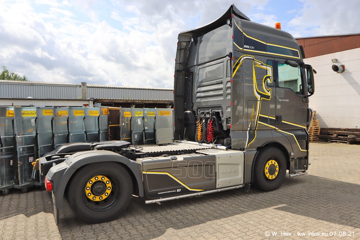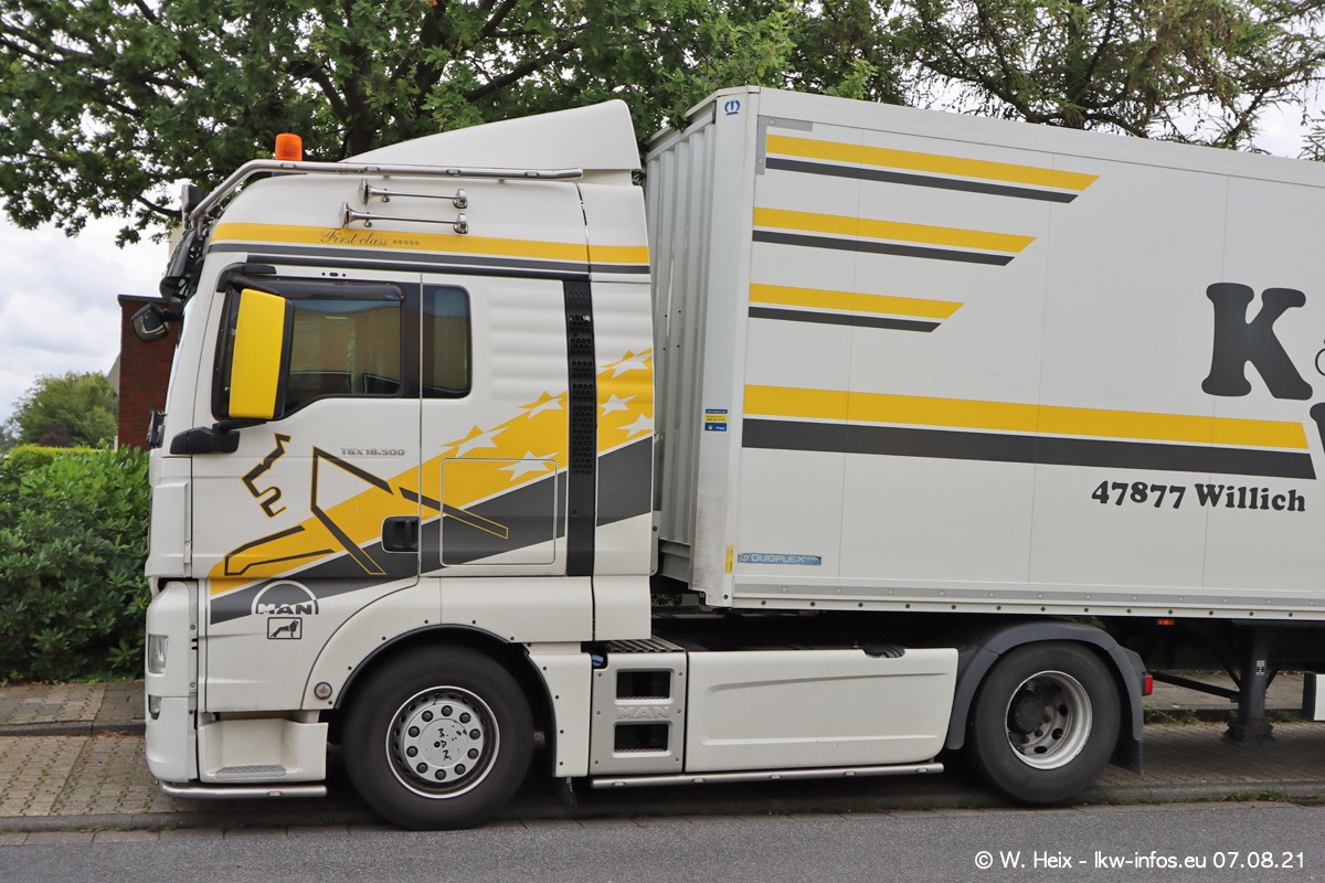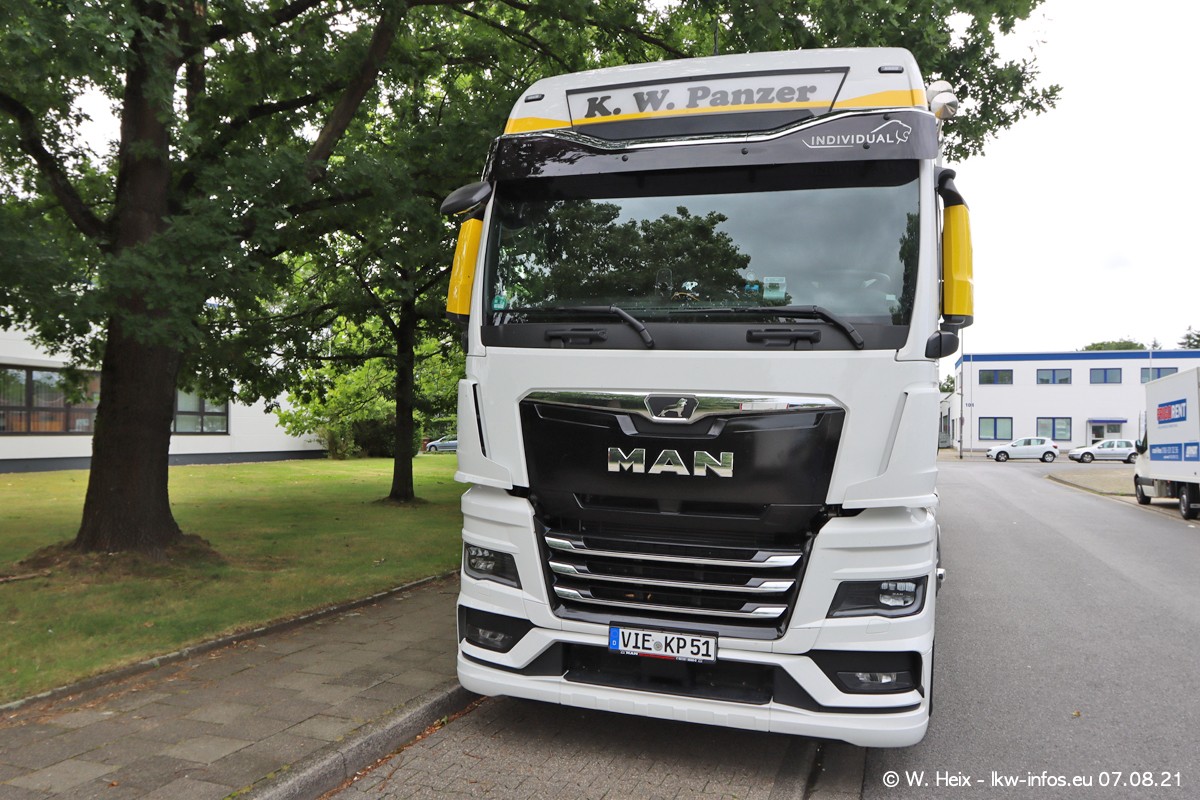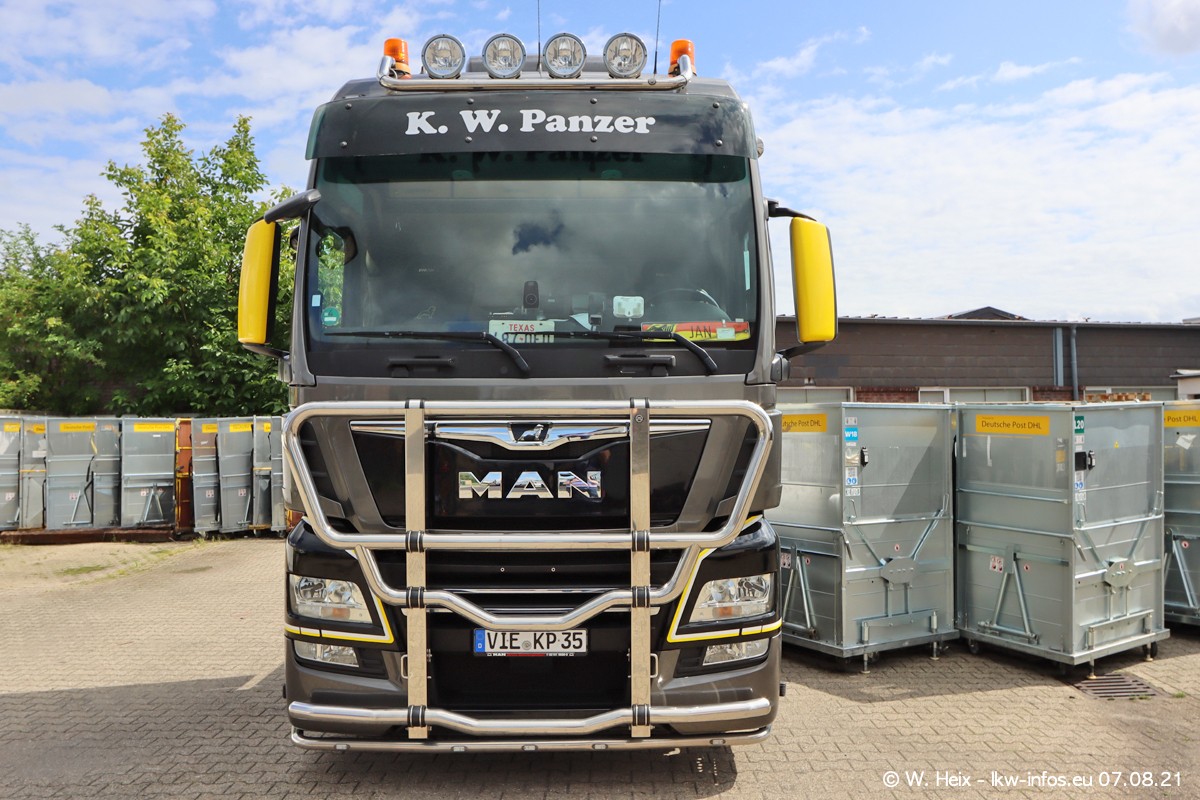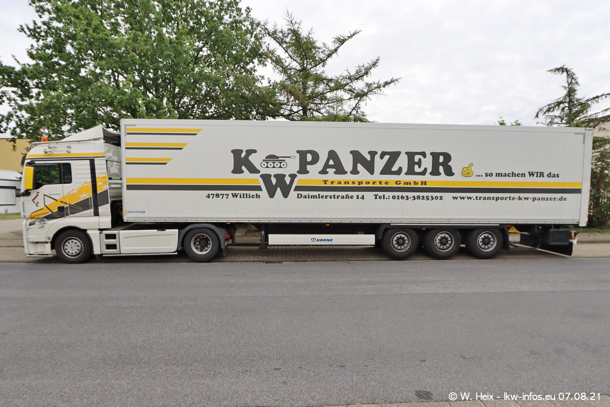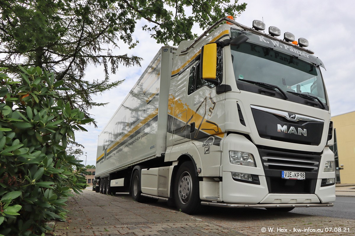 Inzwischen hat die Firma K.W. Panzer vier neue MAN TGX im Fuhrpark. Den ersten hatte ich im November 2020 in Mönchengladbach fotografiert, zwei weitere konnte ich beim heutigen Besuch inb WIllich fotografieren. Der TGX GX 18.640 ist knapp zwei Monate alt und noch nicht fertig, sieht aber schon gut aus. Eine weitere Überraschung war für mich der MAN F2000 19.463. Diese Zugmaschine wurde vor einiger Zeit gebraucht gekauft und komplett neu aufgebaut und im "Panzer-Design" gestaltet. Baujahr 1998 und auf dem Weg vom Youngtimer zum Oldtimer.... Hobby vom Chef und auch im Einsatz für Rangierarbeiten bei DHL in Krefeld. Die Firma Panzer fährt überwiegend für DHL. Danke an Herrn Panzer und Herrn Dohmen, die mir die heutigen Aufnahmen ermöglicht haben.