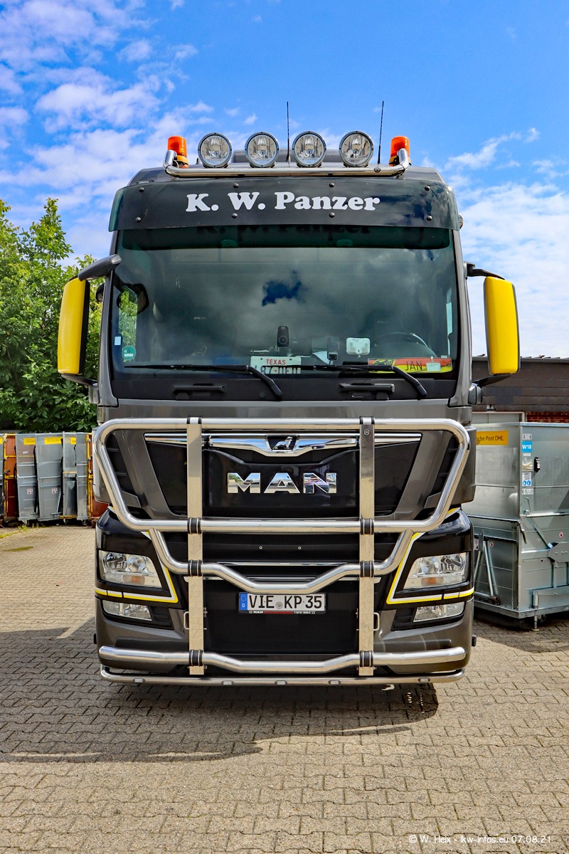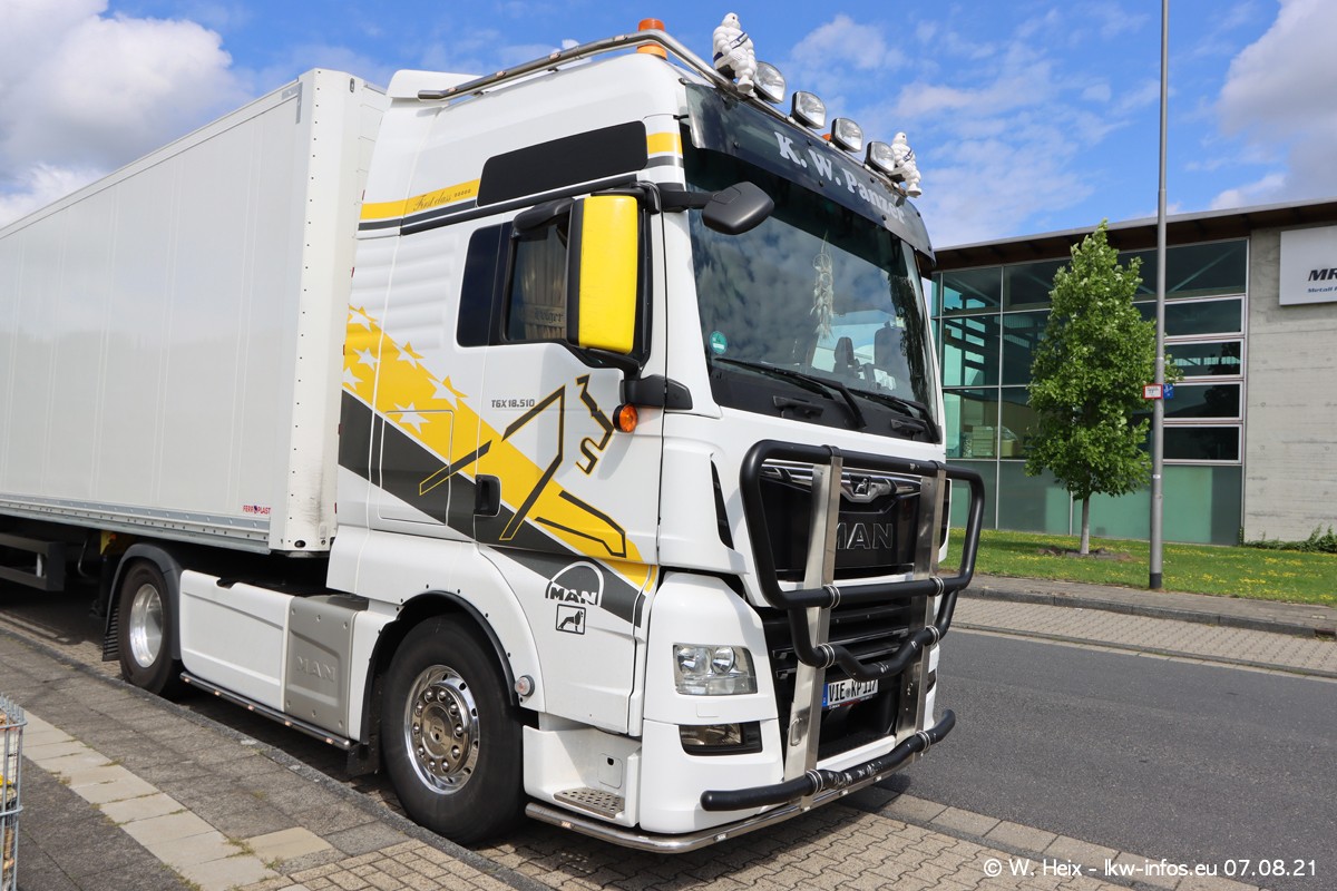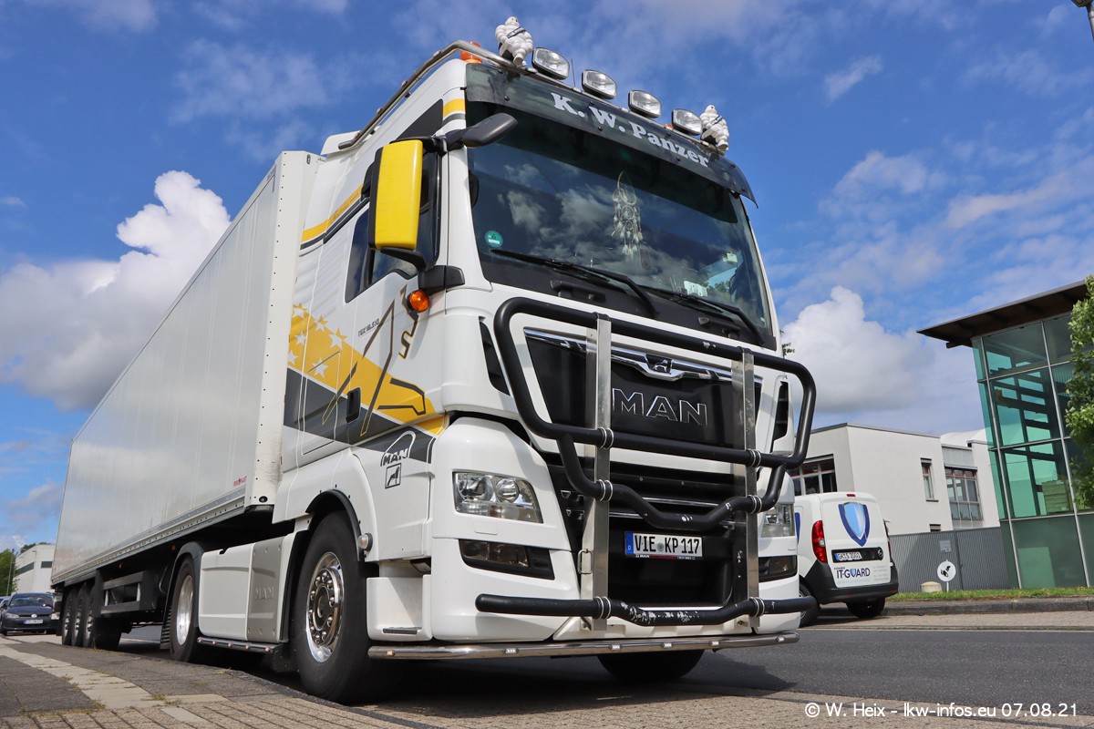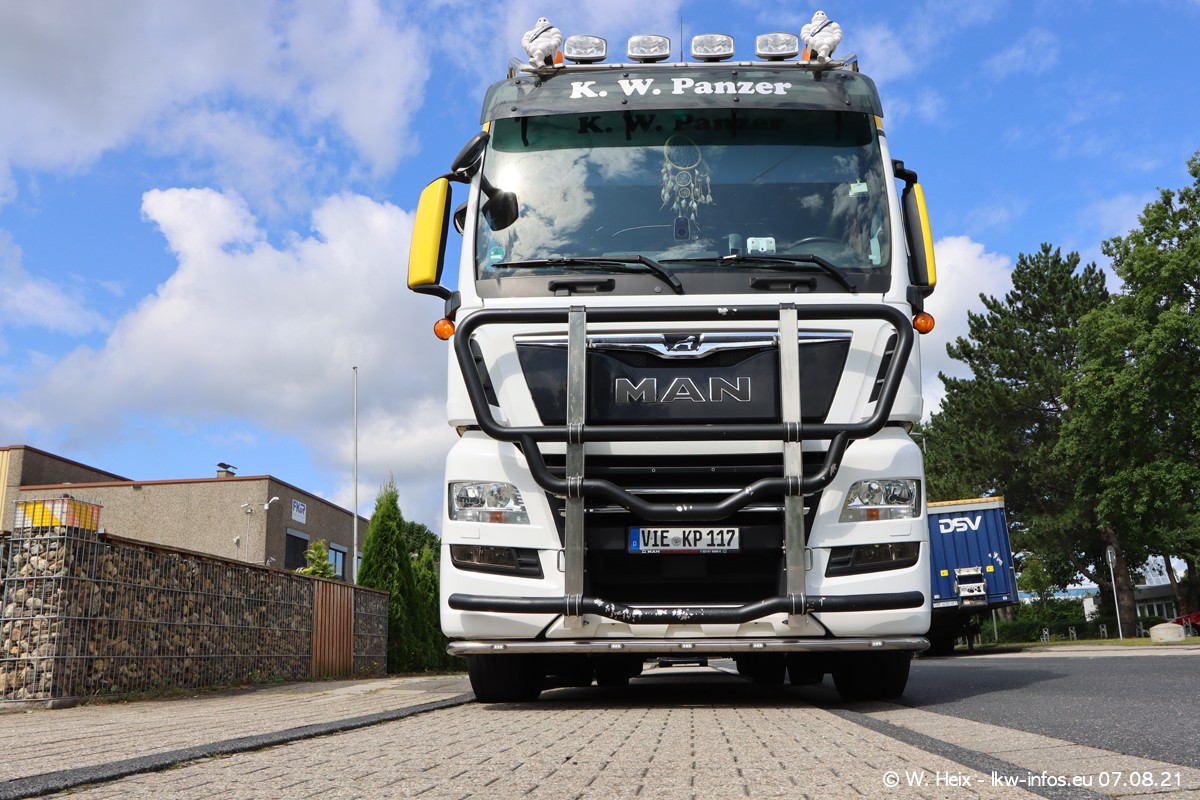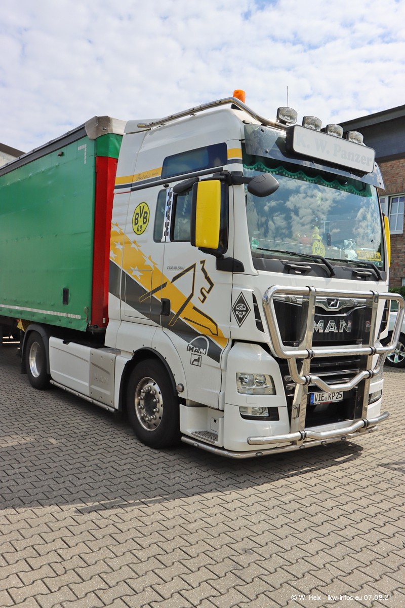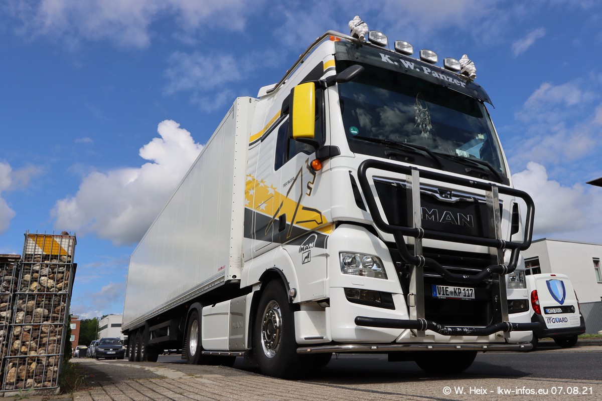 Inzwischen hat die Firma K.W. Panzer vier neue MAN TGX im Fuhrpark. Den ersten hatte ich im November 2020 in Mönchengladbach fotografiert, zwei weitere konnte ich beim heutigen Besuch inb WIllich fotografieren. Der TGX GX 18.640 ist knapp zwei Monate alt und noch nicht fertig, sieht aber schon gut aus. Eine weitere Überraschung war für mich der MAN F2000 19.463. Diese Zugmaschine wurde vor einiger Zeit gebraucht gekauft und komplett neu aufgebaut und im "Panzer-Design" gestaltet. Baujahr 1998 und auf dem Weg vom Youngtimer zum Oldtimer.... Hobby vom Chef und auch im Einsatz für Rangierarbeiten bei DHL in Krefeld. Die Firma Panzer fährt überwiegend für DHL. Danke an Herrn Panzer und Herrn Dohmen, die mir die heutigen Aufnahmen ermöglicht haben.