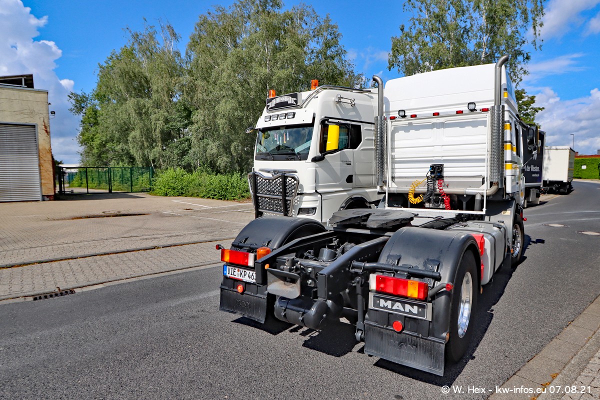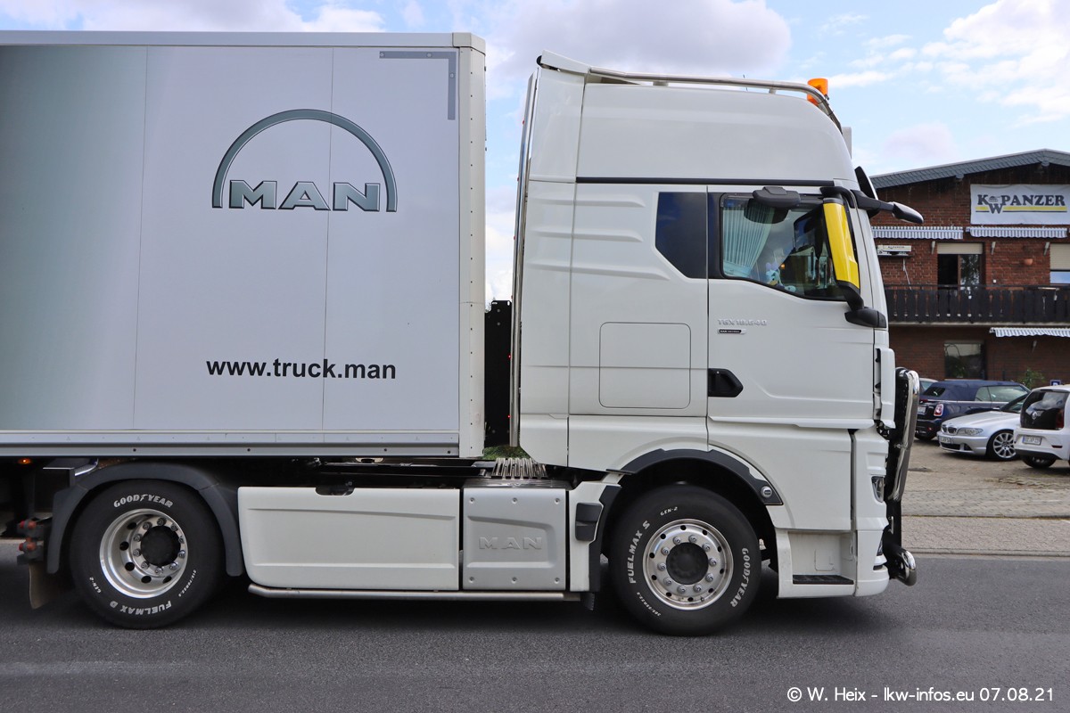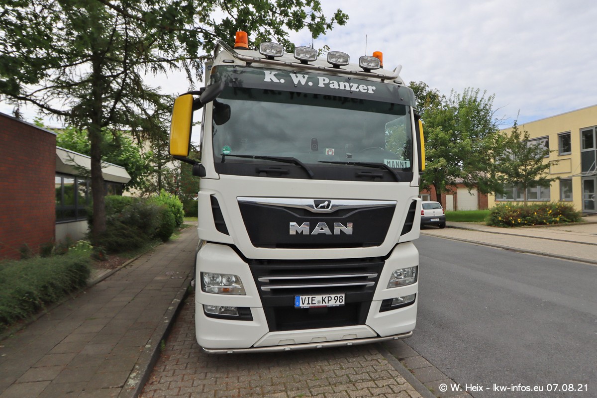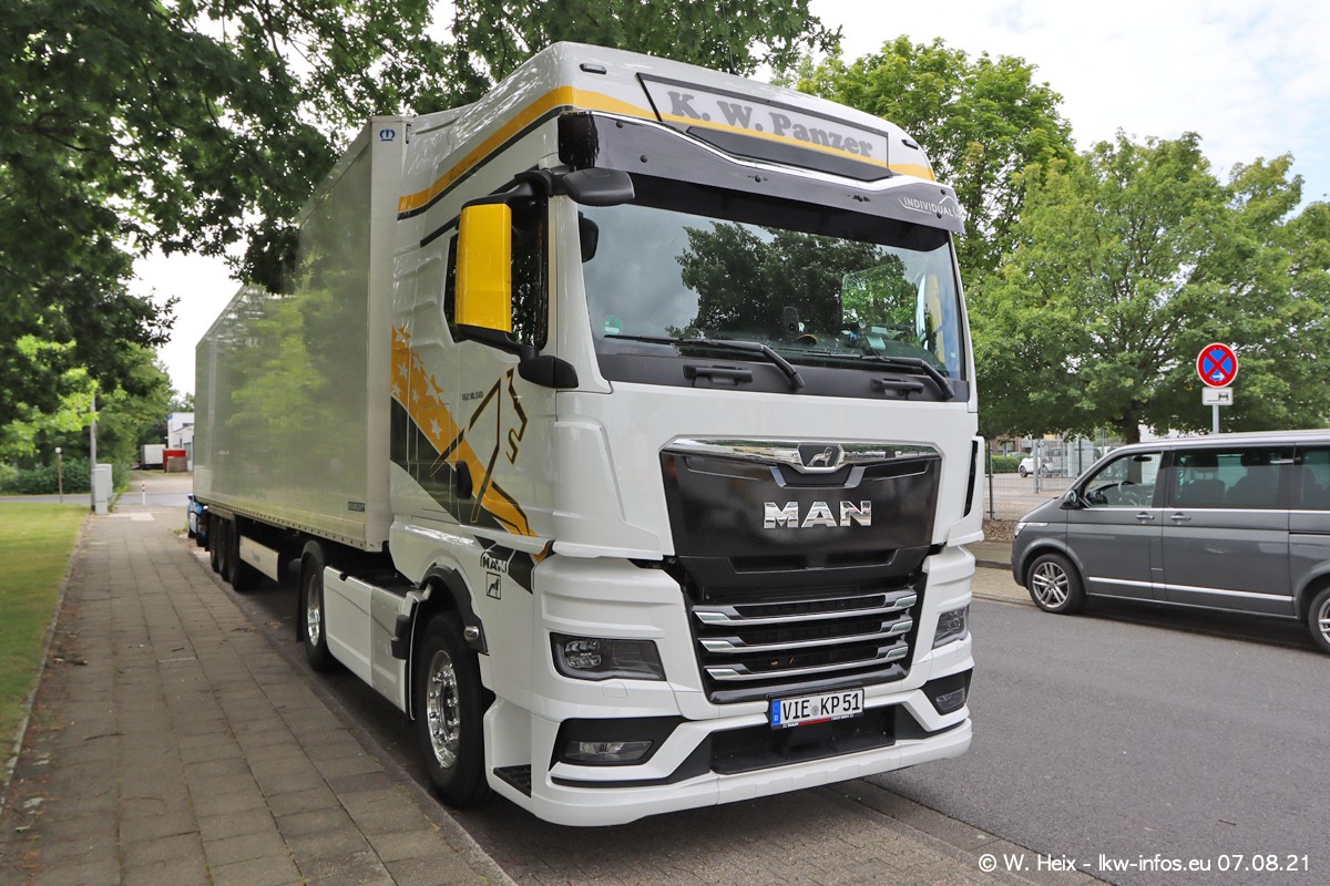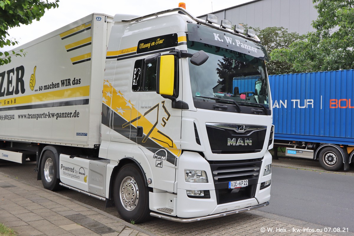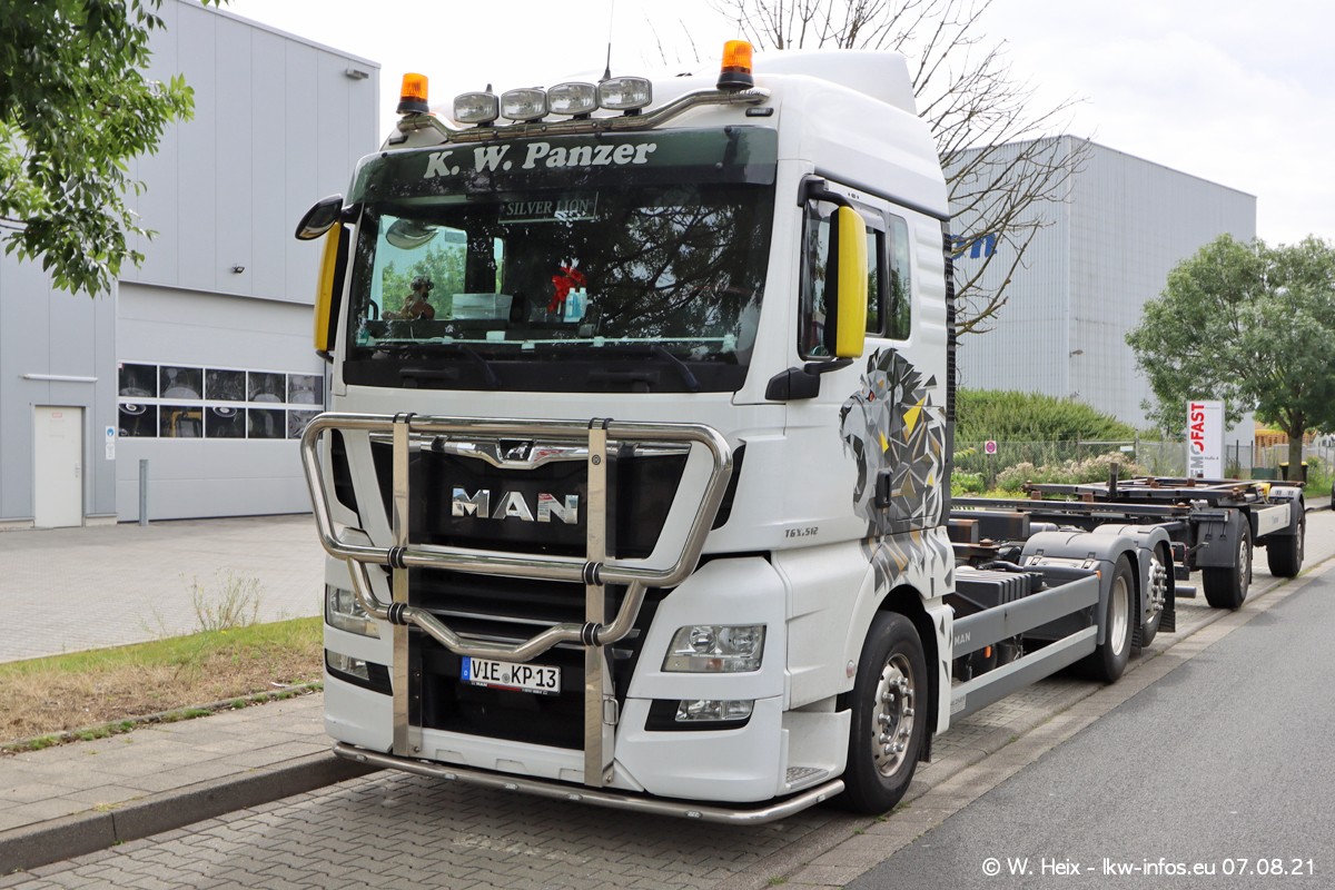 Inzwischen hat die Firma K.W. Panzer vier neue MAN TGX im Fuhrpark. Den ersten hatte ich im November 2020 in Mönchengladbach fotografiert, zwei weitere konnte ich beim heutigen Besuch inb WIllich fotografieren. Der TGX GX 18.640 ist knapp zwei Monate alt und noch nicht fertig, sieht aber schon gut aus. Eine weitere Überraschung war für mich der MAN F2000 19.463. Diese Zugmaschine wurde vor einiger Zeit gebraucht gekauft und komplett neu aufgebaut und im "Panzer-Design" gestaltet. Baujahr 1998 und auf dem Weg vom Youngtimer zum Oldtimer.... Hobby vom Chef und auch im Einsatz für Rangierarbeiten bei DHL in Krefeld. Die Firma Panzer fährt überwiegend für DHL. Danke an Herrn Panzer und Herrn Dohmen, die mir die heutigen Aufnahmen ermöglicht haben.