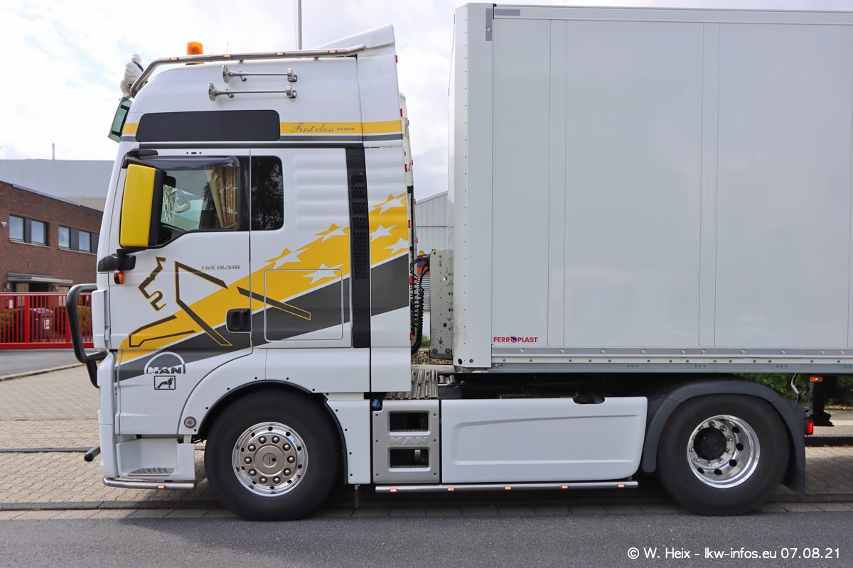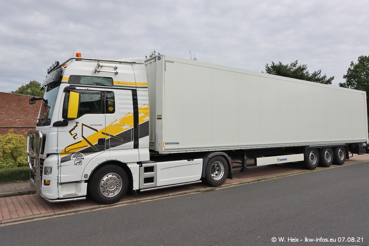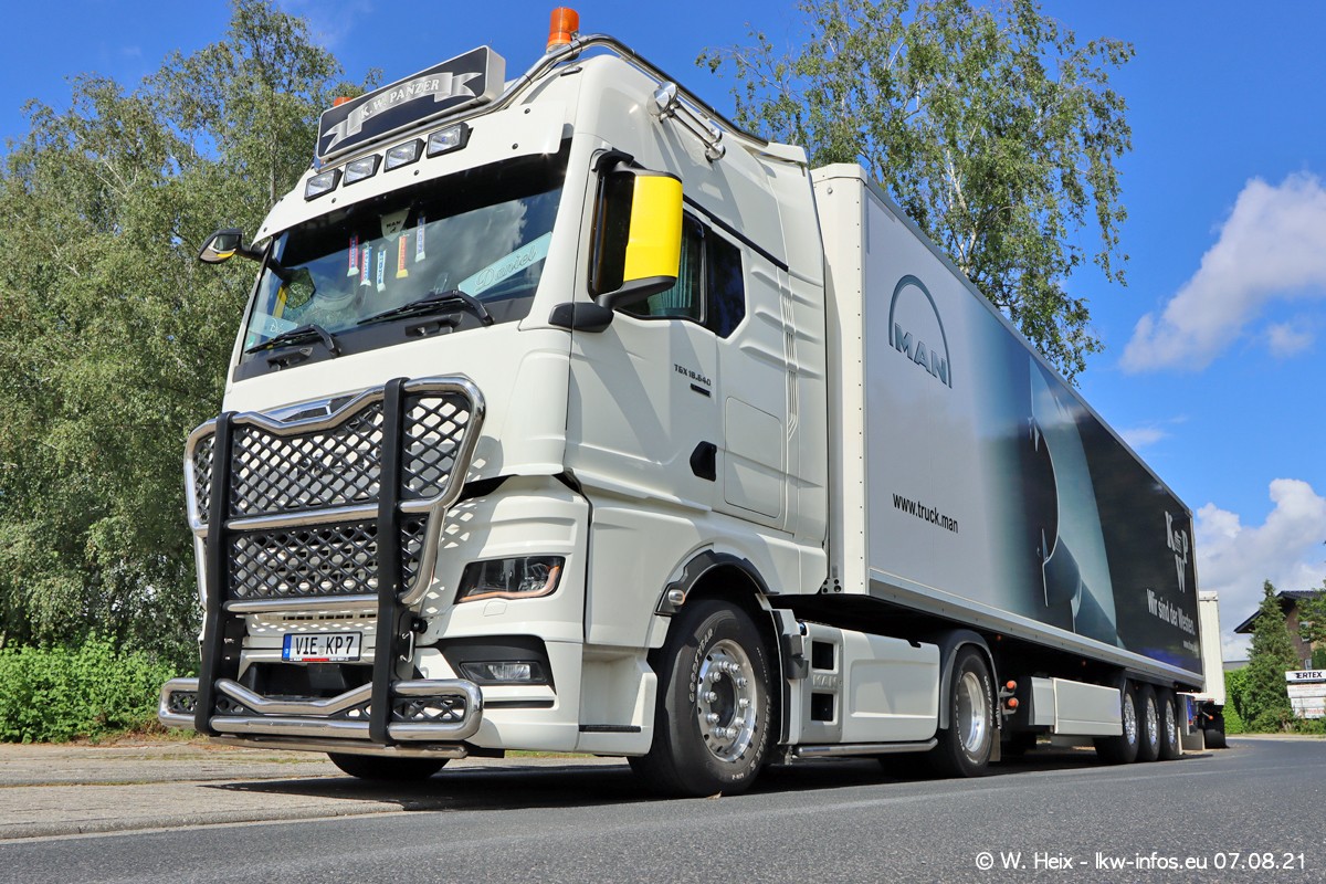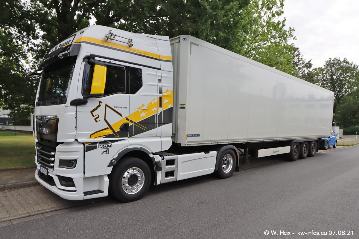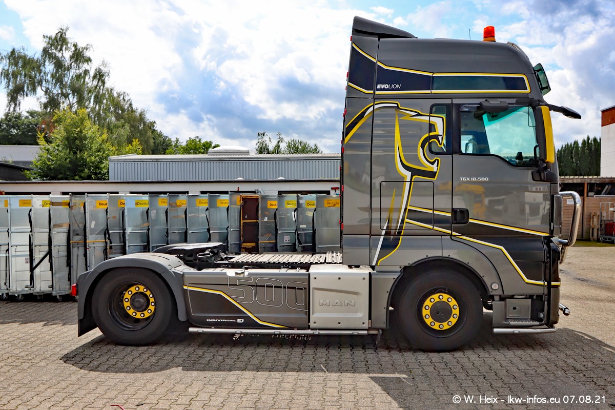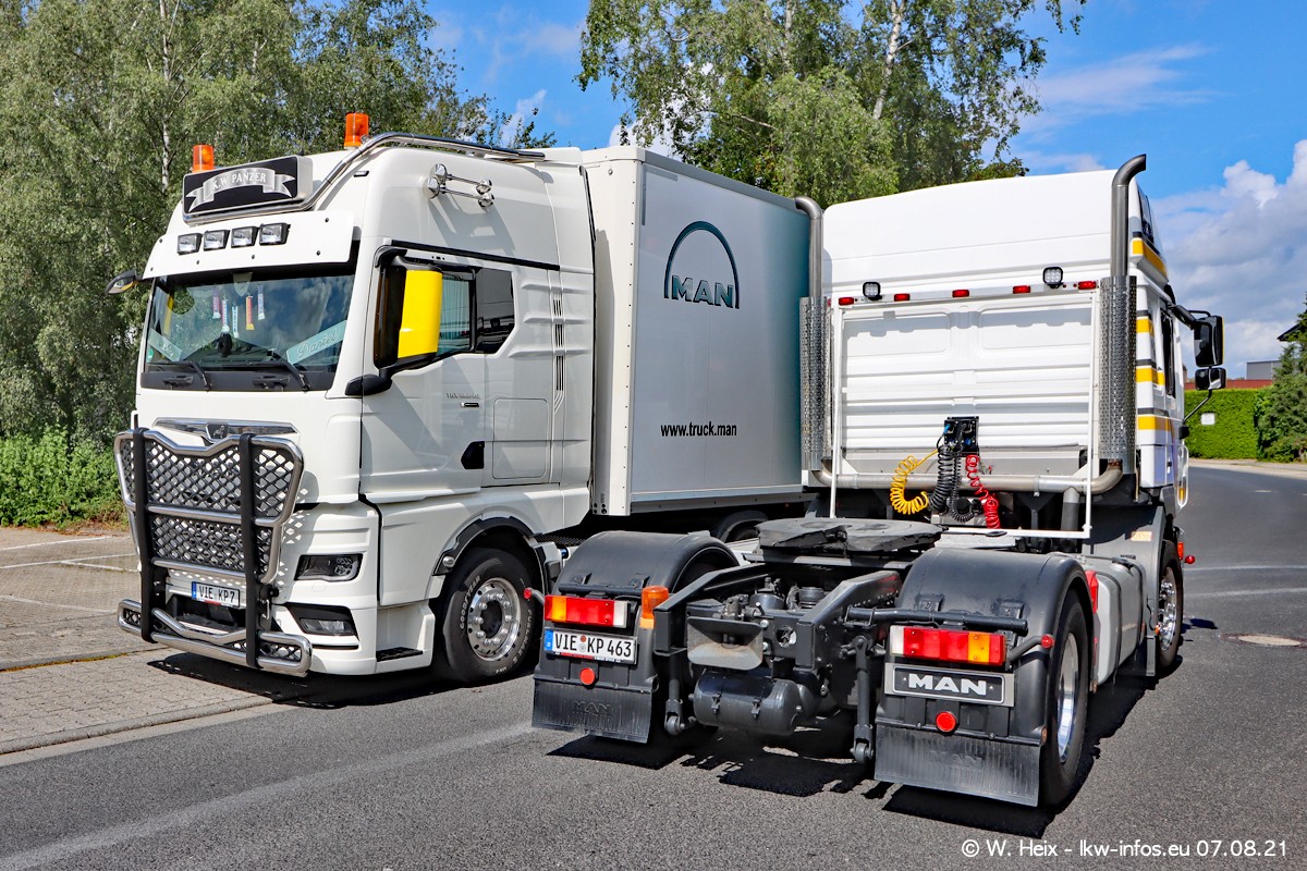 Inzwischen hat die Firma K.W. Panzer vier neue MAN TGX im Fuhrpark. Den ersten hatte ich im November 2020 in Mönchengladbach fotografiert, zwei weitere konnte ich beim heutigen Besuch inb WIllich fotografieren. Der TGX GX 18.640 ist knapp zwei Monate alt und noch nicht fertig, sieht aber schon gut aus. Eine weitere Überraschung war für mich der MAN F2000 19.463. Diese Zugmaschine wurde vor einiger Zeit gebraucht gekauft und komplett neu aufgebaut und im "Panzer-Design" gestaltet. Baujahr 1998 und auf dem Weg vom Youngtimer zum Oldtimer.... Hobby vom Chef und auch im Einsatz für Rangierarbeiten bei DHL in Krefeld. Die Firma Panzer fährt überwiegend für DHL. Danke an Herrn Panzer und Herrn Dohmen, die mir die heutigen Aufnahmen ermöglicht haben.