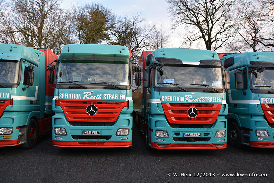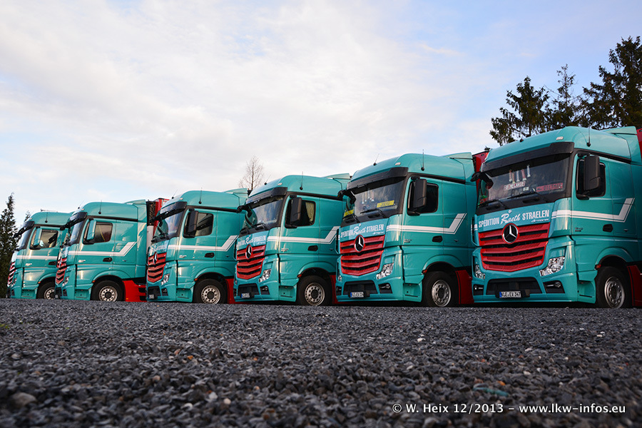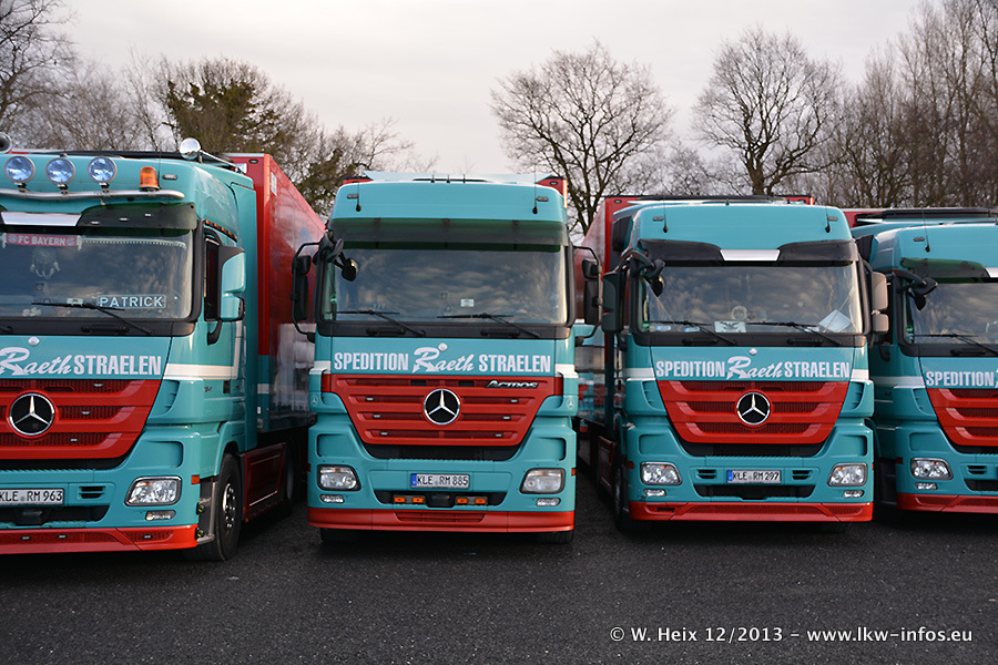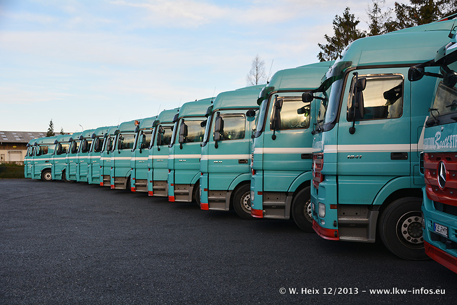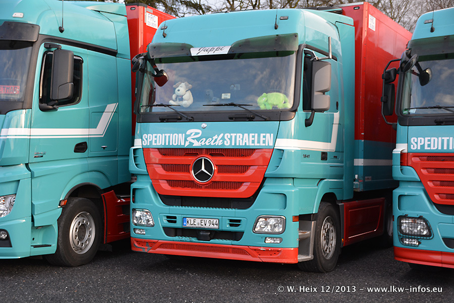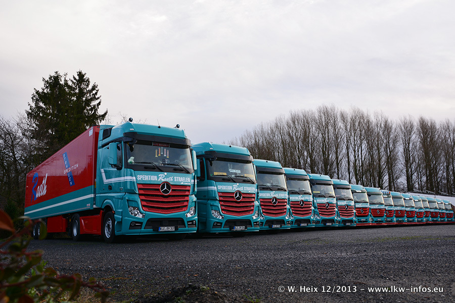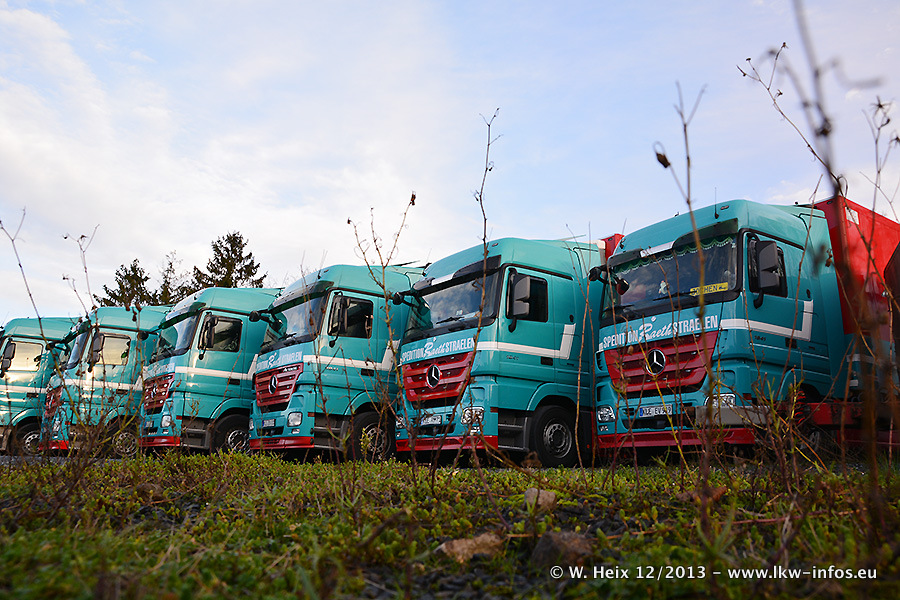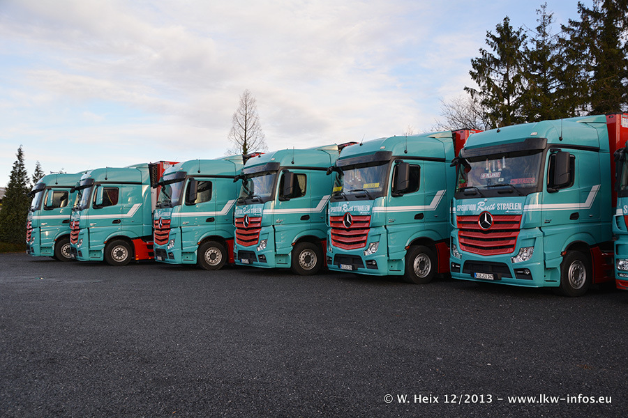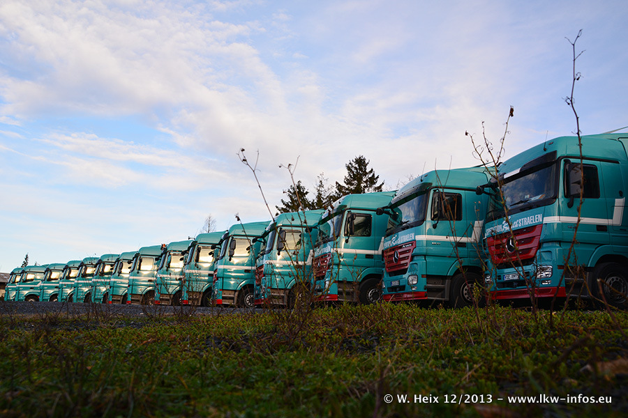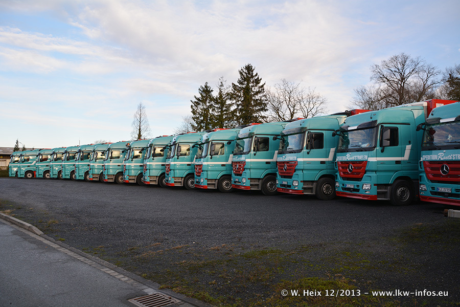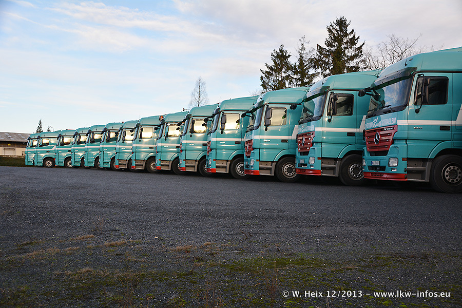 Nachdem es im letzten Jahr nicht geklappt hat, war in diesem Jahr zumindest ein Teil der Fahrzeuge zuhause auf dem (für alle LKW viel zu kleinen) Firmenhof. Darunter waren fast alle neuen Mercedes-Benz Actros 4, die in diesem Jahr gekauft wurden. Geschätzt standen ca. 1/3 der LKW auf dem Hof.