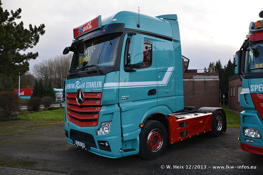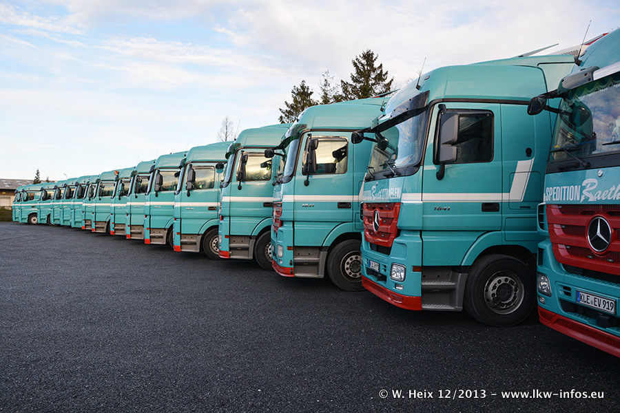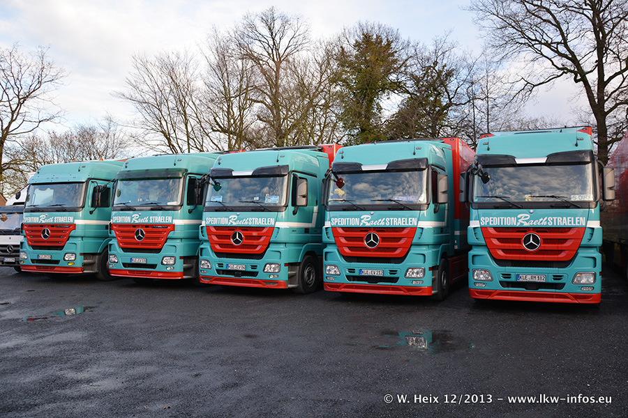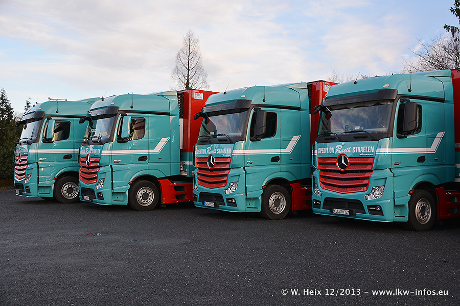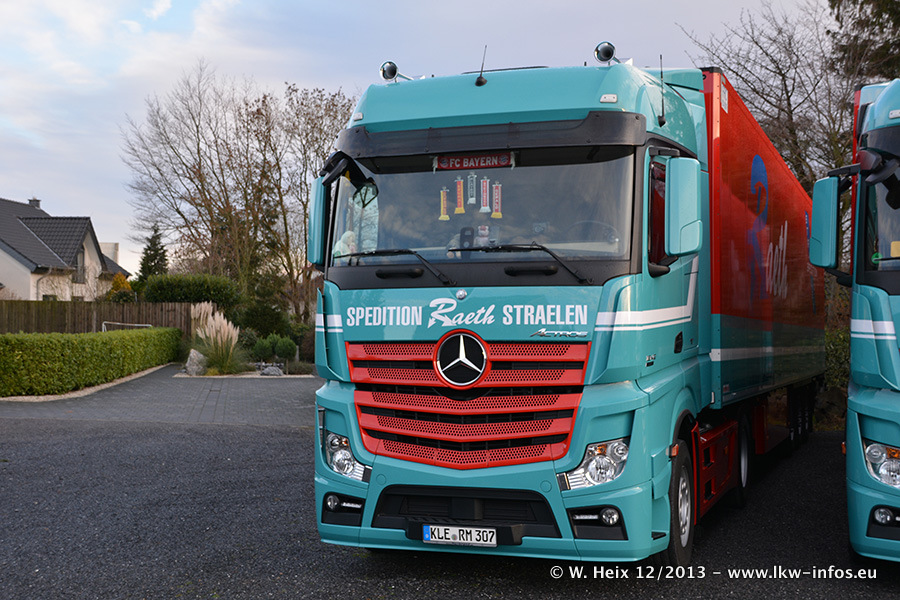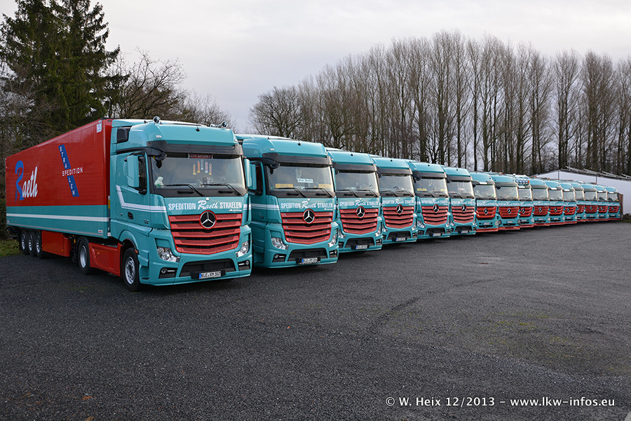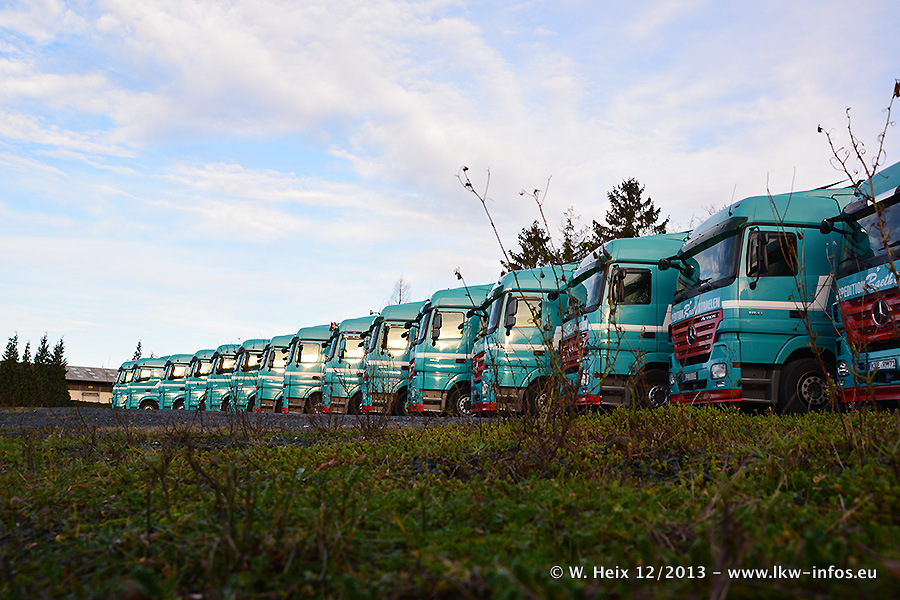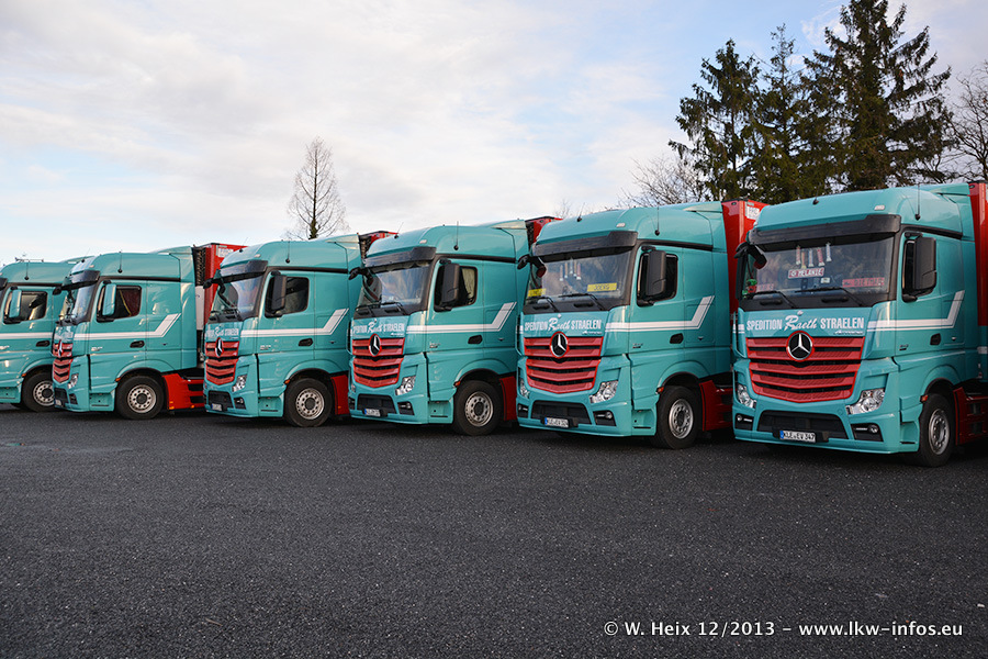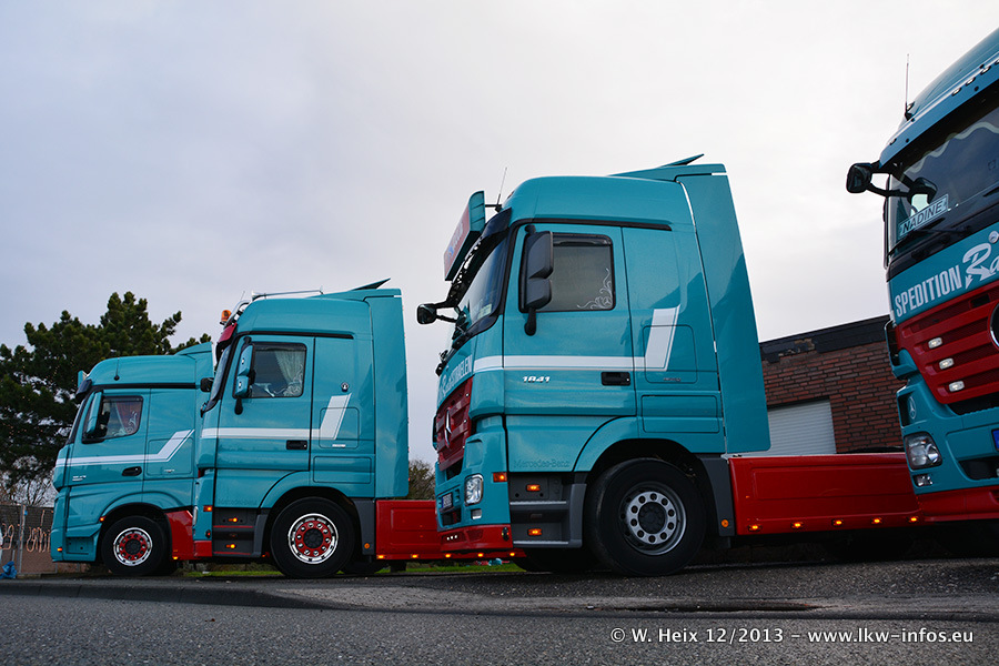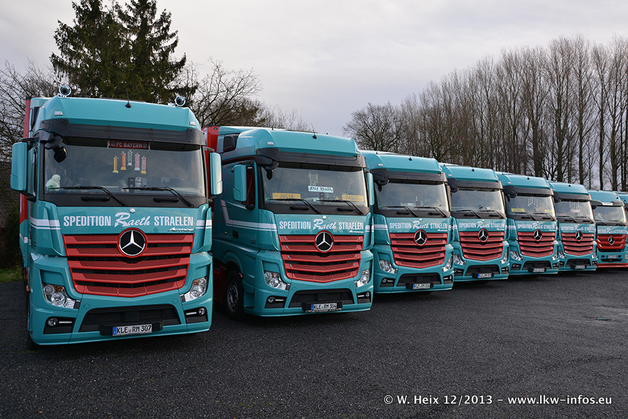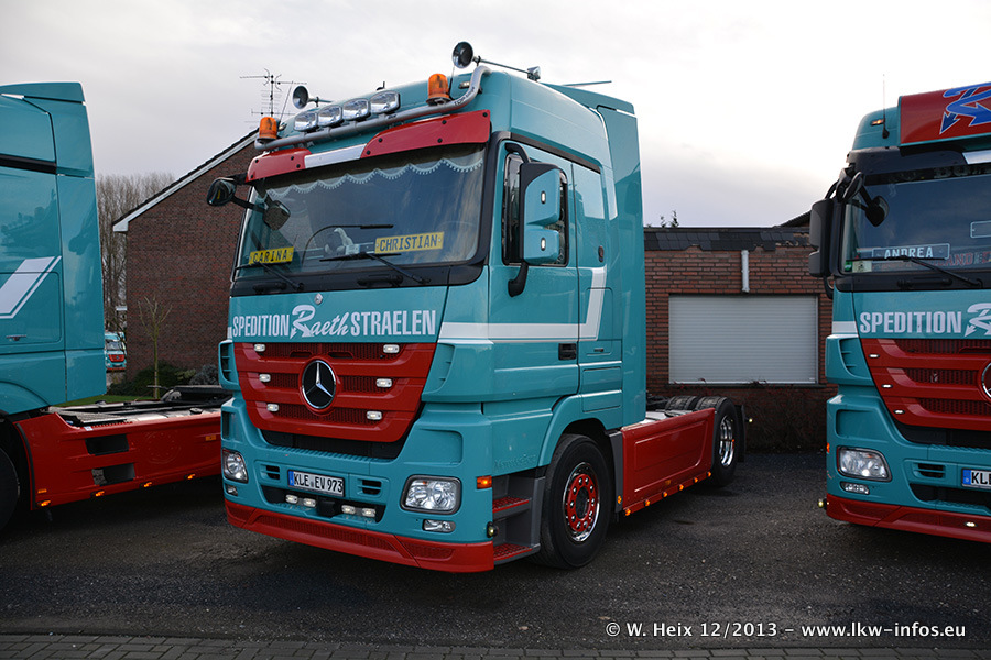 Nachdem es im letzten Jahr nicht geklappt hat, war in diesem Jahr zumindest ein Teil der Fahrzeuge zuhause auf dem (für alle LKW viel zu kleinen) Firmenhof. Darunter waren fast alle neuen Mercedes-Benz Actros 4, die in diesem Jahr gekauft wurden. Geschätzt standen ca. 1/3 der LKW auf dem Hof.