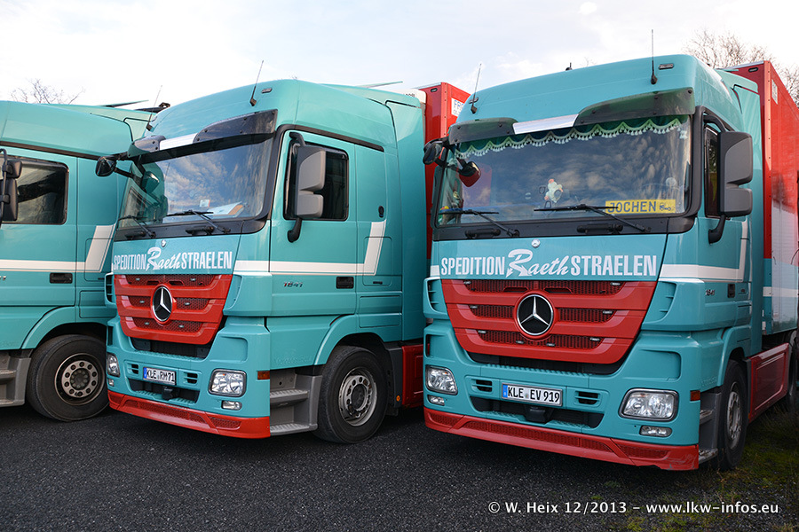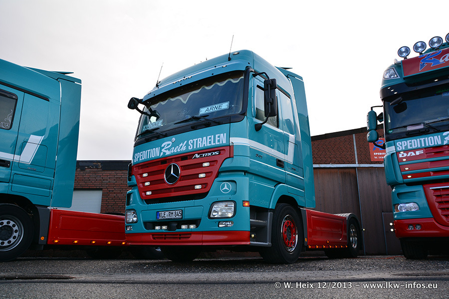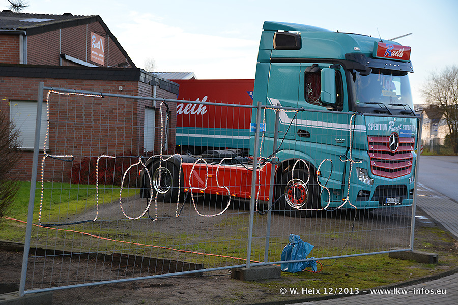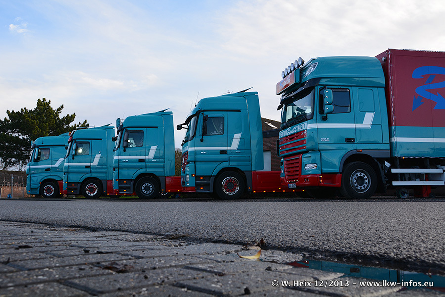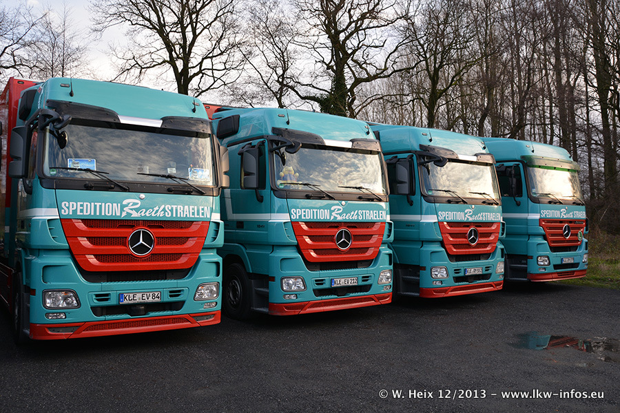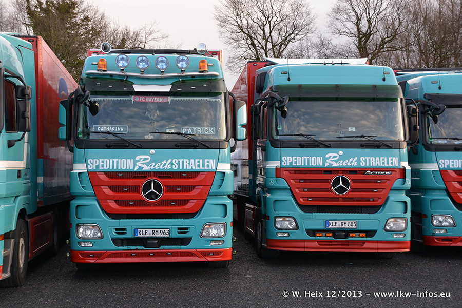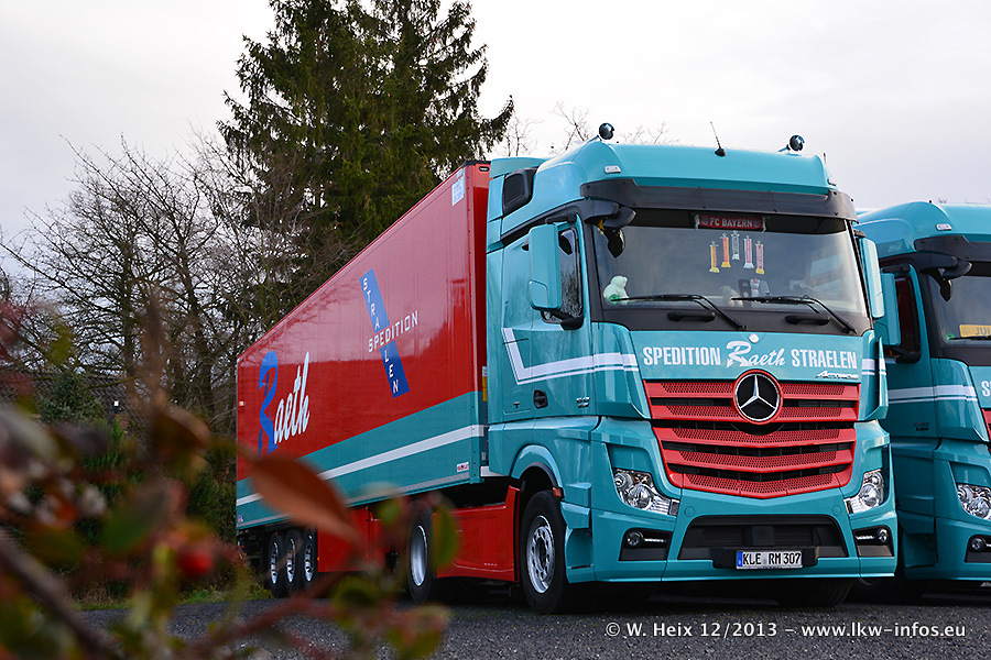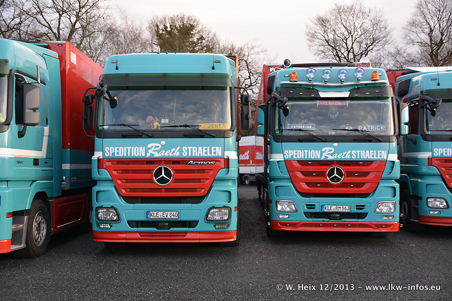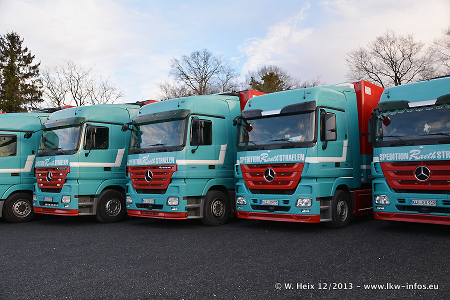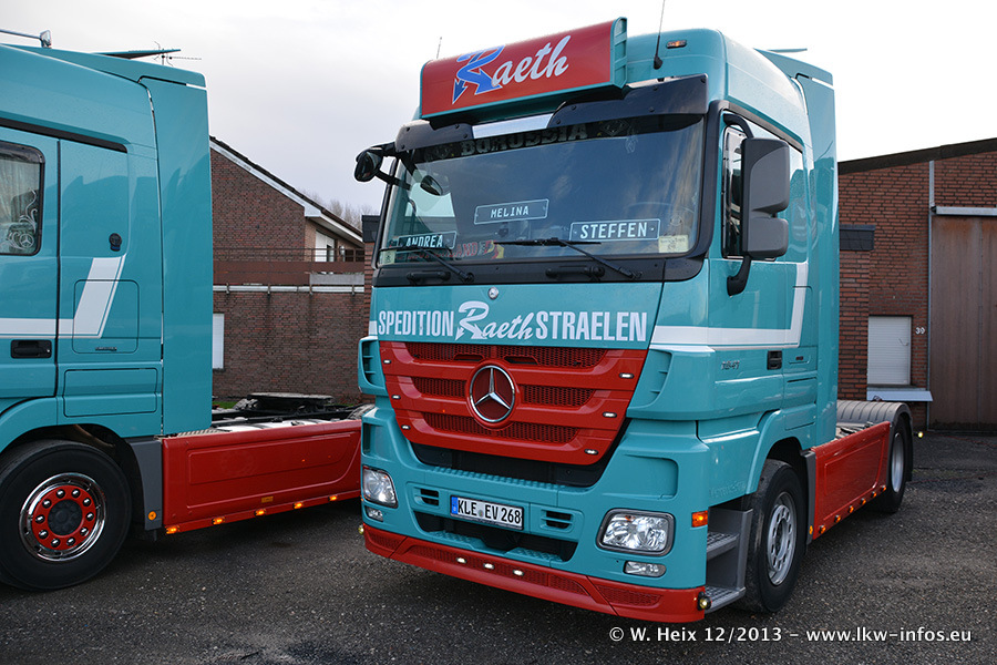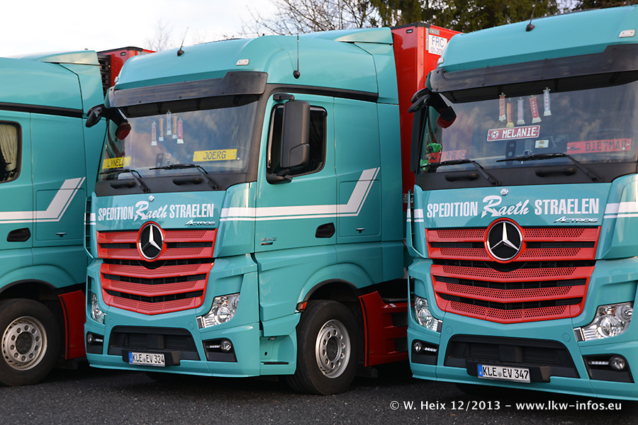 Nachdem es im letzten Jahr nicht geklappt hat, war in diesem Jahr zumindest ein Teil der Fahrzeuge zuhause auf dem (für alle LKW viel zu kleinen) Firmenhof. Darunter waren fast alle neuen Mercedes-Benz Actros 4, die in diesem Jahr gekauft wurden. Geschätzt standen ca. 1/3 der LKW auf dem Hof.