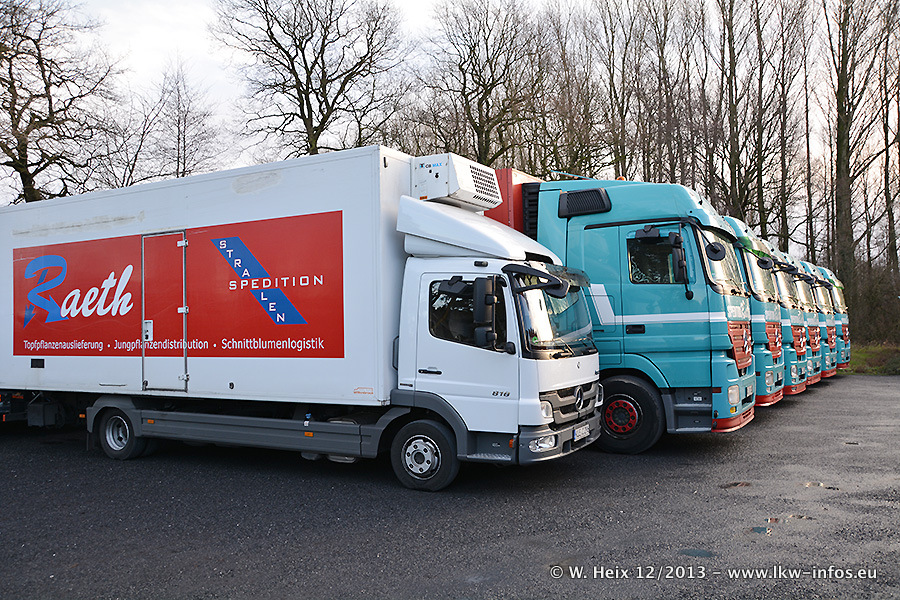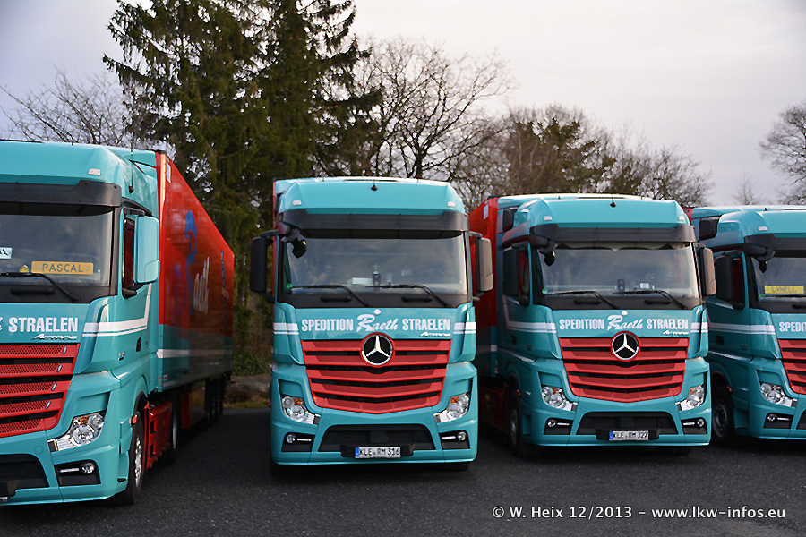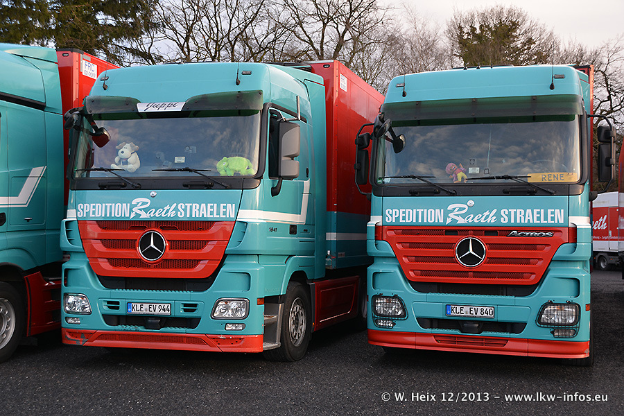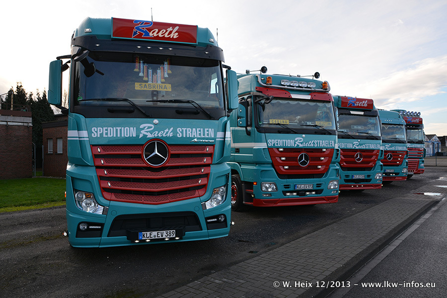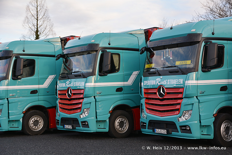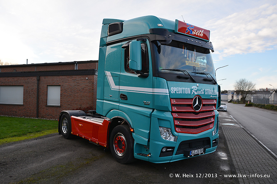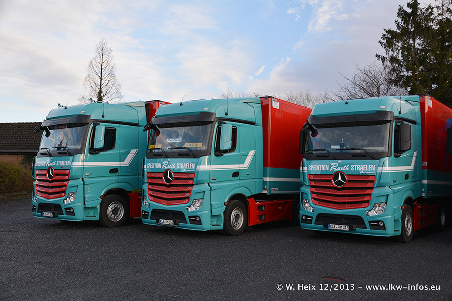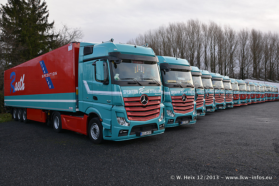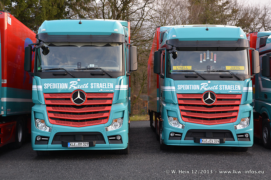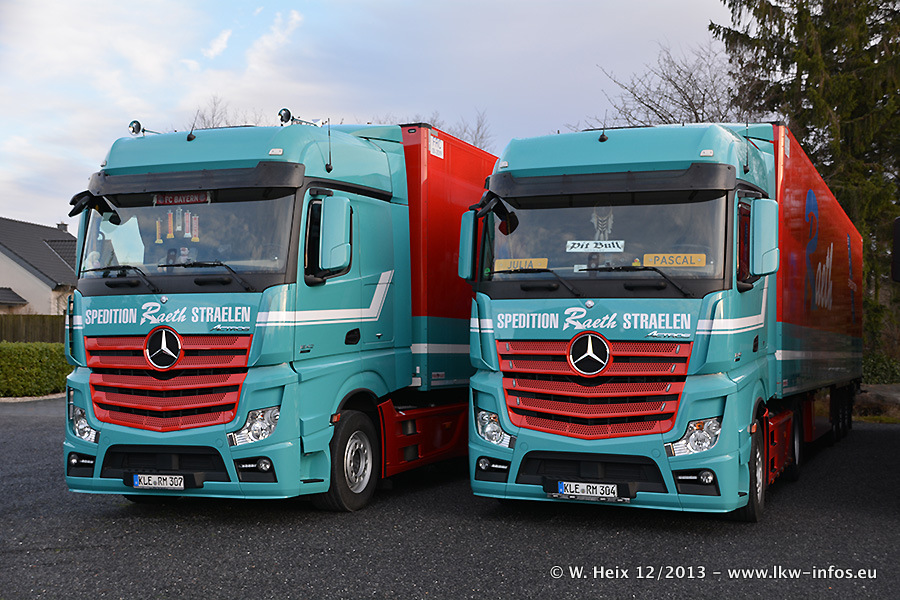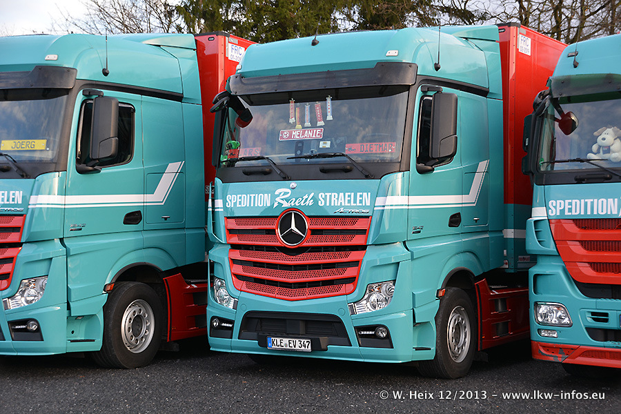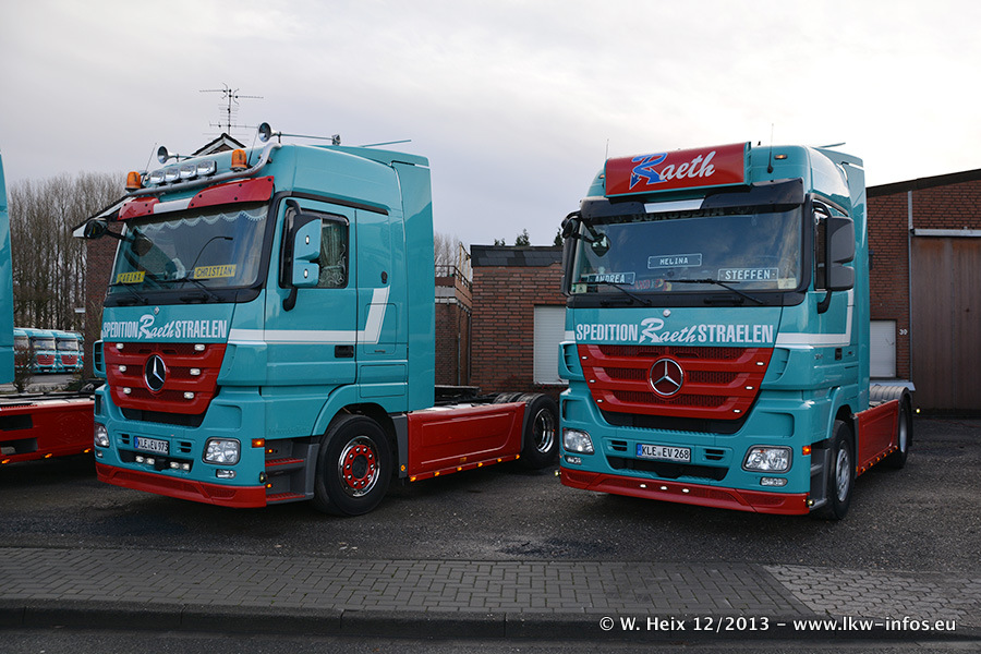 Nachdem es im letzten Jahr nicht geklappt hat, war in diesem Jahr zumindest ein Teil der Fahrzeuge zuhause auf dem (für alle LKW viel zu kleinen) Firmenhof. Darunter waren fast alle neuen Mercedes-Benz Actros 4, die in diesem Jahr gekauft wurden. Geschätzt standen ca. 1/3 der LKW auf dem Hof.