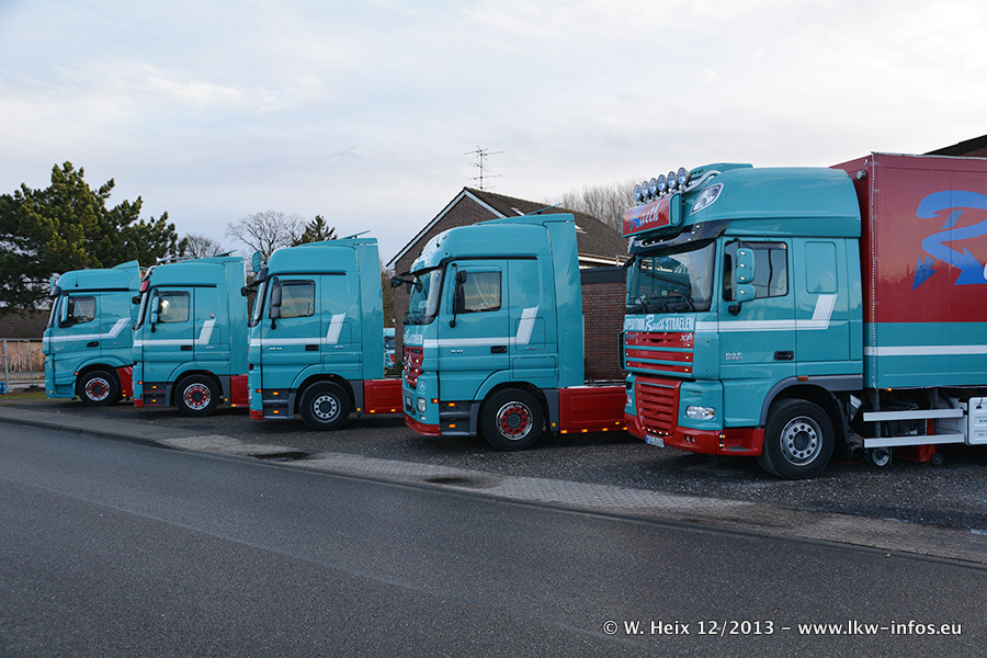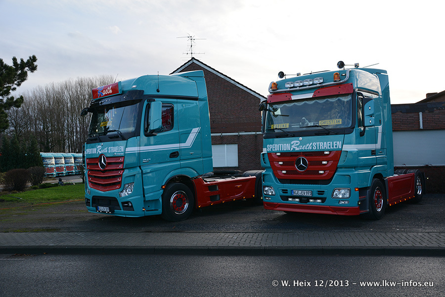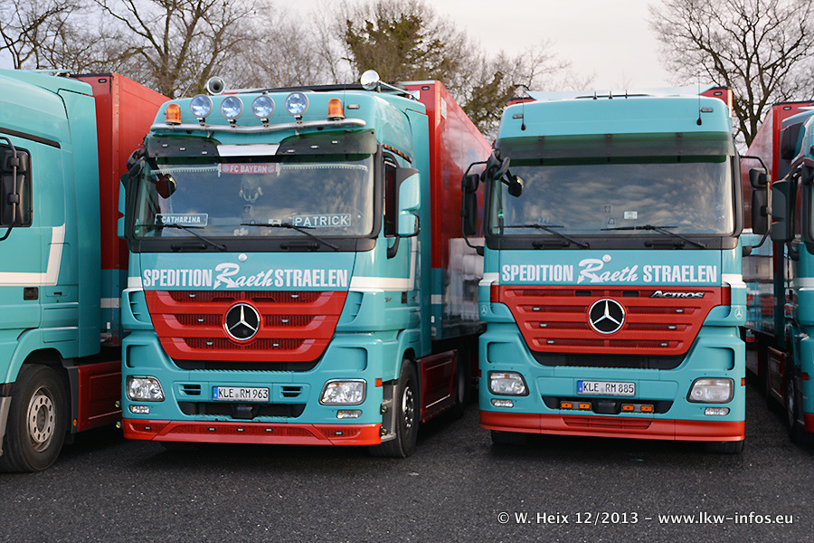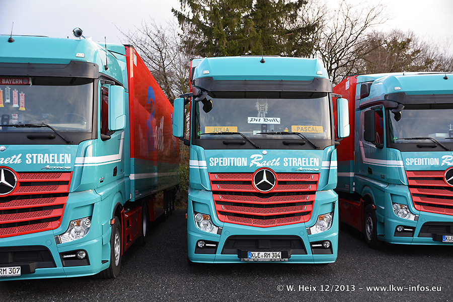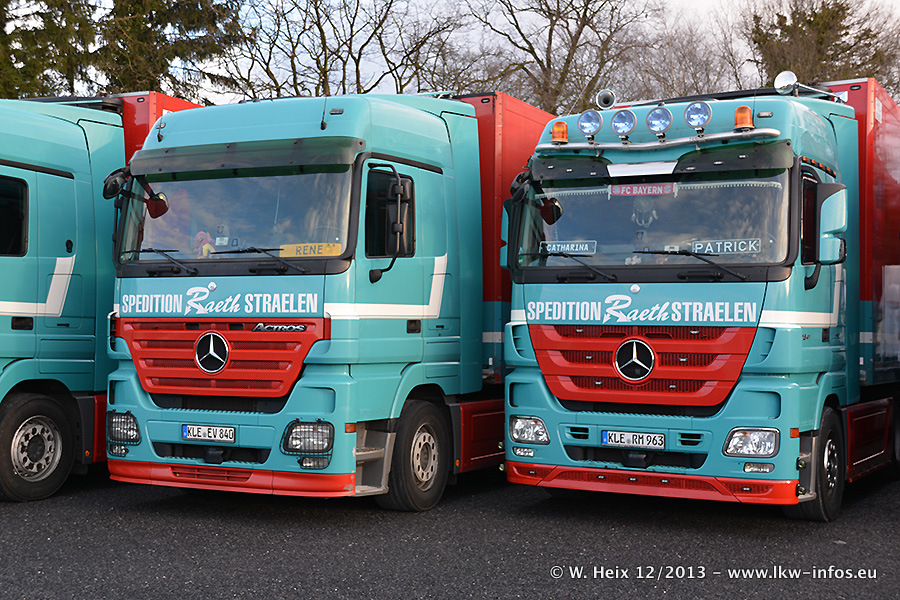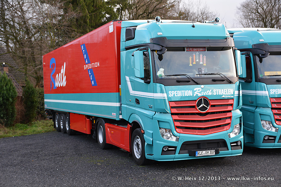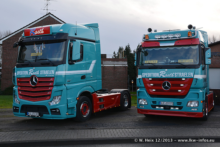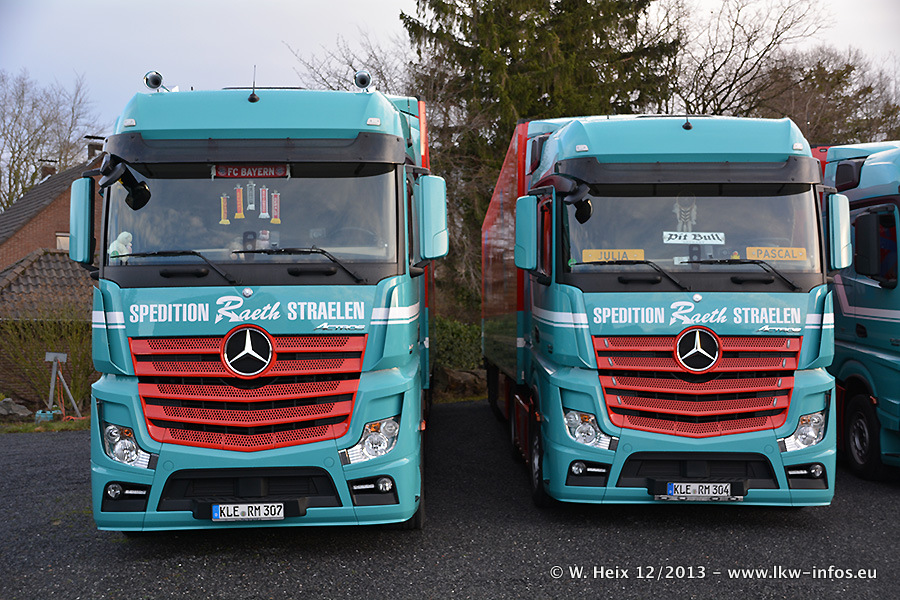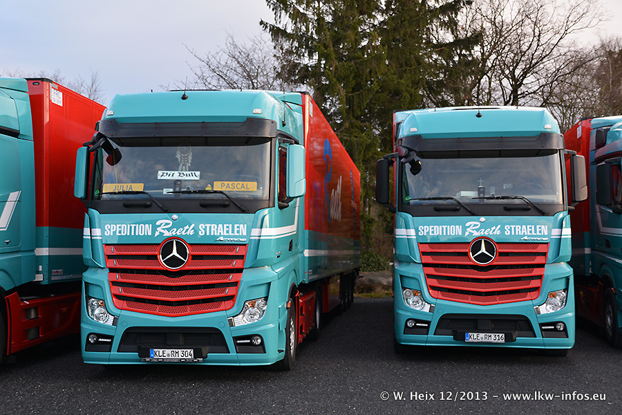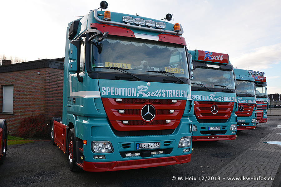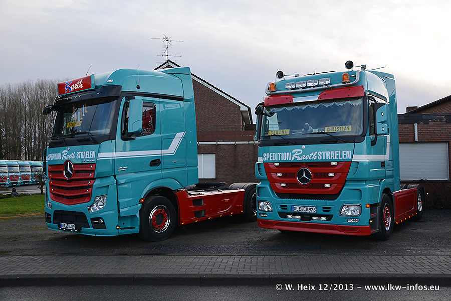 Nachdem es im letzten Jahr nicht geklappt hat, war in diesem Jahr zumindest ein Teil der Fahrzeuge zuhause auf dem (für alle LKW viel zu kleinen) Firmenhof. Darunter waren fast alle neuen Mercedes-Benz Actros 4, die in diesem Jahr gekauft wurden. Geschätzt standen ca. 1/3 der LKW auf dem Hof.