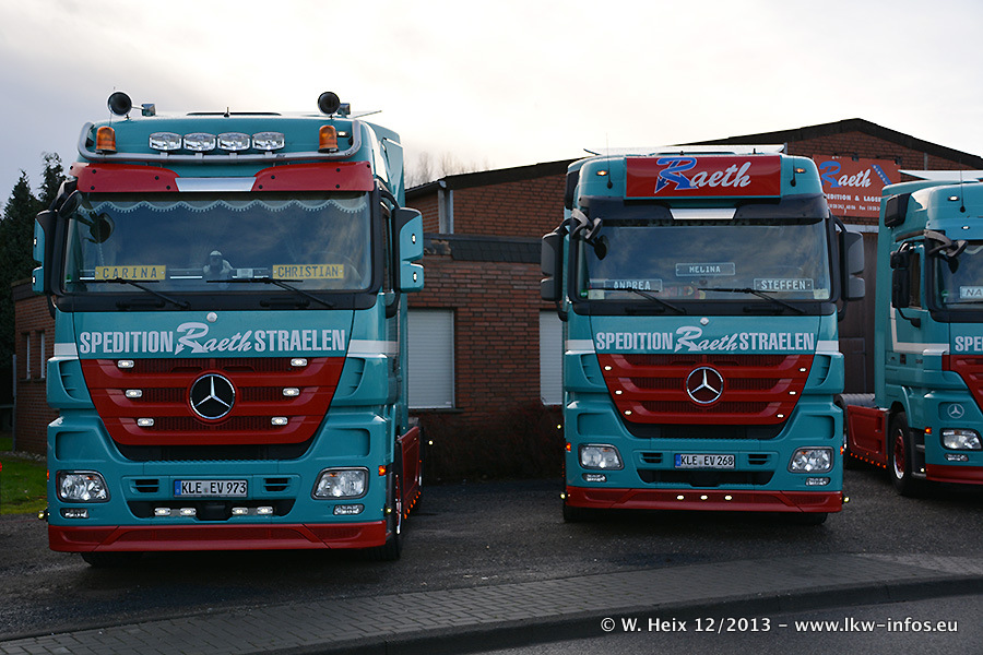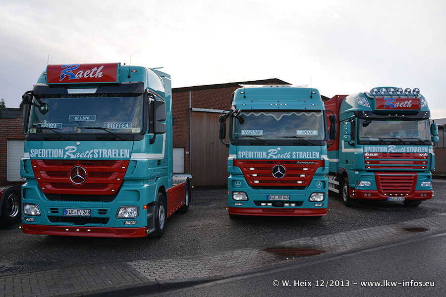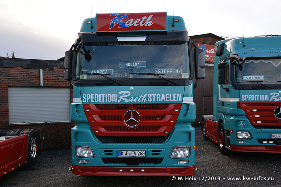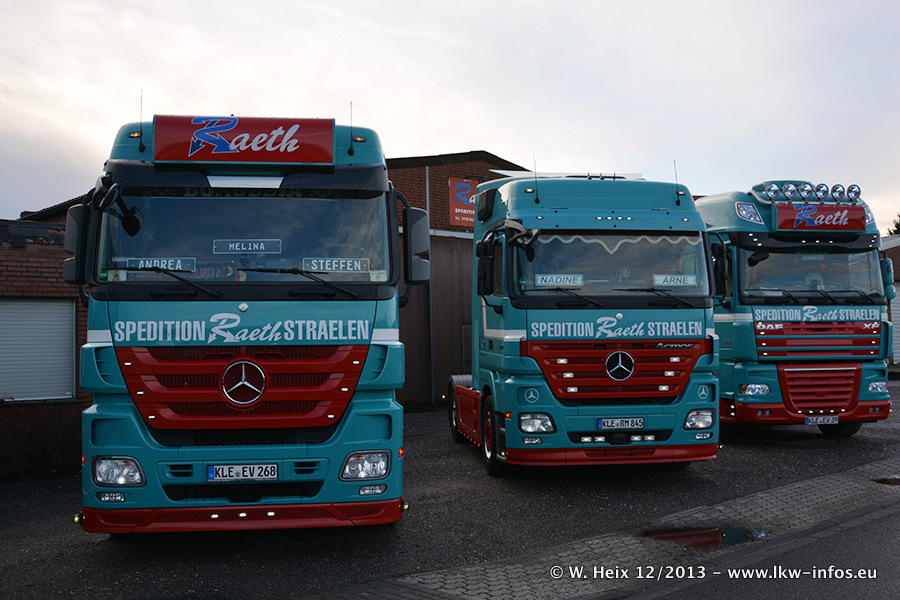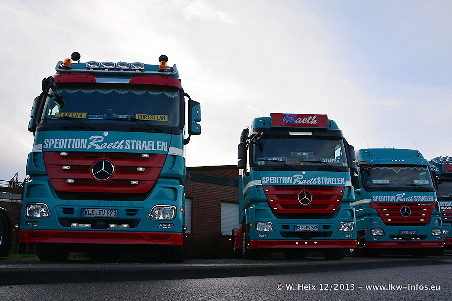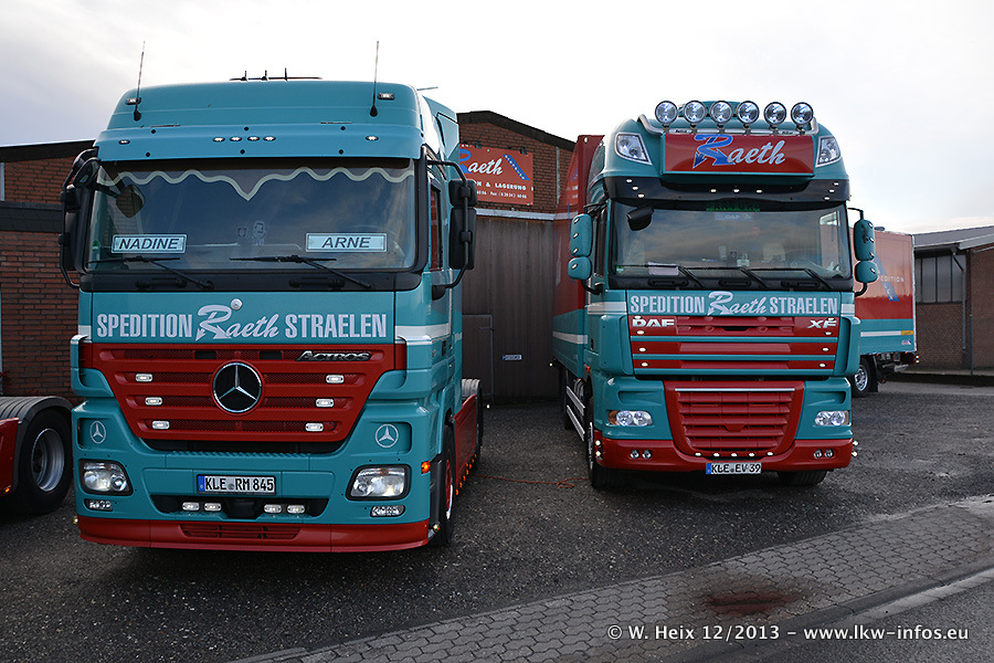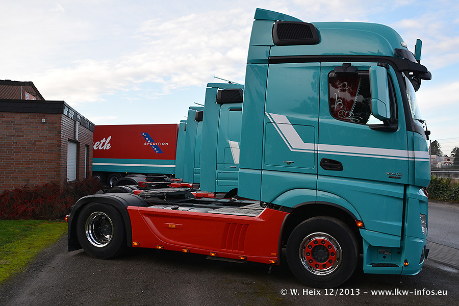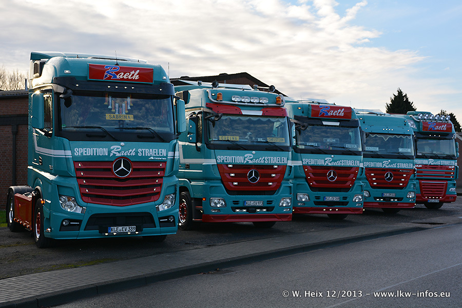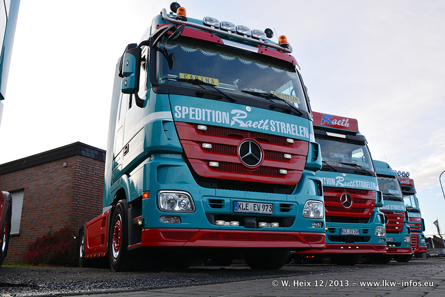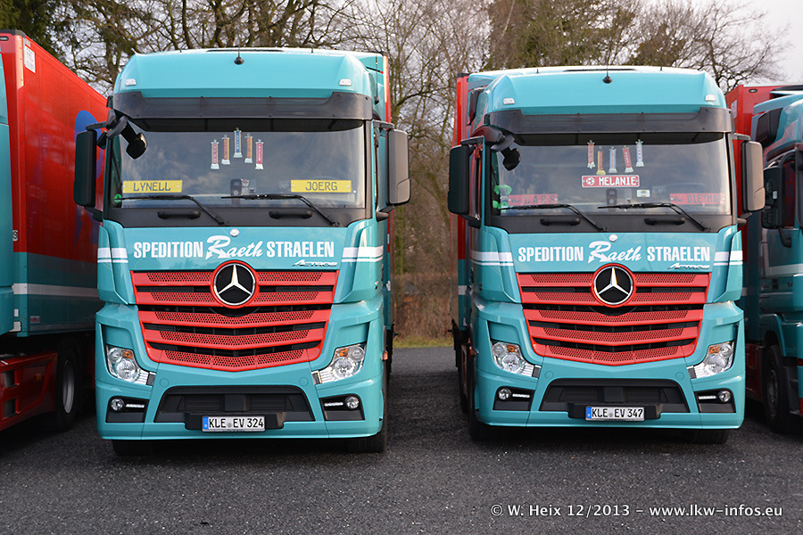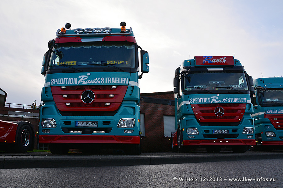 Nachdem es im letzten Jahr nicht geklappt hat, war in diesem Jahr zumindest ein Teil der Fahrzeuge zuhause auf dem (für alle LKW viel zu kleinen) Firmenhof. Darunter waren fast alle neuen Mercedes-Benz Actros 4, die in diesem Jahr gekauft wurden. Geschätzt standen ca. 1/3 der LKW auf dem Hof.