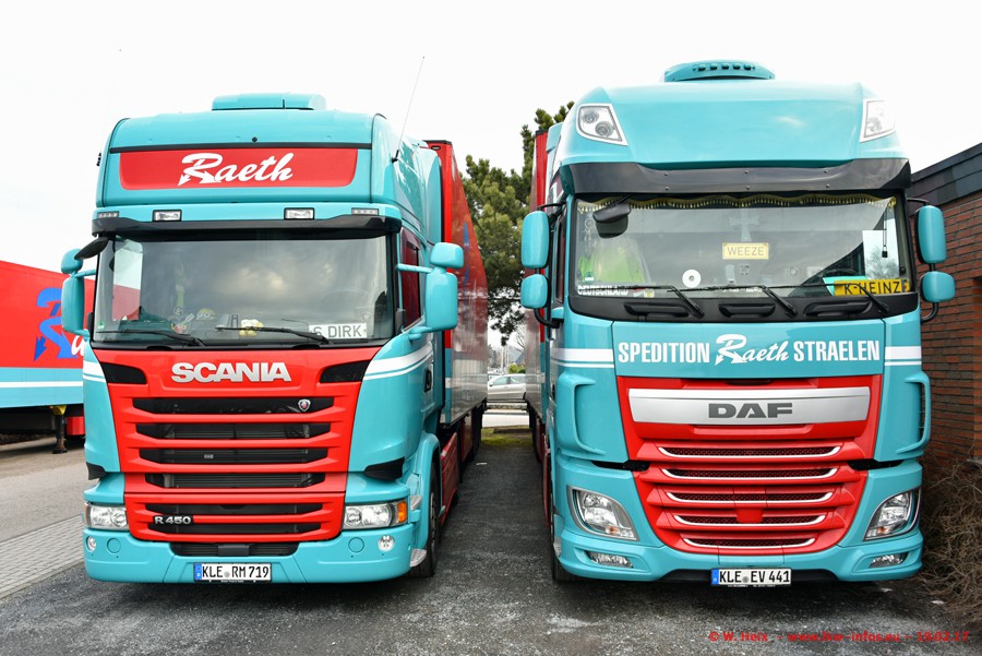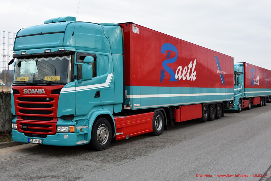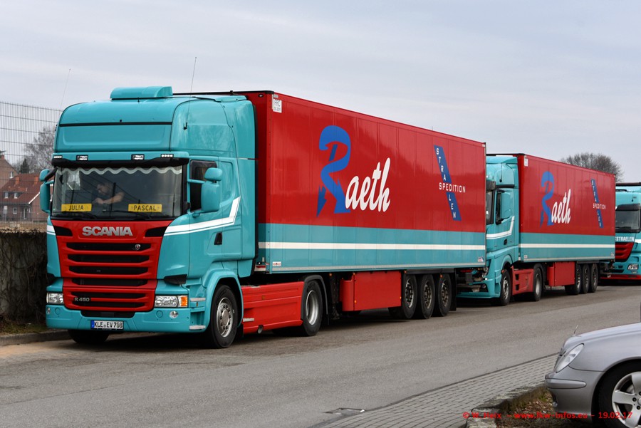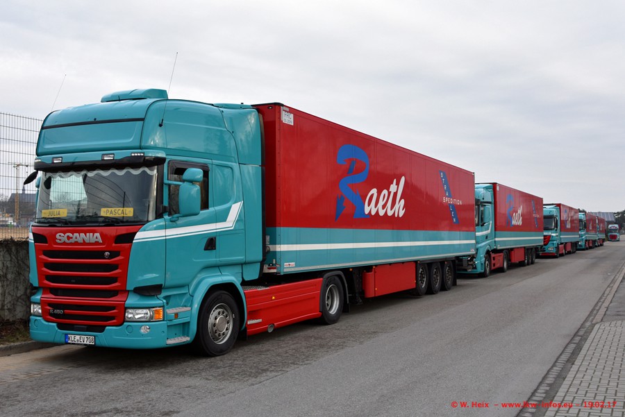 Ich war schon lange nicht mehr bei Raeth. Seit langer Zeit gibt es jetzt wieder Scania im Fuhrpark. Zwei neue Scania R 450 Streamline konnte ich fotografieren. Die sind vermutlich erst wenige Wochen alt. Und auch die Volvo FH 4 werden immer mehr. Die Bilder zeigen allerdings nur einen kleinen Teil des Fuhrparks, da die LKW auf verschiedenen Plätzen stehen oder am Wochenende unterwegs sind.