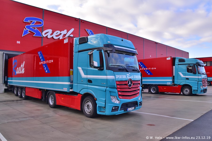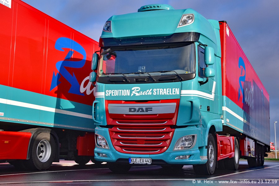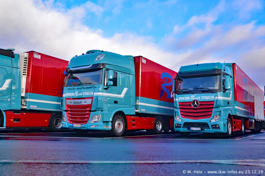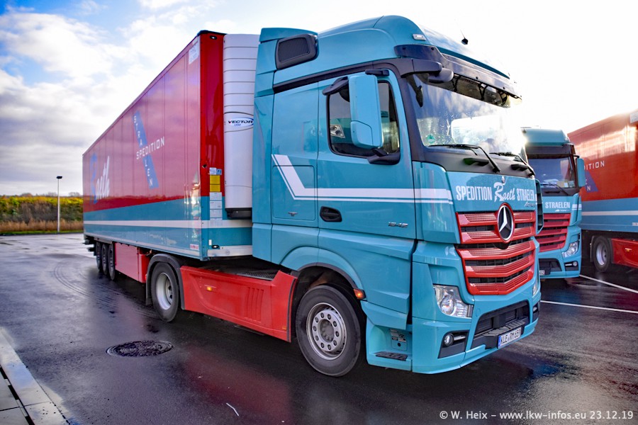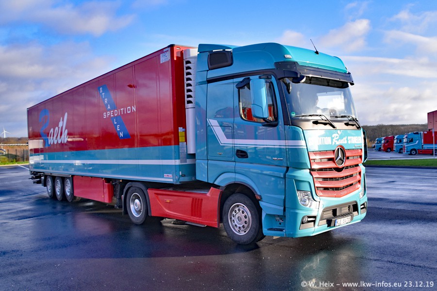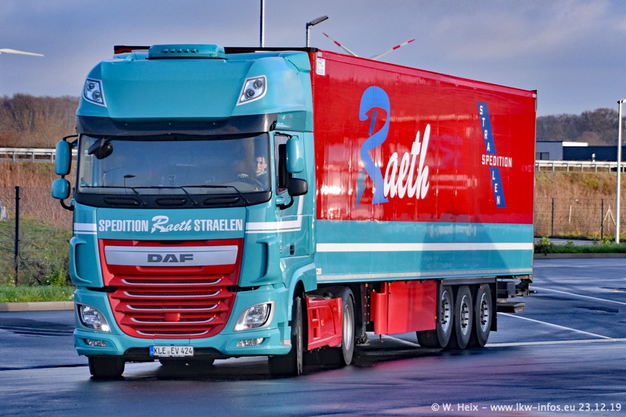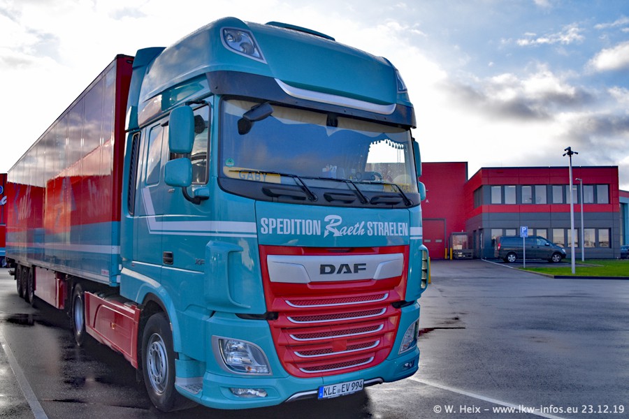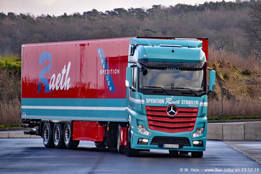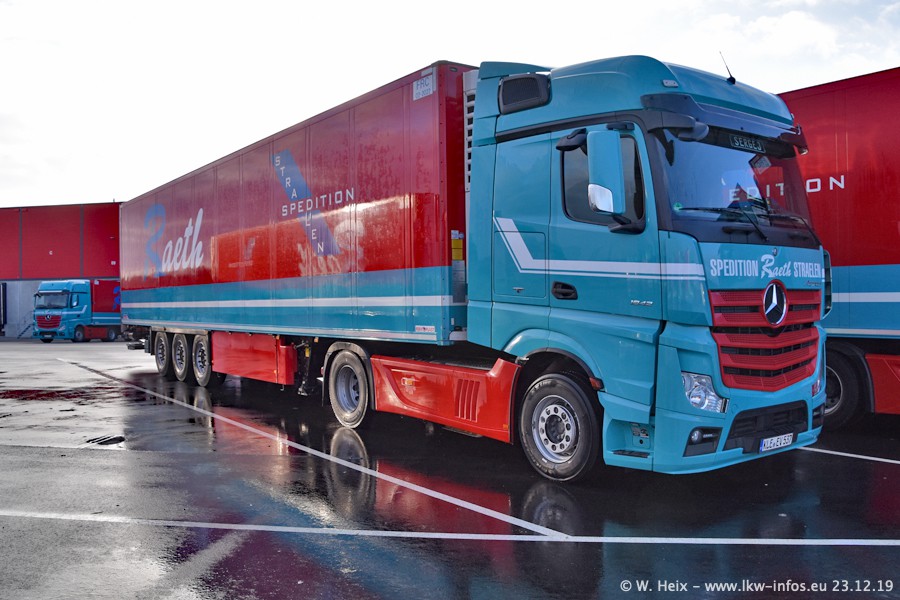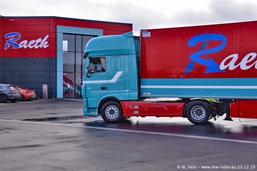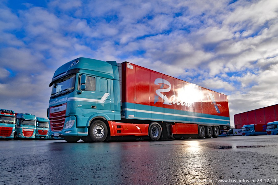 In diesem Jahr istr der Weihnachtsbesuch zugleich der erste Besuch auf dem neuen Firmengelände. Im Juli ist Raeth vom alten, viel zu klein gewordenen Gelände in Straelen, umgezogen nach Straelen-Herongen. Das neue Frimengelände liegt jetzt direkt an der A40 an der Abfahrt Herongen. Auf dem weitläufigen Gelände wurde ein kompletter Neubau mit Lagerhalle, Bürokomplex, Werkstatt und Waschstraße gebaut. Es gibt Platz für rund 40 LKW. Der Fuhrpark besteht aktuell aus rund 80 LKW. Viele Fahrzeuge stehen an den Wochenenden bei den Fahrern zuhause. Die "klassische Weihnachtsaufstellung " der LKW gibt es nicht. Aber gibt mir die Gelegenheit, viele Fahrzeuge einzeln zu fotografieren. Daher ist dieser Besuch mit 375 Fotos auch der größte bisher. Vielen Dank an Florian Brimmers für den freundlichen Empfang und für die Infos über die Firma.