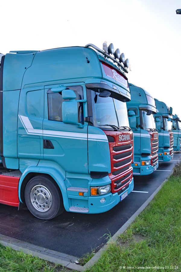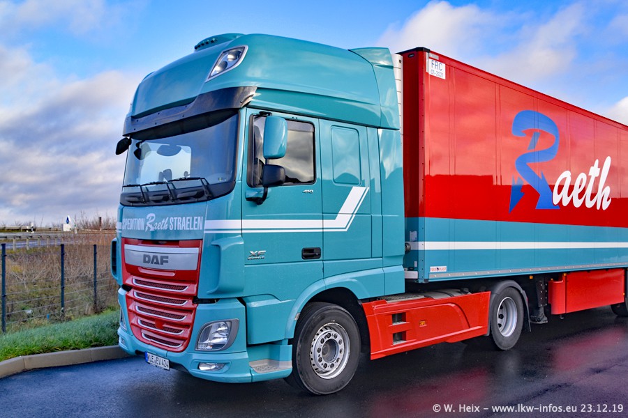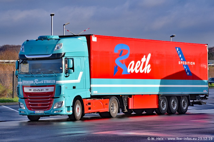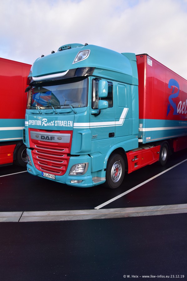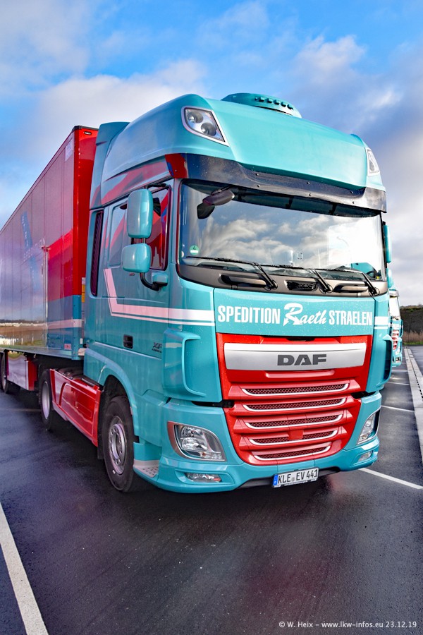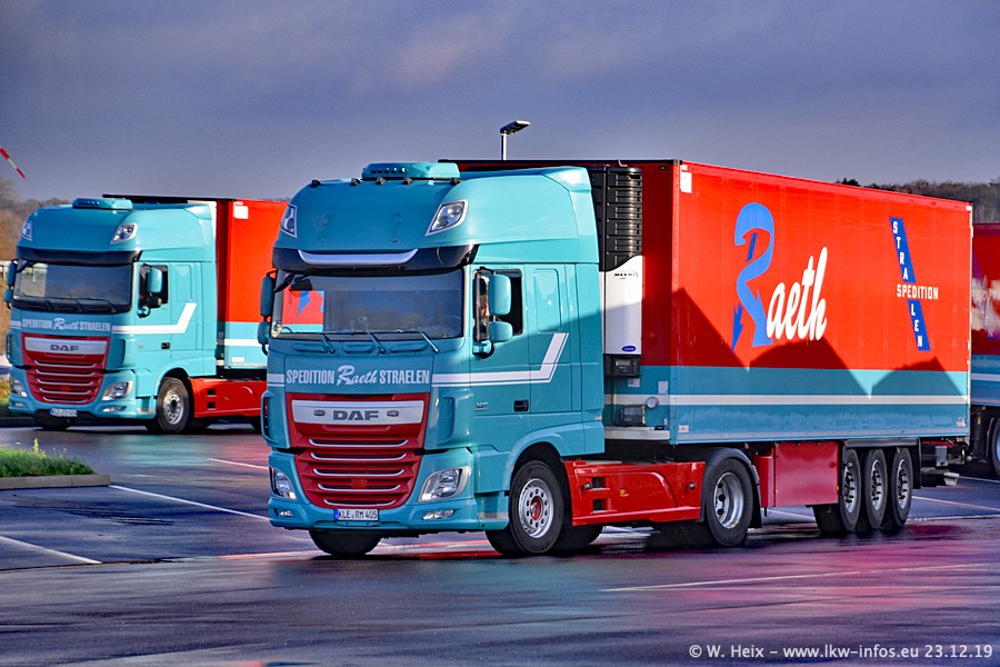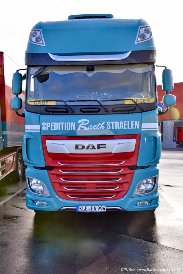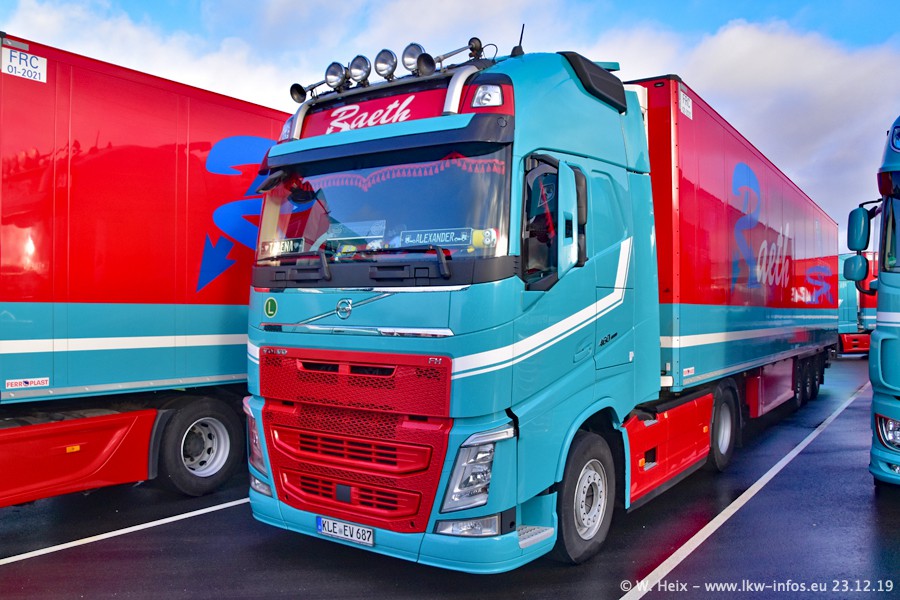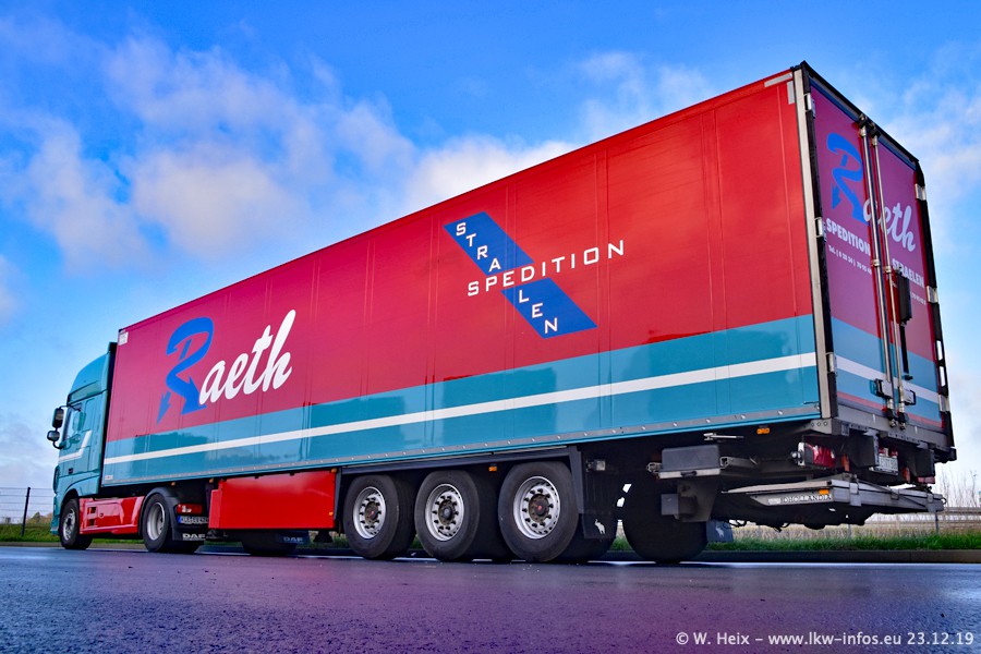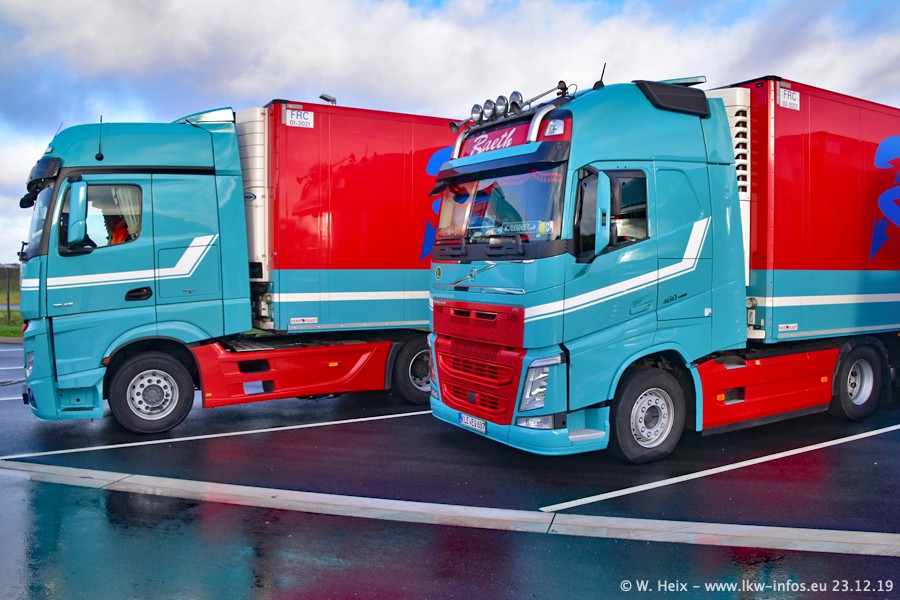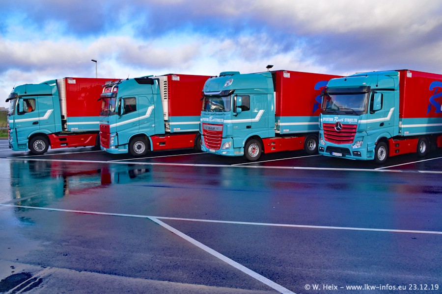In diesem Jahr istr der Weihnachtsbesuch zugleich der erste Besuch auf dem neuen Firmengelände. Im Juli ist Raeth vom alten, viel zu klein gewordenen Gelände in Straelen, umgezogen nach Straelen-Herongen. Das neue Frimengelände liegt jetzt direkt an der A40 an der Abfahrt Herongen. Auf dem weitläufigen Gelände wurde ein kompletter Neubau mit Lagerhalle, Bürokomplex, Werkstatt und Waschstraße gebaut. Es gibt Platz für rund 40 LKW. Der Fuhrpark besteht aktuell aus rund 80 LKW. Viele Fahrzeuge stehen an den Wochenenden bei den Fahrern zuhause. Die "klassische Weihnachtsaufstellung " der LKW gibt es nicht. Aber gibt mir die Gelegenheit, viele Fahrzeuge einzeln zu fotografieren. Daher ist dieser Besuch mit 375 Fotos auch der größte bisher. Vielen Dank an Florian Brimmers für den freundlichen Empfang und für die Infos über die Firma.