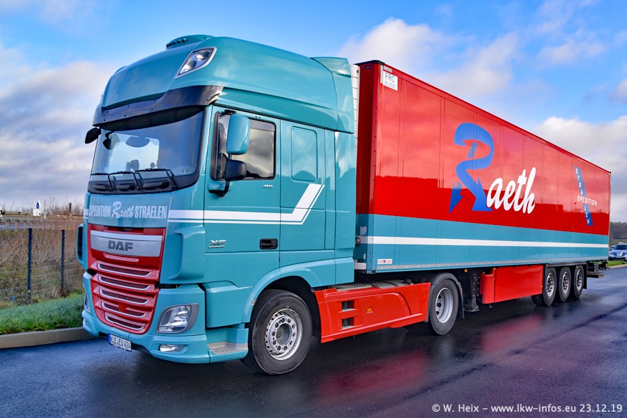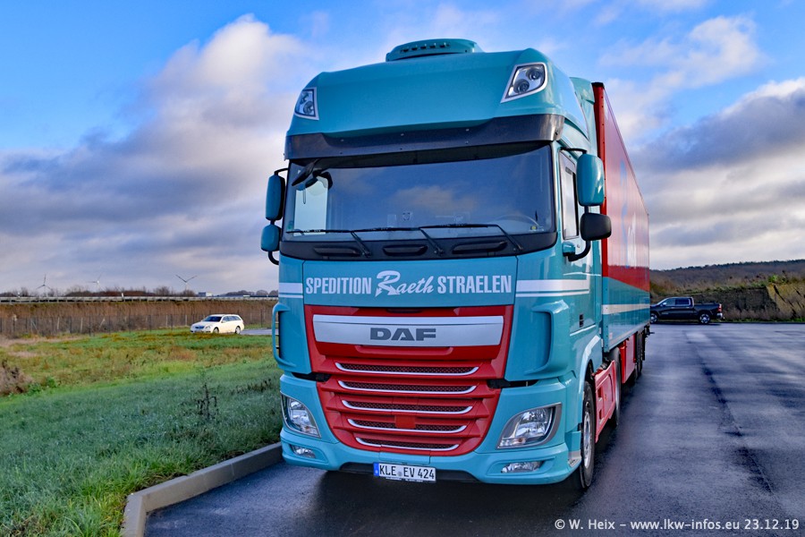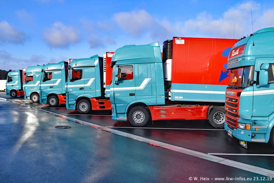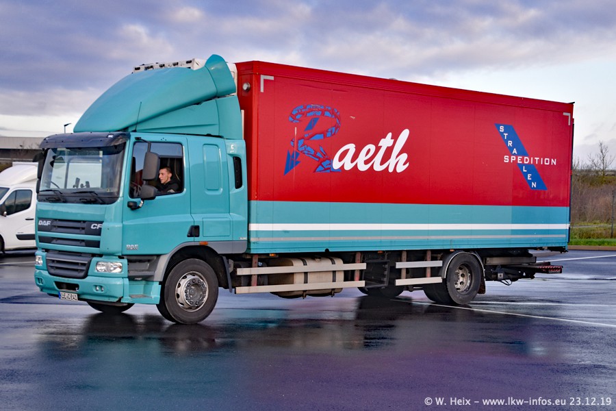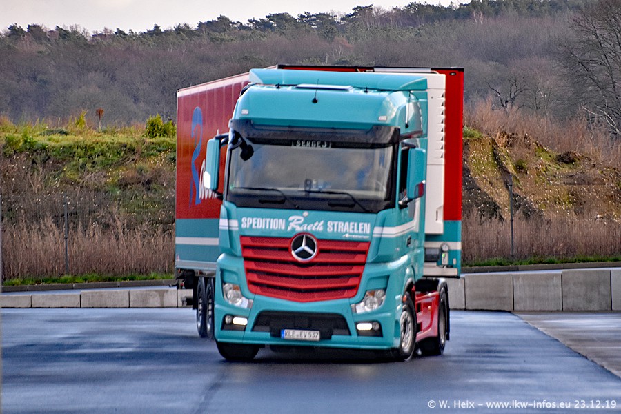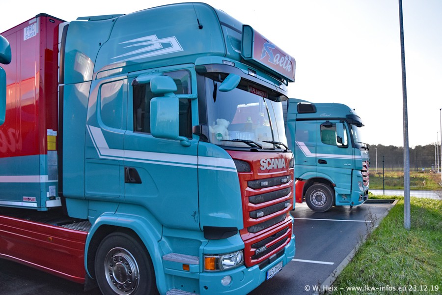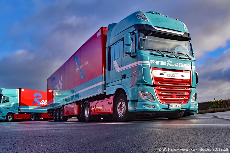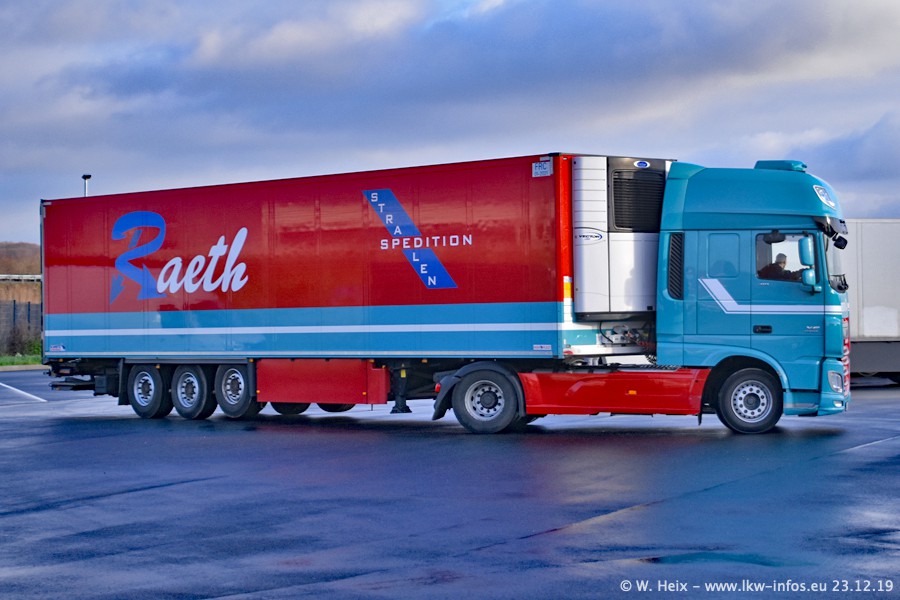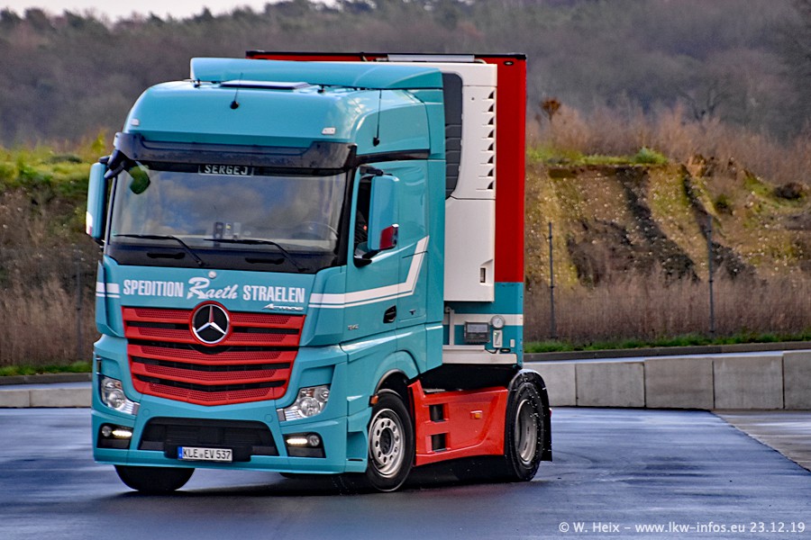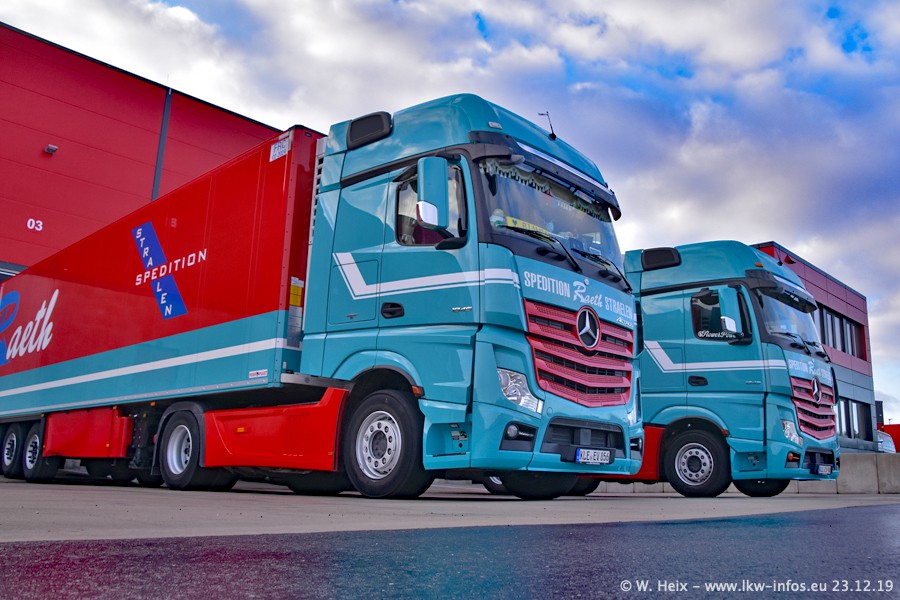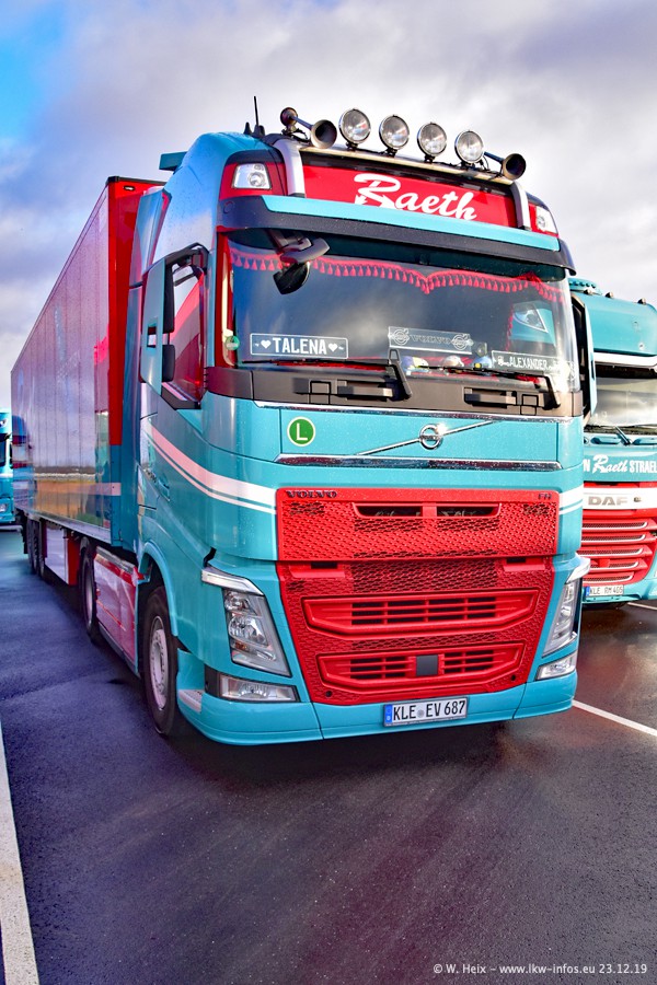 In diesem Jahr istr der Weihnachtsbesuch zugleich der erste Besuch auf dem neuen Firmengelände. Im Juli ist Raeth vom alten, viel zu klein gewordenen Gelände in Straelen, umgezogen nach Straelen-Herongen. Das neue Frimengelände liegt jetzt direkt an der A40 an der Abfahrt Herongen. Auf dem weitläufigen Gelände wurde ein kompletter Neubau mit Lagerhalle, Bürokomplex, Werkstatt und Waschstraße gebaut. Es gibt Platz für rund 40 LKW. Der Fuhrpark besteht aktuell aus rund 80 LKW. Viele Fahrzeuge stehen an den Wochenenden bei den Fahrern zuhause. Die "klassische Weihnachtsaufstellung " der LKW gibt es nicht. Aber gibt mir die Gelegenheit, viele Fahrzeuge einzeln zu fotografieren. Daher ist dieser Besuch mit 375 Fotos auch der größte bisher. Vielen Dank an Florian Brimmers für den freundlichen Empfang und für die Infos über die Firma.