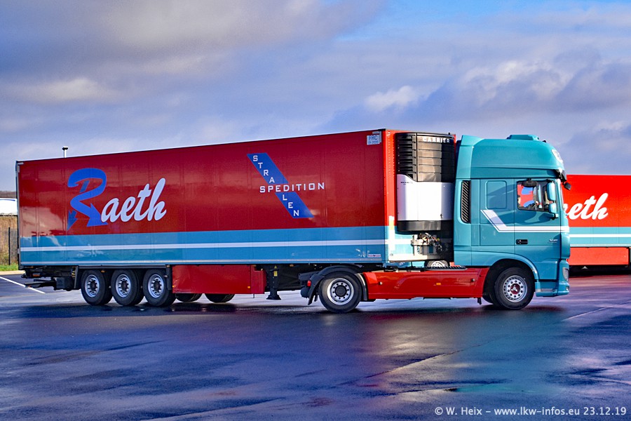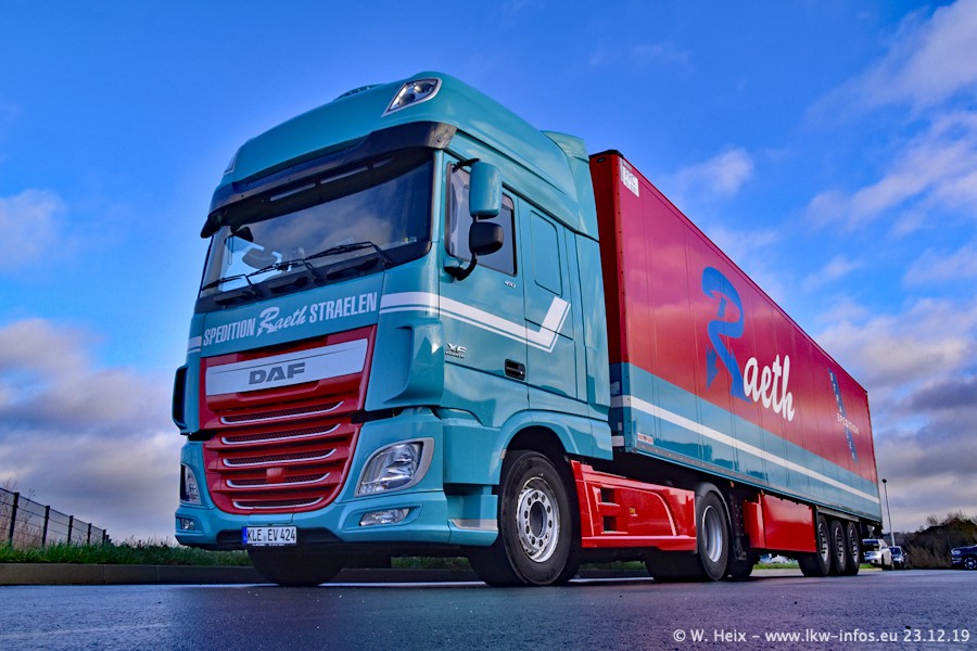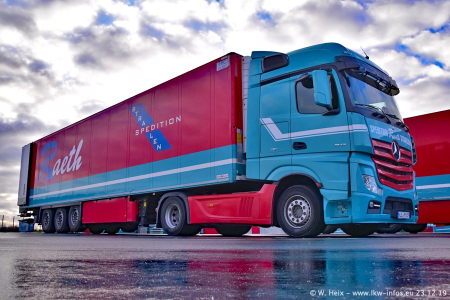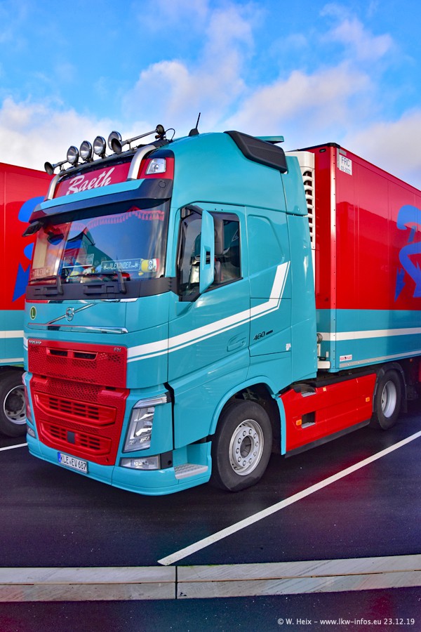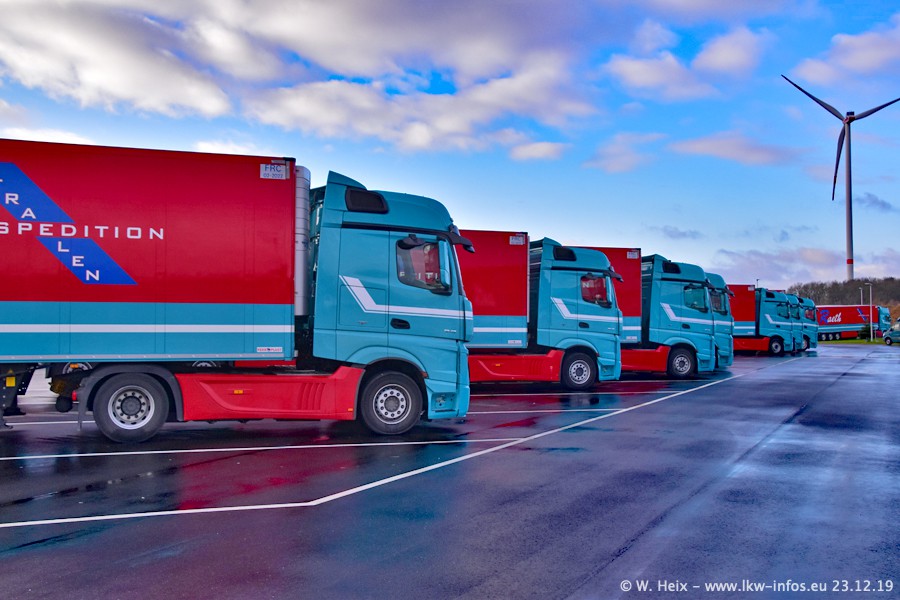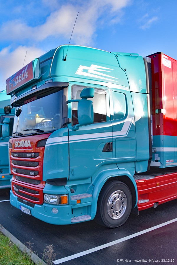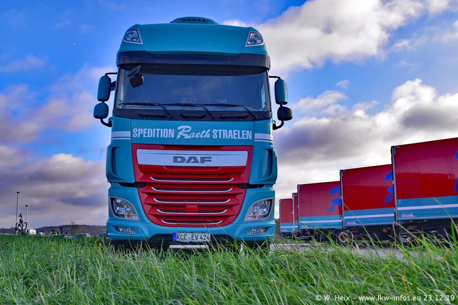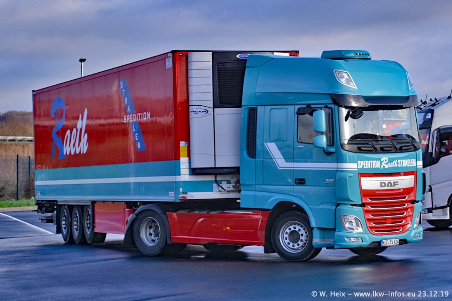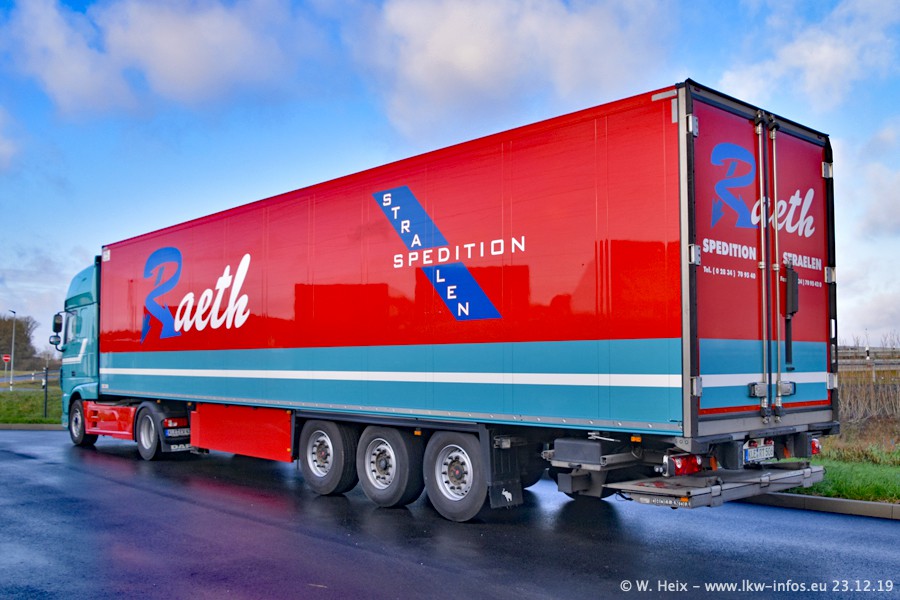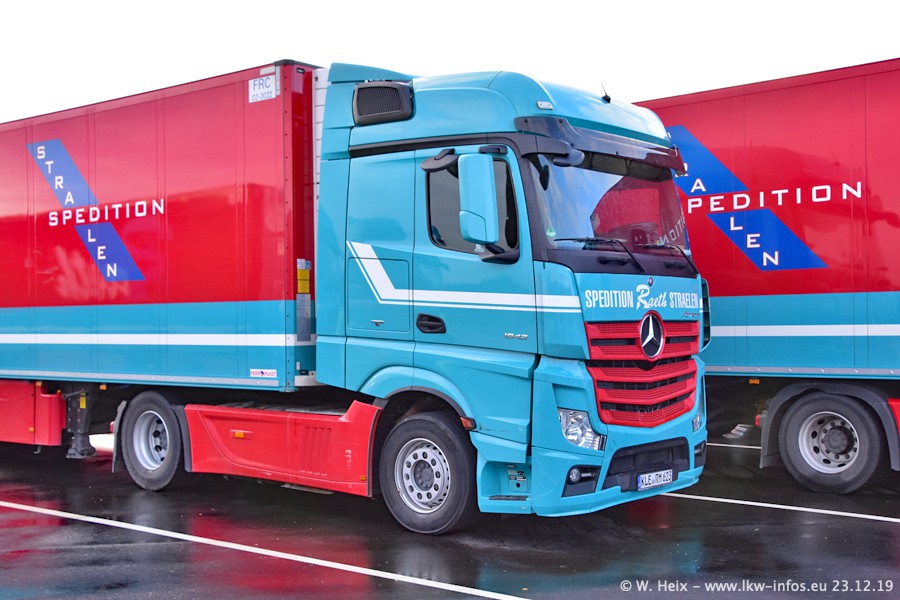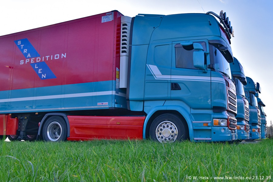 In diesem Jahr istr der Weihnachtsbesuch zugleich der erste Besuch auf dem neuen Firmengelände. Im Juli ist Raeth vom alten, viel zu klein gewordenen Gelände in Straelen, umgezogen nach Straelen-Herongen. Das neue Frimengelände liegt jetzt direkt an der A40 an der Abfahrt Herongen. Auf dem weitläufigen Gelände wurde ein kompletter Neubau mit Lagerhalle, Bürokomplex, Werkstatt und Waschstraße gebaut. Es gibt Platz für rund 40 LKW. Der Fuhrpark besteht aktuell aus rund 80 LKW. Viele Fahrzeuge stehen an den Wochenenden bei den Fahrern zuhause. Die "klassische Weihnachtsaufstellung " der LKW gibt es nicht. Aber gibt mir die Gelegenheit, viele Fahrzeuge einzeln zu fotografieren. Daher ist dieser Besuch mit 375 Fotos auch der größte bisher. Vielen Dank an Florian Brimmers für den freundlichen Empfang und für die Infos über die Firma.