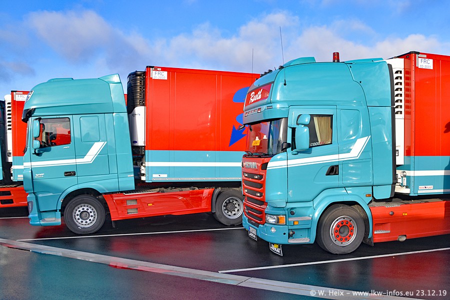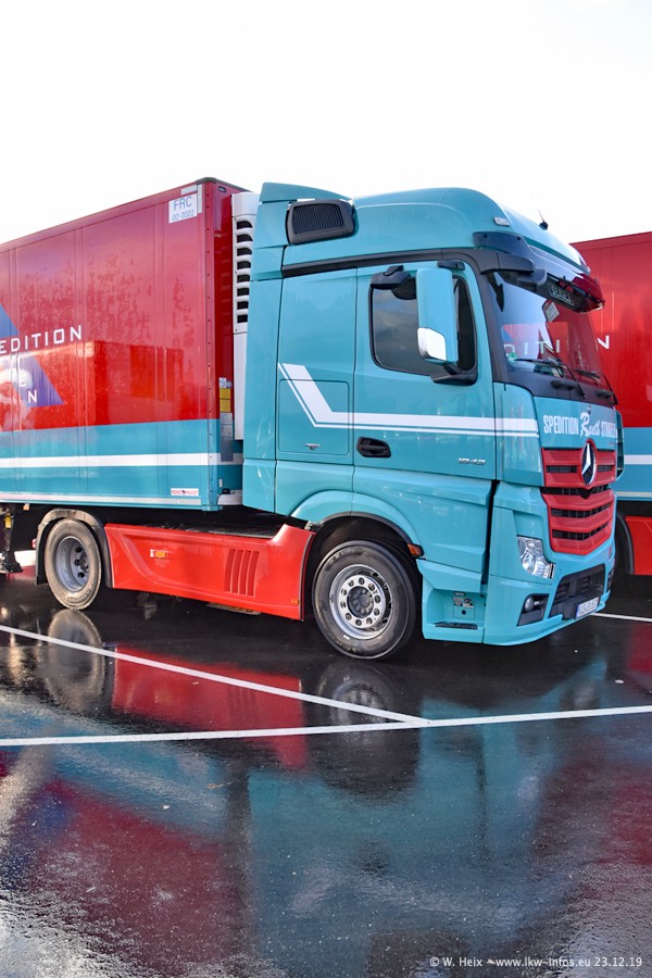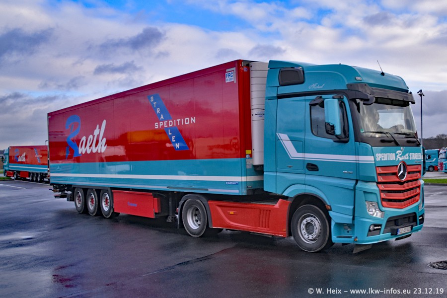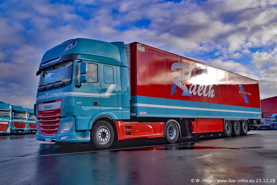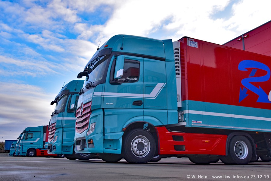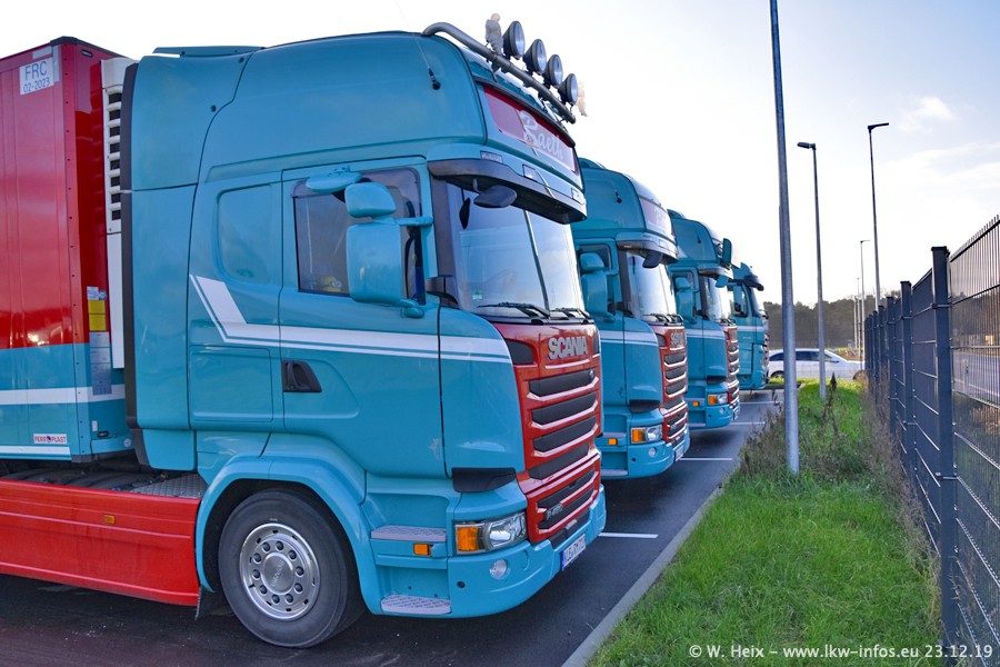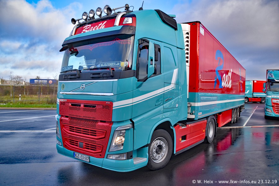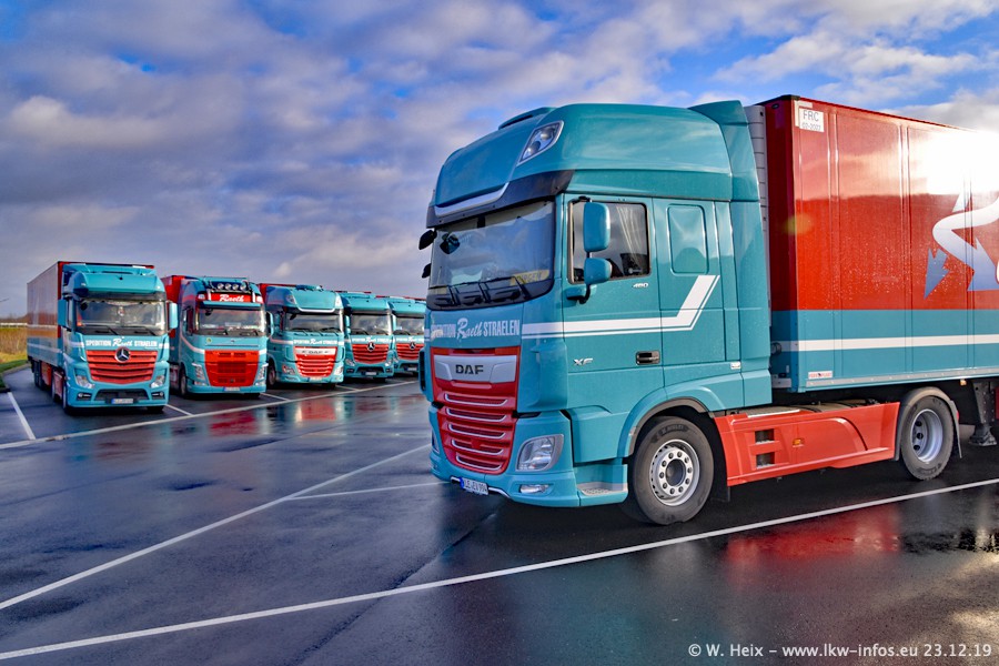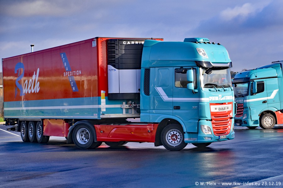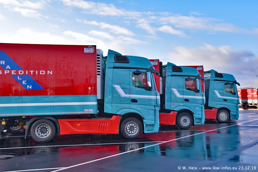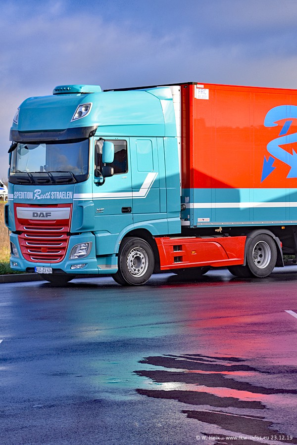 In diesem Jahr istr der Weihnachtsbesuch zugleich der erste Besuch auf dem neuen Firmengelände. Im Juli ist Raeth vom alten, viel zu klein gewordenen Gelände in Straelen, umgezogen nach Straelen-Herongen. Das neue Frimengelände liegt jetzt direkt an der A40 an der Abfahrt Herongen. Auf dem weitläufigen Gelände wurde ein kompletter Neubau mit Lagerhalle, Bürokomplex, Werkstatt und Waschstraße gebaut. Es gibt Platz für rund 40 LKW. Der Fuhrpark besteht aktuell aus rund 80 LKW. Viele Fahrzeuge stehen an den Wochenenden bei den Fahrern zuhause. Die "klassische Weihnachtsaufstellung " der LKW gibt es nicht. Aber gibt mir die Gelegenheit, viele Fahrzeuge einzeln zu fotografieren. Daher ist dieser Besuch mit 375 Fotos auch der größte bisher. Vielen Dank an Florian Brimmers für den freundlichen Empfang und für die Infos über die Firma.