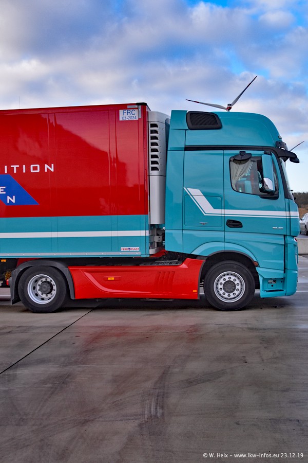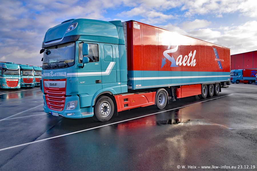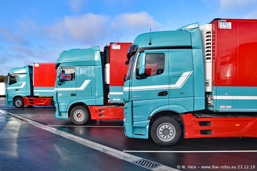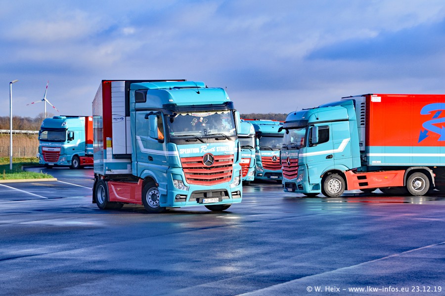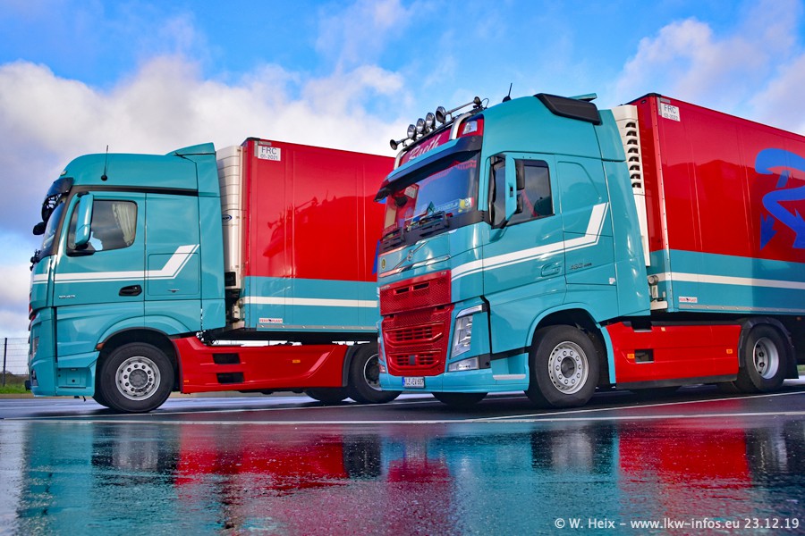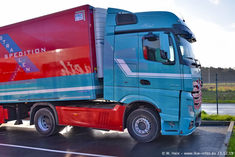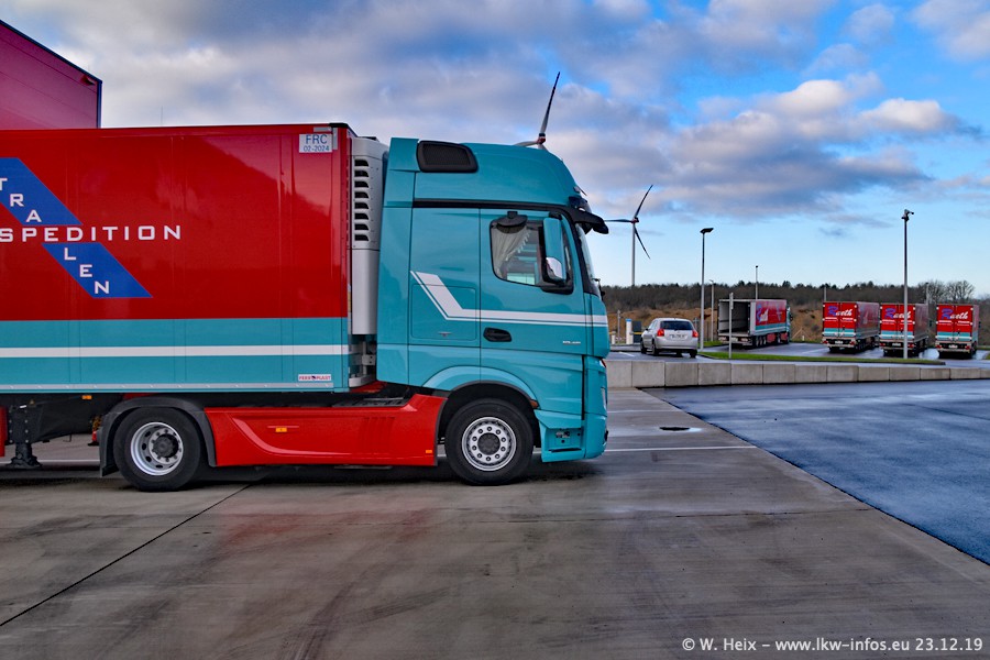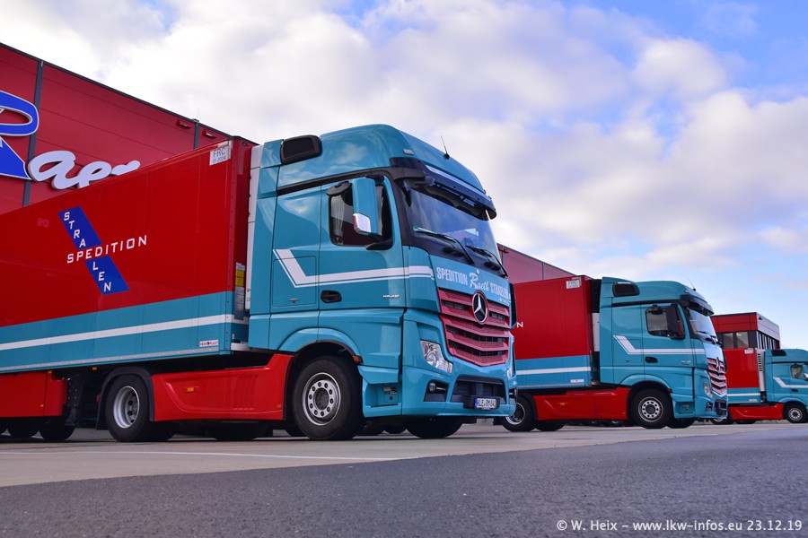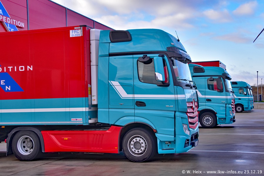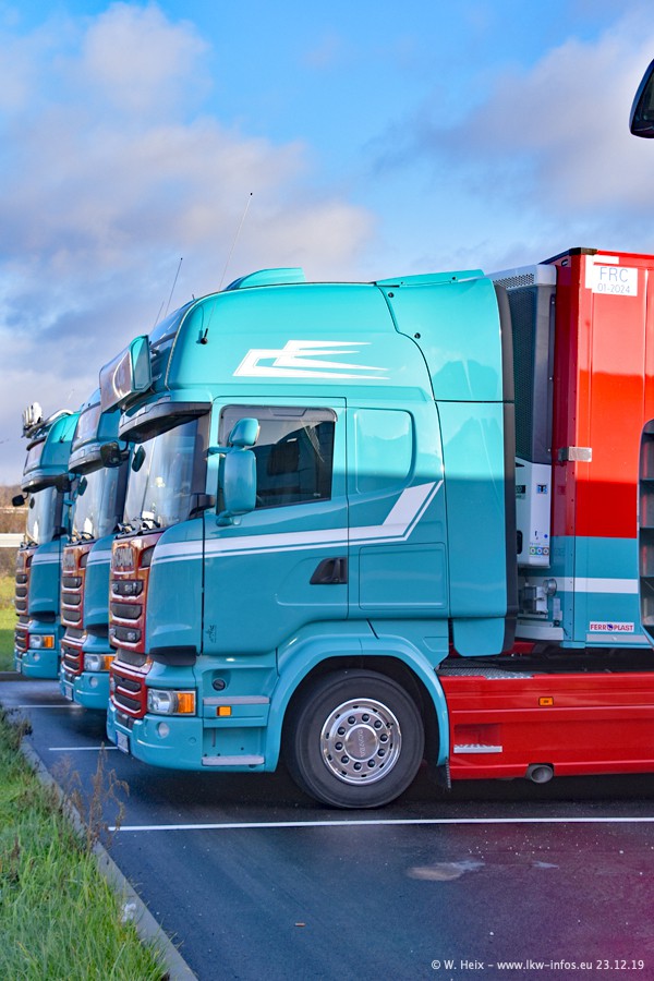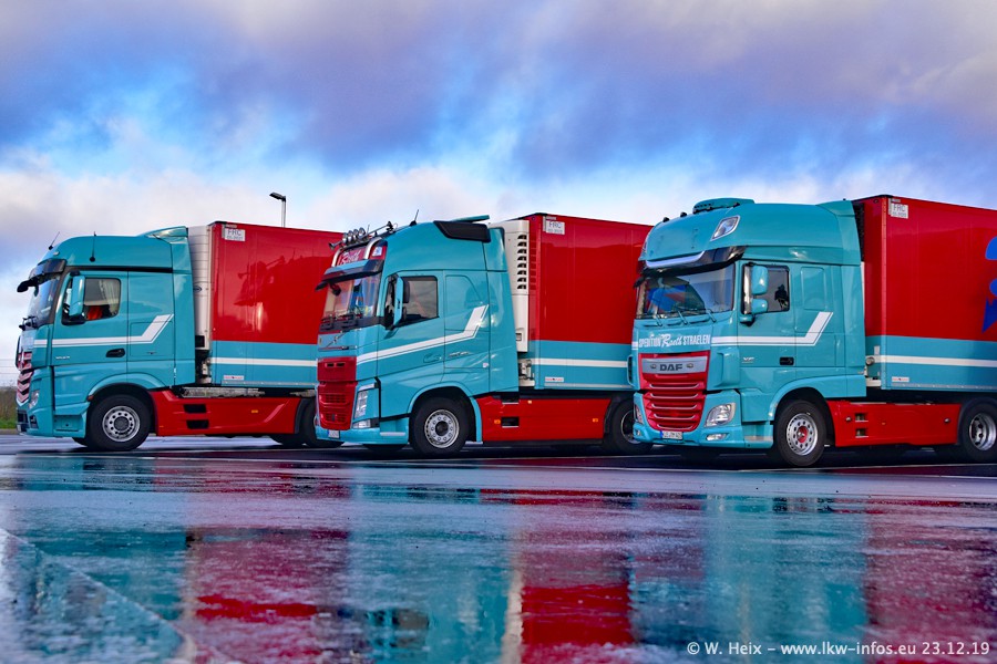 In diesem Jahr istr der Weihnachtsbesuch zugleich der erste Besuch auf dem neuen Firmengelände. Im Juli ist Raeth vom alten, viel zu klein gewordenen Gelände in Straelen, umgezogen nach Straelen-Herongen. Das neue Frimengelände liegt jetzt direkt an der A40 an der Abfahrt Herongen. Auf dem weitläufigen Gelände wurde ein kompletter Neubau mit Lagerhalle, Bürokomplex, Werkstatt und Waschstraße gebaut. Es gibt Platz für rund 40 LKW. Der Fuhrpark besteht aktuell aus rund 80 LKW. Viele Fahrzeuge stehen an den Wochenenden bei den Fahrern zuhause. Die "klassische Weihnachtsaufstellung " der LKW gibt es nicht. Aber gibt mir die Gelegenheit, viele Fahrzeuge einzeln zu fotografieren. Daher ist dieser Besuch mit 375 Fotos auch der größte bisher. Vielen Dank an Florian Brimmers für den freundlichen Empfang und für die Infos über die Firma.