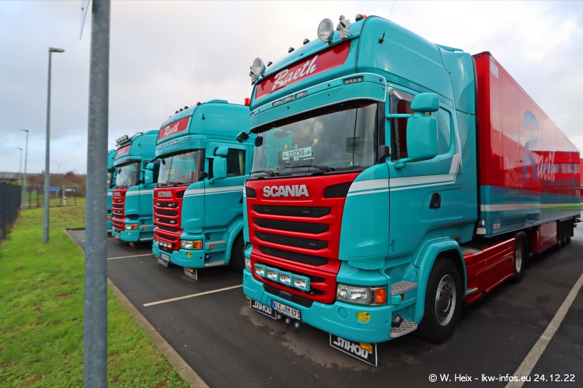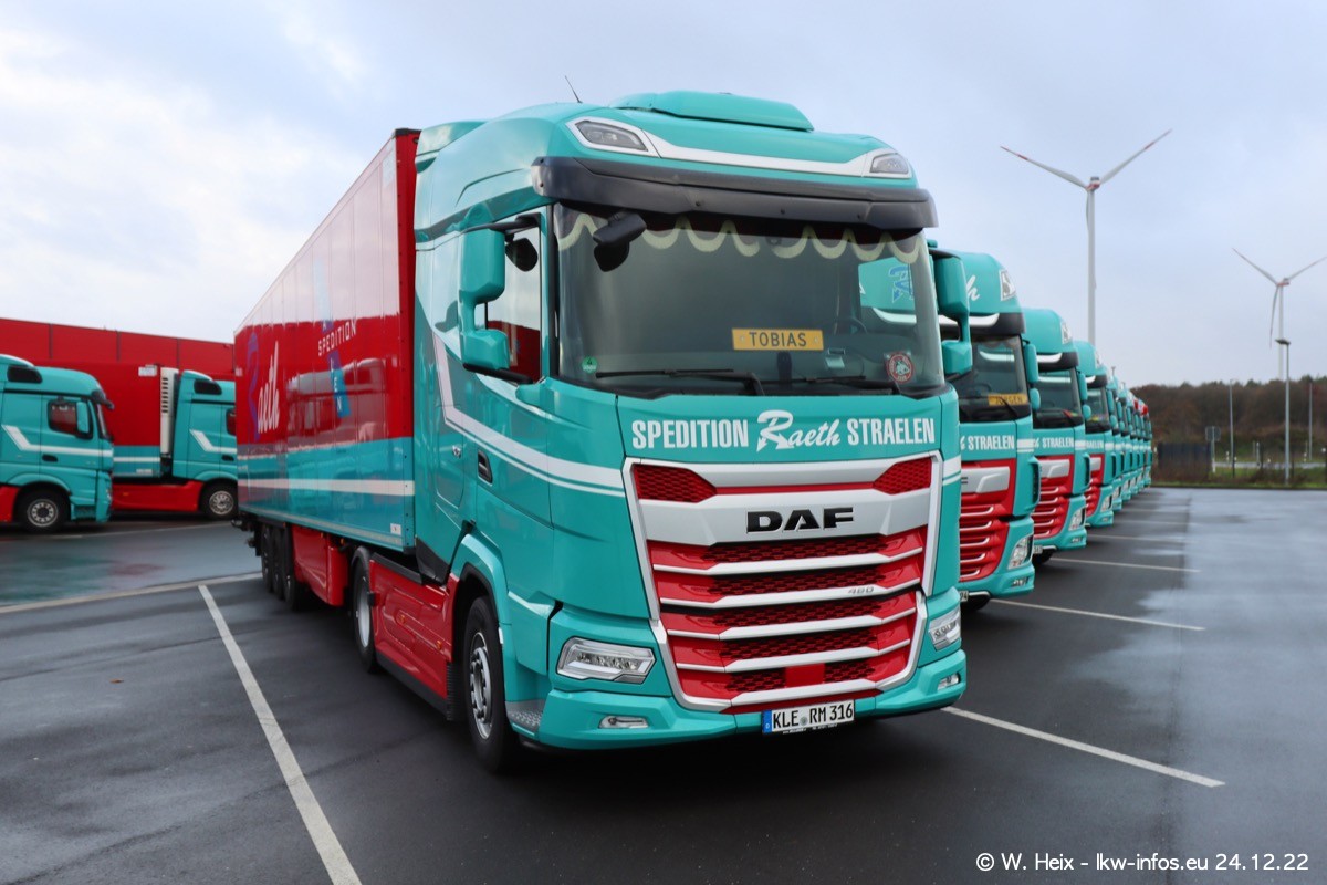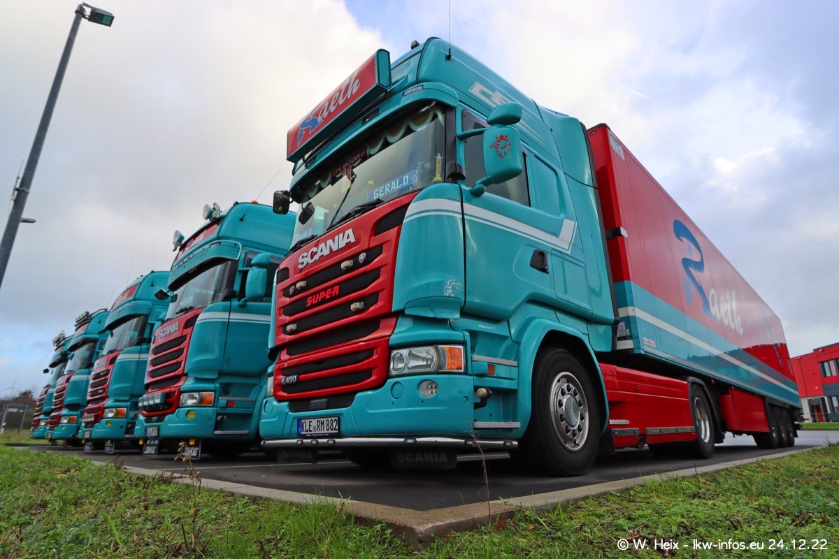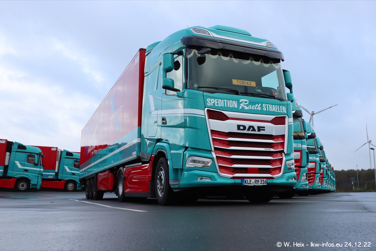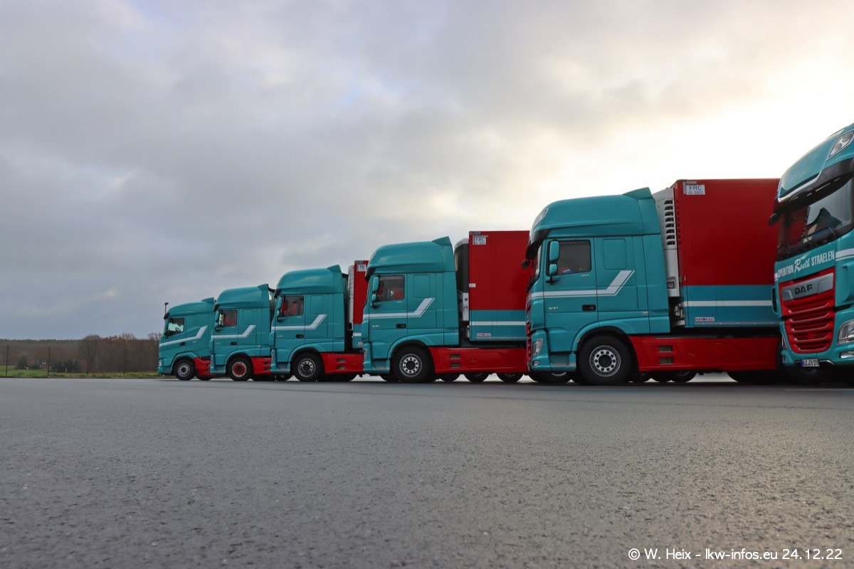 Dieses Jahr hat es mit meinem traditionellen Weihnachtsbesuch wieder geklappt. Es war nur ein Teil der Fahrzeuge zuhause, denn viele Fahrer nehmen ihren LKW mit nach Hause am Wochenende. Neu ist der erste DAF XG und ein Mercedes-Benz Actros L ist ebenfalls neu.