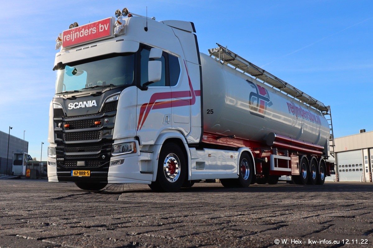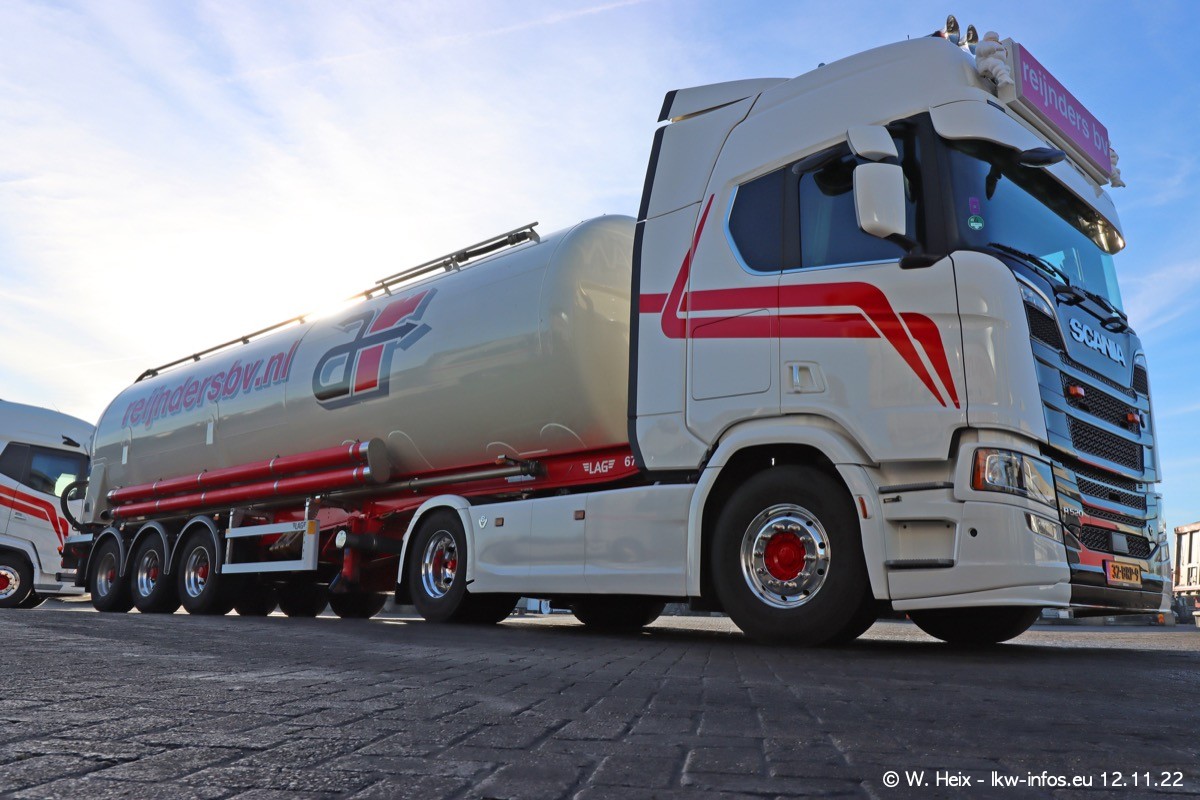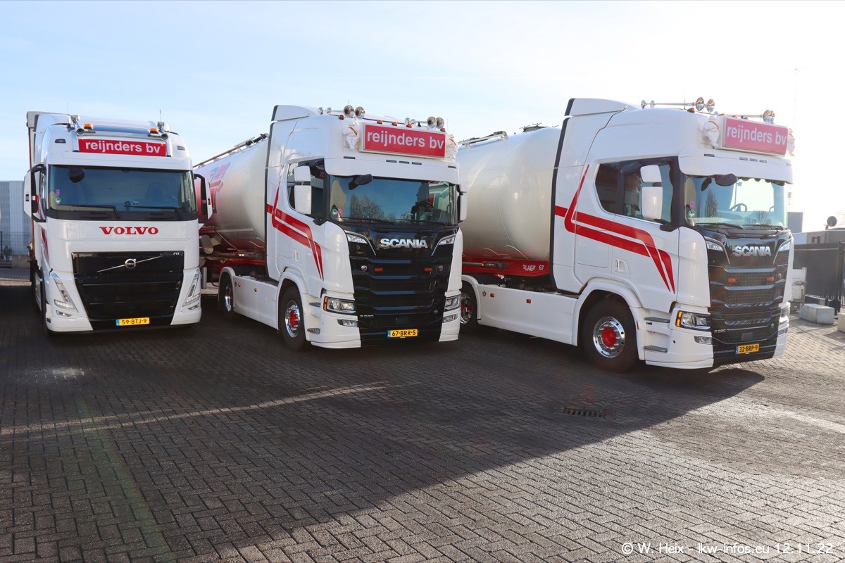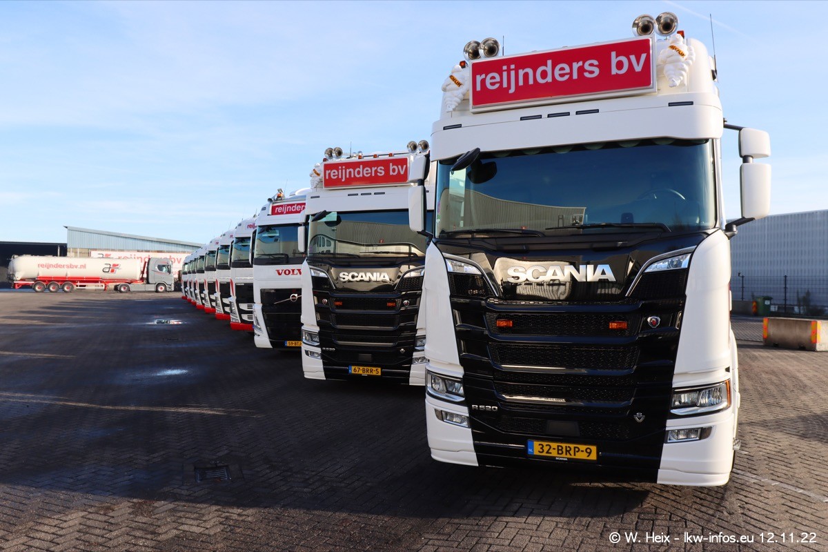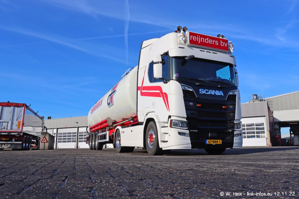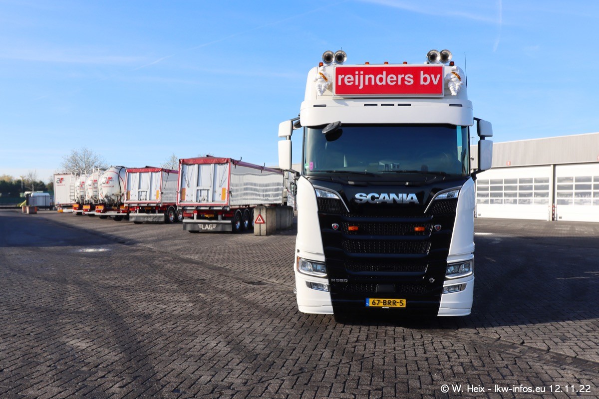 Diesmal war ich für ein Fotoshooting bei Reijnders zu Besuch. Normalerweise stehen samstags schon recht früh am Vormittag alle LKW gewaschen in einer Reihe "für das Wochenende". Das war heute anders. Im Mittelpunkt standen natürlch die neuen LKW (DAF XG+, VOLVO FH 5, SCANIA S V8 NextGen), da diese auch ein neues Design bekommen haben. Die beiden "älteren" SCANIA S 520 V8 NextGen wurden optisch angepasst, die ersten Bilder gab es ja schon vom letzten Besuch zu sehen im Teil 5. Neu ist ein junger gebrauchter grauer SCANIA 580 S V8 NextGen. Auch dieses Fahrzeug wurde optisch an das neue Design angepasst. Auf den letzten Fotos gibt es einen SCANIA 530 S V8 NextGen in der eigenen Werkstatt zu sehen. Der wird bald auch auf der Straße sein. Das Wetter war super und ausreichend Platz ist auf dem Gelände auch vorhanden, um die LKW zu fotografieren.