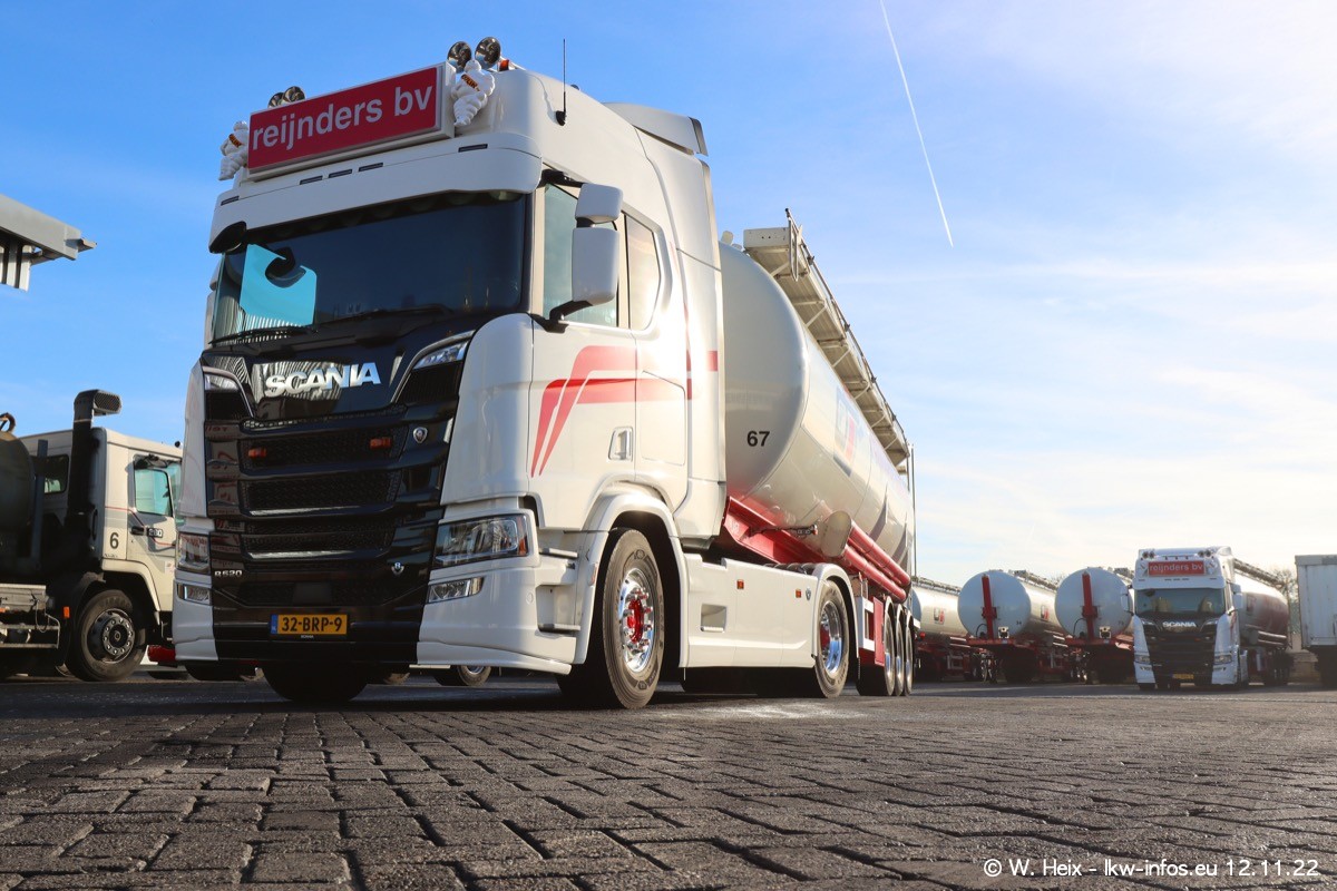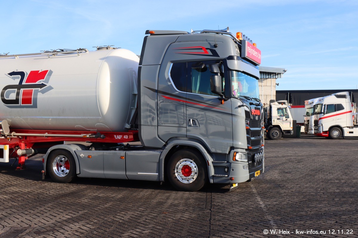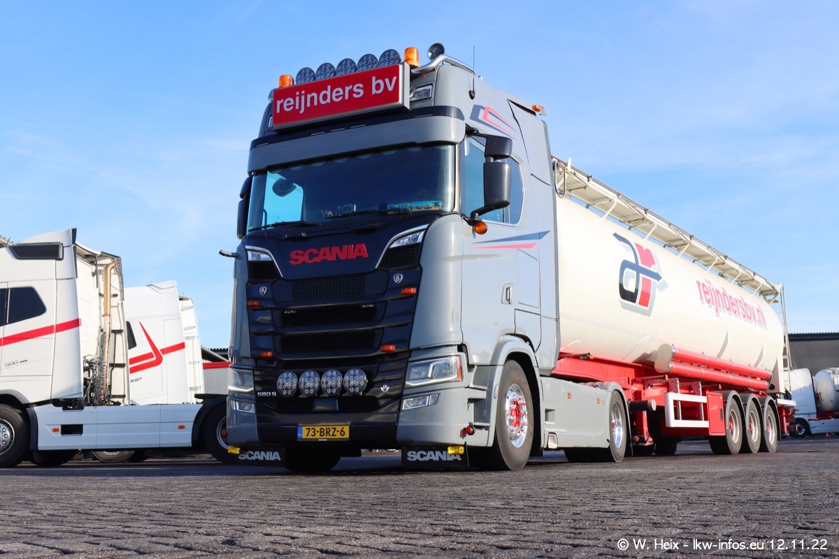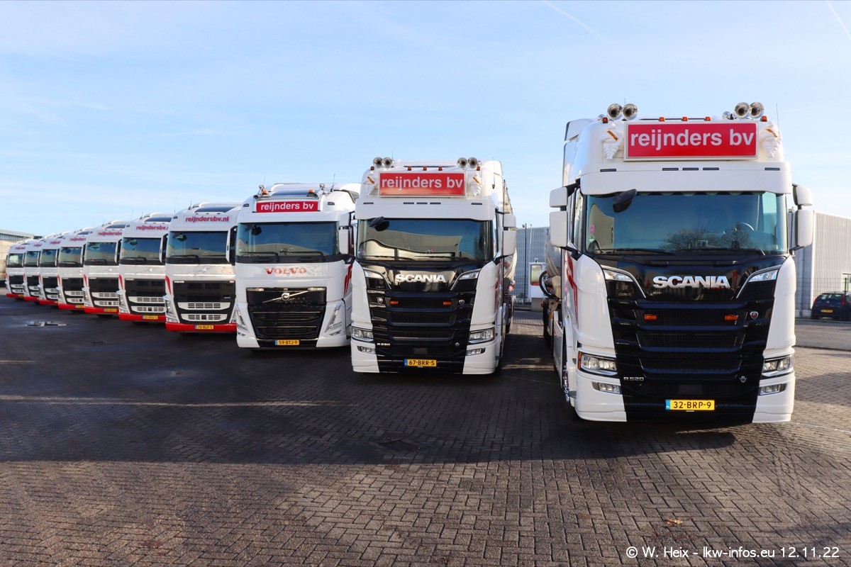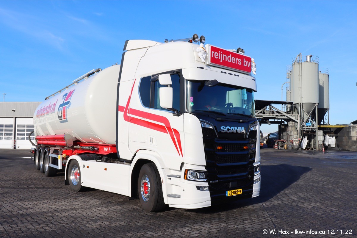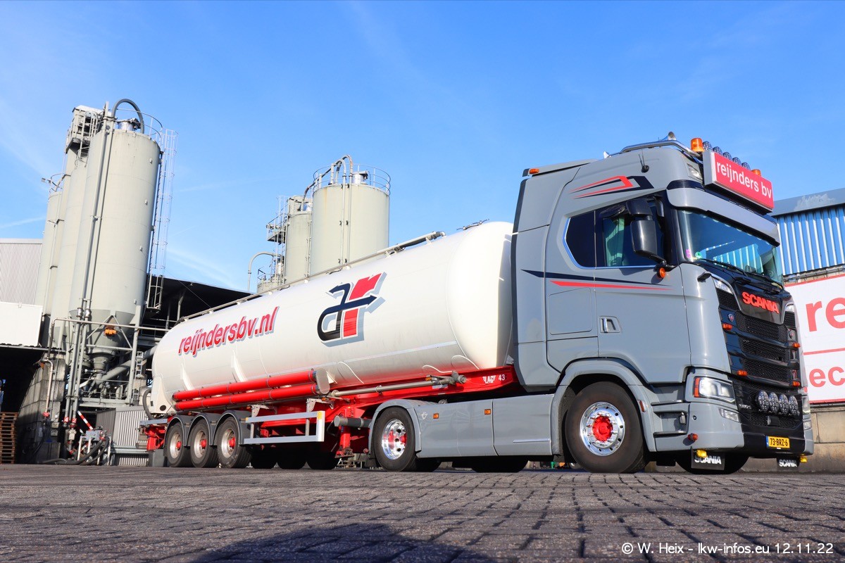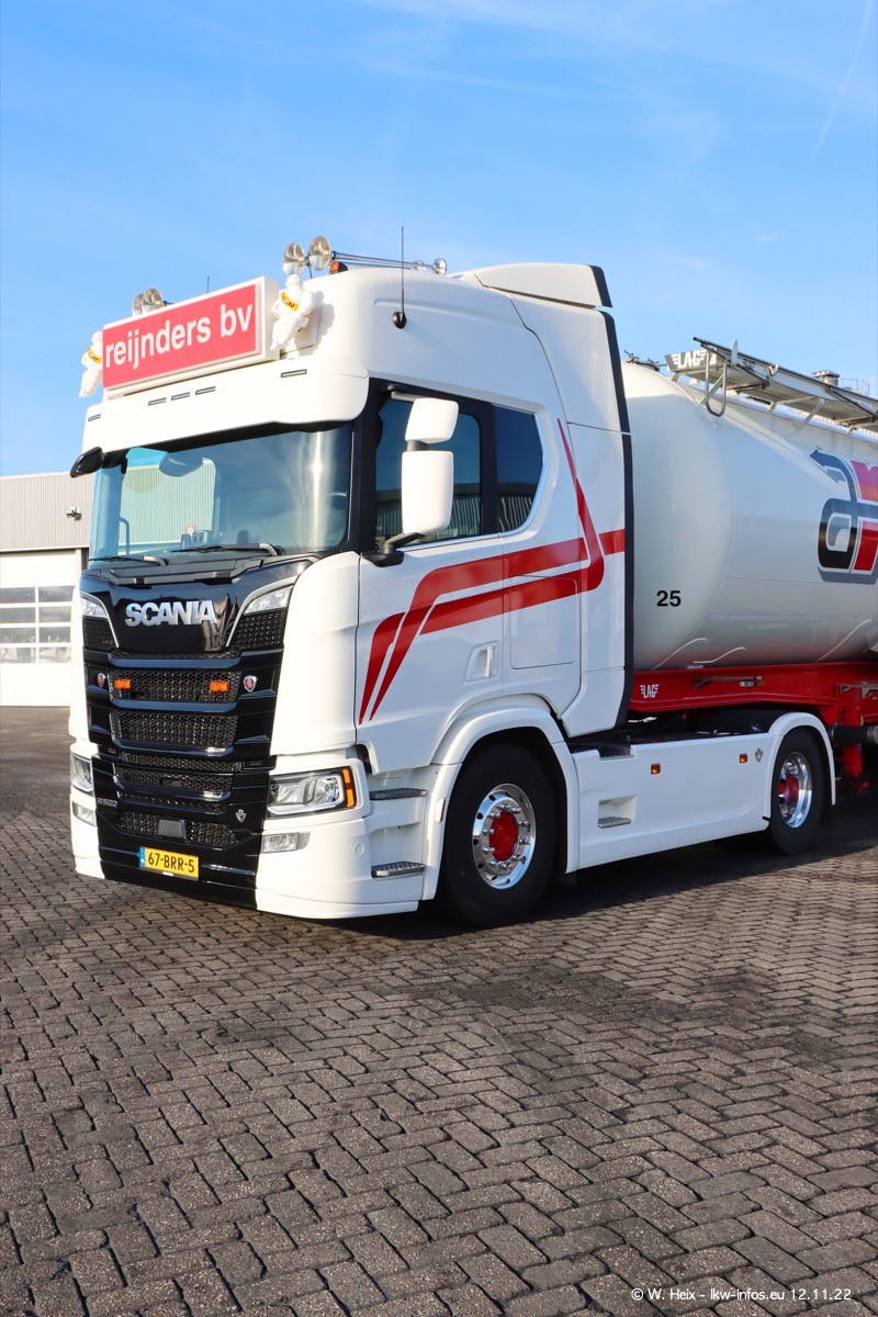 Diesmal war ich für ein Fotoshooting bei Reijnders zu Besuch. Normalerweise stehen samstags schon recht früh am Vormittag alle LKW gewaschen in einer Reihe "für das Wochenende". Das war heute anders. Im Mittelpunkt standen natürlch die neuen LKW (DAF XG+, VOLVO FH 5, SCANIA S V8 NextGen), da diese auch ein neues Design bekommen haben. Die beiden "älteren" SCANIA S 520 V8 NextGen wurden optisch angepasst, die ersten Bilder gab es ja schon vom letzten Besuch zu sehen im Teil 5. Neu ist ein junger gebrauchter grauer SCANIA 580 S V8 NextGen. Auch dieses Fahrzeug wurde optisch an das neue Design angepasst. Auf den letzten Fotos gibt es einen SCANIA 530 S V8 NextGen in der eigenen Werkstatt zu sehen. Der wird bald auch auf der Straße sein. Das Wetter war super und ausreichend Platz ist auf dem Gelände auch vorhanden, um die LKW zu fotografieren.