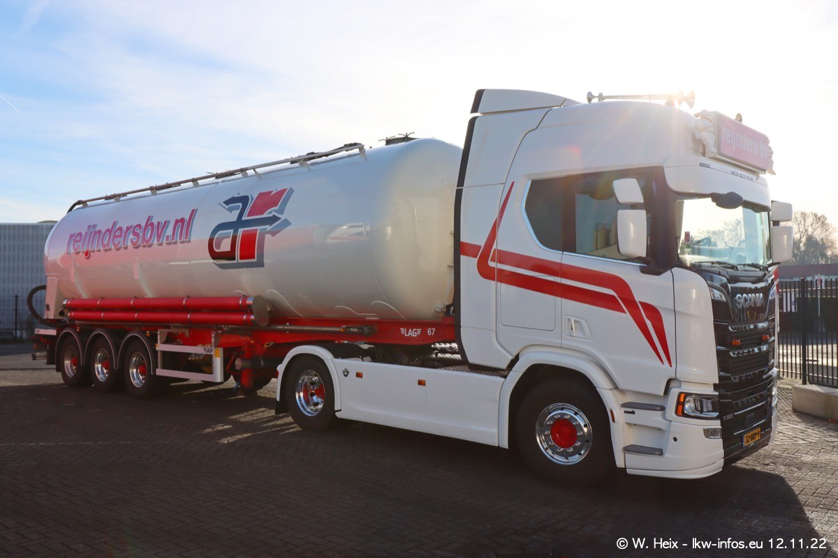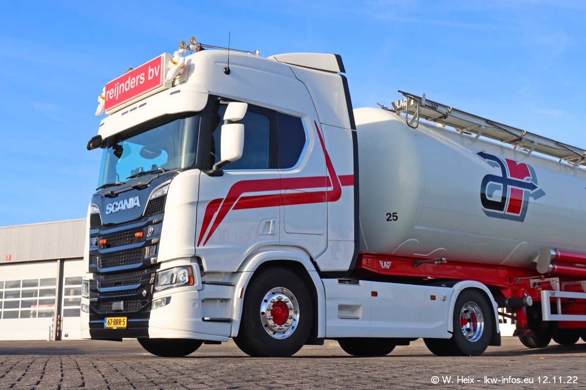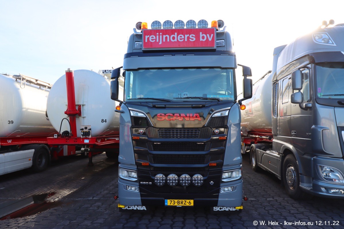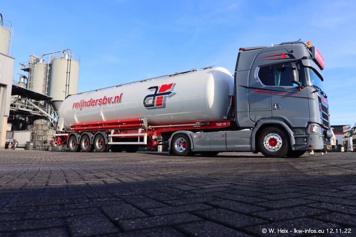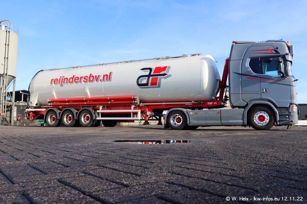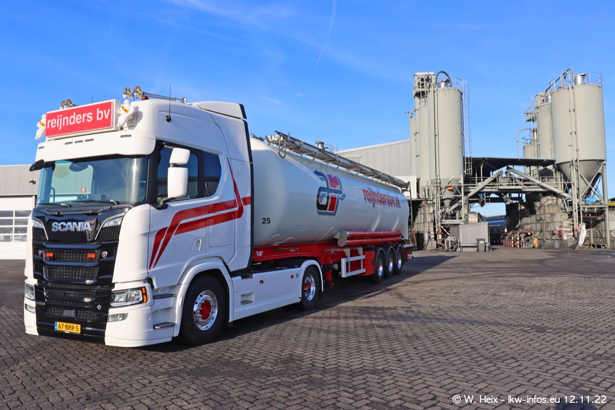 Diesmal war ich für ein Fotoshooting bei Reijnders zu Besuch. Normalerweise stehen samstags schon recht früh am Vormittag alle LKW gewaschen in einer Reihe "für das Wochenende". Das war heute anders. Im Mittelpunkt standen natürlch die neuen LKW (DAF XG+, VOLVO FH 5, SCANIA S V8 NextGen), da diese auch ein neues Design bekommen haben. Die beiden "älteren" SCANIA S 520 V8 NextGen wurden optisch angepasst, die ersten Bilder gab es ja schon vom letzten Besuch zu sehen im Teil 5. Neu ist ein junger gebrauchter grauer SCANIA 580 S V8 NextGen. Auch dieses Fahrzeug wurde optisch an das neue Design angepasst. Auf den letzten Fotos gibt es einen SCANIA 530 S V8 NextGen in der eigenen Werkstatt zu sehen. Der wird bald auch auf der Straße sein. Das Wetter war super und ausreichend Platz ist auf dem Gelände auch vorhanden, um die LKW zu fotografieren.