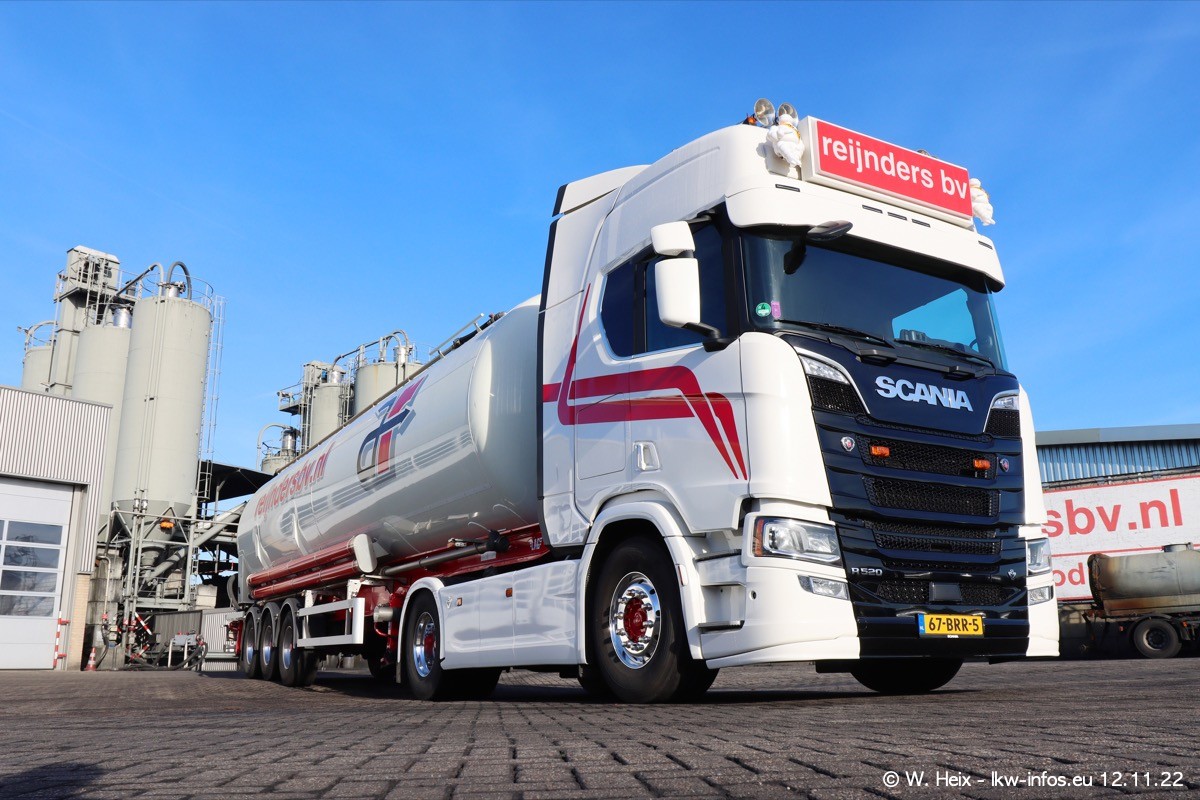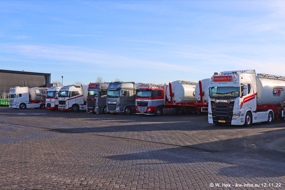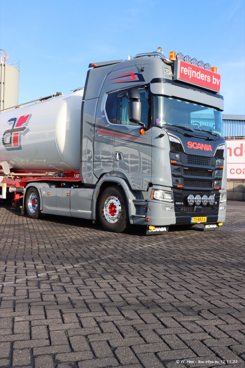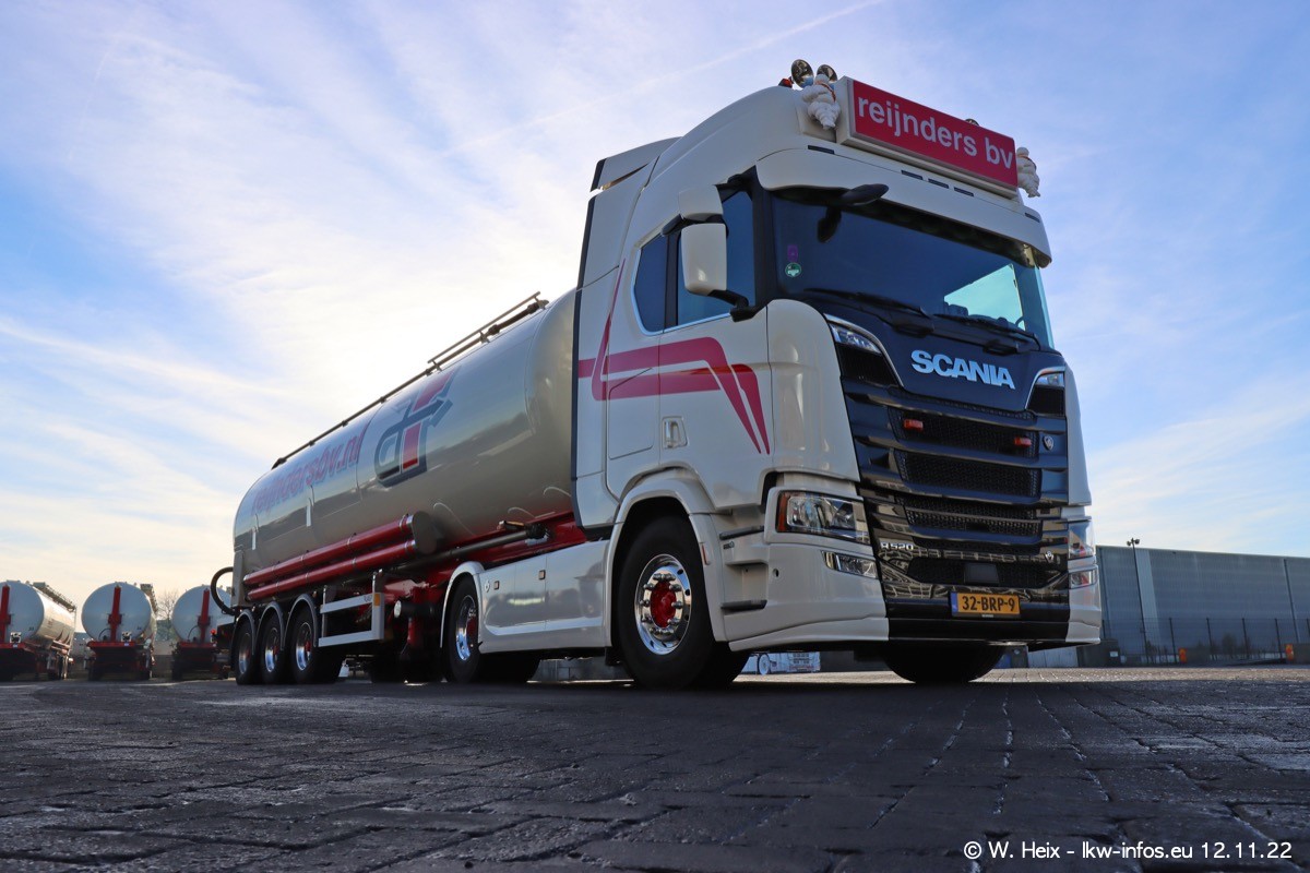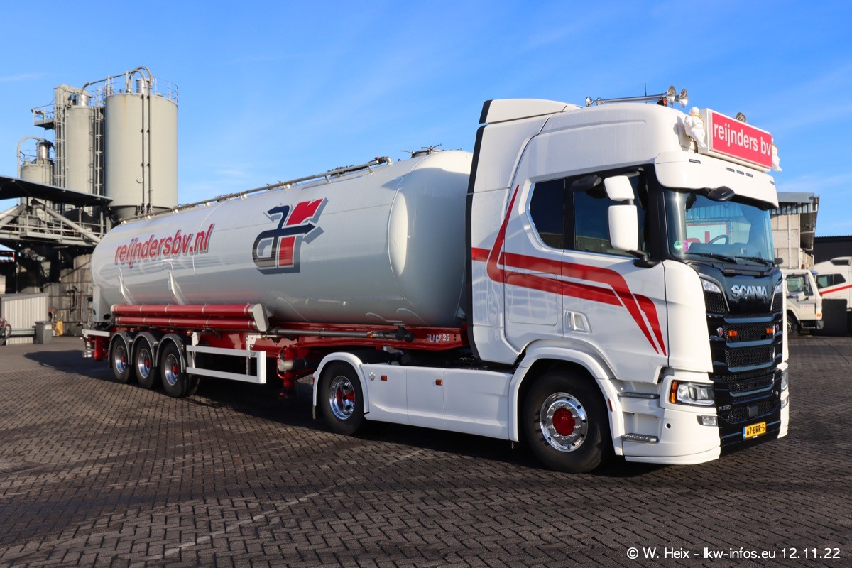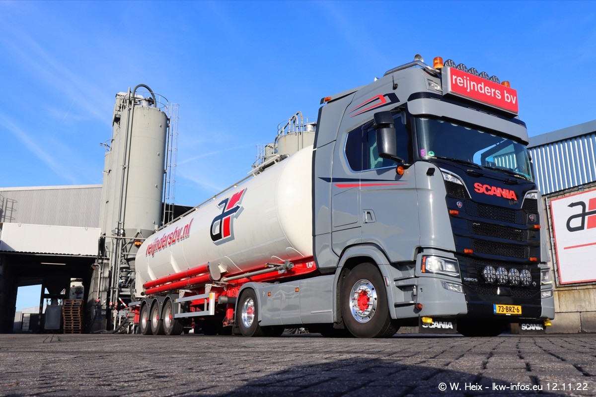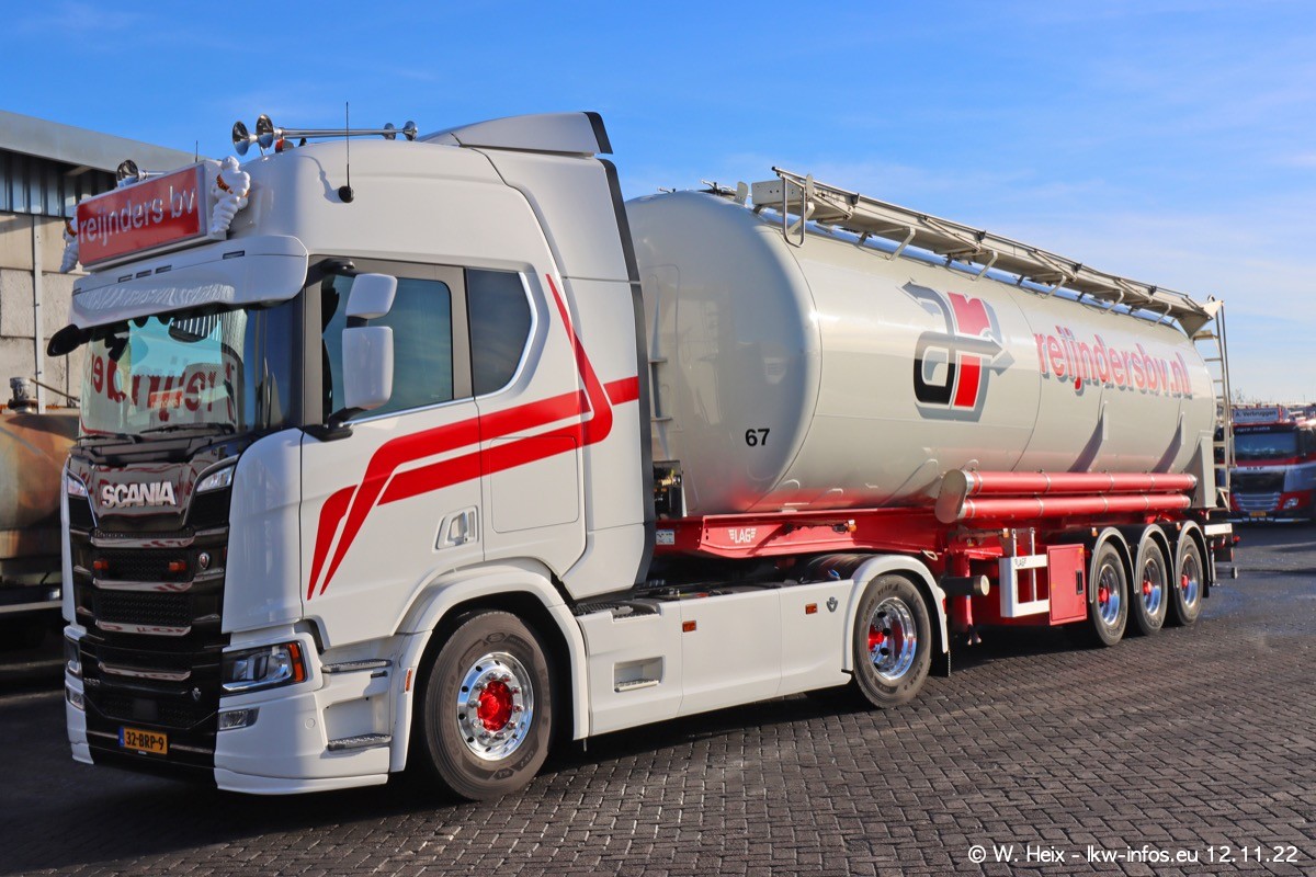 Diesmal war ich für ein Fotoshooting bei Reijnders zu Besuch. Normalerweise stehen samstags schon recht früh am Vormittag alle LKW gewaschen in einer Reihe "für das Wochenende". Das war heute anders. Im Mittelpunkt standen natürlch die neuen LKW (DAF XG+, VOLVO FH 5, SCANIA S V8 NextGen), da diese auch ein neues Design bekommen haben. Die beiden "älteren" SCANIA S 520 V8 NextGen wurden optisch angepasst, die ersten Bilder gab es ja schon vom letzten Besuch zu sehen im Teil 5. Neu ist ein junger gebrauchter grauer SCANIA 580 S V8 NextGen. Auch dieses Fahrzeug wurde optisch an das neue Design angepasst. Auf den letzten Fotos gibt es einen SCANIA 530 S V8 NextGen in der eigenen Werkstatt zu sehen. Der wird bald auch auf der Straße sein. Das Wetter war super und ausreichend Platz ist auf dem Gelände auch vorhanden, um die LKW zu fotografieren.