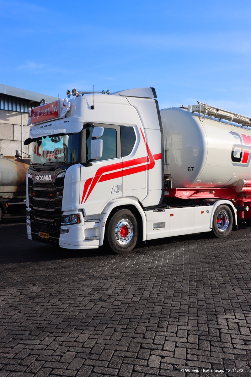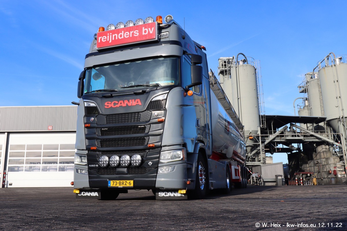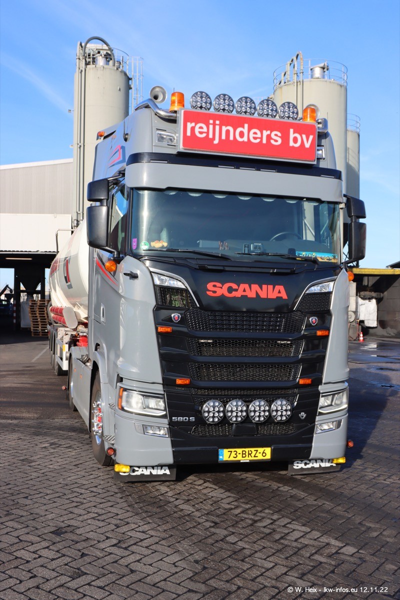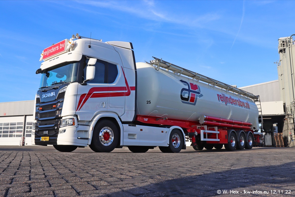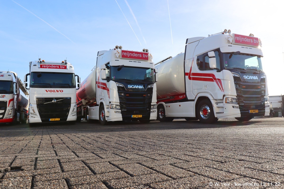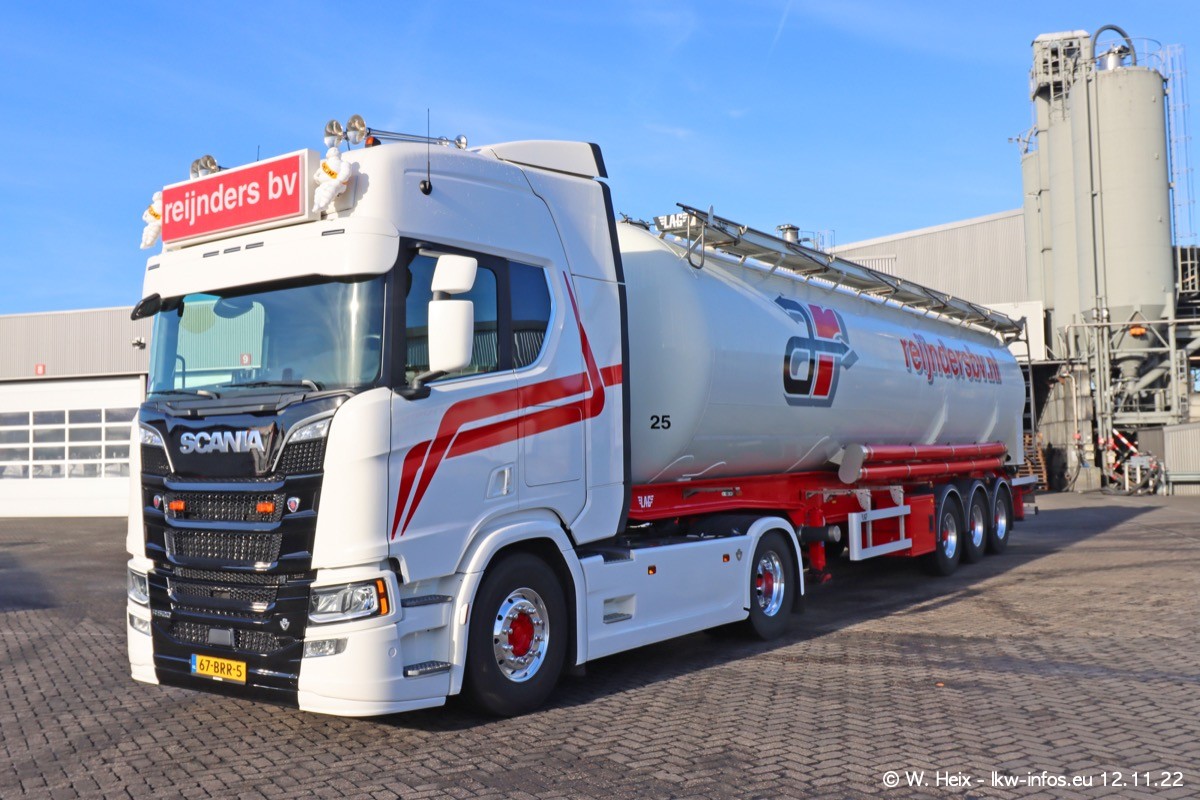 Diesmal war ich für ein Fotoshooting bei Reijnders zu Besuch. Normalerweise stehen samstags schon recht früh am Vormittag alle LKW gewaschen in einer Reihe "für das Wochenende". Das war heute anders. Im Mittelpunkt standen natürlch die neuen LKW (DAF XG+, VOLVO FH 5, SCANIA S V8 NextGen), da diese auch ein neues Design bekommen haben. Die beiden "älteren" SCANIA S 520 V8 NextGen wurden optisch angepasst, die ersten Bilder gab es ja schon vom letzten Besuch zu sehen im Teil 5. Neu ist ein junger gebrauchter grauer SCANIA 580 S V8 NextGen. Auch dieses Fahrzeug wurde optisch an das neue Design angepasst. Auf den letzten Fotos gibt es einen SCANIA 530 S V8 NextGen in der eigenen Werkstatt zu sehen. Der wird bald auch auf der Straße sein. Das Wetter war super und ausreichend Platz ist auf dem Gelände auch vorhanden, um die LKW zu fotografieren.