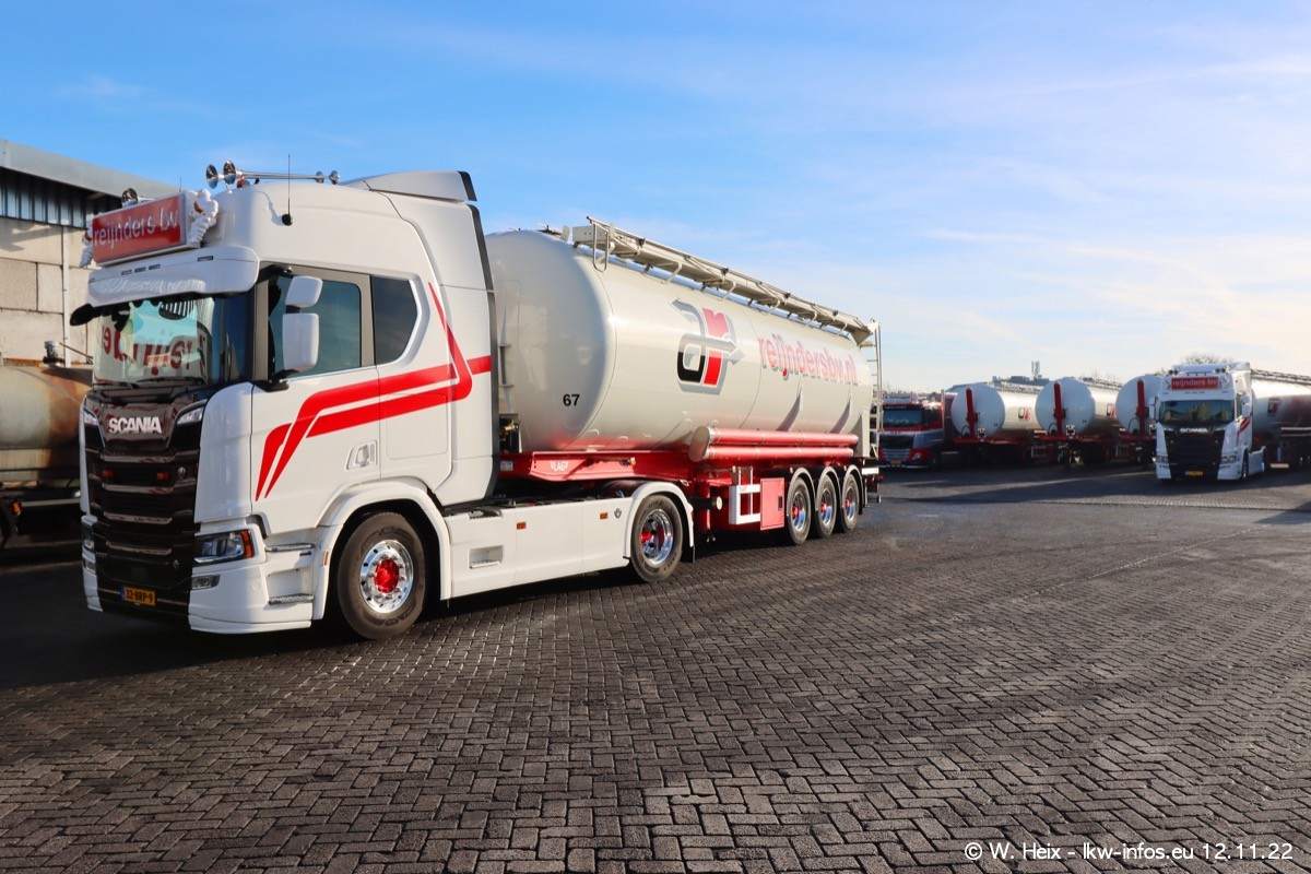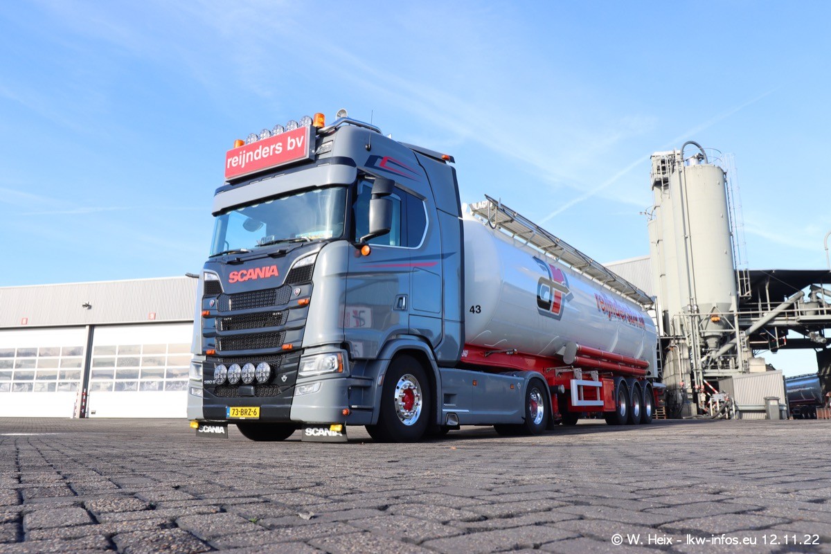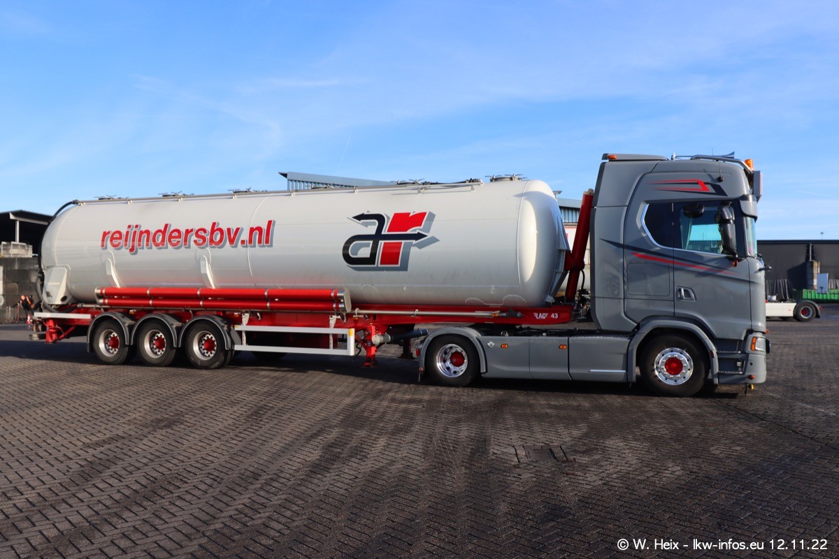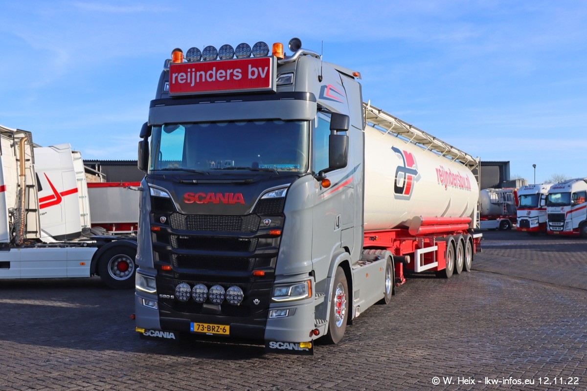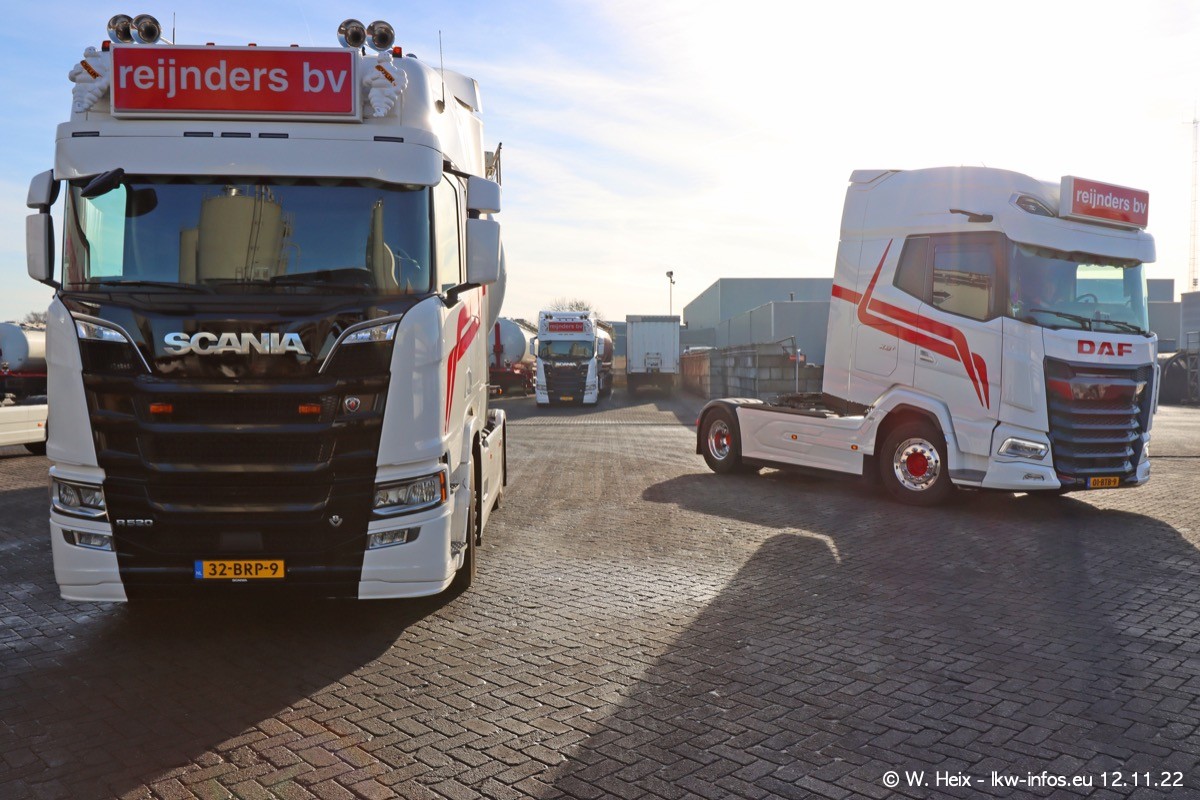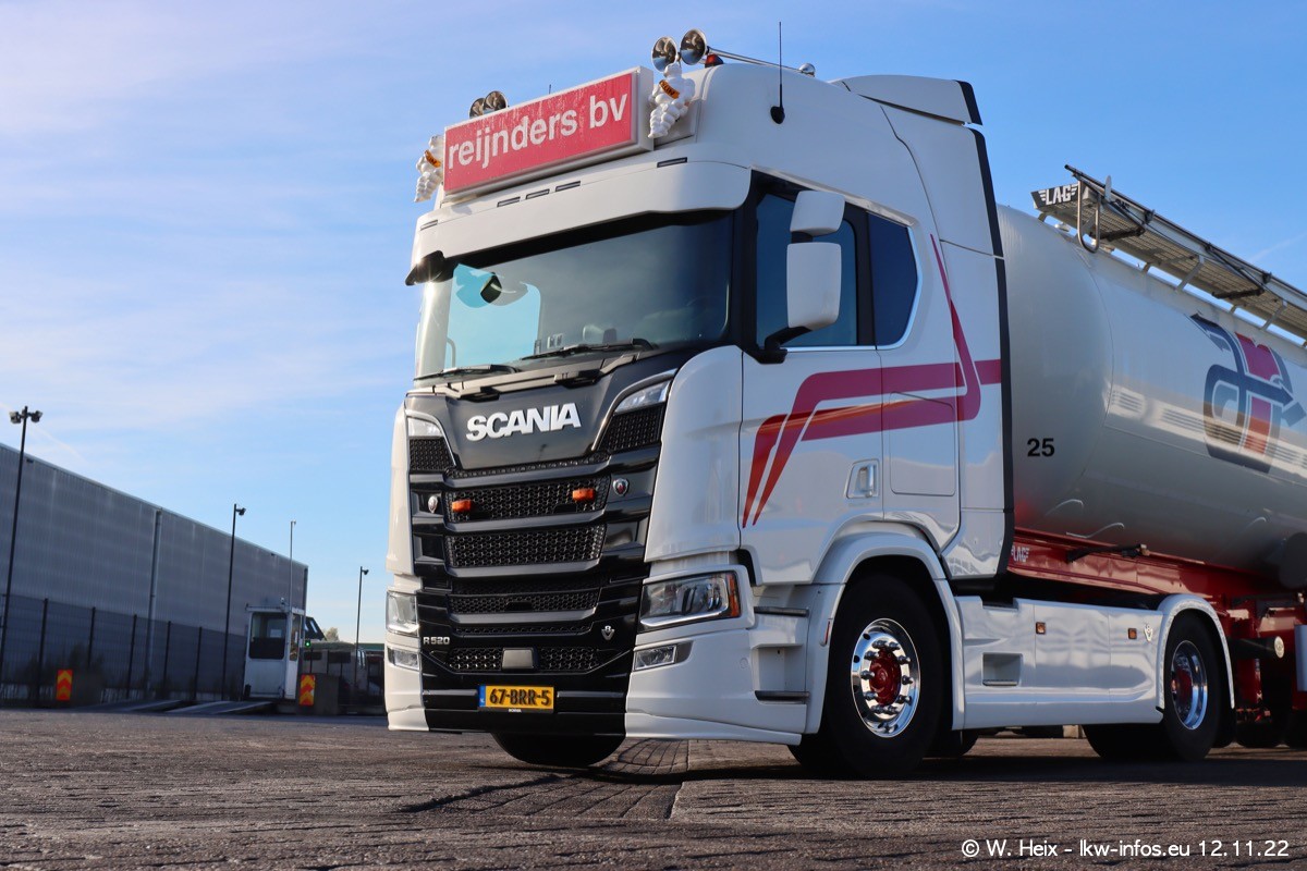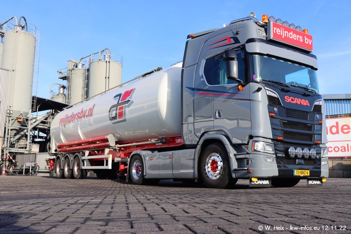 Diesmal war ich für ein Fotoshooting bei Reijnders zu Besuch. Normalerweise stehen samstags schon recht früh am Vormittag alle LKW gewaschen in einer Reihe "für das Wochenende". Das war heute anders. Im Mittelpunkt standen natürlch die neuen LKW (DAF XG+, VOLVO FH 5, SCANIA S V8 NextGen), da diese auch ein neues Design bekommen haben. Die beiden "älteren" SCANIA S 520 V8 NextGen wurden optisch angepasst, die ersten Bilder gab es ja schon vom letzten Besuch zu sehen im Teil 5. Neu ist ein junger gebrauchter grauer SCANIA 580 S V8 NextGen. Auch dieses Fahrzeug wurde optisch an das neue Design angepasst. Auf den letzten Fotos gibt es einen SCANIA 530 S V8 NextGen in der eigenen Werkstatt zu sehen. Der wird bald auch auf der Straße sein. Das Wetter war super und ausreichend Platz ist auf dem Gelände auch vorhanden, um die LKW zu fotografieren.