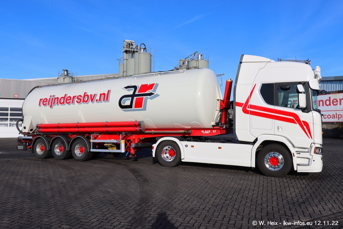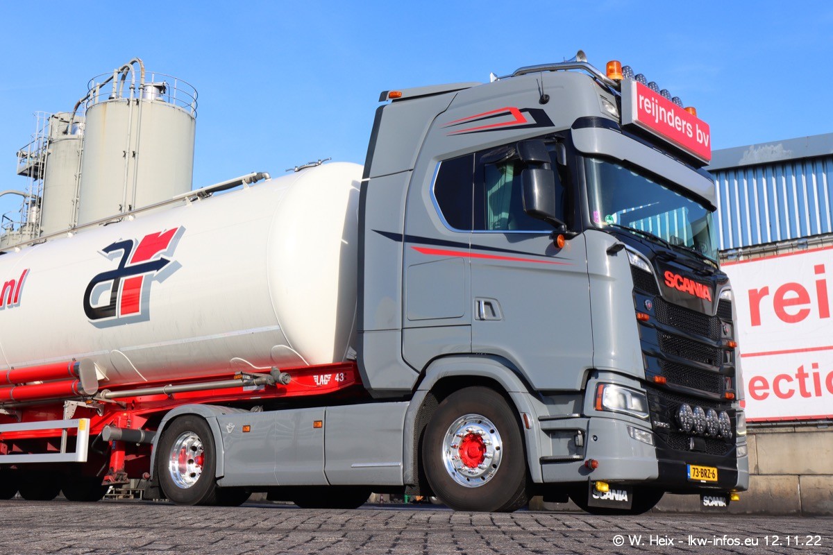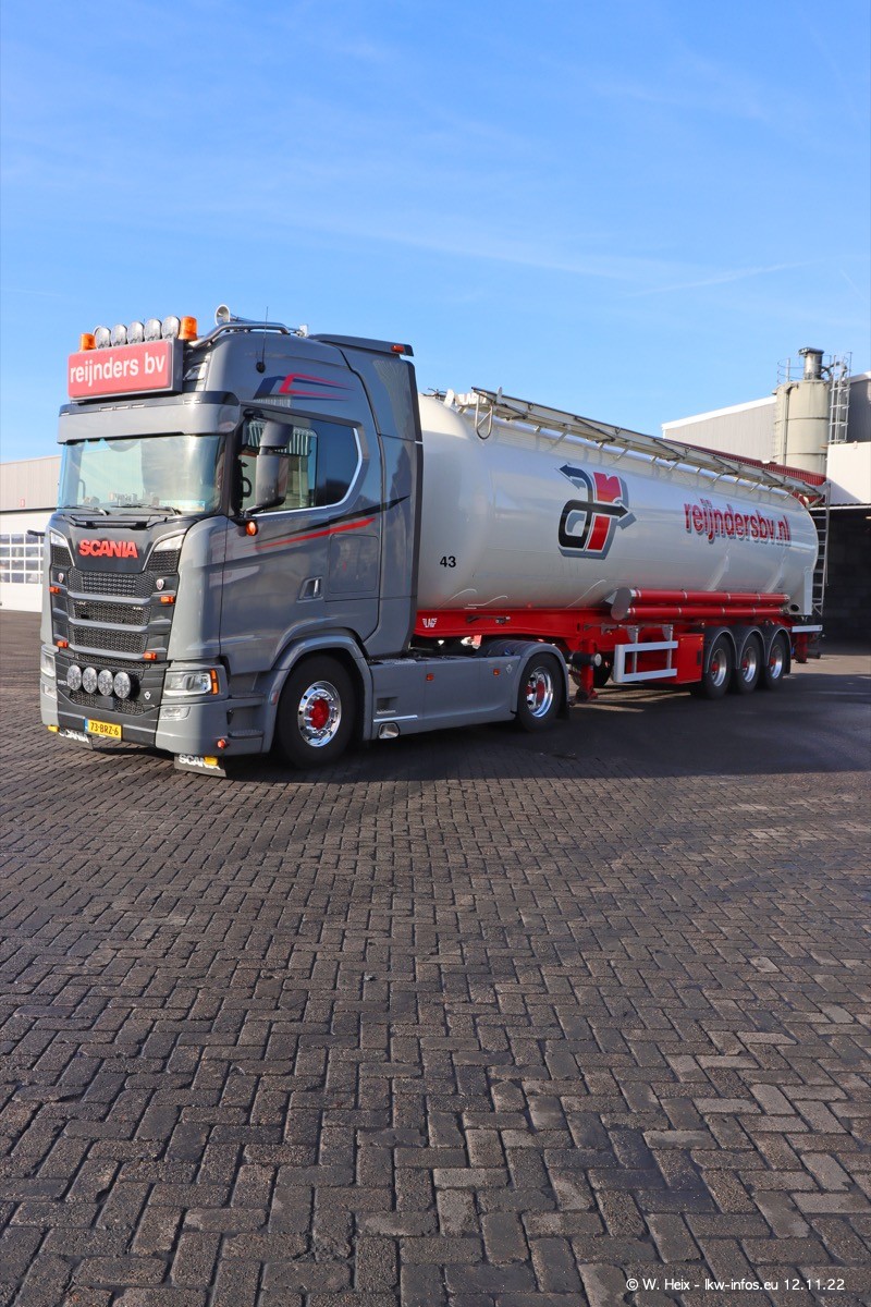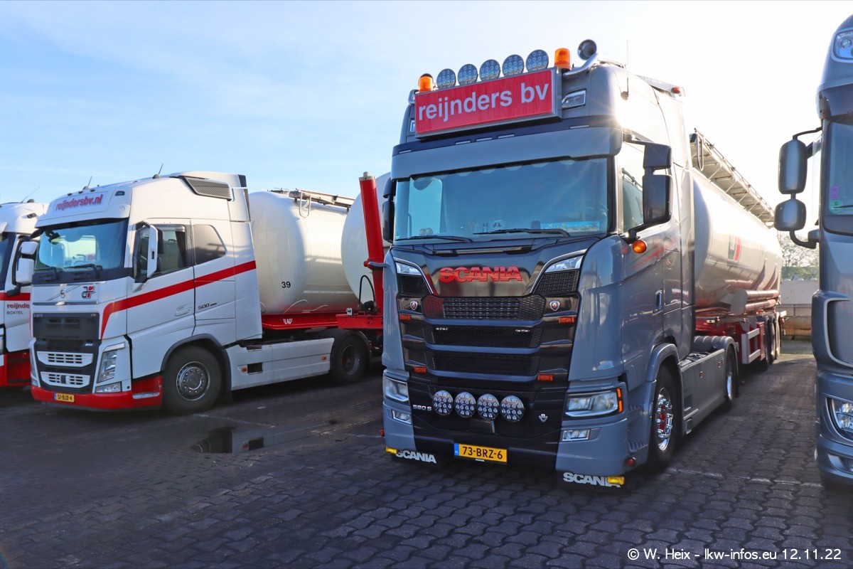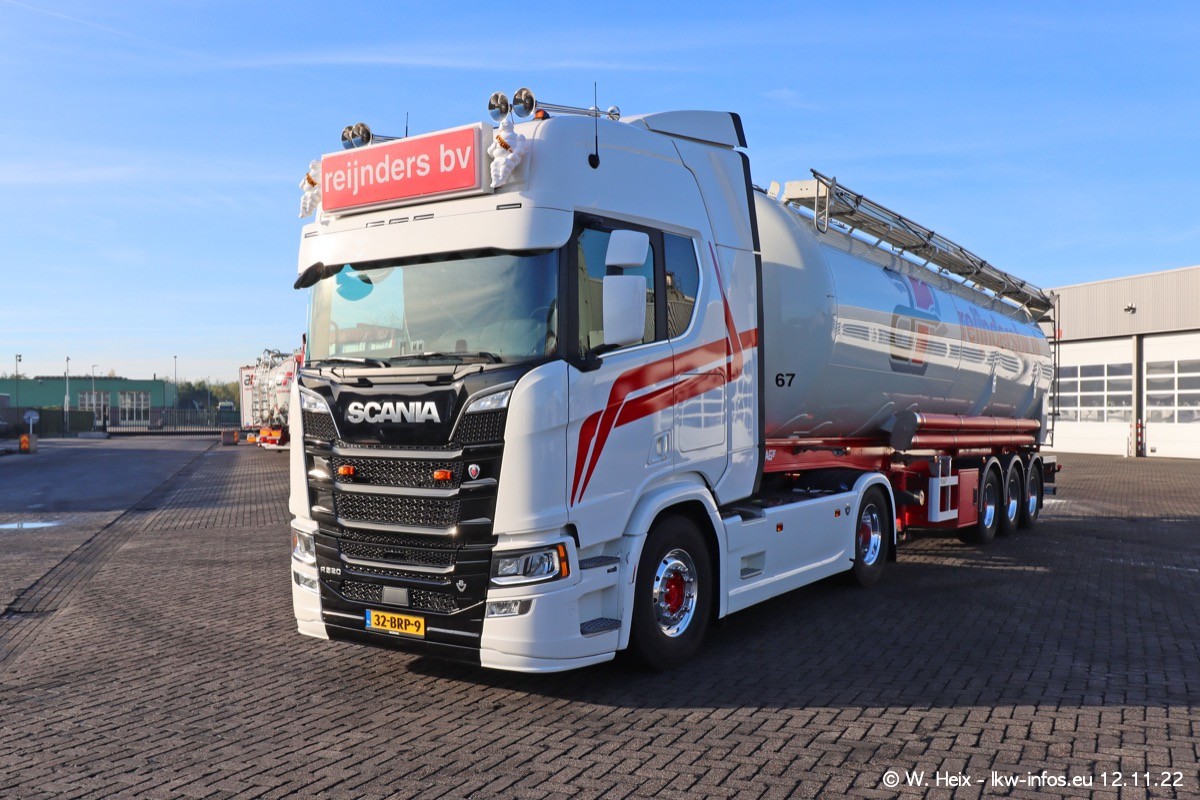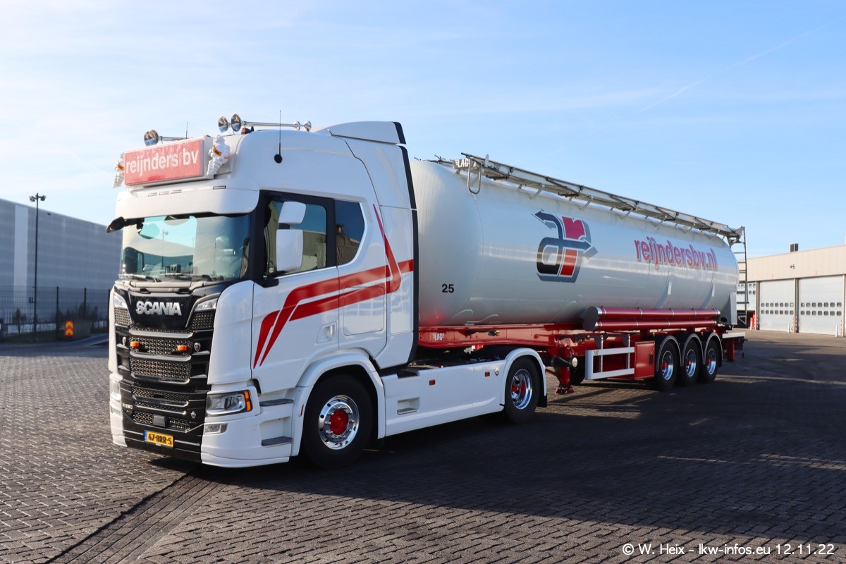 Diesmal war ich für ein Fotoshooting bei Reijnders zu Besuch. Normalerweise stehen samstags schon recht früh am Vormittag alle LKW gewaschen in einer Reihe "für das Wochenende". Das war heute anders. Im Mittelpunkt standen natürlch die neuen LKW (DAF XG+, VOLVO FH 5, SCANIA S V8 NextGen), da diese auch ein neues Design bekommen haben. Die beiden "älteren" SCANIA S 520 V8 NextGen wurden optisch angepasst, die ersten Bilder gab es ja schon vom letzten Besuch zu sehen im Teil 5. Neu ist ein junger gebrauchter grauer SCANIA 580 S V8 NextGen. Auch dieses Fahrzeug wurde optisch an das neue Design angepasst. Auf den letzten Fotos gibt es einen SCANIA 530 S V8 NextGen in der eigenen Werkstatt zu sehen. Der wird bald auch auf der Straße sein. Das Wetter war super und ausreichend Platz ist auf dem Gelände auch vorhanden, um die LKW zu fotografieren.