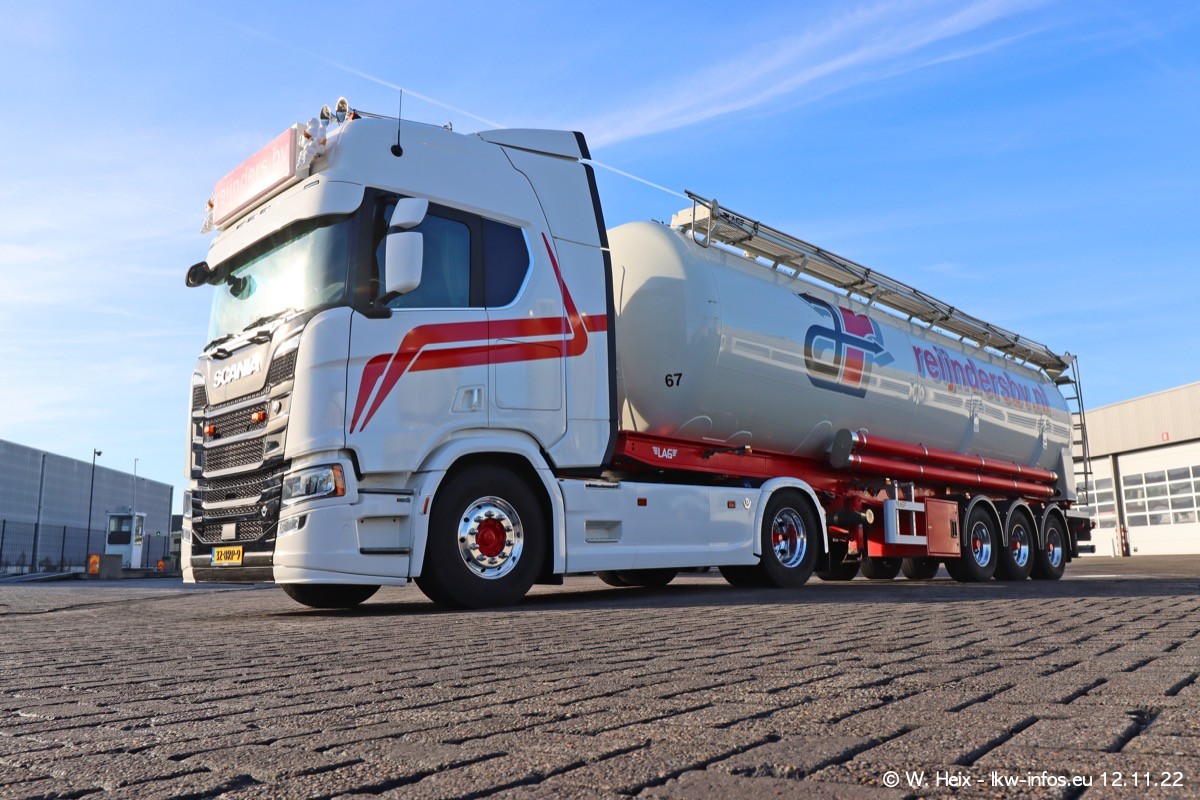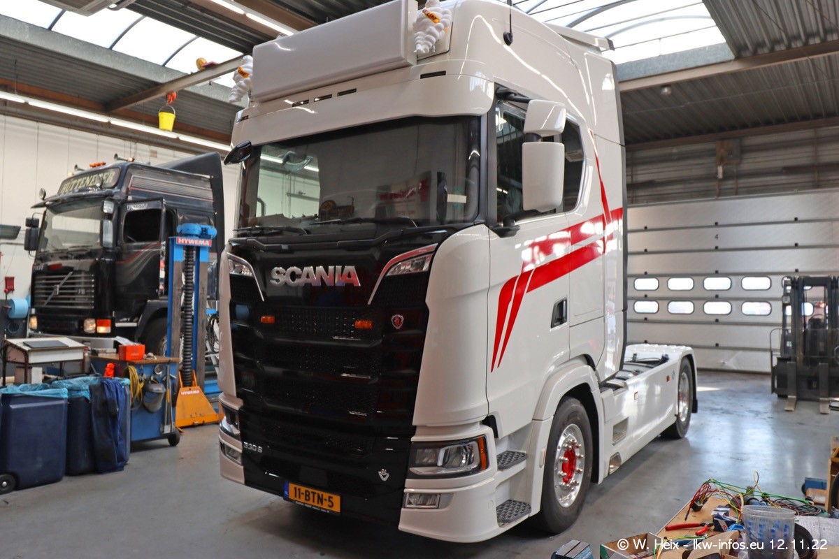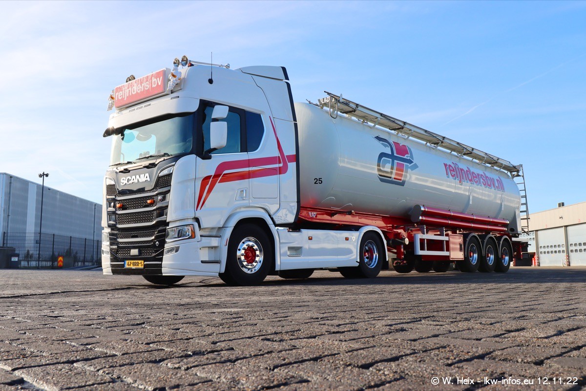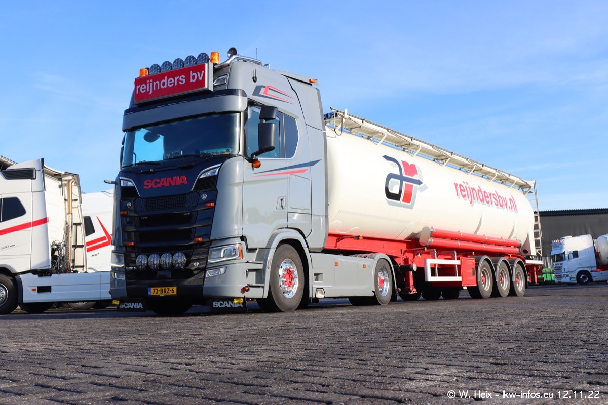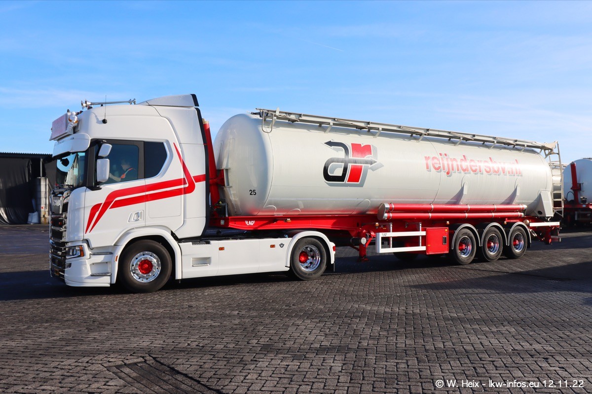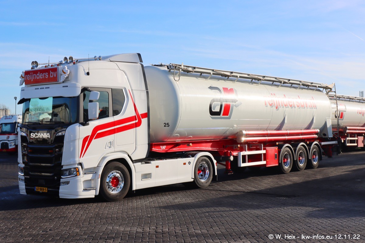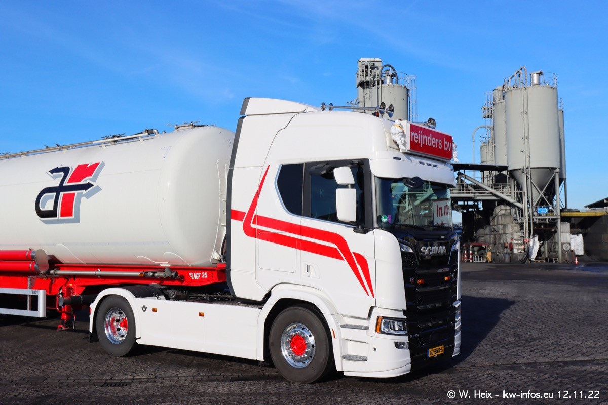 Diesmal war ich für ein Fotoshooting bei Reijnders zu Besuch. Normalerweise stehen samstags schon recht früh am Vormittag alle LKW gewaschen in einer Reihe "für das Wochenende". Das war heute anders. Im Mittelpunkt standen natürlch die neuen LKW (DAF XG+, VOLVO FH 5, SCANIA S V8 NextGen), da diese auch ein neues Design bekommen haben. Die beiden "älteren" SCANIA S 520 V8 NextGen wurden optisch angepasst, die ersten Bilder gab es ja schon vom letzten Besuch zu sehen im Teil 5. Neu ist ein junger gebrauchter grauer SCANIA 580 S V8 NextGen. Auch dieses Fahrzeug wurde optisch an das neue Design angepasst. Auf den letzten Fotos gibt es einen SCANIA 530 S V8 NextGen in der eigenen Werkstatt zu sehen. Der wird bald auch auf der Straße sein. Das Wetter war super und ausreichend Platz ist auf dem Gelände auch vorhanden, um die LKW zu fotografieren.