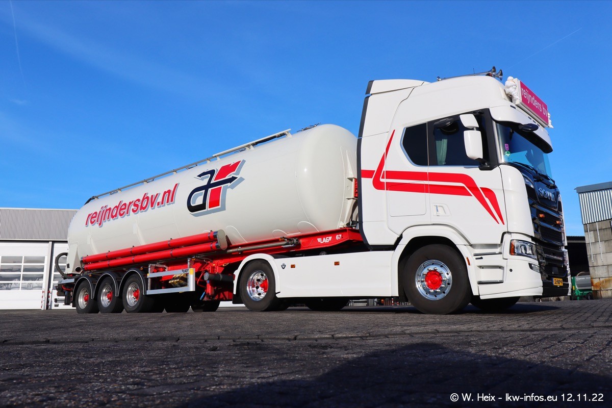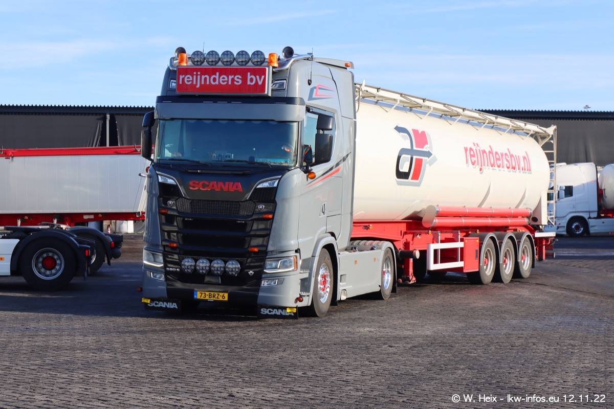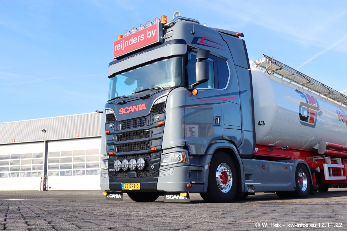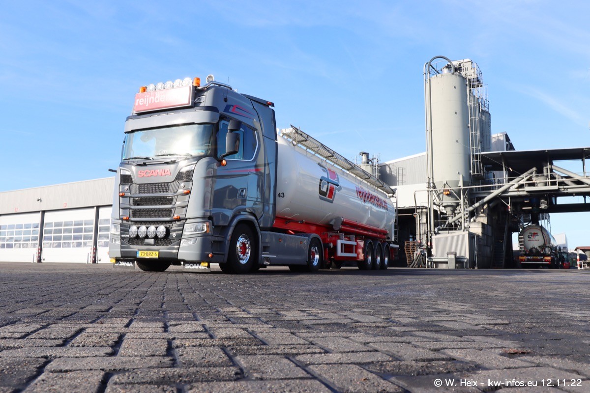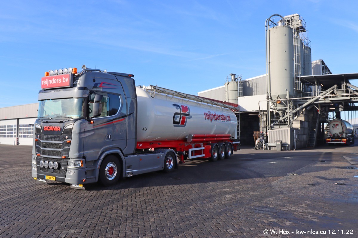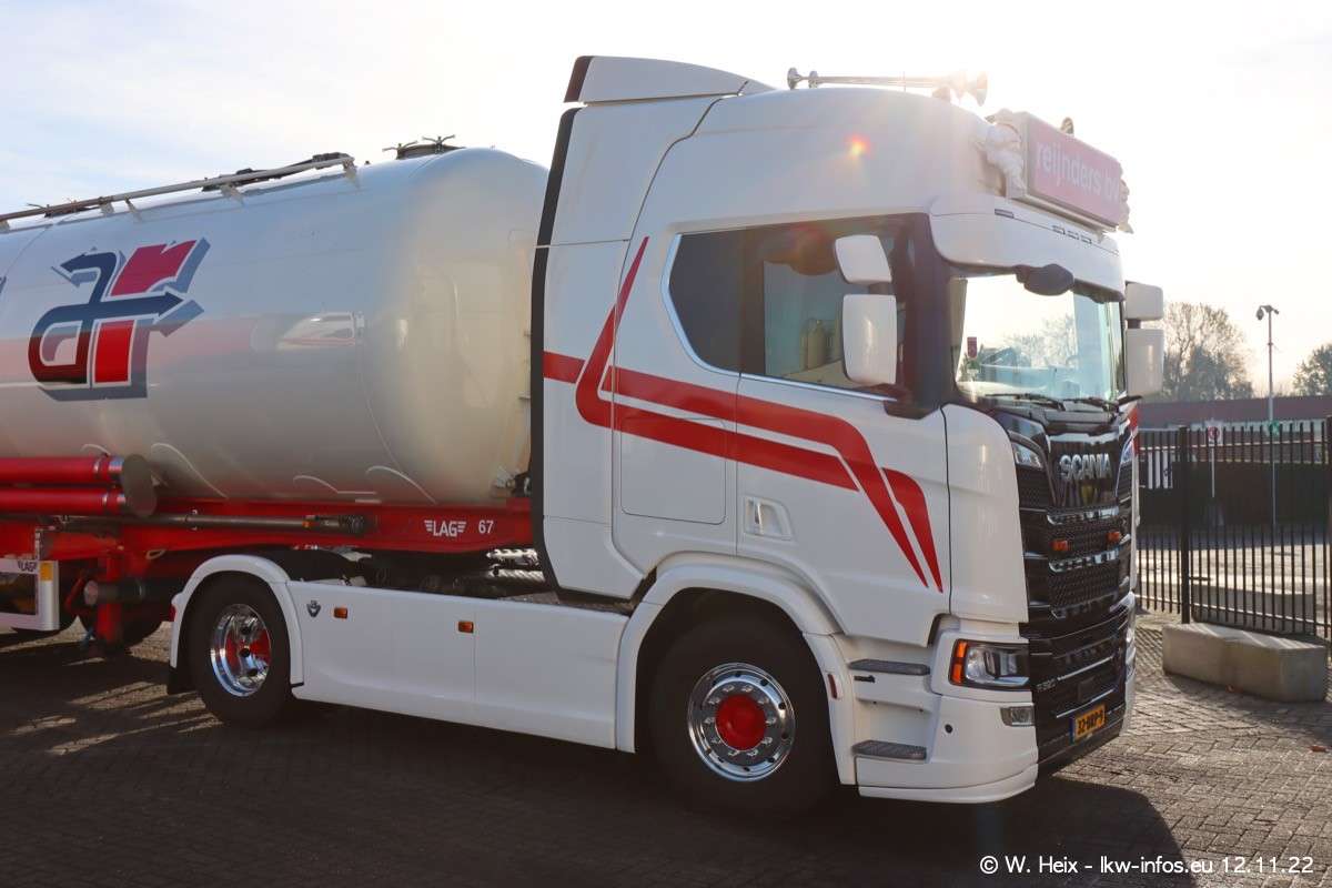 Diesmal war ich für ein Fotoshooting bei Reijnders zu Besuch. Normalerweise stehen samstags schon recht früh am Vormittag alle LKW gewaschen in einer Reihe "für das Wochenende". Das war heute anders. Im Mittelpunkt standen natürlch die neuen LKW (DAF XG+, VOLVO FH 5, SCANIA S V8 NextGen), da diese auch ein neues Design bekommen haben. Die beiden "älteren" SCANIA S 520 V8 NextGen wurden optisch angepasst, die ersten Bilder gab es ja schon vom letzten Besuch zu sehen im Teil 5. Neu ist ein junger gebrauchter grauer SCANIA 580 S V8 NextGen. Auch dieses Fahrzeug wurde optisch an das neue Design angepasst. Auf den letzten Fotos gibt es einen SCANIA 530 S V8 NextGen in der eigenen Werkstatt zu sehen. Der wird bald auch auf der Straße sein. Das Wetter war super und ausreichend Platz ist auf dem Gelände auch vorhanden, um die LKW zu fotografieren.