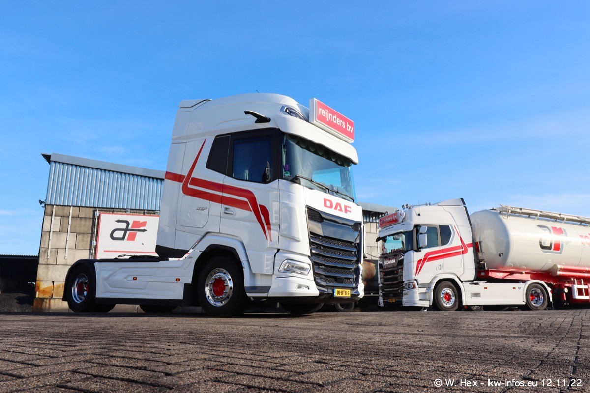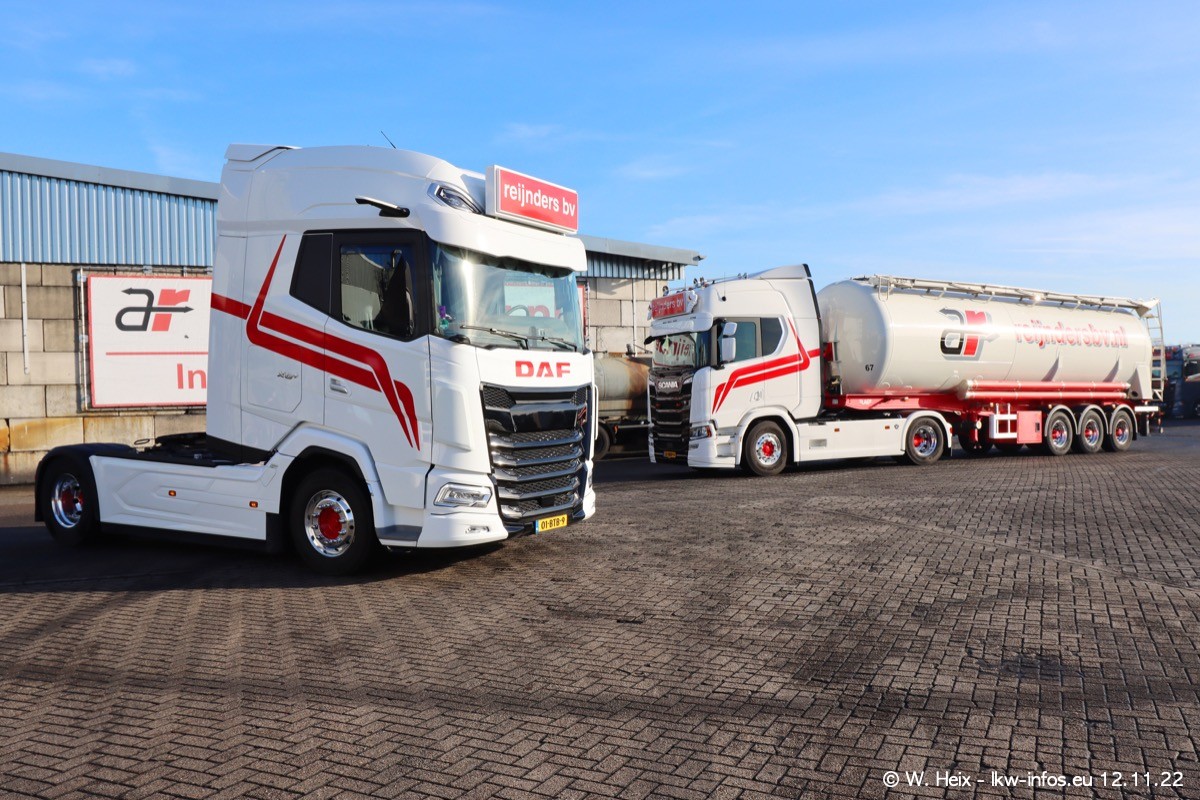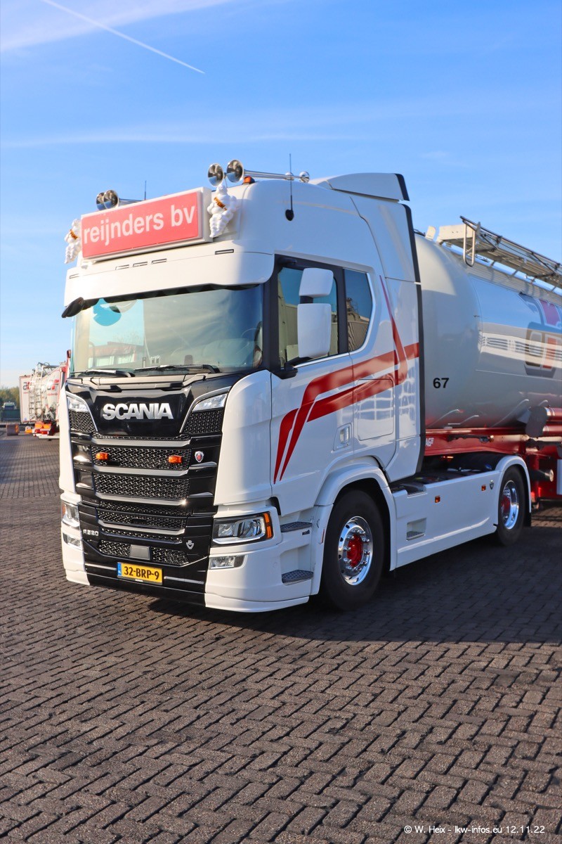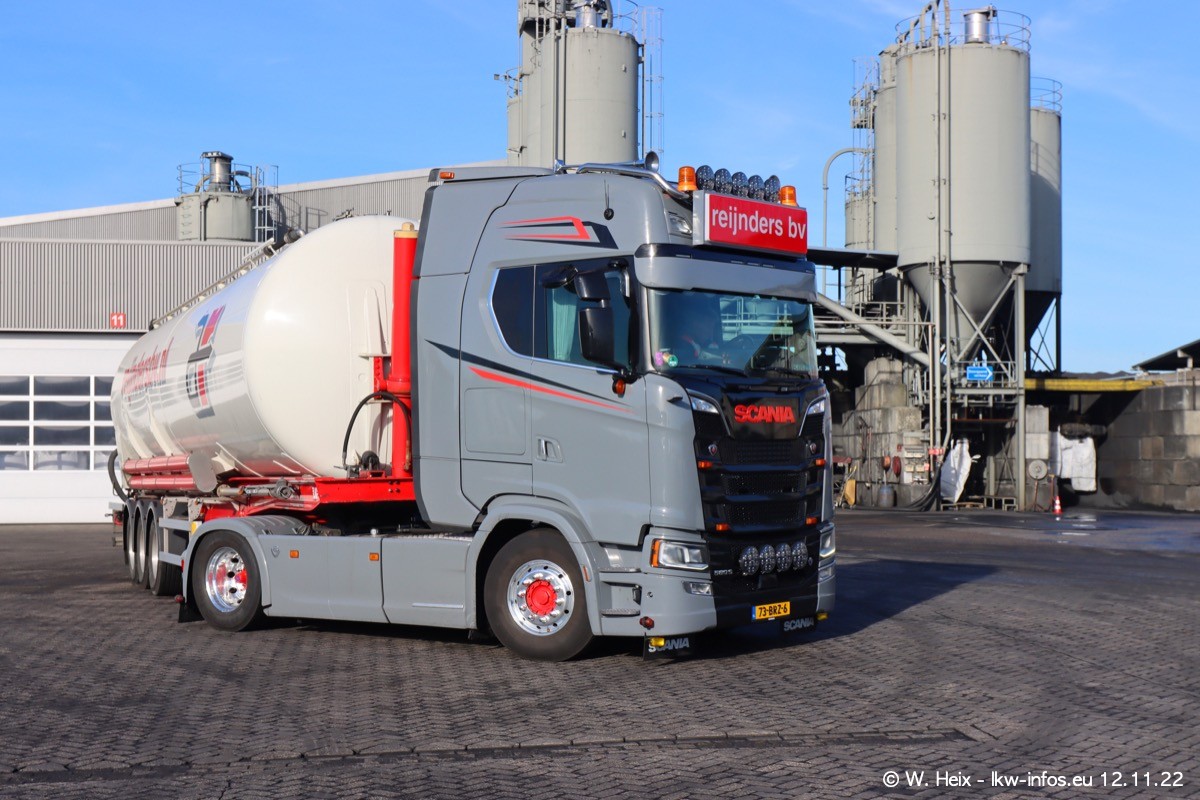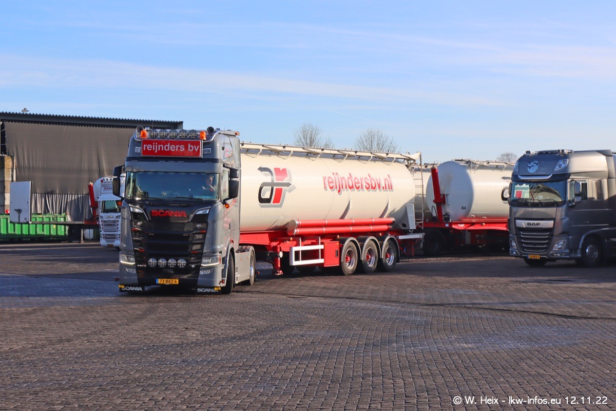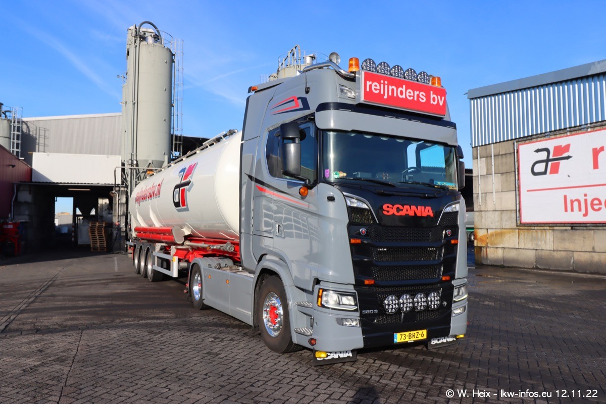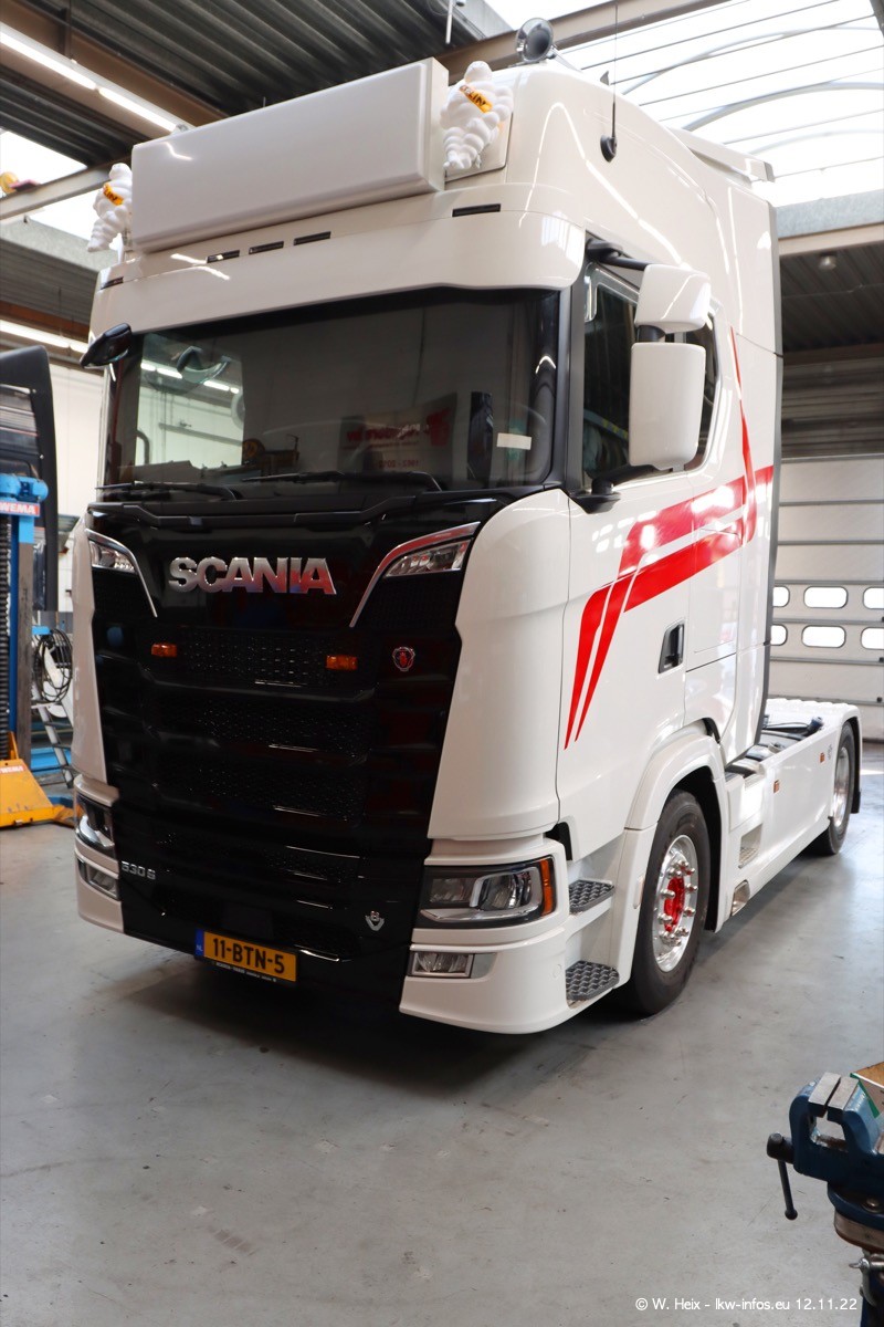 Diesmal war ich für ein Fotoshooting bei Reijnders zu Besuch. Normalerweise stehen samstags schon recht früh am Vormittag alle LKW gewaschen in einer Reihe "für das Wochenende". Das war heute anders. Im Mittelpunkt standen natürlch die neuen LKW (DAF XG+, VOLVO FH 5, SCANIA S V8 NextGen), da diese auch ein neues Design bekommen haben. Die beiden "älteren" SCANIA S 520 V8 NextGen wurden optisch angepasst, die ersten Bilder gab es ja schon vom letzten Besuch zu sehen im Teil 5. Neu ist ein junger gebrauchter grauer SCANIA 580 S V8 NextGen. Auch dieses Fahrzeug wurde optisch an das neue Design angepasst. Auf den letzten Fotos gibt es einen SCANIA 530 S V8 NextGen in der eigenen Werkstatt zu sehen. Der wird bald auch auf der Straße sein. Das Wetter war super und ausreichend Platz ist auf dem Gelände auch vorhanden, um die LKW zu fotografieren.