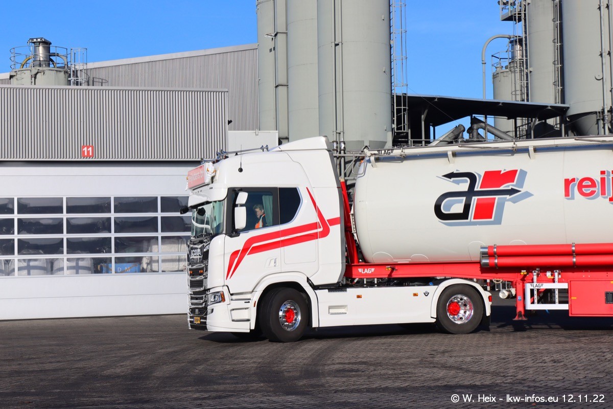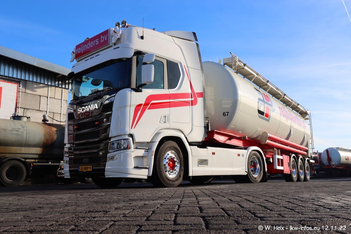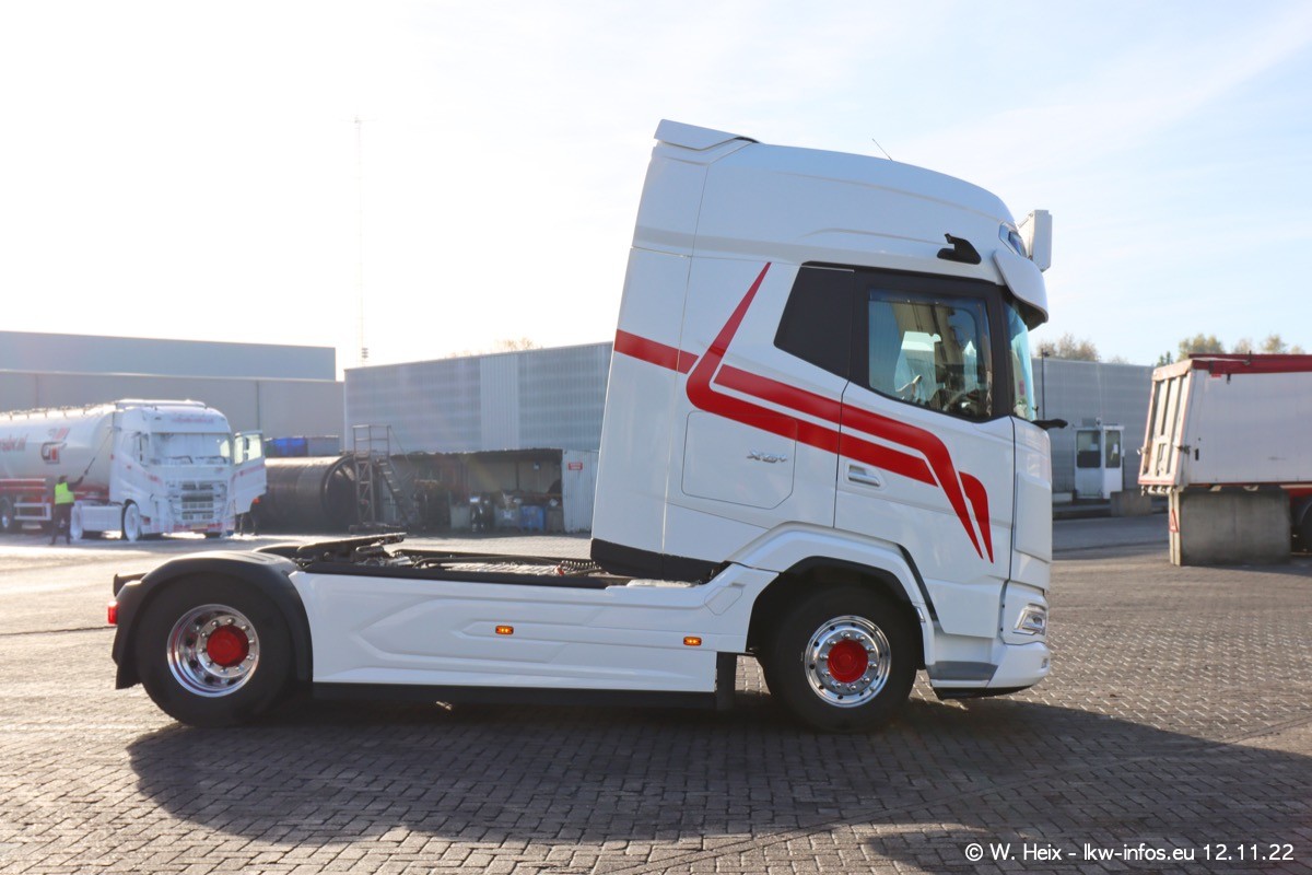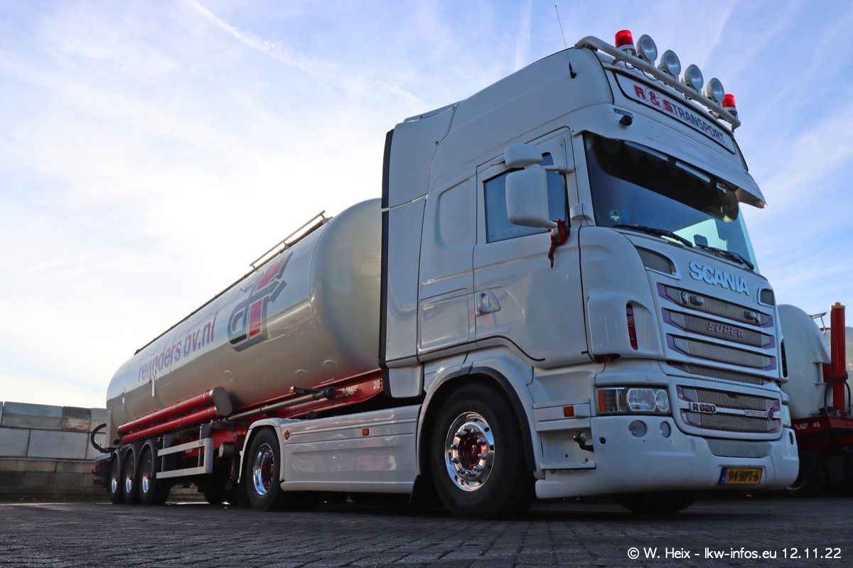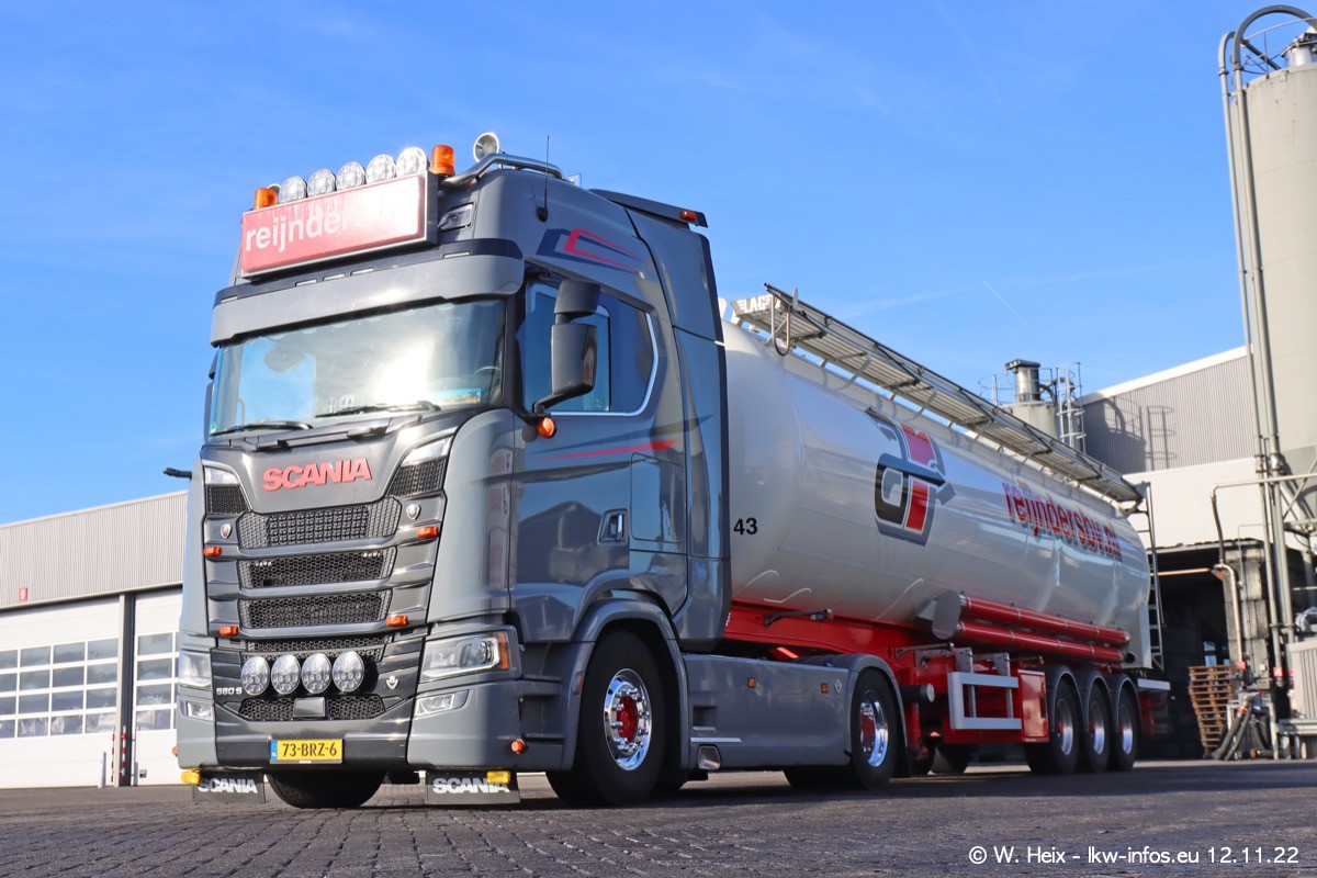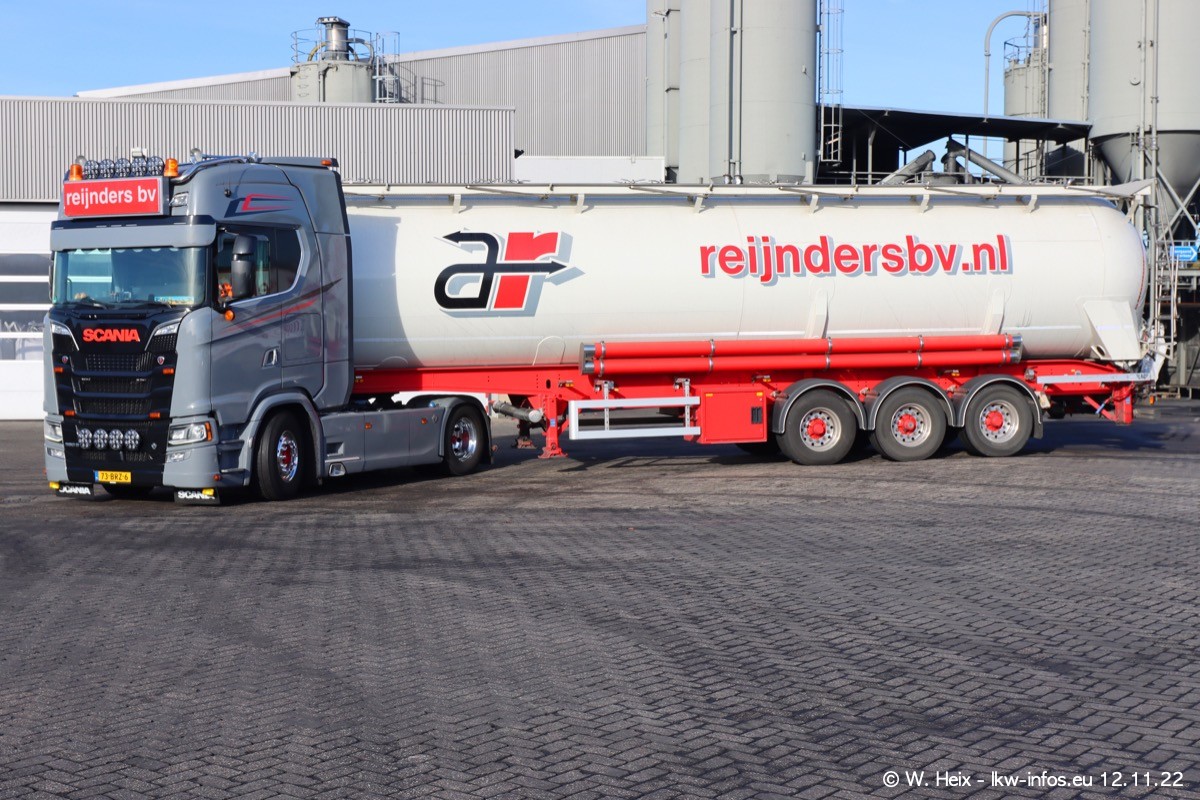 Diesmal war ich für ein Fotoshooting bei Reijnders zu Besuch. Normalerweise stehen samstags schon recht früh am Vormittag alle LKW gewaschen in einer Reihe "für das Wochenende". Das war heute anders. Im Mittelpunkt standen natürlch die neuen LKW (DAF XG+, VOLVO FH 5, SCANIA S V8 NextGen), da diese auch ein neues Design bekommen haben. Die beiden "älteren" SCANIA S 520 V8 NextGen wurden optisch angepasst, die ersten Bilder gab es ja schon vom letzten Besuch zu sehen im Teil 5. Neu ist ein junger gebrauchter grauer SCANIA 580 S V8 NextGen. Auch dieses Fahrzeug wurde optisch an das neue Design angepasst. Auf den letzten Fotos gibt es einen SCANIA 530 S V8 NextGen in der eigenen Werkstatt zu sehen. Der wird bald auch auf der Straße sein. Das Wetter war super und ausreichend Platz ist auf dem Gelände auch vorhanden, um die LKW zu fotografieren.