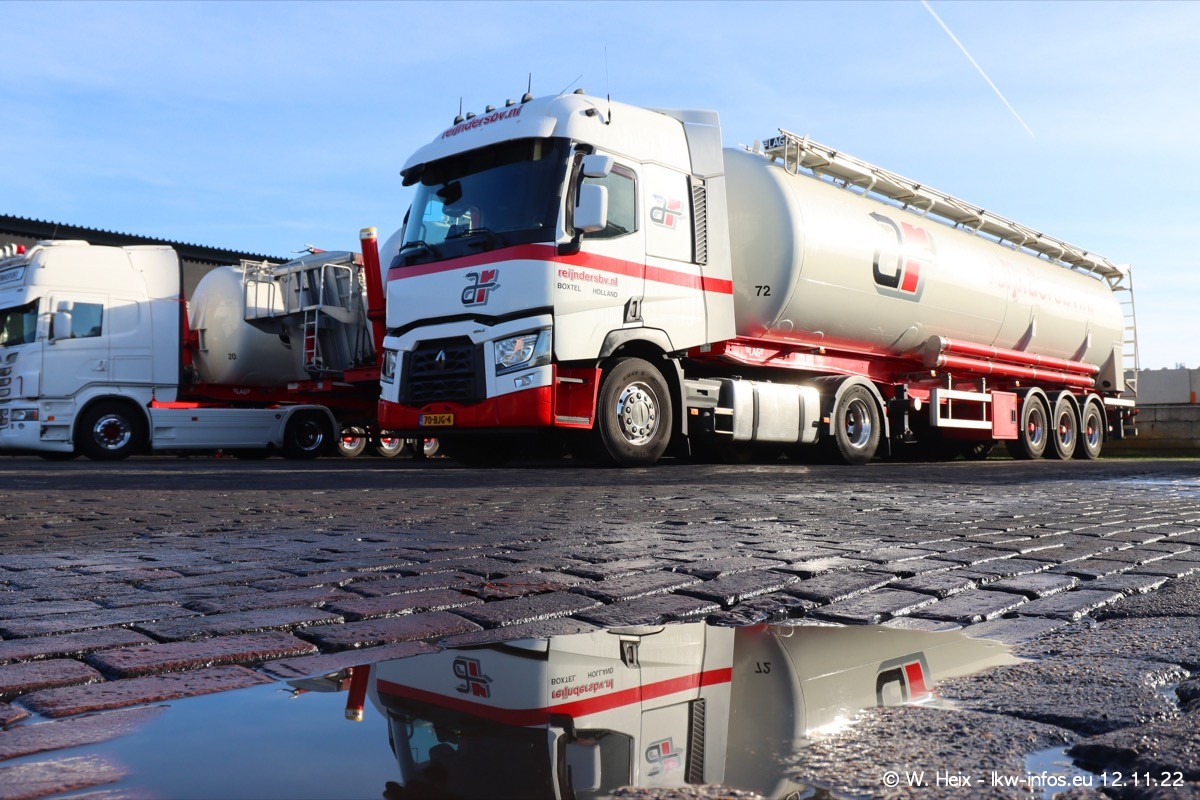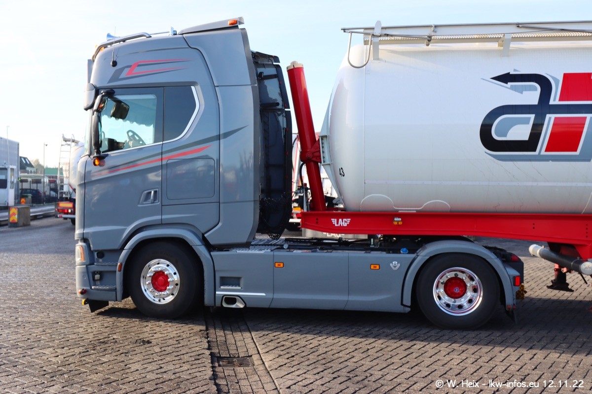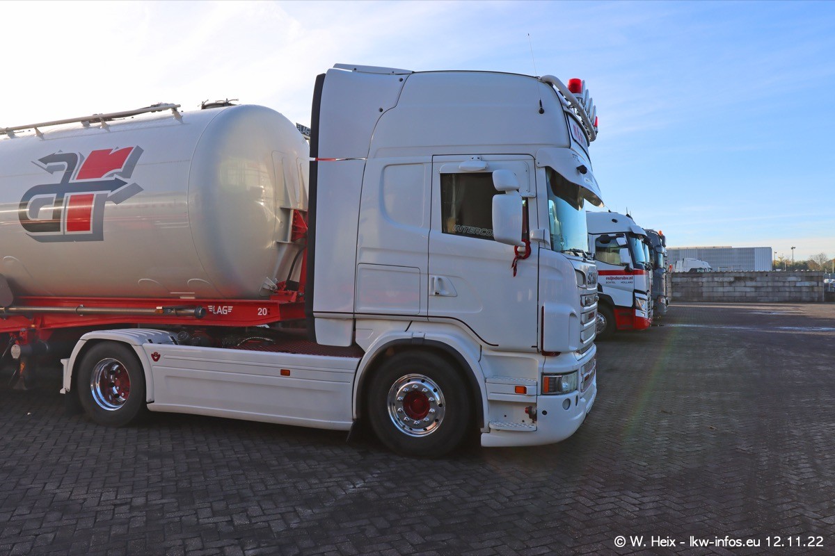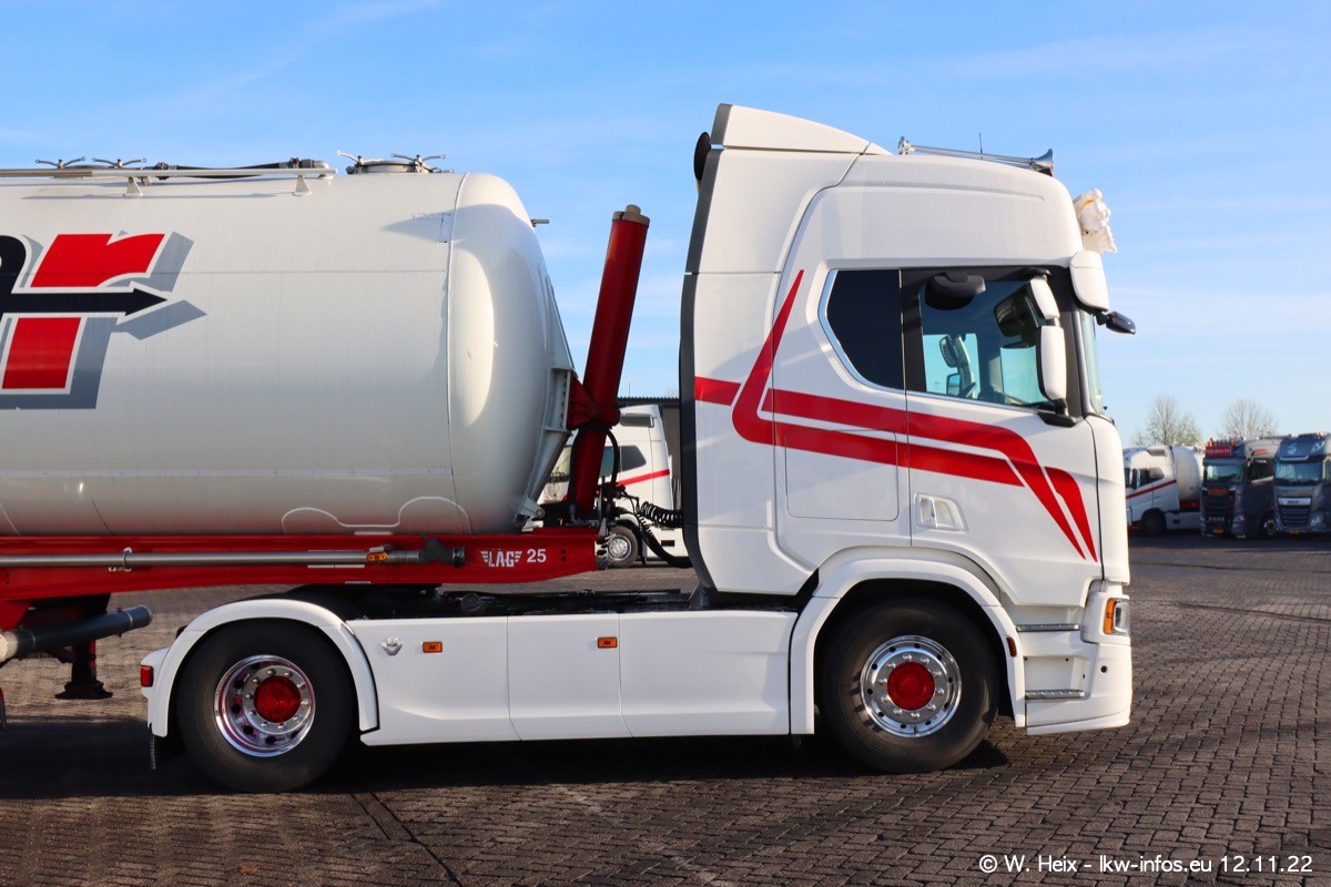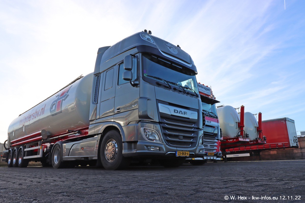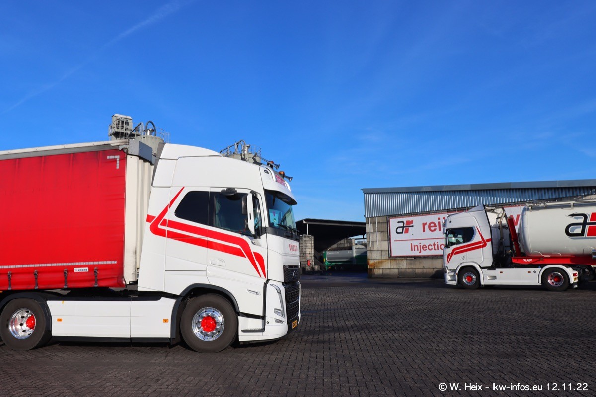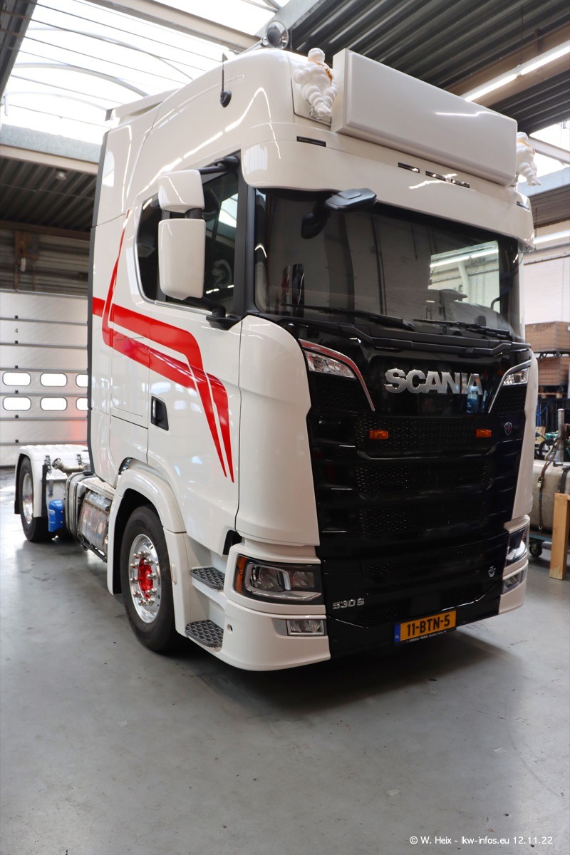 Diesmal war ich für ein Fotoshooting bei Reijnders zu Besuch. Normalerweise stehen samstags schon recht früh am Vormittag alle LKW gewaschen in einer Reihe "für das Wochenende". Das war heute anders. Im Mittelpunkt standen natürlch die neuen LKW (DAF XG+, VOLVO FH 5, SCANIA S V8 NextGen), da diese auch ein neues Design bekommen haben. Die beiden "älteren" SCANIA S 520 V8 NextGen wurden optisch angepasst, die ersten Bilder gab es ja schon vom letzten Besuch zu sehen im Teil 5. Neu ist ein junger gebrauchter grauer SCANIA 580 S V8 NextGen. Auch dieses Fahrzeug wurde optisch an das neue Design angepasst. Auf den letzten Fotos gibt es einen SCANIA 530 S V8 NextGen in der eigenen Werkstatt zu sehen. Der wird bald auch auf der Straße sein. Das Wetter war super und ausreichend Platz ist auf dem Gelände auch vorhanden, um die LKW zu fotografieren.