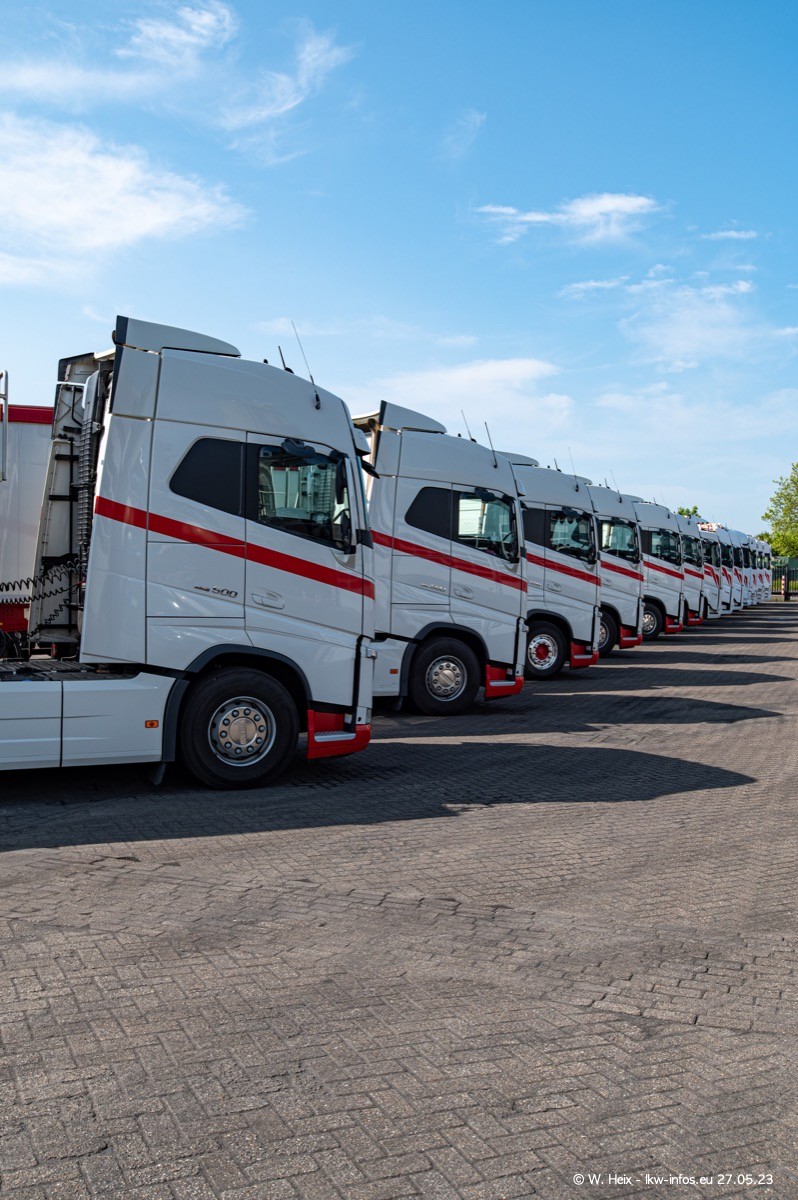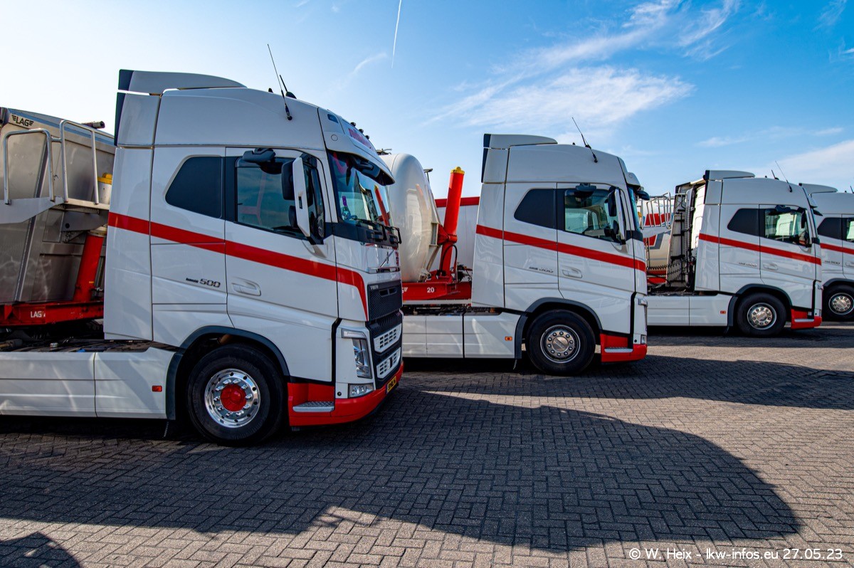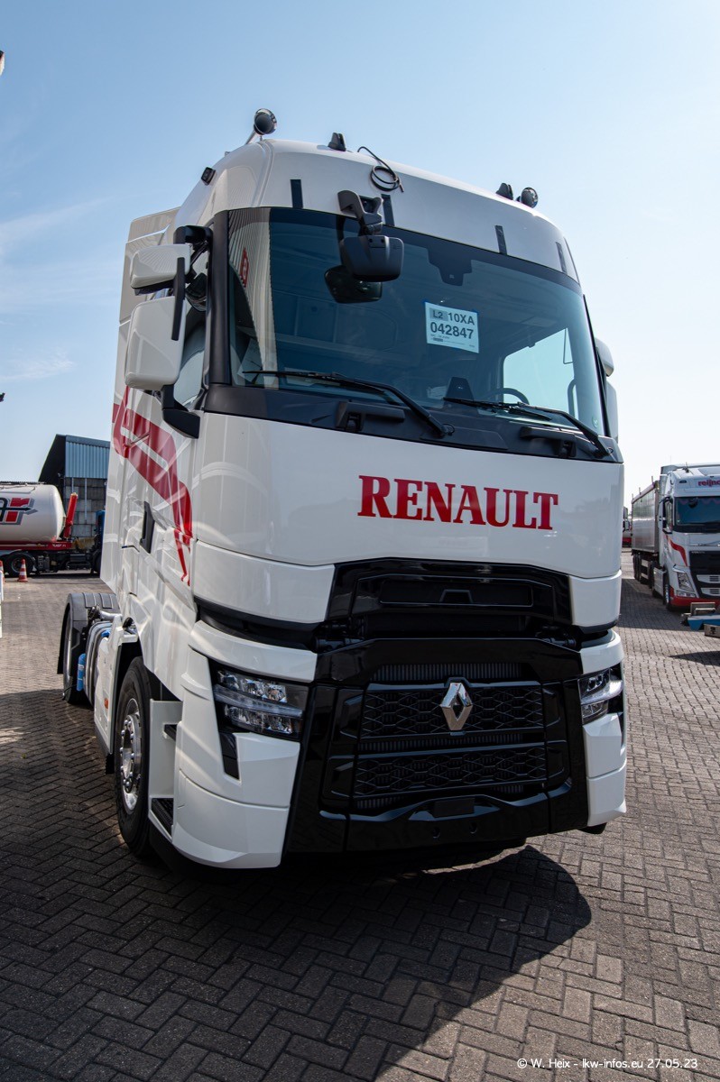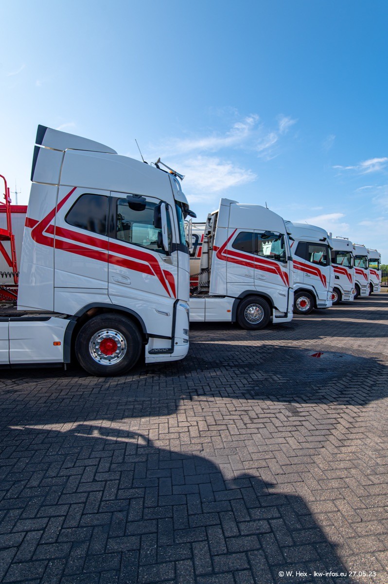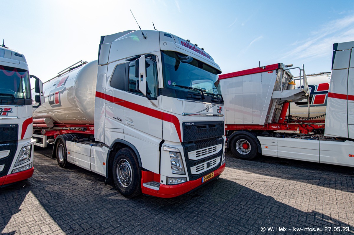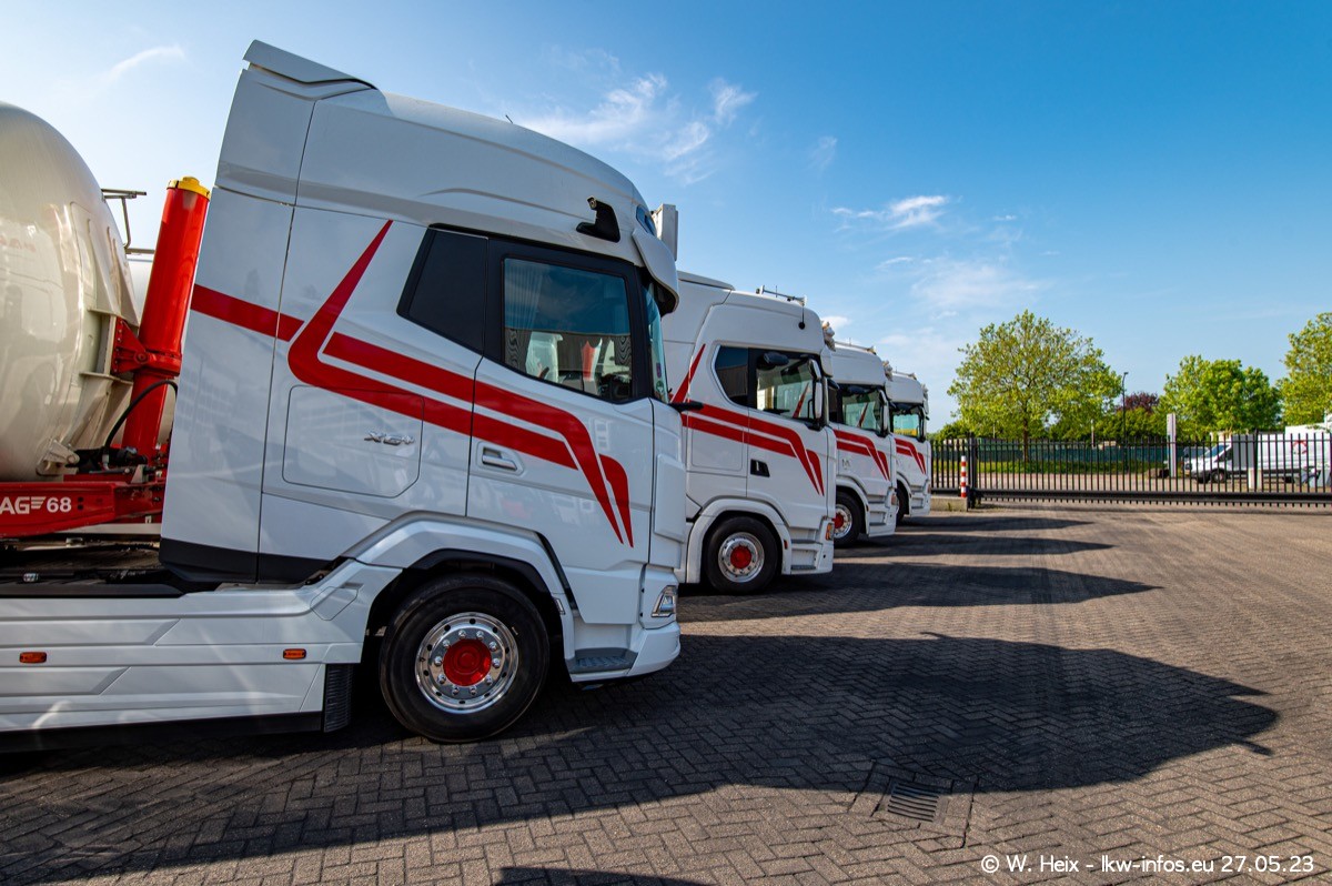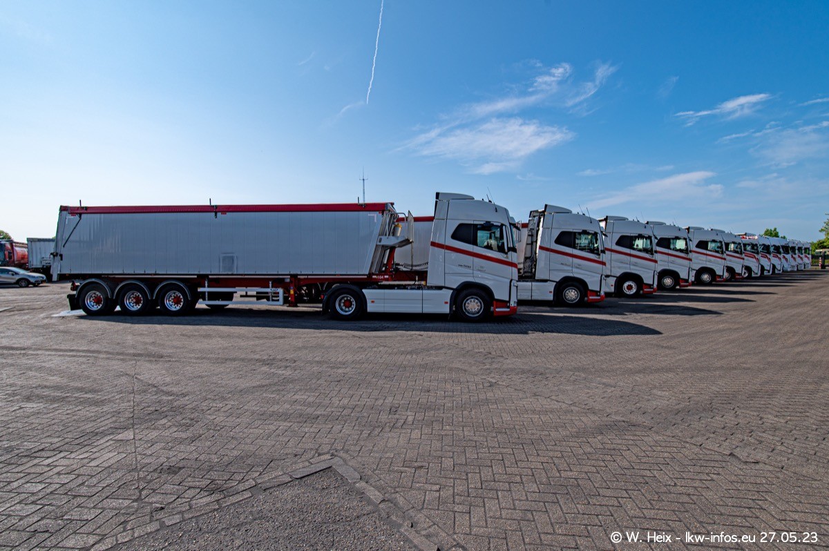 Vor zwei Wochen ist ein besonderer VOLVO FH 5 dazu gekommen. Der ist ohne Hochdach und mit einigem an Zubehör ausgestattet. Ein Fahrer wurde damit zu seinem 25-jährigen Jubiläum überrascht/belohnt. Der erste von drei Renault T Evo ist da, aber noch nicht fertig. Ein paar Bilder habe ich schon gemacht. Der Rest der Fahrzeuge ist bekannt. Es dauert übrigens nicht mehr lange, bis alle VOLVO FH 4 ausgemustert sind. Dann wird der fast komplette Fuhrpark im neuen Design unterwegs sein ....