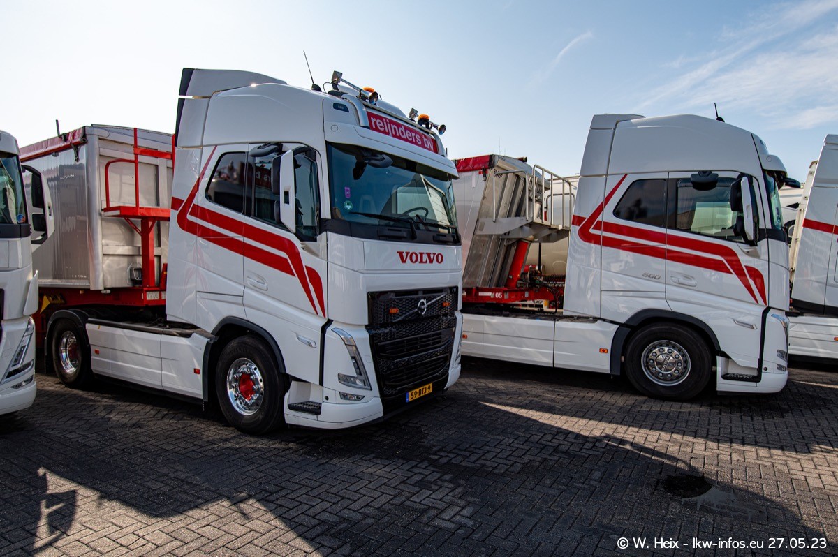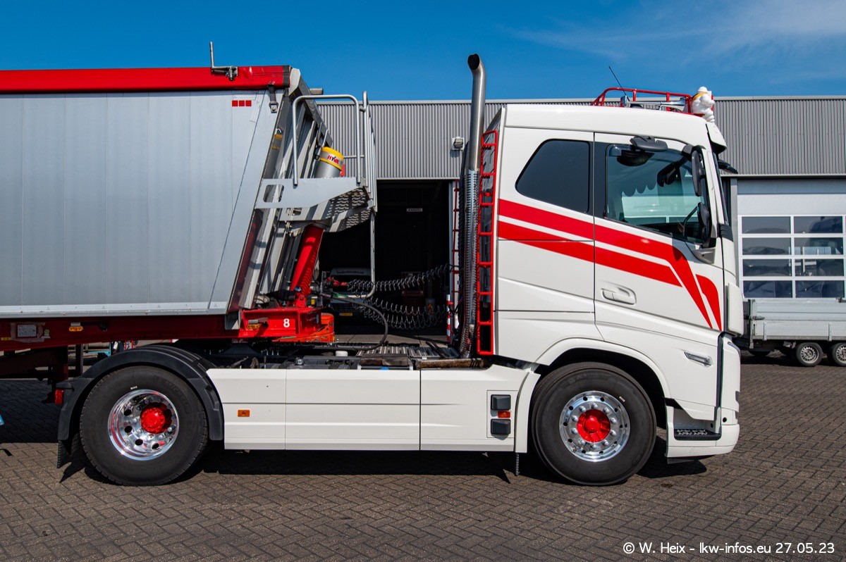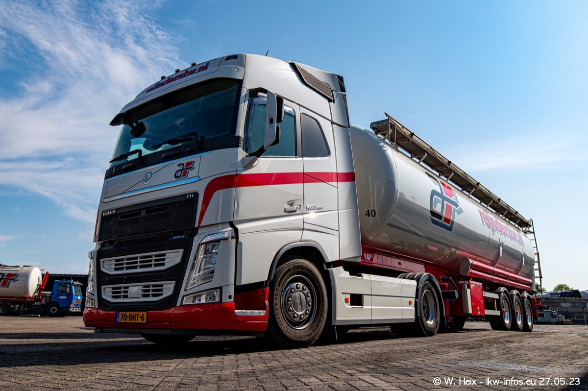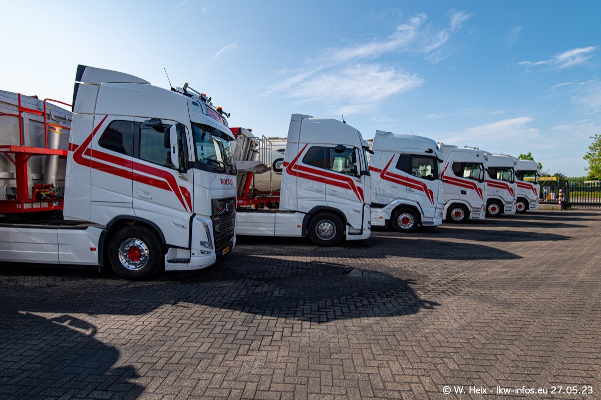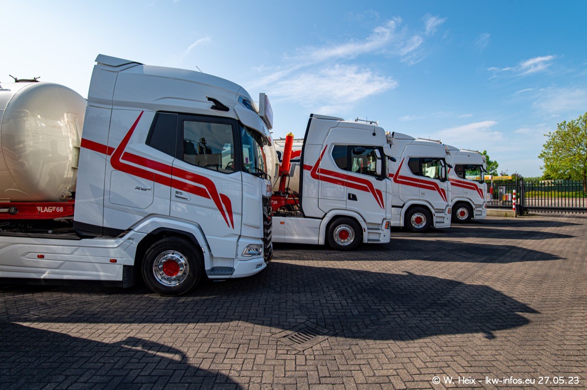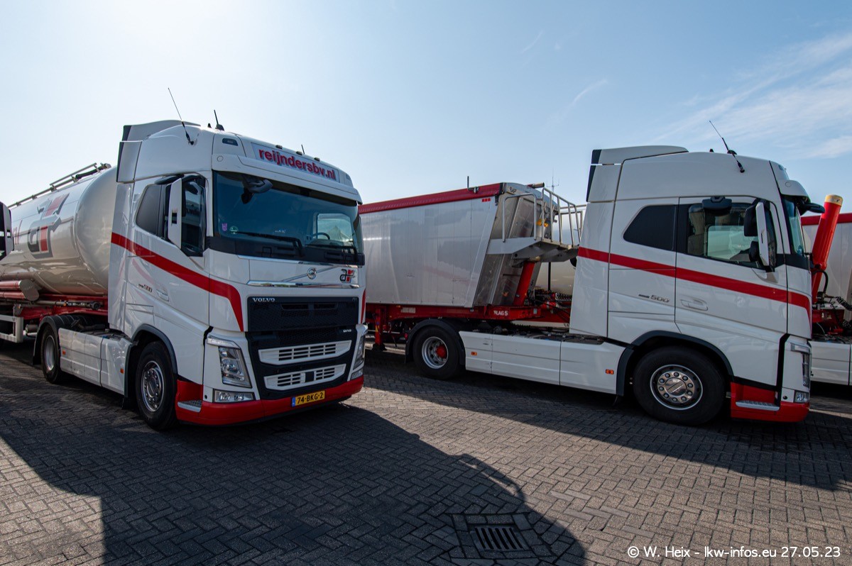 Vor zwei Wochen ist ein besonderer VOLVO FH 5 dazu gekommen. Der ist ohne Hochdach und mit einigem an Zubehör ausgestattet. Ein Fahrer wurde damit zu seinem 25-jährigen Jubiläum überrascht/belohnt. Der erste von drei Renault T Evo ist da, aber noch nicht fertig. Ein paar Bilder habe ich schon gemacht. Der Rest der Fahrzeuge ist bekannt. Es dauert übrigens nicht mehr lange, bis alle VOLVO FH 4 ausgemustert sind. Dann wird der fast komplette Fuhrpark im neuen Design unterwegs sein ....