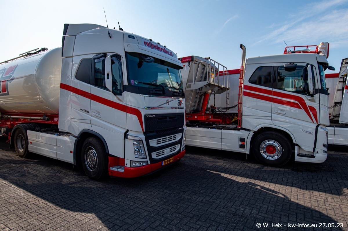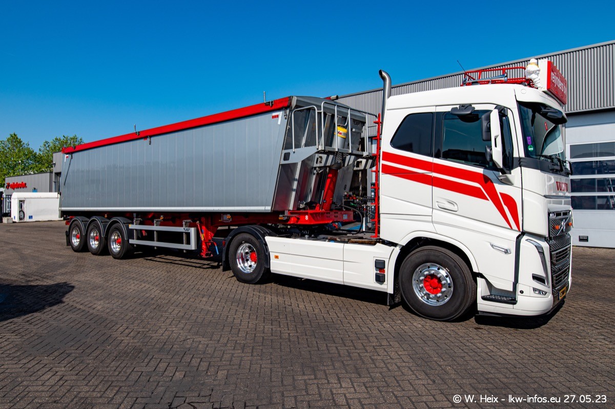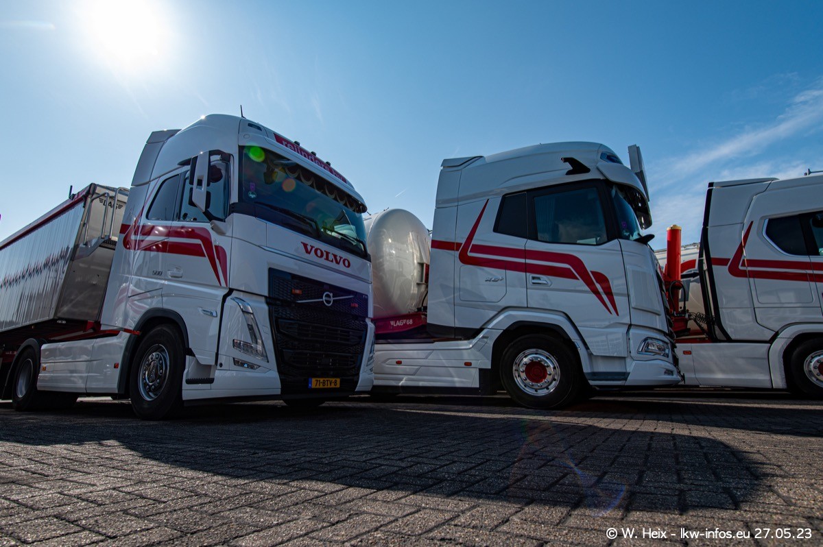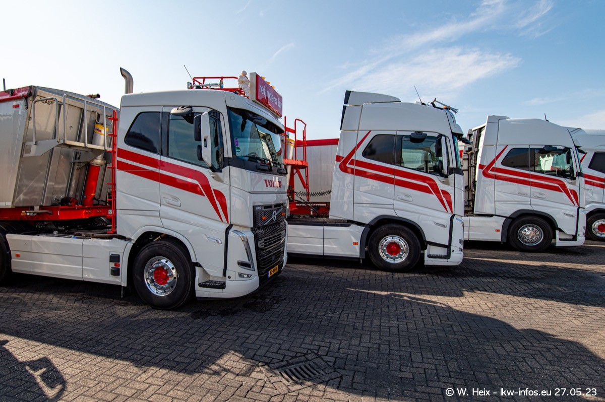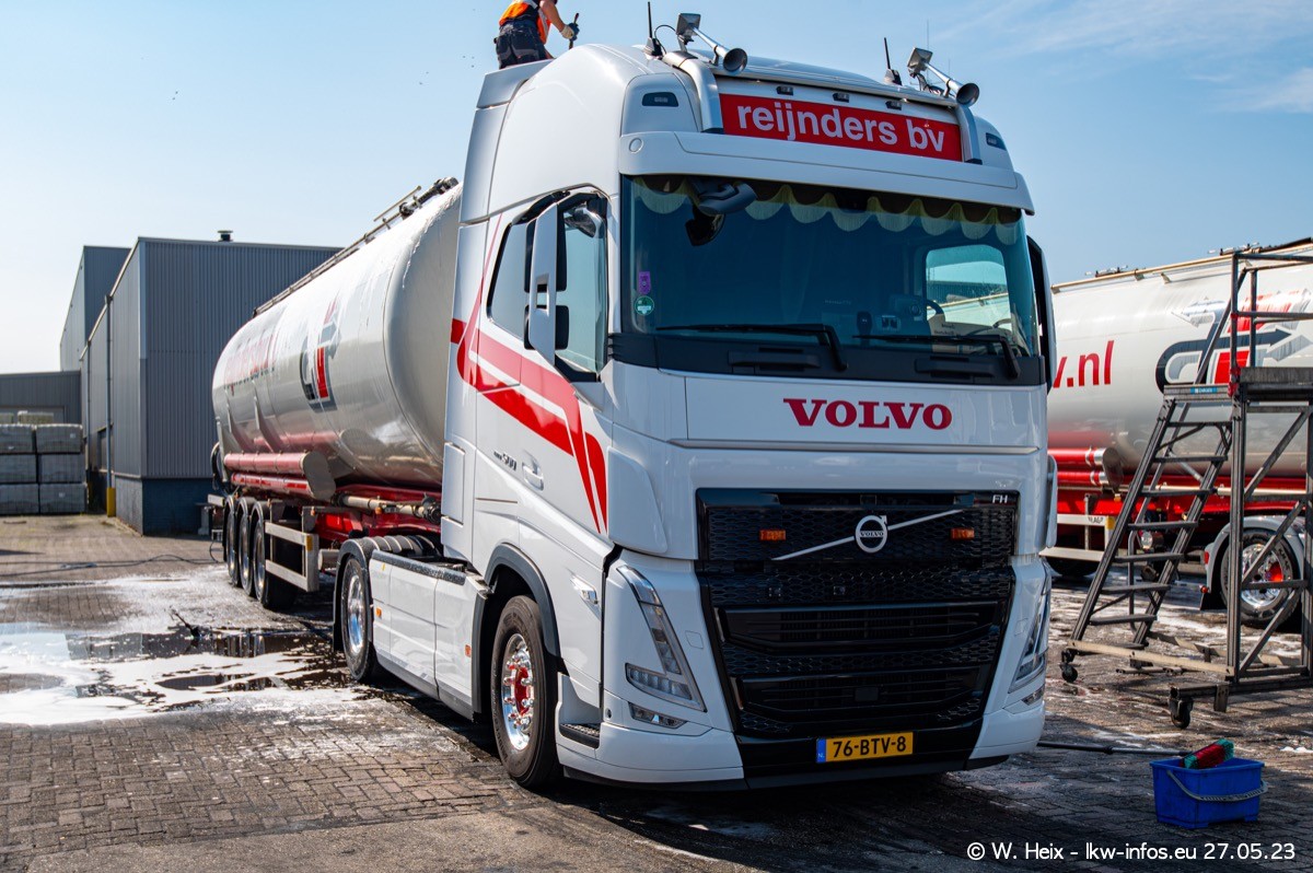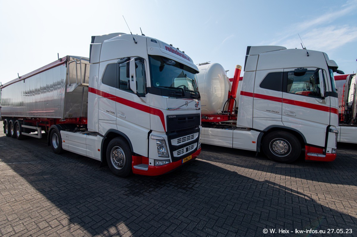 Vor zwei Wochen ist ein besonderer VOLVO FH 5 dazu gekommen. Der ist ohne Hochdach und mit einigem an Zubehör ausgestattet. Ein Fahrer wurde damit zu seinem 25-jährigen Jubiläum überrascht/belohnt. Der erste von drei Renault T Evo ist da, aber noch nicht fertig. Ein paar Bilder habe ich schon gemacht. Der Rest der Fahrzeuge ist bekannt. Es dauert übrigens nicht mehr lange, bis alle VOLVO FH 4 ausgemustert sind. Dann wird der fast komplette Fuhrpark im neuen Design unterwegs sein ....