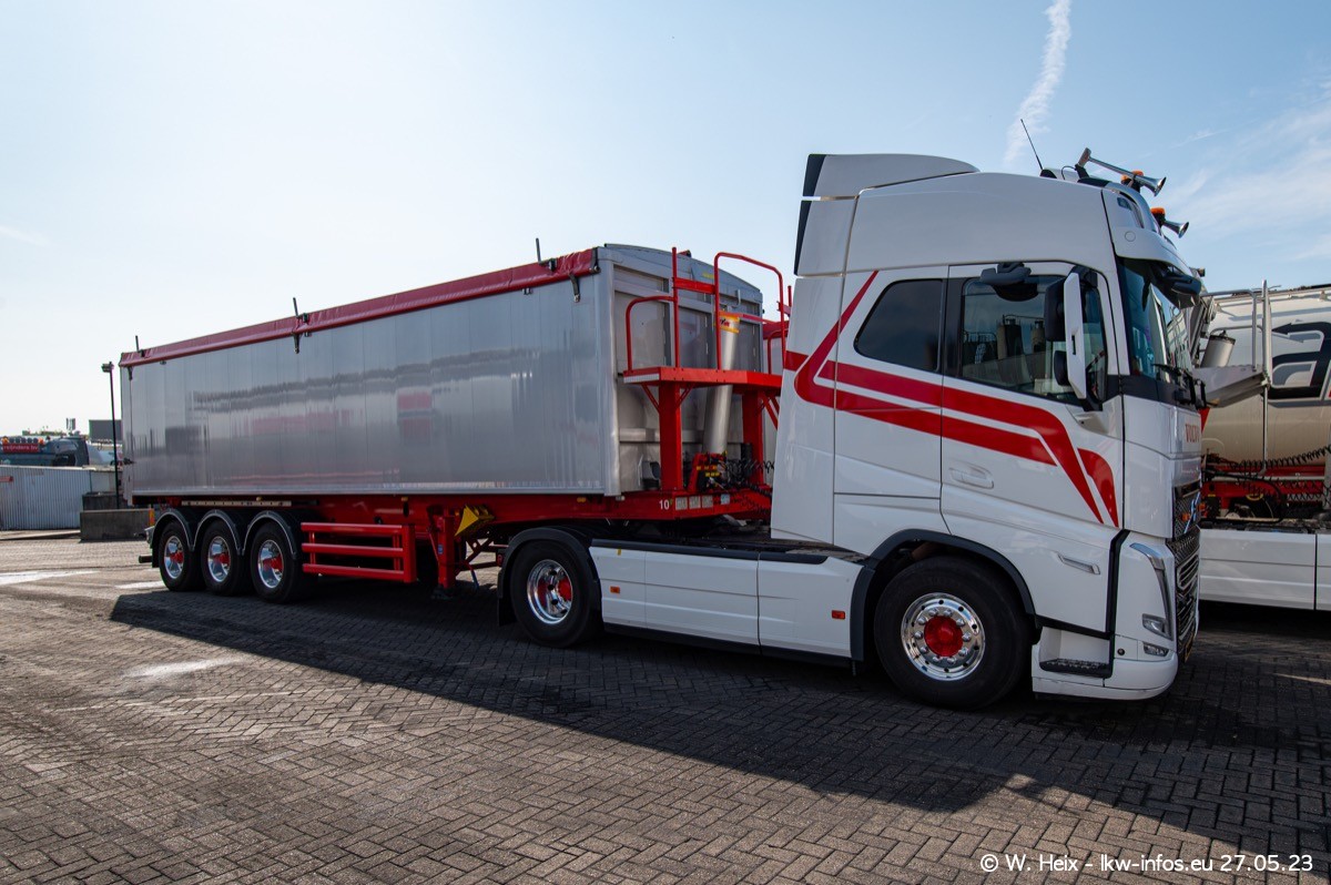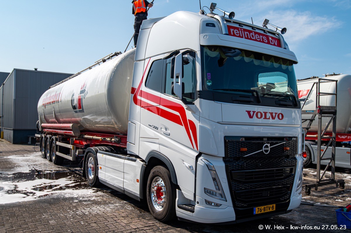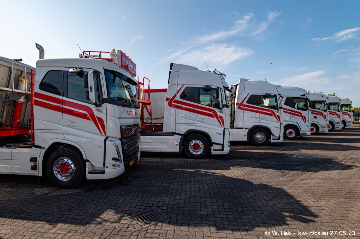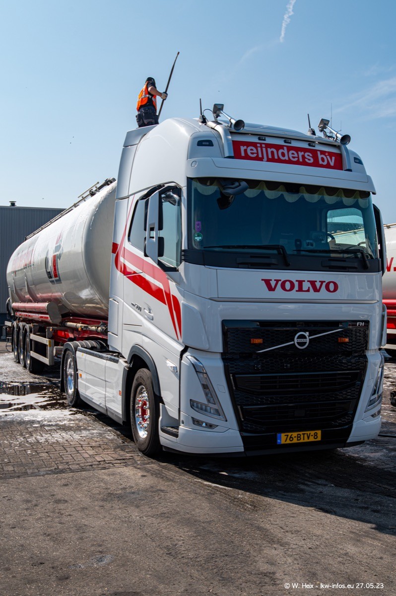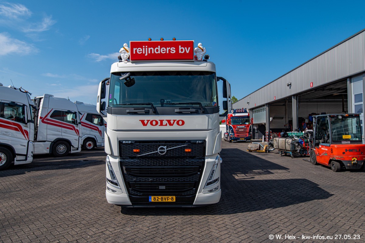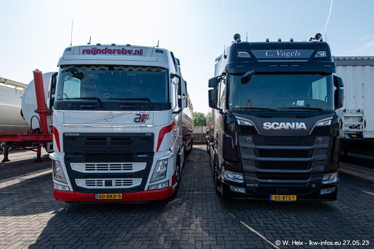 Vor zwei Wochen ist ein besonderer VOLVO FH 5 dazu gekommen. Der ist ohne Hochdach und mit einigem an Zubehör ausgestattet. Ein Fahrer wurde damit zu seinem 25-jährigen Jubiläum überrascht/belohnt. Der erste von drei Renault T Evo ist da, aber noch nicht fertig. Ein paar Bilder habe ich schon gemacht. Der Rest der Fahrzeuge ist bekannt. Es dauert übrigens nicht mehr lange, bis alle VOLVO FH 4 ausgemustert sind. Dann wird der fast komplette Fuhrpark im neuen Design unterwegs sein ....