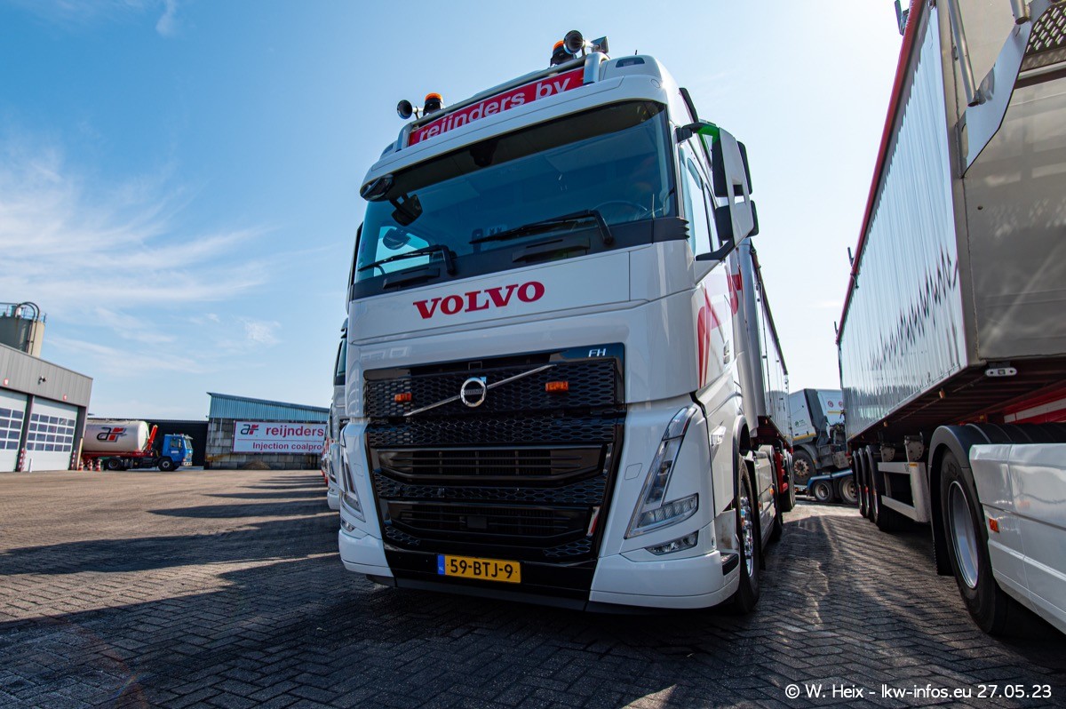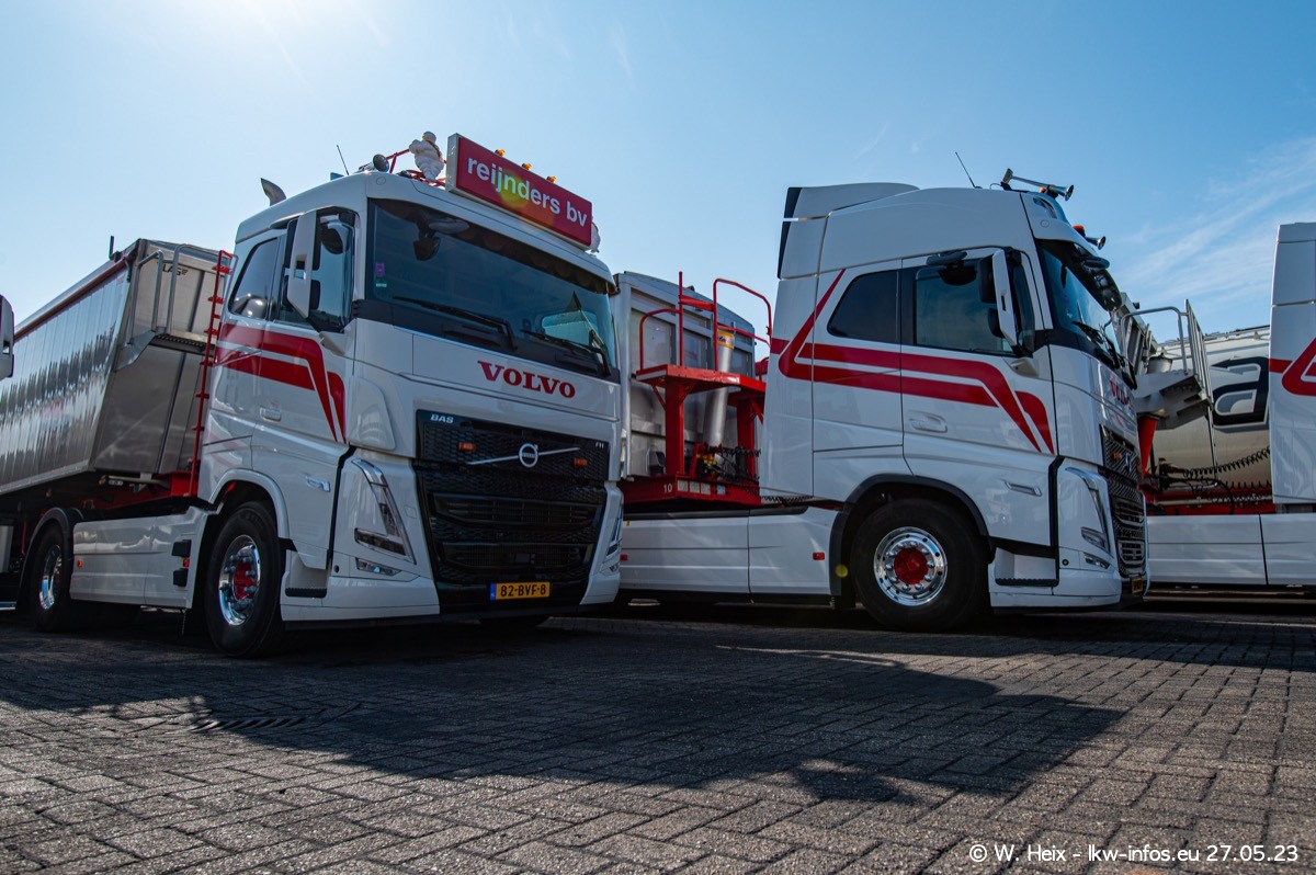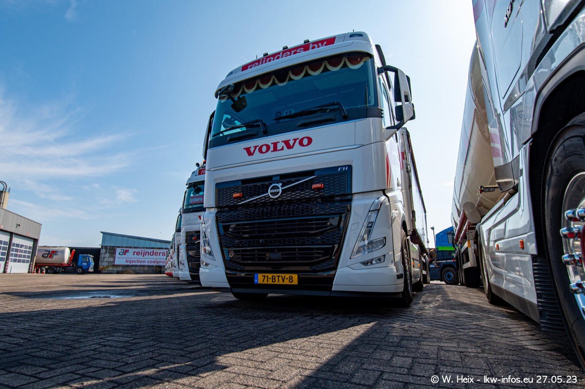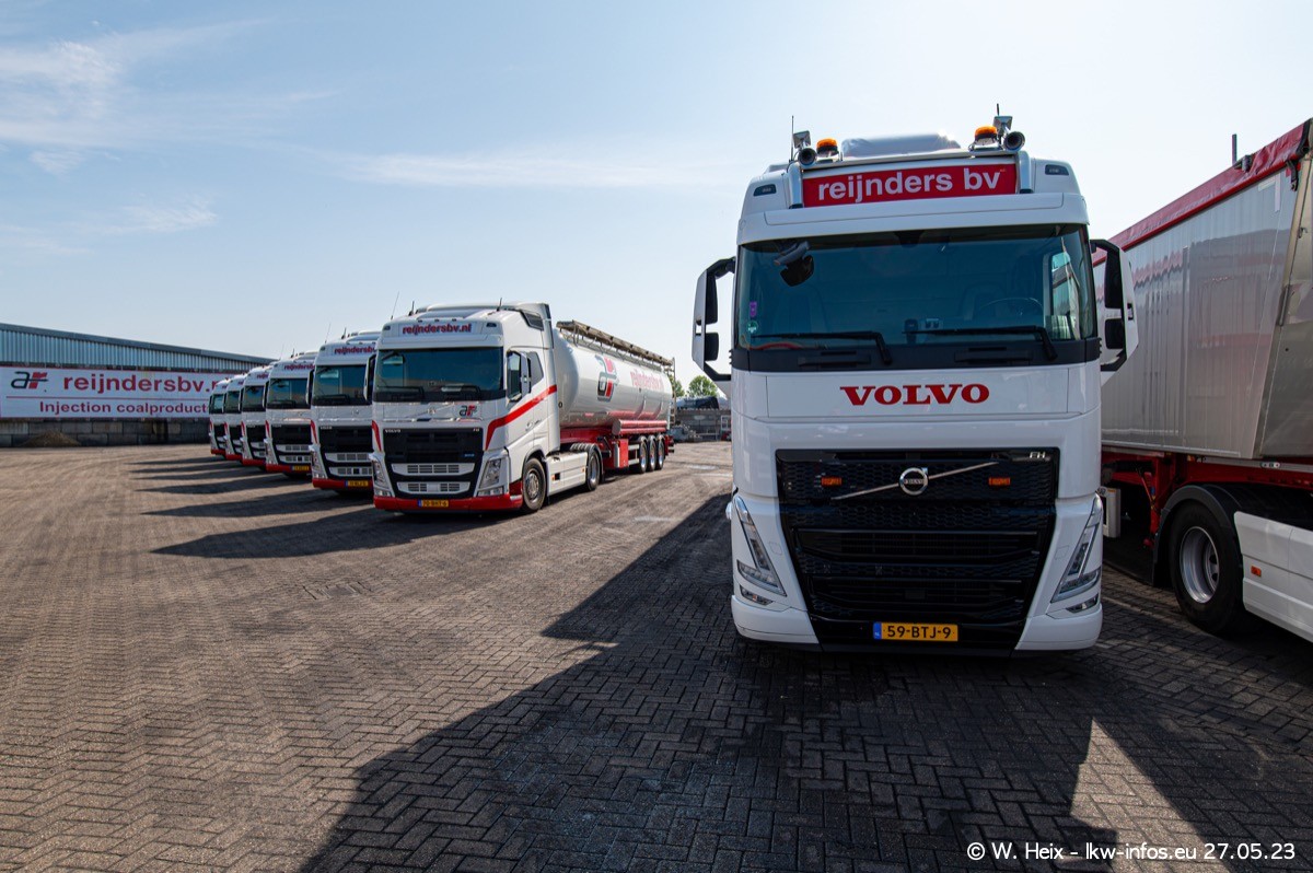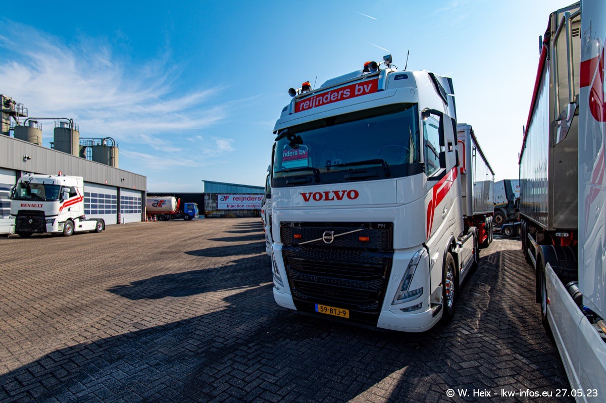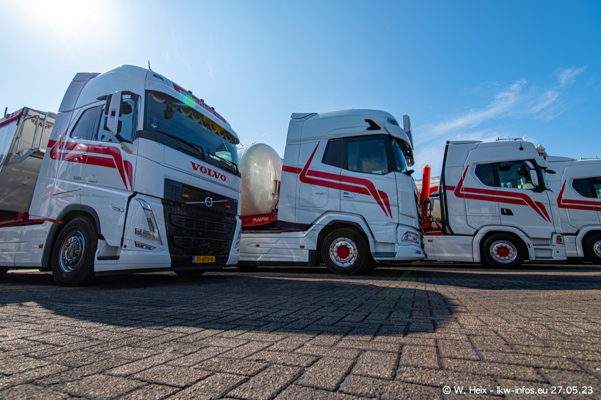 Vor zwei Wochen ist ein besonderer VOLVO FH 5 dazu gekommen. Der ist ohne Hochdach und mit einigem an Zubehör ausgestattet. Ein Fahrer wurde damit zu seinem 25-jährigen Jubiläum überrascht/belohnt. Der erste von drei Renault T Evo ist da, aber noch nicht fertig. Ein paar Bilder habe ich schon gemacht. Der Rest der Fahrzeuge ist bekannt. Es dauert übrigens nicht mehr lange, bis alle VOLVO FH 4 ausgemustert sind. Dann wird der fast komplette Fuhrpark im neuen Design unterwegs sein ....
