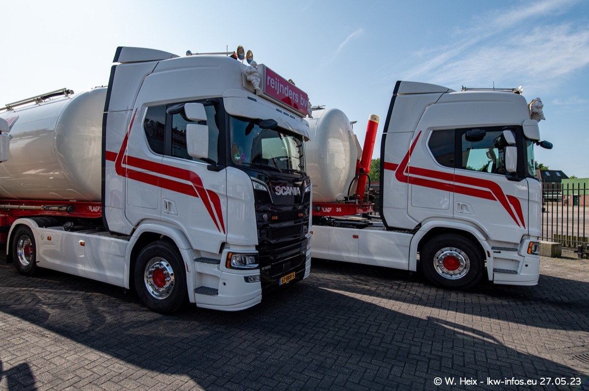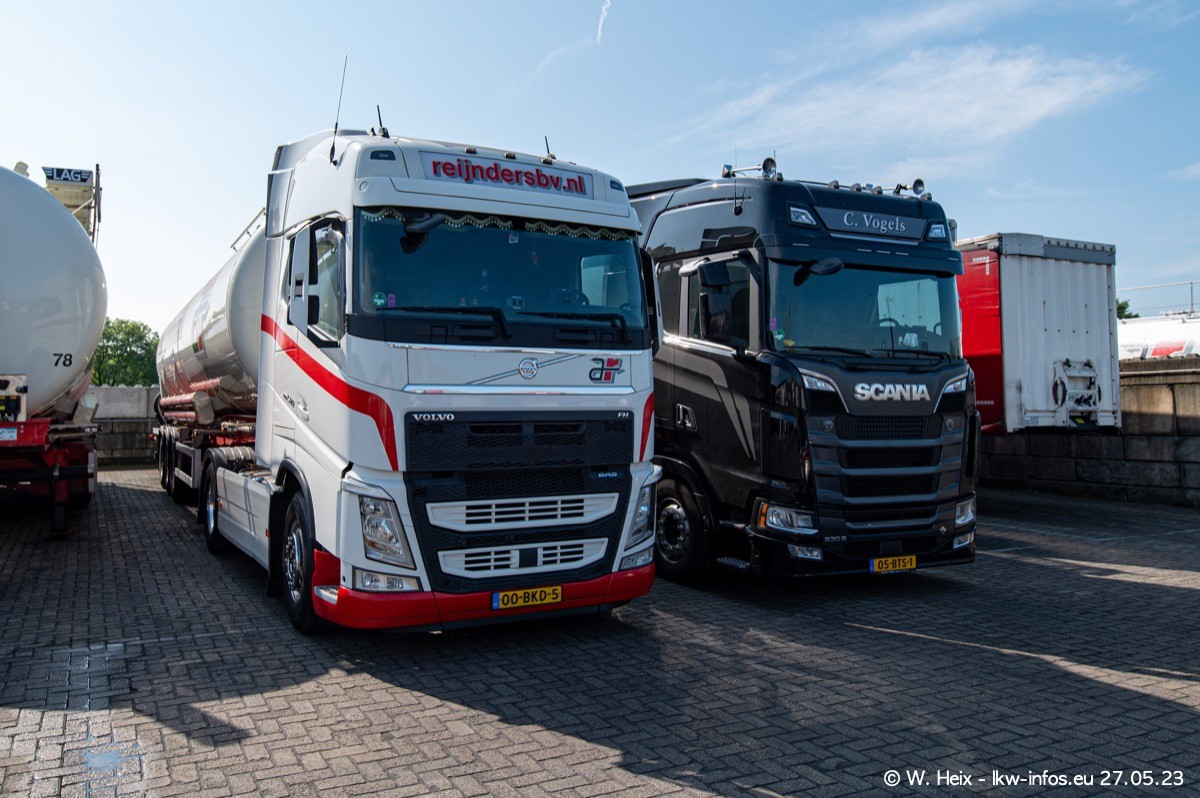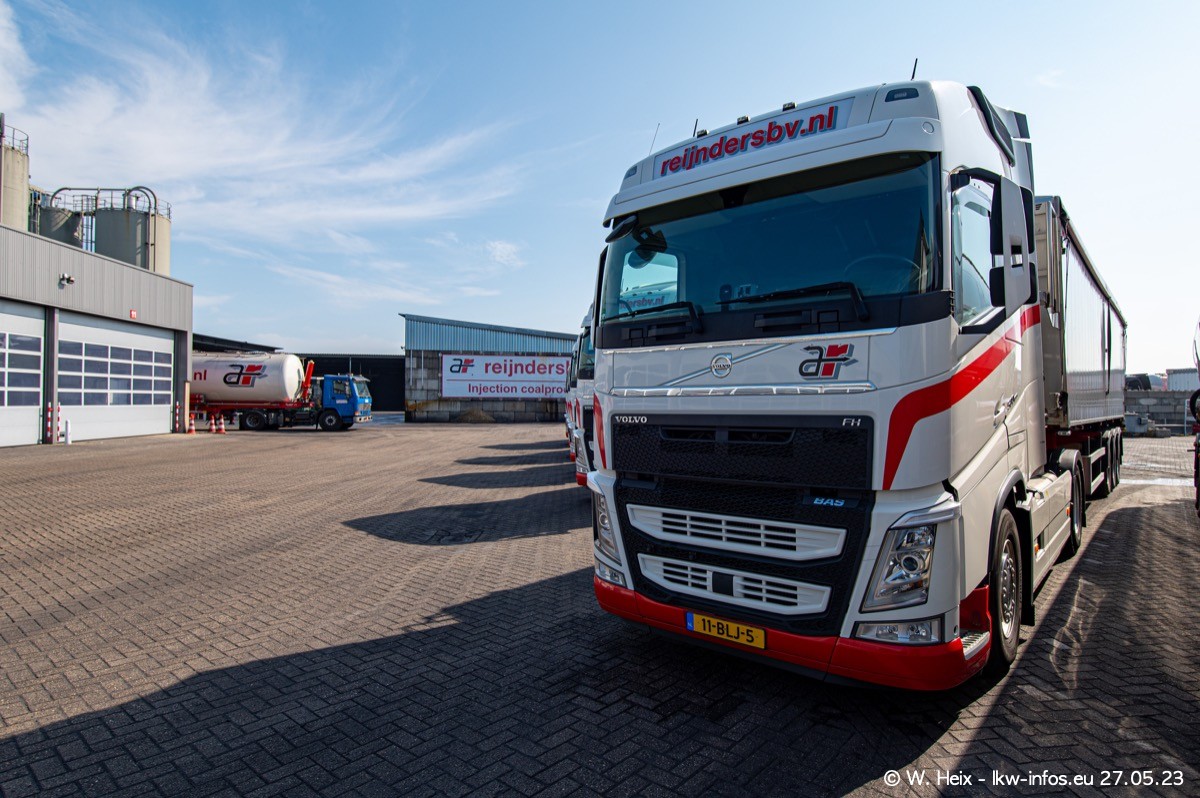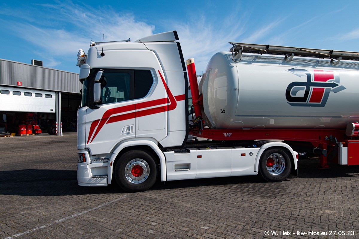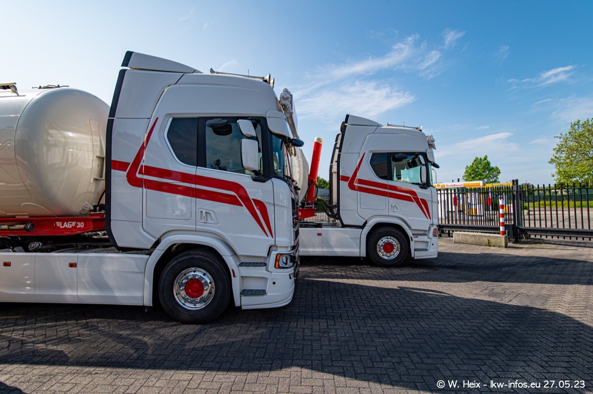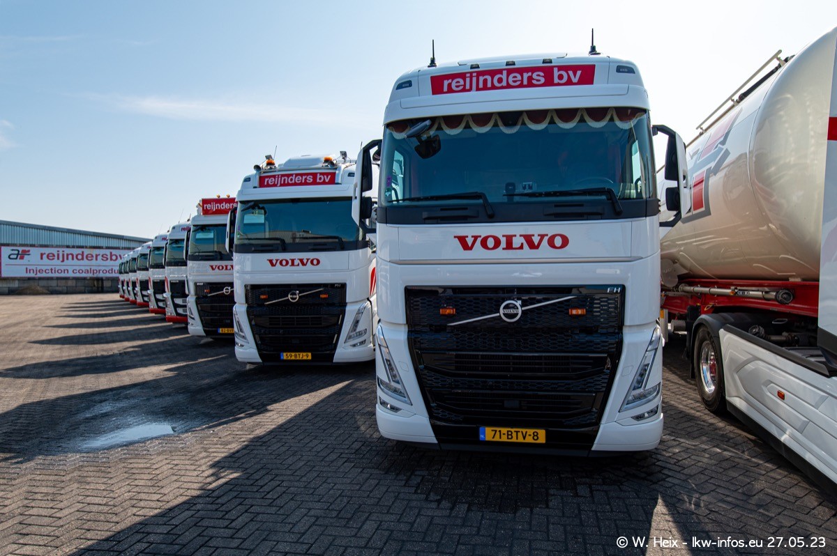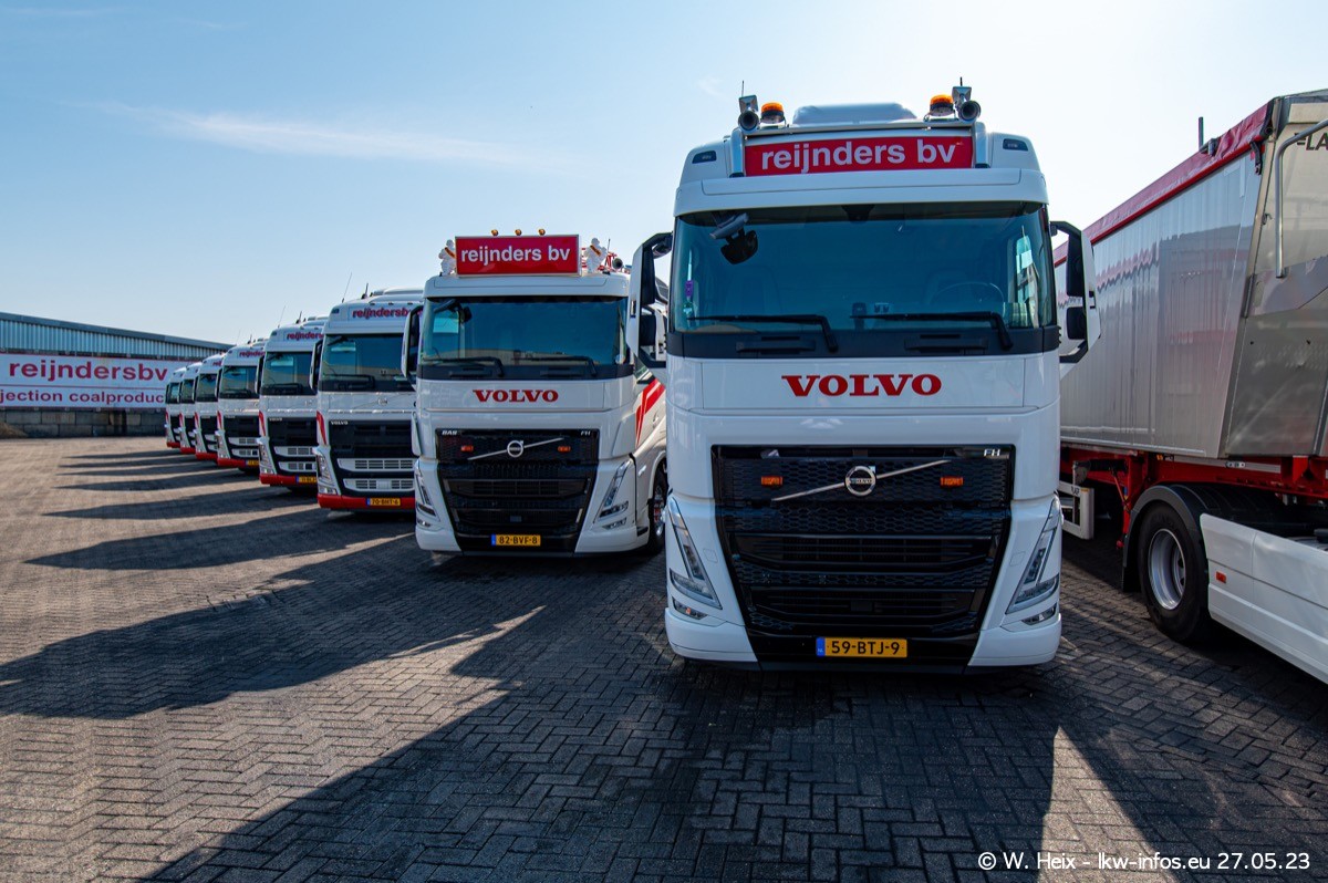 Vor zwei Wochen ist ein besonderer VOLVO FH 5 dazu gekommen. Der ist ohne Hochdach und mit einigem an Zubehör ausgestattet. Ein Fahrer wurde damit zu seinem 25-jährigen Jubiläum überrascht/belohnt. Der erste von drei Renault T Evo ist da, aber noch nicht fertig. Ein paar Bilder habe ich schon gemacht. Der Rest der Fahrzeuge ist bekannt. Es dauert übrigens nicht mehr lange, bis alle VOLVO FH 4 ausgemustert sind. Dann wird der fast komplette Fuhrpark im neuen Design unterwegs sein ....