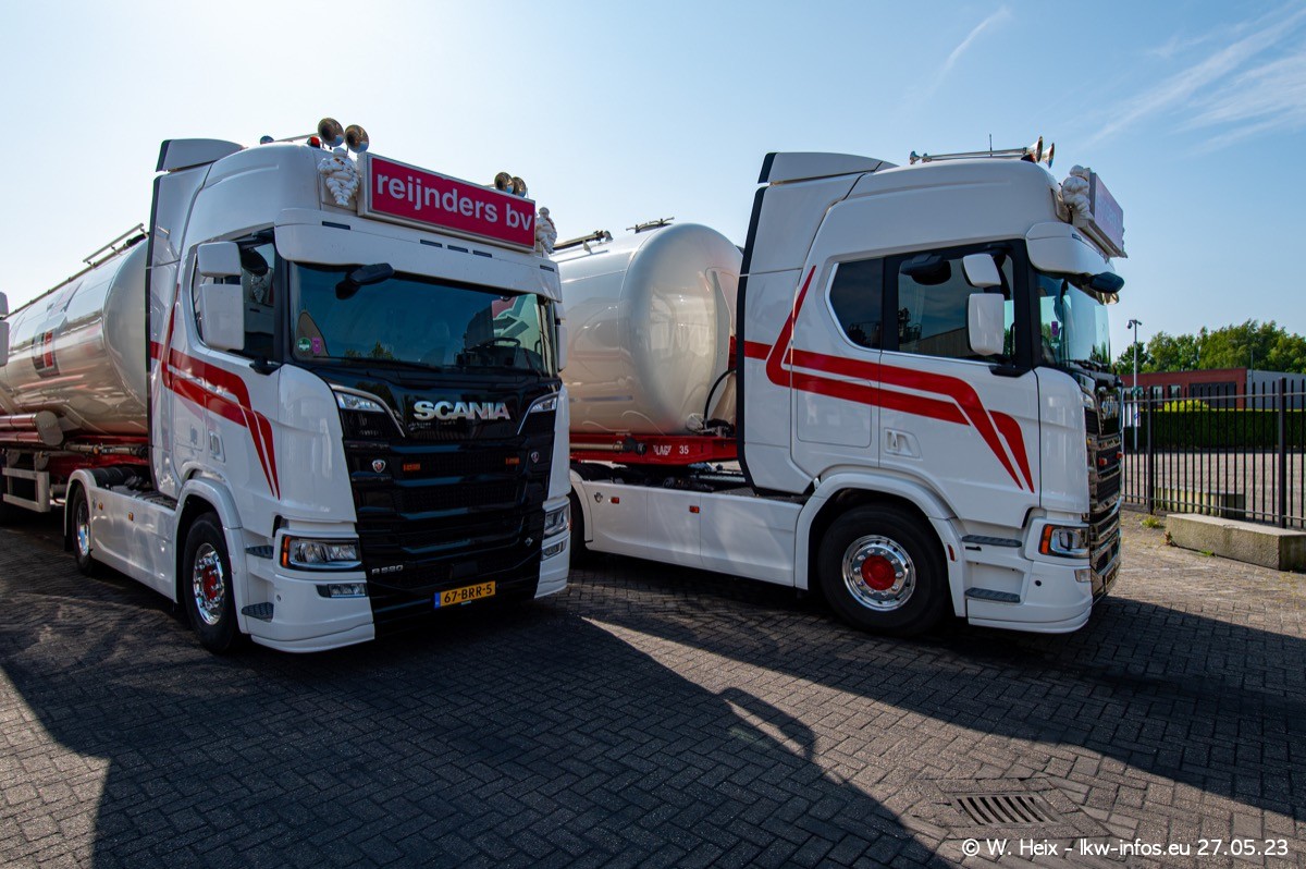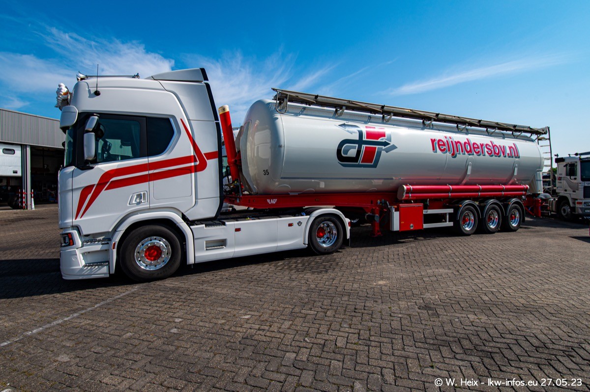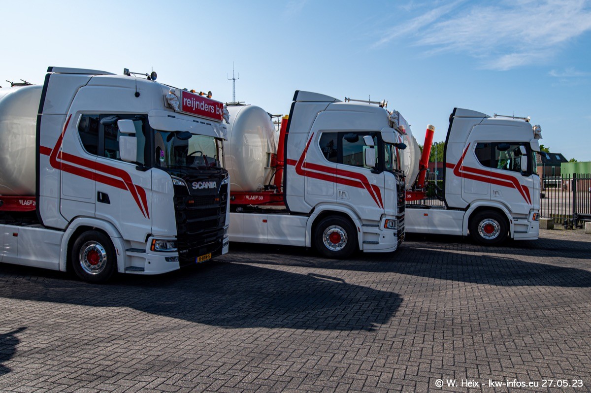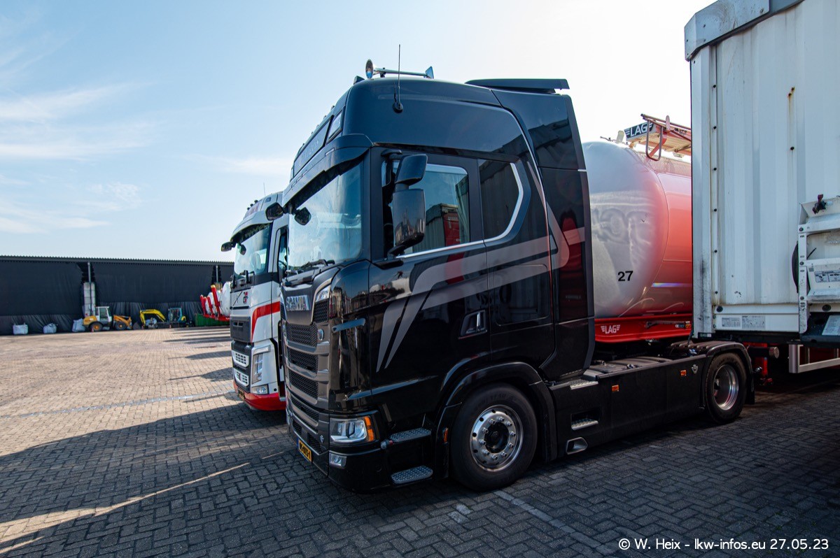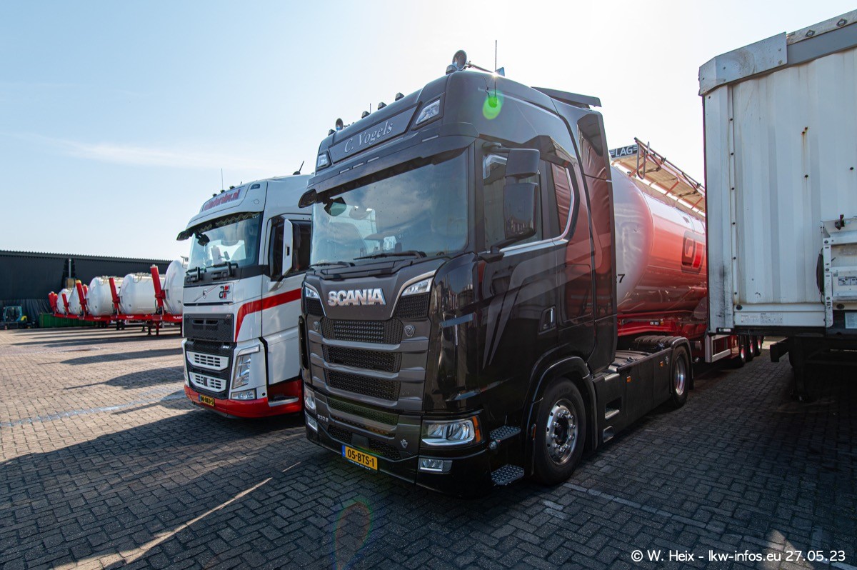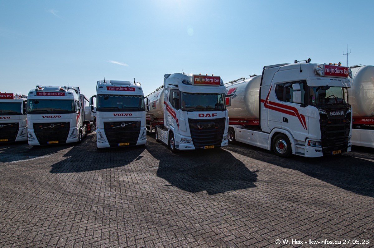 Vor zwei Wochen ist ein besonderer VOLVO FH 5 dazu gekommen. Der ist ohne Hochdach und mit einigem an Zubehör ausgestattet. Ein Fahrer wurde damit zu seinem 25-jährigen Jubiläum überrascht/belohnt. Der erste von drei Renault T Evo ist da, aber noch nicht fertig. Ein paar Bilder habe ich schon gemacht. Der Rest der Fahrzeuge ist bekannt. Es dauert übrigens nicht mehr lange, bis alle VOLVO FH 4 ausgemustert sind. Dann wird der fast komplette Fuhrpark im neuen Design unterwegs sein ....